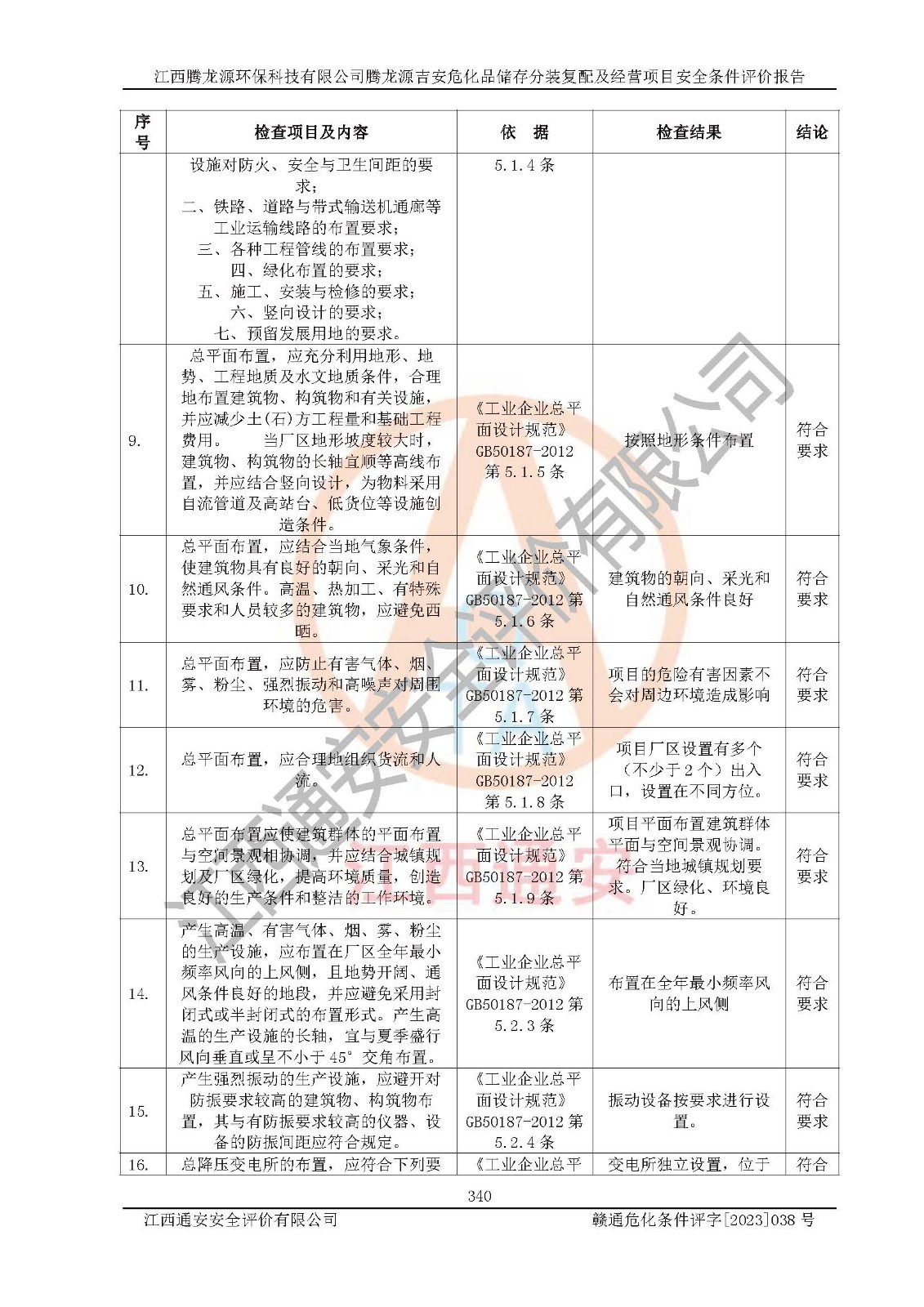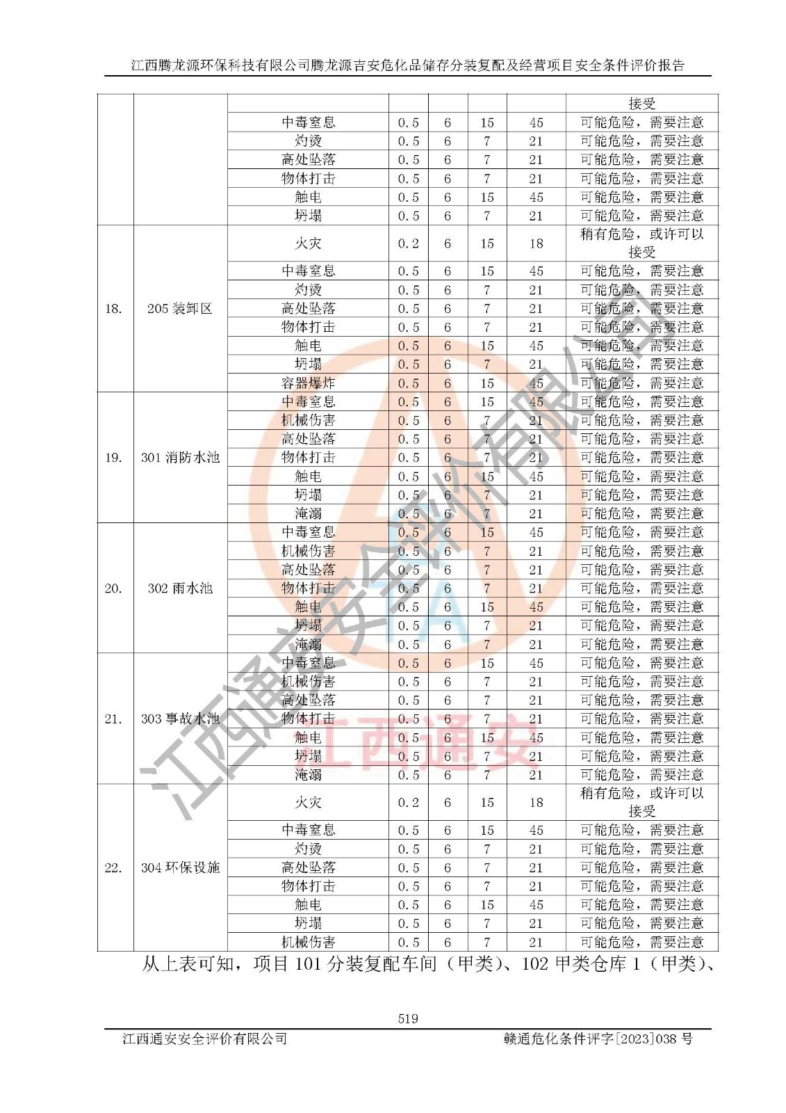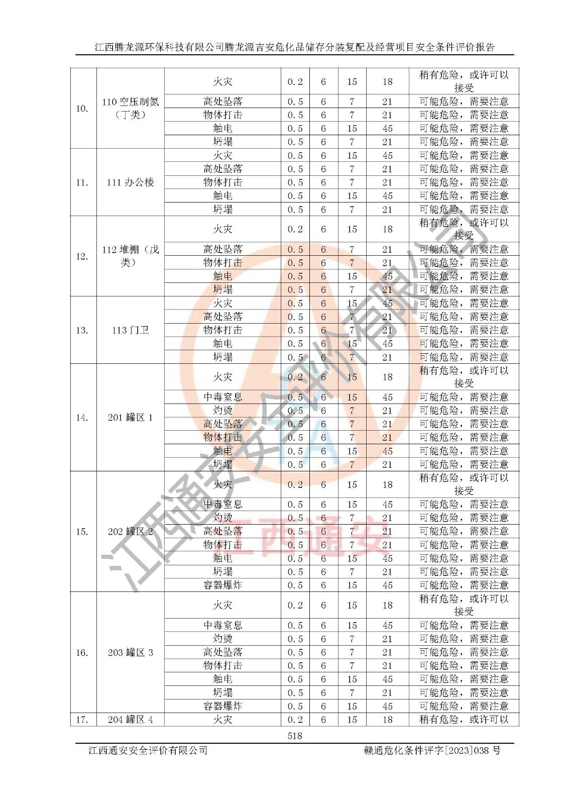 評價結(jié)論 | 本評價認(rèn)為,江西騰龍?jiān)?*科技有限公司騰龍?jiān)醇参;穬Υ娣盅b復(fù)配及經(jīng)營項(xiàng)目在以后的初步設(shè)計(jì)、施工圖設(shè)計(jì)和建設(shè)施工、安裝調(diào)試及生產(chǎn)運(yùn)行中,如能嚴(yán)格執(zhí)行**有關(guān)安全生產(chǎn)法律、法規(guī)和有關(guān)標(biāo)準(zhǔn)、規(guī)范,認(rèn)真采納本報(bào)告書第8章提出的安全對策措施及建議,真正做到安全設(shè)施與主體工程同時設(shè)計(jì)、同時施工、同時投入生產(chǎn)和使用的“三同時”,工程的危險(xiǎn)、有害因素可得到**控制,風(fēng)險(xiǎn)在可接受范圍內(nèi),具有**的本質(zhì)安全水平。該建設(shè)項(xiàng)目從安全方面分析可行。 | |||