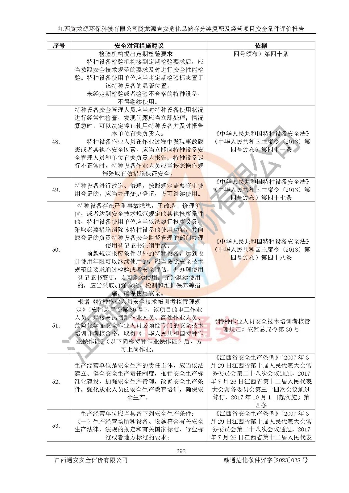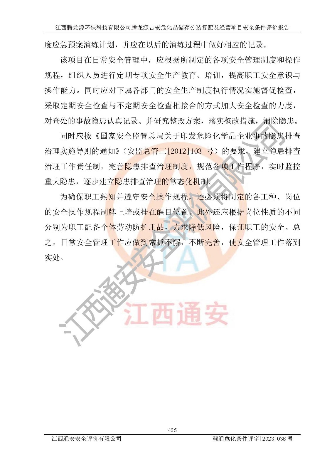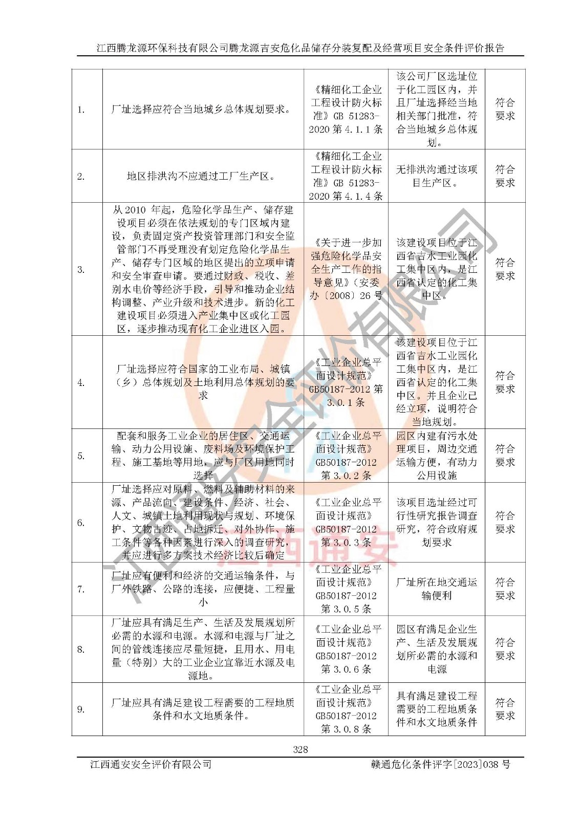 評價結(jié)論 | 本評價認(rèn)為,江西騰龍?jiān)?*科技有限公司騰龍?jiān)醇参;穬Υ娣盅b復(fù)配及經(jīng)營項(xiàng)目在以后的初步設(shè)計(jì)、施工圖設(shè)計(jì)和建設(shè)施工、安裝調(diào)試及生產(chǎn)運(yùn)行中,如能嚴(yán)格執(zhí)行**有關(guān)安全生產(chǎn)法律、法規(guī)和有關(guān)標(biāo)準(zhǔn)、規(guī)范,認(rèn)真采納本報(bào)告書第8章提出的安全對策措施及建議,真正做到安全設(shè)施與主體工程同時設(shè)計(jì)、同時施工、同時投入生產(chǎn)和使用的“三同時”,工程的危險(xiǎn)、有害因素可得到**控制,風(fēng)險(xiǎn)在可接受范圍內(nèi),具有**的本質(zhì)安全水平。該建設(shè)項(xiàng)目從安全方面分析可行。 | |||