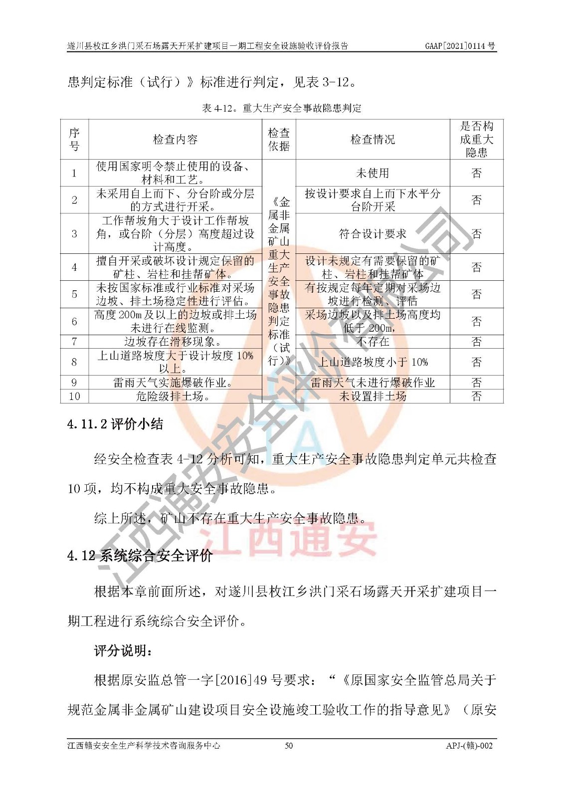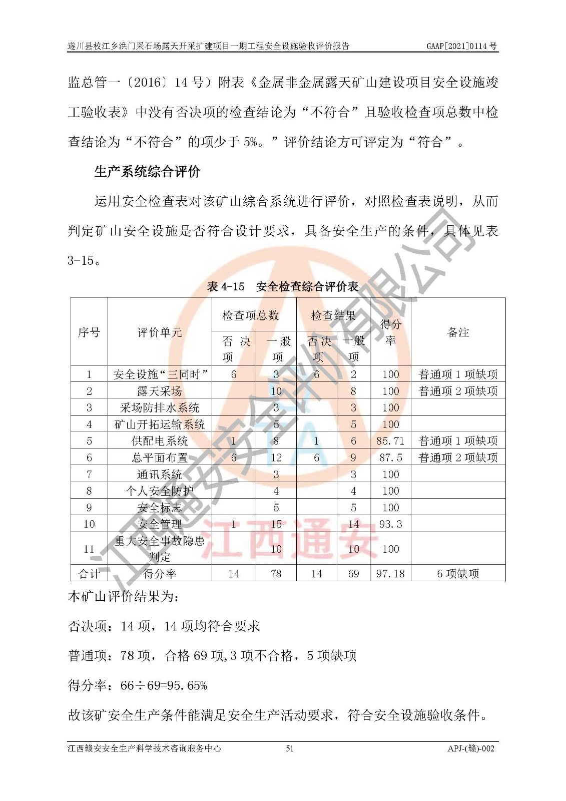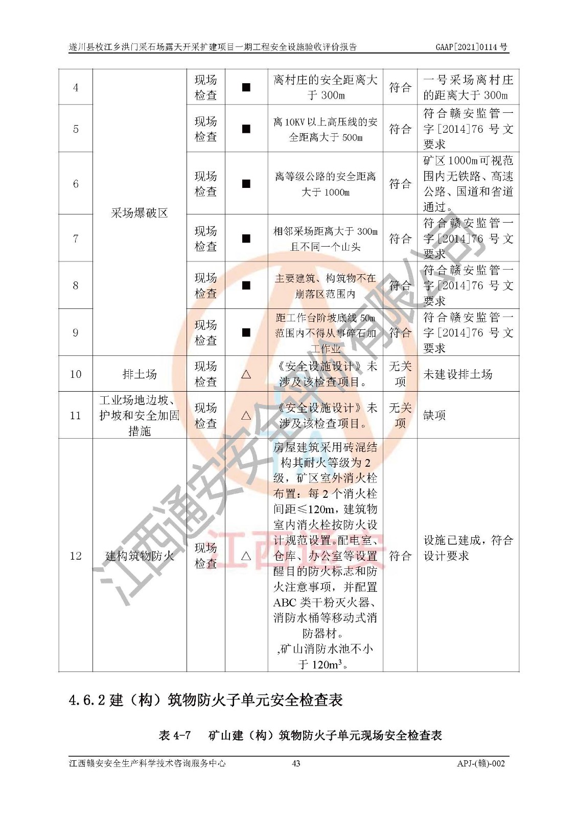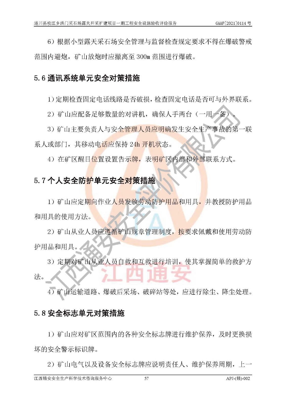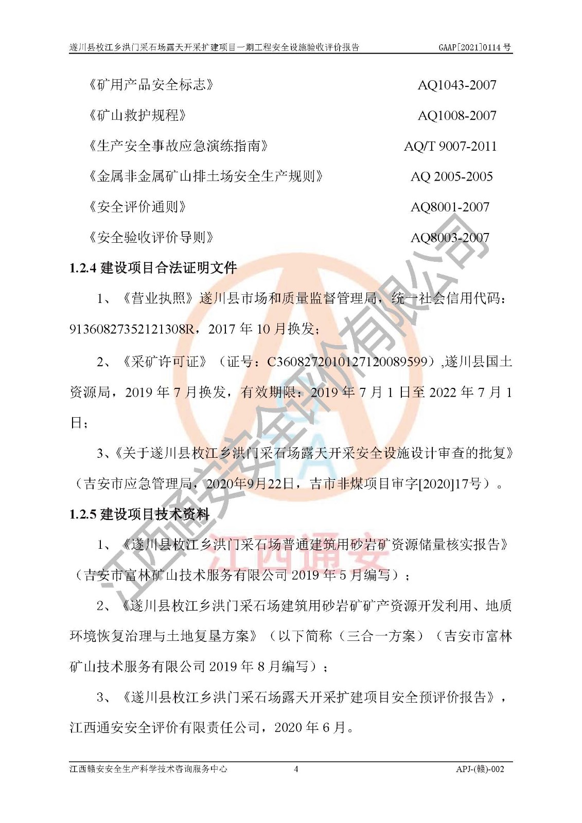 1、該評(píng)價(jià)項(xiàng)目中存在的主要危險(xiǎn)因素:火藥爆炸、爆破傷害、容器爆炸、觸電與雷電、坍塌、機(jī)械傷害、**傷害、火災(zāi)、高處墜落、物體打擊、滑坡、泥石流、淹溺、中毒和窒息等危險(xiǎn)有害因素。 2、該評(píng)價(jià)項(xiàng)目中存在的有害因素包括:粉塵、噪聲與振動(dòng)、不良作業(yè)環(huán)境,如高溫、雷擊對(duì)礦山人員的傷害和其他不利的環(huán)境因素等。 3、該評(píng)價(jià)項(xiàng)目為非金屬露天采石場(chǎng),無瓦斯和自燃發(fā)火危險(xiǎn),礦區(qū)范圍內(nèi)及周邊無較大水系,礦區(qū)水文地質(zhì)條件簡(jiǎn)單。該評(píng)價(jià)項(xiàng)目只是對(duì)建筑用砂巖礦進(jìn)行露天開采,不使用有毒有害危險(xiǎn)化學(xué)品藥劑,該評(píng)價(jià)項(xiàng)目涉及的危險(xiǎn)物品主要為民用爆破器材,根據(jù)業(yè)主介紹,爆破器材采用配送制。該評(píng)價(jià)項(xiàng)目使用的壓力容器為空壓機(jī)儲(chǔ)氣罐,其工作介質(zhì)為空氣,屬**性、非易燃介質(zhì)。綜合上述分析,本評(píng)價(jià)項(xiàng)目不存在重大危險(xiǎn)源。 上述主要危險(xiǎn)、有害因素在采取本報(bào)告第六章中提出的安全對(duì)策措施后,能得到**控制。該項(xiàng)目從安全生產(chǎn)角度符合**有關(guān)安全生產(chǎn)法律、法規(guī)、規(guī)章和技術(shù)標(biāo)準(zhǔn)的要求。 |