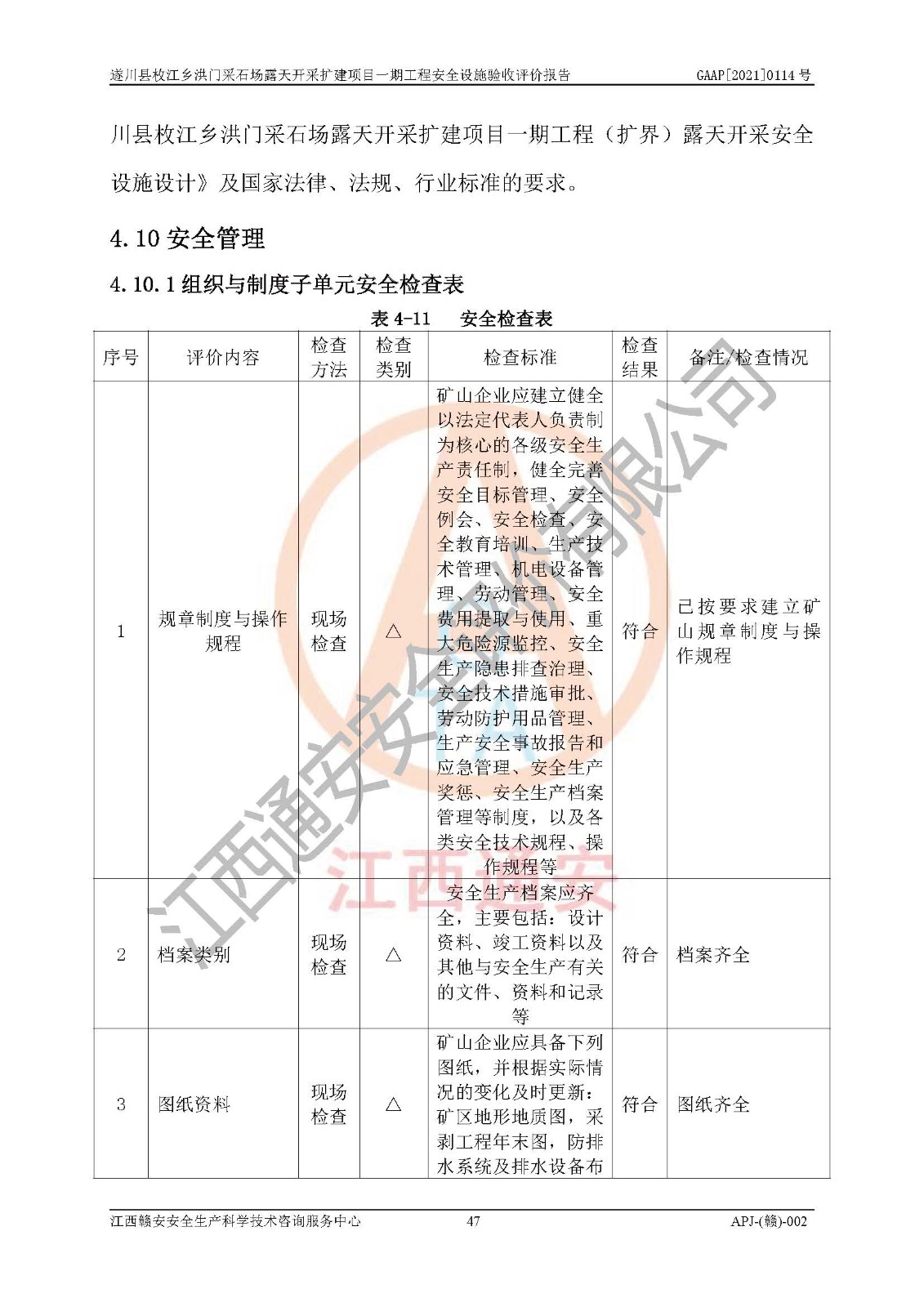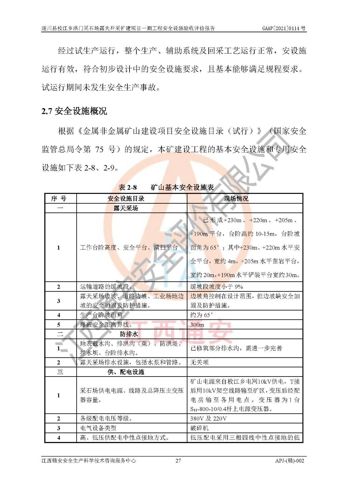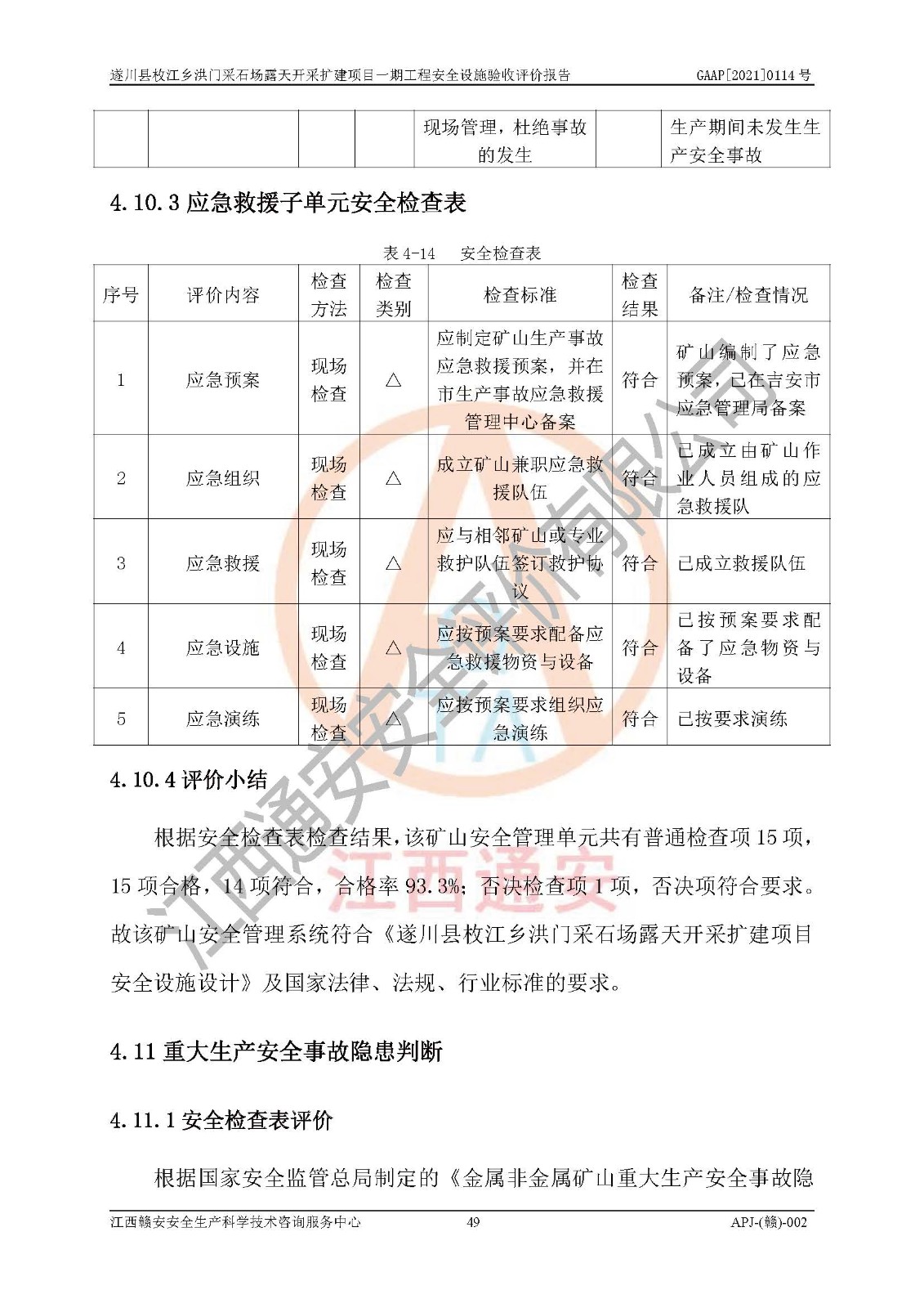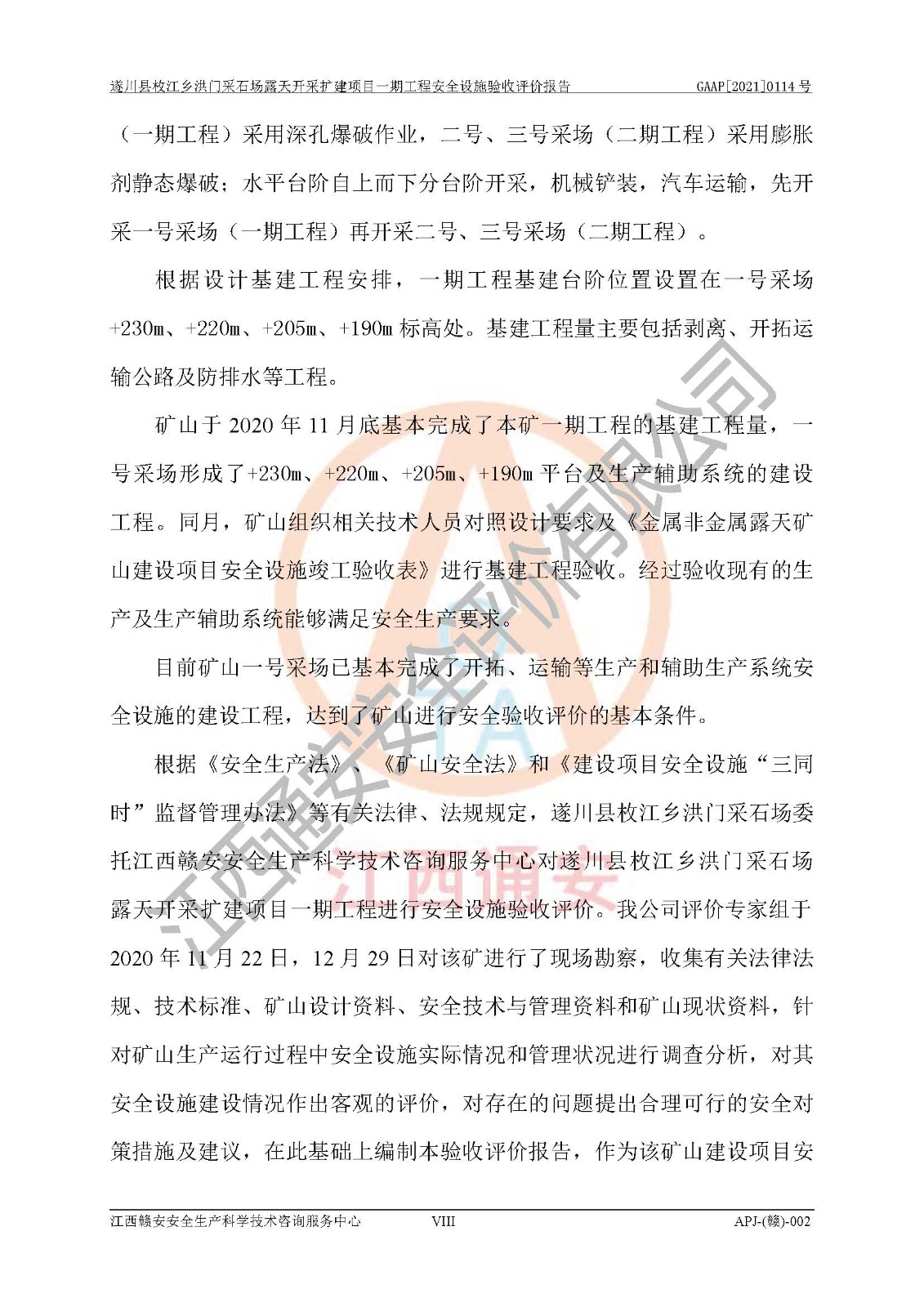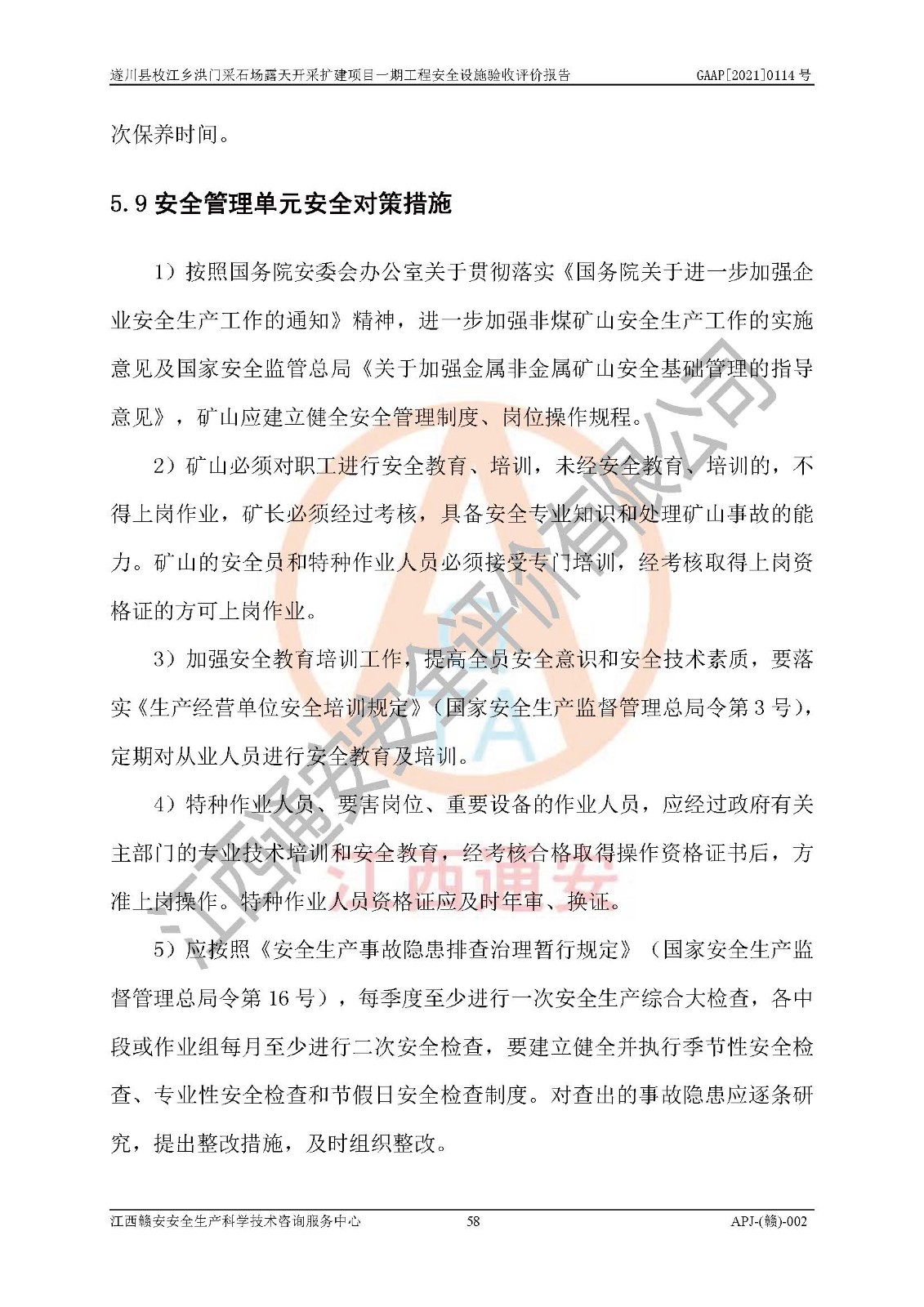 1、該評(píng)價(jià)項(xiàng)目中存在的主要危險(xiǎn)因素:火藥爆炸、爆破傷害、容器爆炸、觸電與雷電、坍塌、機(jī)械傷害、**傷害、火災(zāi)、高處墜落、物體打擊、滑坡、泥石流、淹溺、中毒和窒息等危險(xiǎn)有害因素。 2、該評(píng)價(jià)項(xiàng)目中存在的有害因素包括:粉塵、噪聲與振動(dòng)、不良作業(yè)環(huán)境,如高溫、雷擊對(duì)礦山人員的傷害和其他不利的環(huán)境因素等。 3、該評(píng)價(jià)項(xiàng)目為非金屬露天采石場(chǎng),無瓦斯和自燃發(fā)火危險(xiǎn),礦區(qū)范圍內(nèi)及周邊無較大水系,礦區(qū)水文地質(zhì)條件簡(jiǎn)單。該評(píng)價(jià)項(xiàng)目只是對(duì)建筑用砂巖礦進(jìn)行露天開采,不使用有毒有害危險(xiǎn)化學(xué)品藥劑,該評(píng)價(jià)項(xiàng)目涉及的危險(xiǎn)物品主要為民用爆破器材,根據(jù)業(yè)主介紹,爆破器材采用配送制。該評(píng)價(jià)項(xiàng)目使用的壓力容器為空壓機(jī)儲(chǔ)氣罐,其工作介質(zhì)為空氣,屬**性、非易燃介質(zhì)。綜合上述分析,本評(píng)價(jià)項(xiàng)目不存在重大危險(xiǎn)源。 上述主要危險(xiǎn)、有害因素在采取本報(bào)告第六章中提出的安全對(duì)策措施后,能得到**控制。該項(xiàng)目從安全生產(chǎn)角度符合**有關(guān)安全生產(chǎn)法律、法規(guī)、規(guī)章和技術(shù)標(biāo)準(zhǔn)的要求。 |