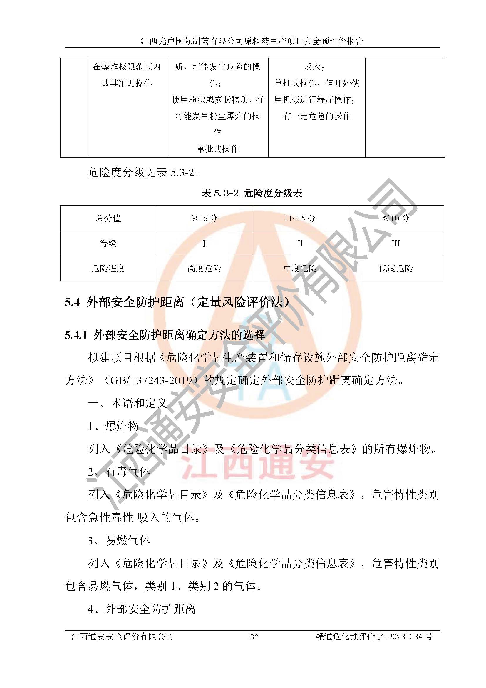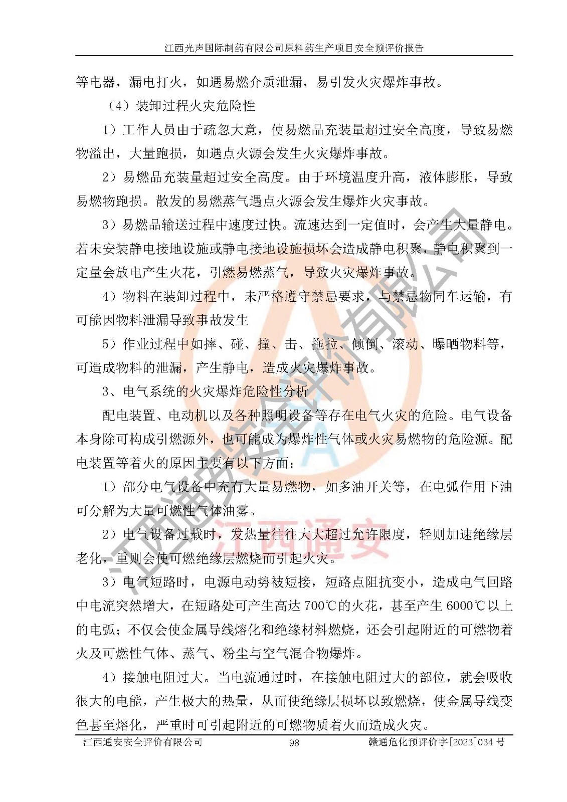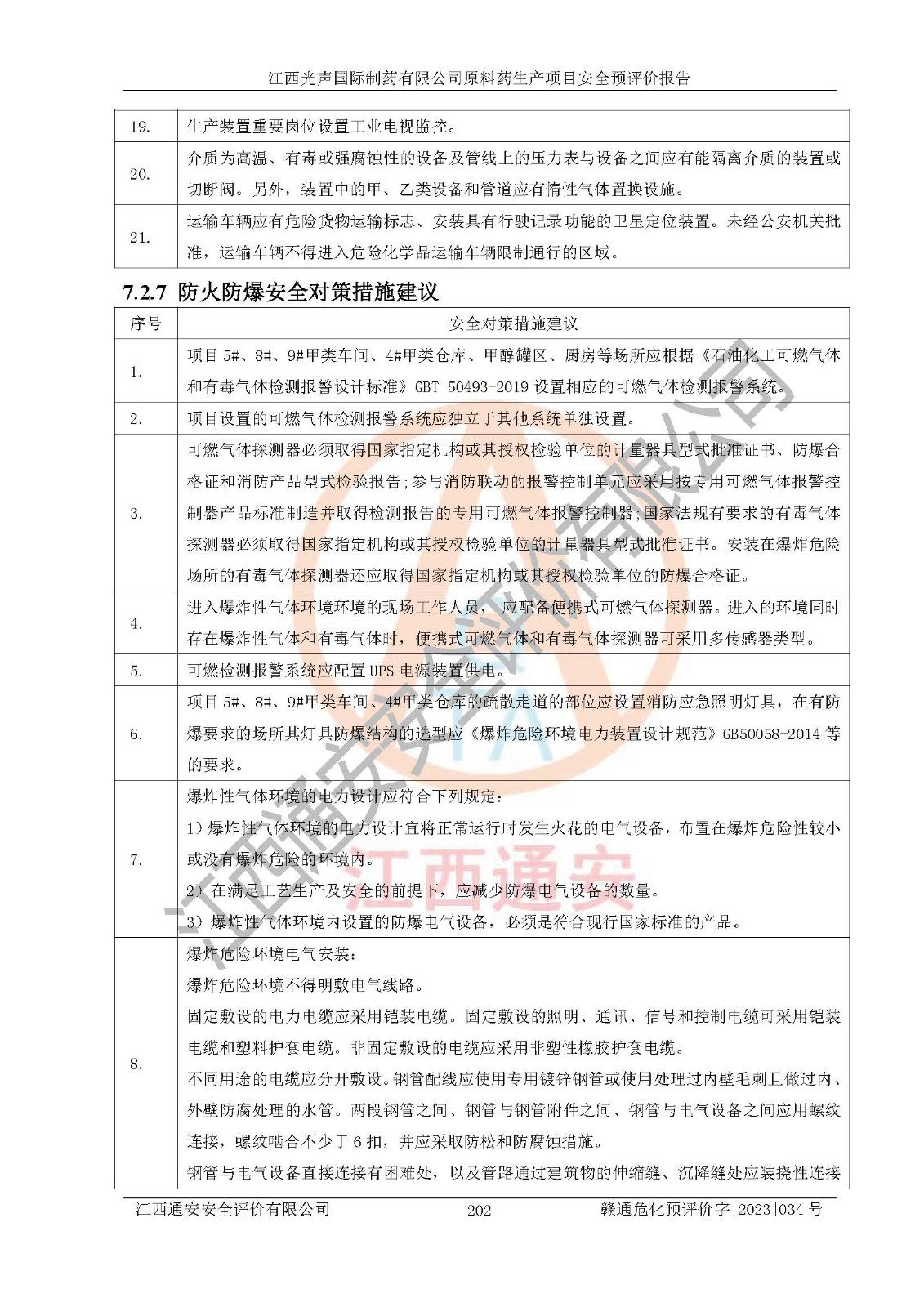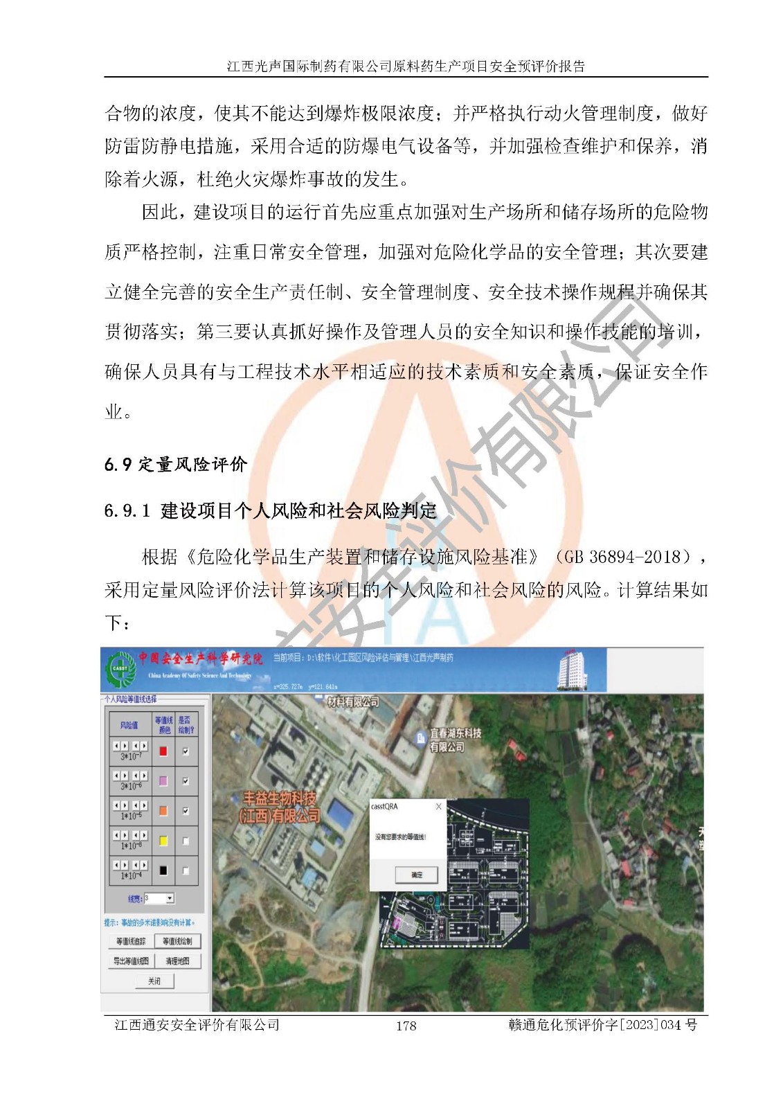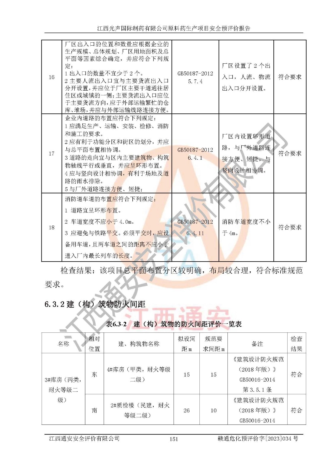 通過對江西光聲**制藥有限公司原料藥生產(chǎn)項目的危險、有害因素分析及定性、定量分析,結果為: 1、該建設項目中所涉及到的危險物質包括甲醇、乙醇、乙酸乙酯、**、三乙胺等易燃液體,在裝置運行和物料儲運過程中存在著易燃液體泄漏引發(fā)的火災爆炸危險;溴化氫屬于有毒氣體,二氯甲烷屬于毒害品,人員意外接觸后存在中毒窒息危險。另外,使用的鹽酸、溴化氫、氫氧化鈉、三乙胺等原料具有腐蝕性,人體意外接觸后易引發(fā)化學灼傷;同時該項目使用的反應釜、離心機、輸料泵等設備如操作不慎還會帶來機械傷害。因此,該項目在建成后的運行過程中存在火災與爆炸、中毒與窒息、觸電、機械傷害、高處墜落、物體打擊、**傷害、起重傷害、灼燙、淹溺、其他傷害等危險因素和化學因素、物理因素等有害因素。 2、重點防范的重大危險、有害因素:通過對該項目存在的危險、有害因素進行分析辨識,在生產(chǎn)過程中重點防范的重大危險、有害因素主要為火災與爆炸、中毒與窒息。 3、預先危險性分析法評價結果:該裝置運行過程中火災、爆炸的危險性等級為Ⅳ級,電氣火災、觸電、中毒窒息、灼燙的危險性為Ⅲ級,機械傷害、高處墜落、**傷害、起重傷害、淹溺、噪聲危害的危險性等級為Ⅱ級。因此,火災、爆炸是該裝置需重點防范的危險有害因素。而引發(fā)火災、爆炸的主要因素是甲醇、乙醇、乙酸乙酯以及三乙胺等可燃物質的泄漏及各類點火源的存在。企業(yè)在今后生產(chǎn)過程中,應將可燃物質的泄漏以及消除點火源做為重點加以控制。 4、危險度評價法的分析結果:該項目5#車間、8#車間、9#車間、罐區(qū)單元的危險等級分別為II級,屬中度危險;4#倉庫單元危險等級分別為Ⅲ級,屬低度危險。 5、重大危險源辨識結果:依據(jù)《危險化學品重大危險源辨識》(GB18218-2018),該擬建項目不構成危險化學品重大危險源。 6、根據(jù)**安全監(jiān)管總局辦公廳《關于公布首批重點監(jiān)管的危險化工工藝目錄的通知》(安監(jiān)總管三[2009]116號)和《**安全監(jiān)管總局關于公布第二批重點監(jiān)管危險化工工藝目錄和調(diào)整首批重點監(jiān)管危險化工工藝中部分典型工藝的通知》安監(jiān)總管三[2013]3號的規(guī)定,該擬建項目不涉及危險化工工藝。 7、特殊危險化學品辨識:該擬建項目涉及的甲醇、乙酸乙酯屬于重點監(jiān)管的危險化學品;擬建項目涉及的**、鹽酸屬于易制毒化學品,涉及的甲醇、乙醇屬于特別管控危險化學品,不涉及監(jiān)控化學品,不涉及易制爆化學品。 綜上所述:江西光聲**制藥有限公司原料藥生產(chǎn)項目符合**、省有關安全生產(chǎn)的法律法規(guī)、規(guī)章、標準、規(guī)范的要求,在以后的初步設計、施工圖設計和建設施工、安裝調(diào)試及生產(chǎn)運行中,如能嚴格執(zhí)行**有關安全生產(chǎn)法律、法規(guī)和有關標準、規(guī)范,認真采納本報告書中安全對策措施及建議,真正做到安全設施與主體工程同時設計、同時施工、同時投入生產(chǎn)和使用的“三同時”,工程的危險、有害因素可得到**控制,風險在可接受范圍內(nèi),具有**的本質安全水平;本建設項目從安全方面分析可行。 |