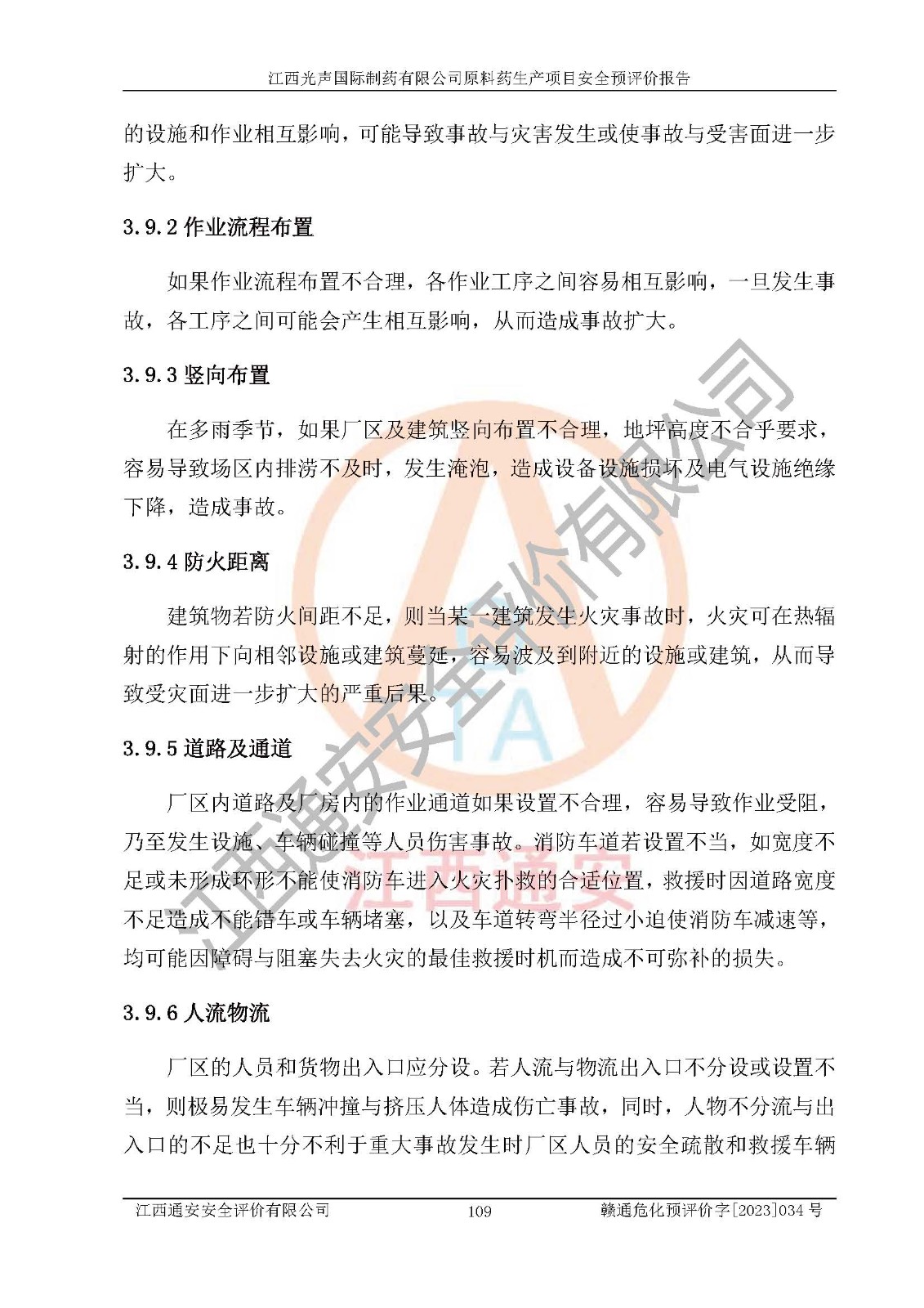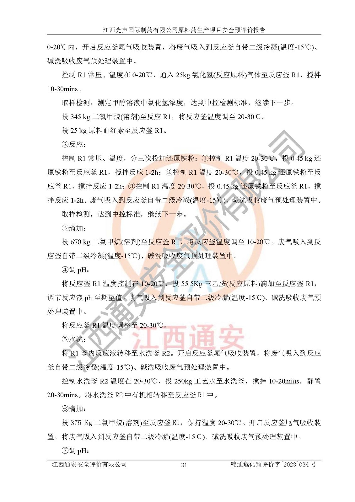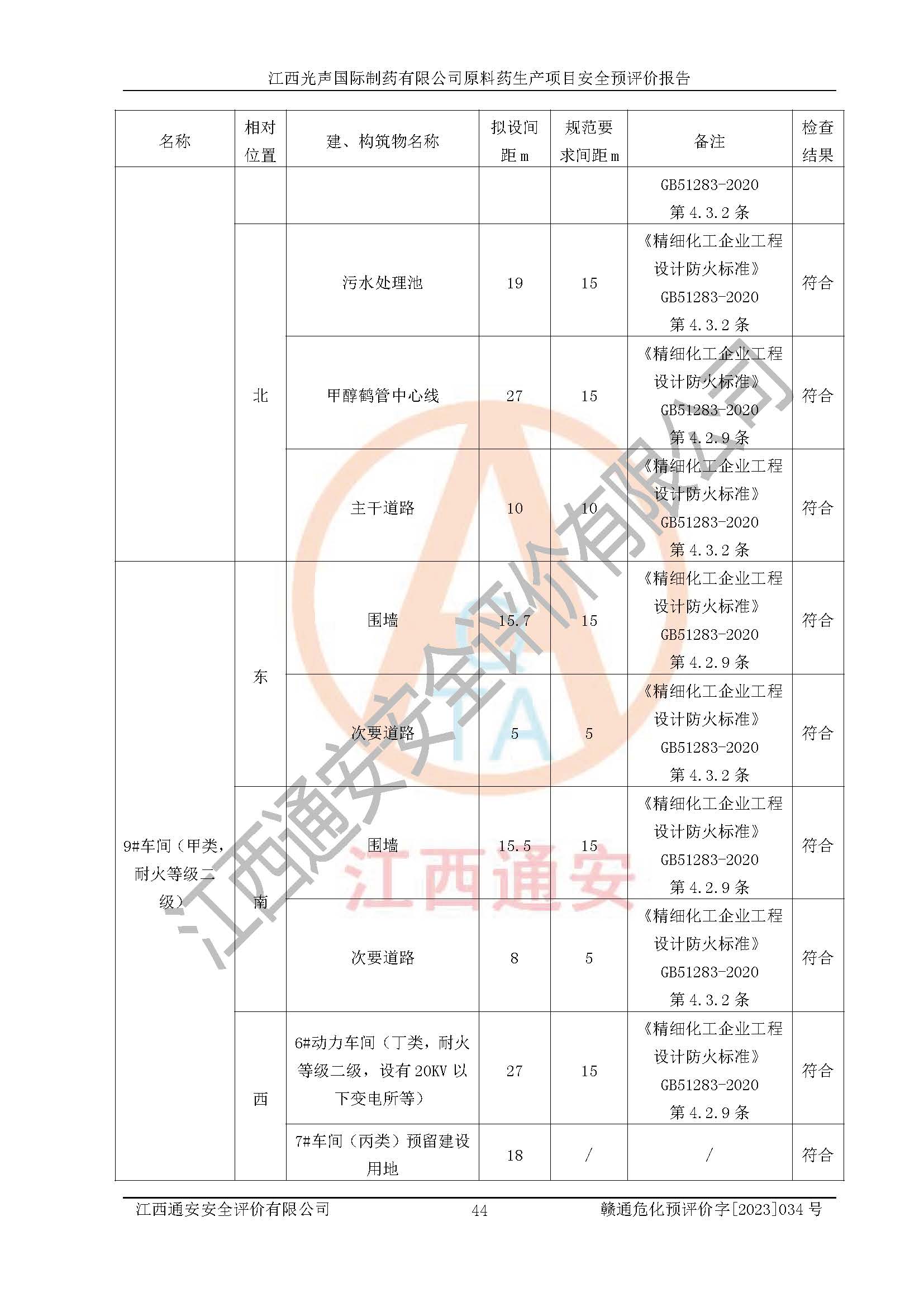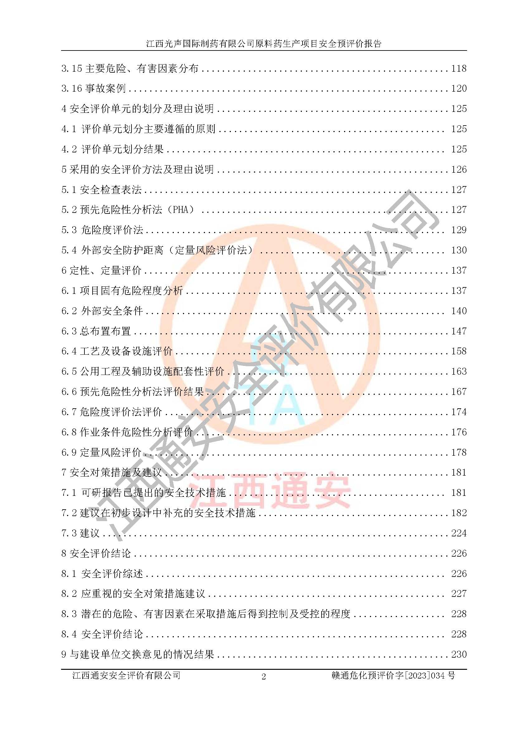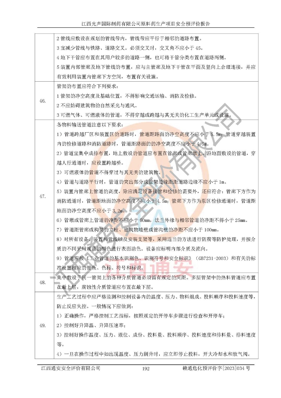 通過對江西光聲**制藥有限公司原料藥生產(chǎn)項目的危險、有害因素分析及定性、定量分析,結果為: 1、該建設項目中所涉及到的危險物質包括甲醇、乙醇、乙酸乙酯、**、三乙胺等易燃液體,在裝置運行和物料儲運過程中存在著易燃液體泄漏引發(fā)的火災爆炸危險;溴化氫屬于有毒氣體,二氯甲烷屬于毒害品,人員意外接觸后存在中毒窒息危險。另外,使用的鹽酸、溴化氫、氫氧化鈉、三乙胺等原料具有腐蝕性,人體意外接觸后易引發(fā)化學灼傷;同時該項目使用的反應釜、離心機、輸料泵等設備如操作不慎還會帶來機械傷害。因此,該項目在建成后的運行過程中存在火災與爆炸、中毒與窒息、觸電、機械傷害、高處墜落、物體打擊、**傷害、起重傷害、灼燙、淹溺、其他傷害等危險因素和化學因素、物理因素等有害因素。 2、重點防范的重大危險、有害因素:通過對該項目存在的危險、有害因素進行分析辨識,在生產(chǎn)過程中重點防范的重大危險、有害因素主要為火災與爆炸、中毒與窒息。 3、預先危險性分析法評價結果:該裝置運行過程中火災、爆炸的危險性等級為Ⅳ級,電氣火災、觸電、中毒窒息、灼燙的危險性為Ⅲ級,機械傷害、高處墜落、**傷害、起重傷害、淹溺、噪聲危害的危險性等級為Ⅱ級。因此,火災、爆炸是該裝置需重點防范的危險有害因素。而引發(fā)火災、爆炸的主要因素是甲醇、乙醇、乙酸乙酯以及三乙胺等可燃物質的泄漏及各類點火源的存在。企業(yè)在今后生產(chǎn)過程中,應將可燃物質的泄漏以及消除點火源做為重點加以控制。 4、危險度評價法的分析結果:該項目5#車間、8#車間、9#車間、罐區(qū)單元的危險等級分別為II級,屬中度危險;4#倉庫單元危險等級分別為Ⅲ級,屬低度危險。 5、重大危險源辨識結果:依據(jù)《危險化學品重大危險源辨識》(GB18218-2018),該擬建項目不構成危險化學品重大危險源。 6、根據(jù)**安全監(jiān)管總局辦公廳《關于公布首批重點監(jiān)管的危險化工工藝目錄的通知》(安監(jiān)總管三[2009]116號)和《**安全監(jiān)管總局關于公布第二批重點監(jiān)管危險化工工藝目錄和調(diào)整首批重點監(jiān)管危險化工工藝中部分典型工藝的通知》安監(jiān)總管三[2013]3號的規(guī)定,該擬建項目不涉及危險化工工藝。 7、特殊危險化學品辨識:該擬建項目涉及的甲醇、乙酸乙酯屬于重點監(jiān)管的危險化學品;擬建項目涉及的**、鹽酸屬于易制毒化學品,涉及的甲醇、乙醇屬于特別管控危險化學品,不涉及監(jiān)控化學品,不涉及易制爆化學品。 綜上所述:江西光聲**制藥有限公司原料藥生產(chǎn)項目符合**、省有關安全生產(chǎn)的法律法規(guī)、規(guī)章、標準、規(guī)范的要求,在以后的初步設計、施工圖設計和建設施工、安裝調(diào)試及生產(chǎn)運行中,如能嚴格執(zhí)行**有關安全生產(chǎn)法律、法規(guī)和有關標準、規(guī)范,認真采納本報告書中安全對策措施及建議,真正做到安全設施與主體工程同時設計、同時施工、同時投入生產(chǎn)和使用的“三同時”,工程的危險、有害因素可得到**控制,風險在可接受范圍內(nèi),具有**的本質安全水平;本建設項目從安全方面分析可行。 |