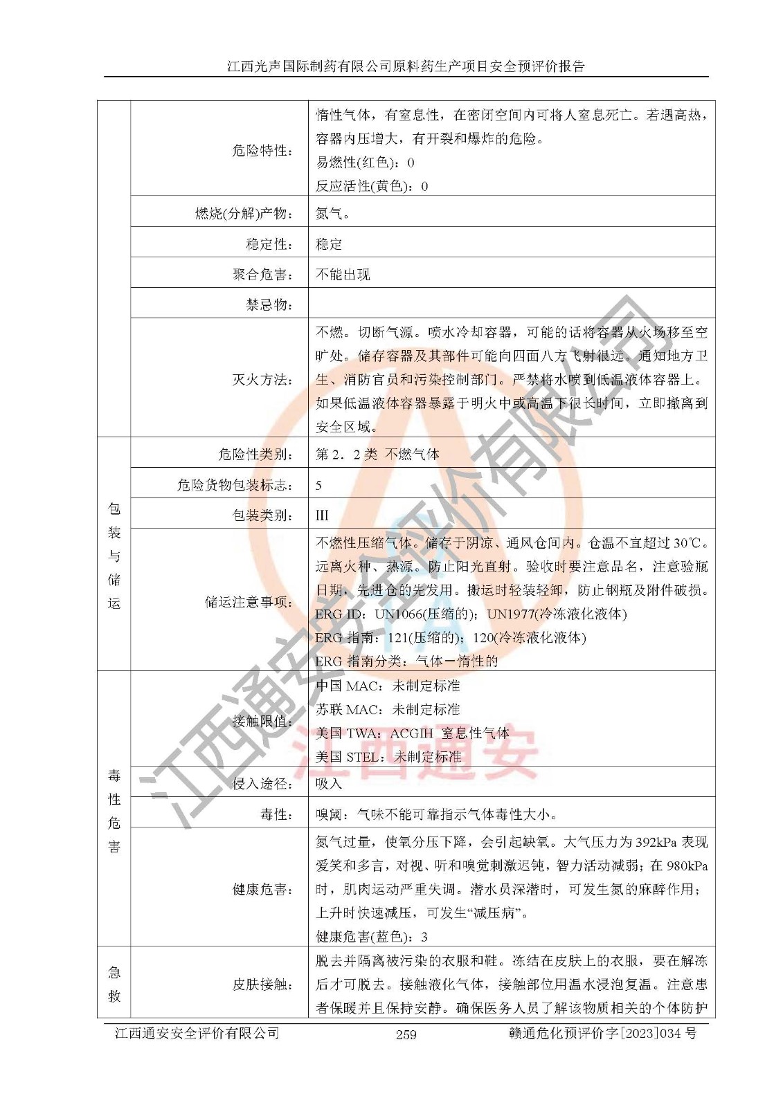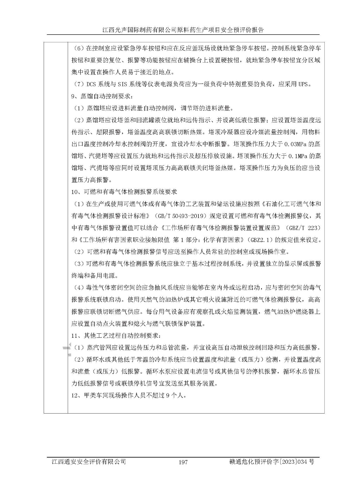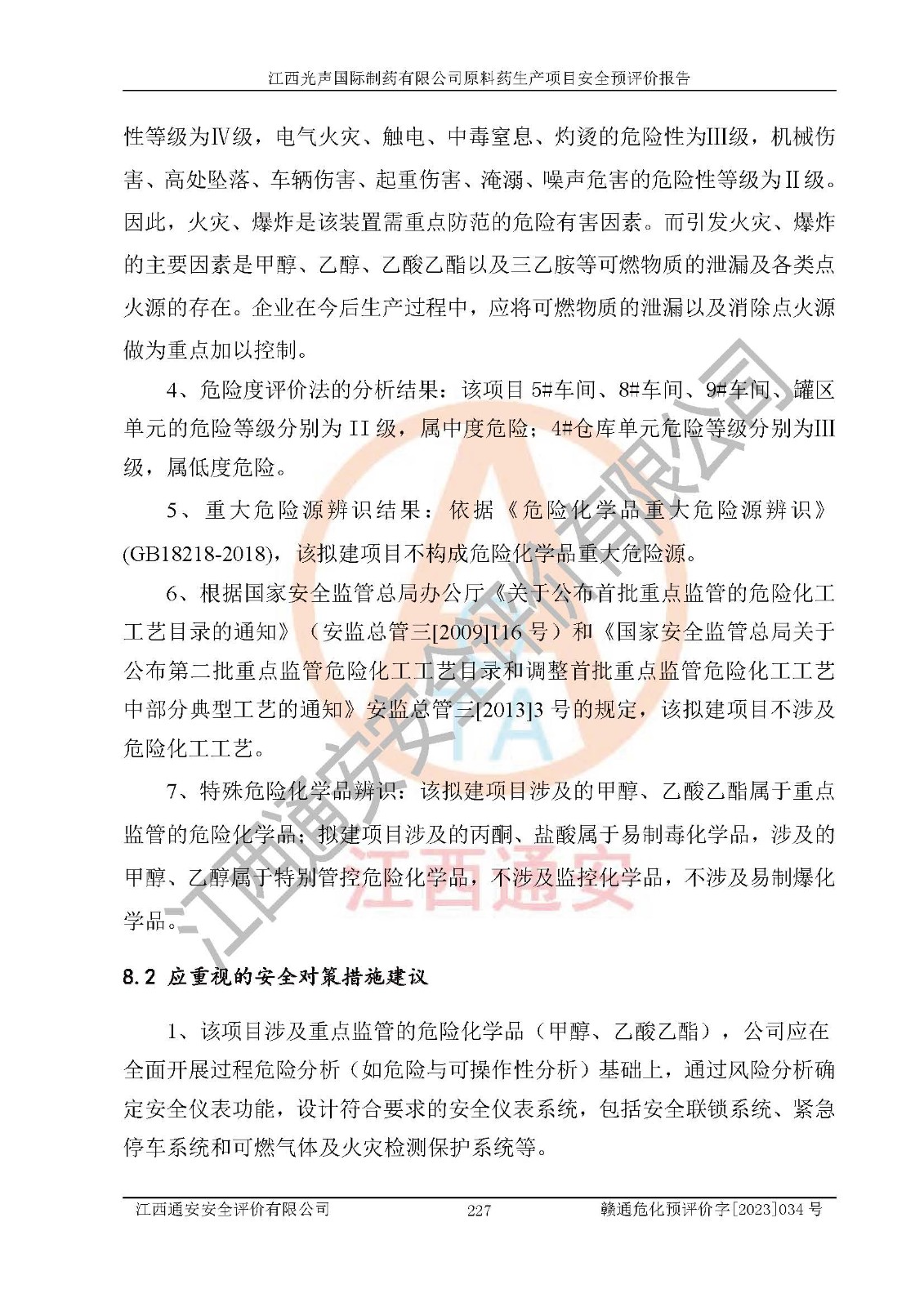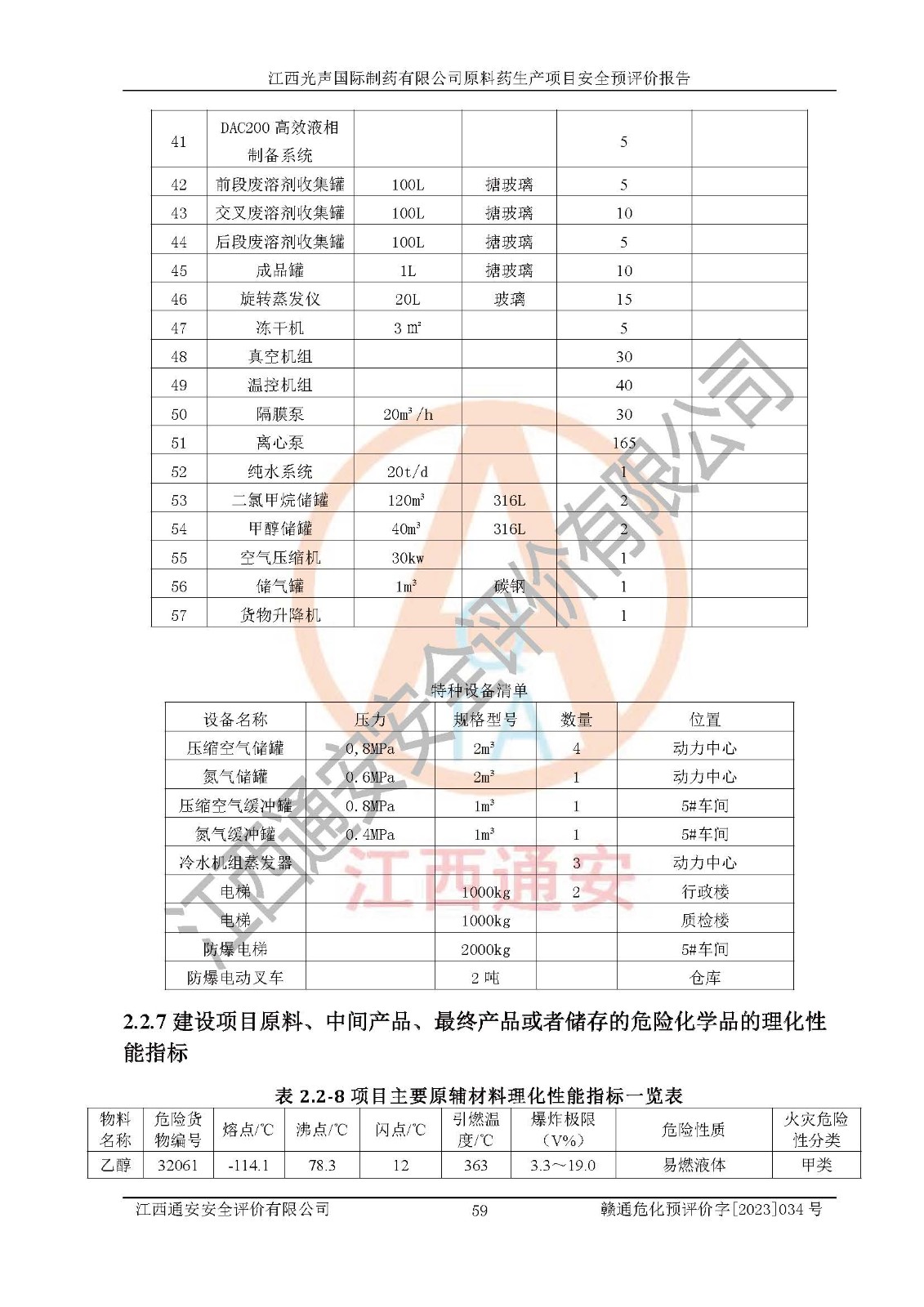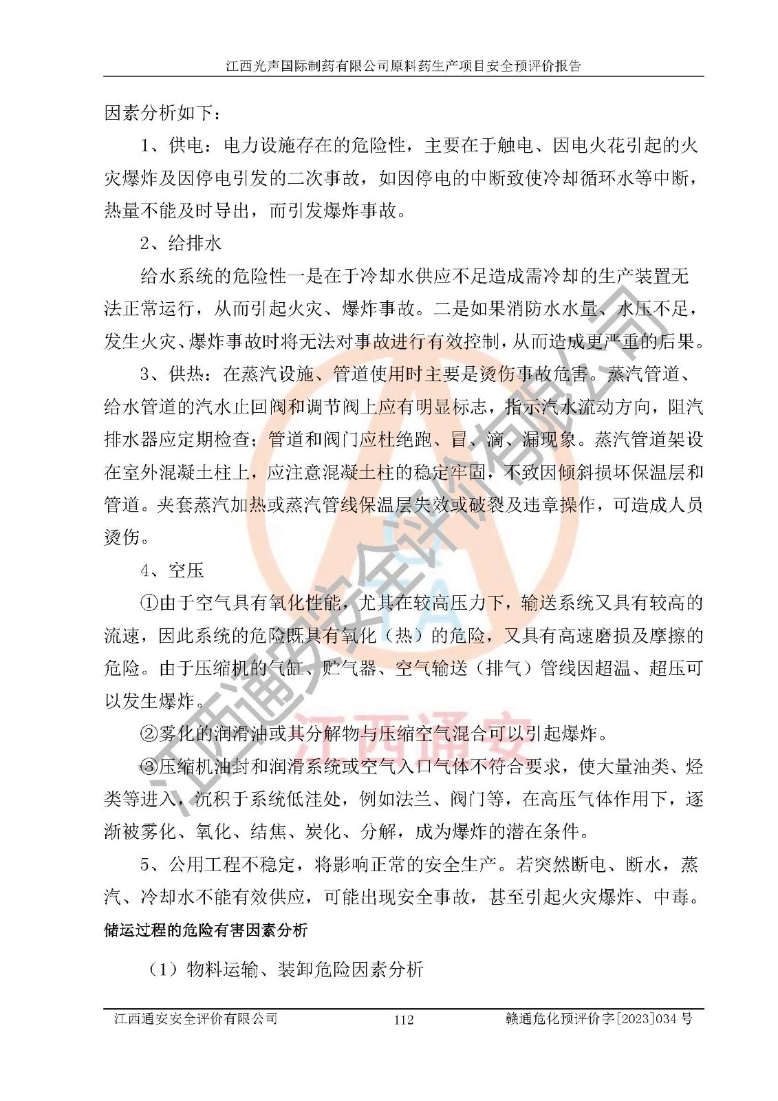 通過對江西光聲**制藥有限公司原料藥生產(chǎn)項目的危險、有害因素分析及定性、定量分析,結果為: 1、該建設項目中所涉及到的危險物質包括甲醇、乙醇、乙酸乙酯、**、三乙胺等易燃液體,在裝置運行和物料儲運過程中存在著易燃液體泄漏引發(fā)的火災爆炸危險;溴化氫屬于有毒氣體,二氯甲烷屬于毒害品,人員意外接觸后存在中毒窒息危險。另外,使用的鹽酸、溴化氫、氫氧化鈉、三乙胺等原料具有腐蝕性,人體意外接觸后易引發(fā)化學灼傷;同時該項目使用的反應釜、離心機、輸料泵等設備如操作不慎還會帶來機械傷害。因此,該項目在建成后的運行過程中存在火災與爆炸、中毒與窒息、觸電、機械傷害、高處墜落、物體打擊、**傷害、起重傷害、灼燙、淹溺、其他傷害等危險因素和化學因素、物理因素等有害因素。 2、重點防范的重大危險、有害因素:通過對該項目存在的危險、有害因素進行分析辨識,在生產(chǎn)過程中重點防范的重大危險、有害因素主要為火災與爆炸、中毒與窒息。 3、預先危險性分析法評價結果:該裝置運行過程中火災、爆炸的危險性等級為Ⅳ級,電氣火災、觸電、中毒窒息、灼燙的危險性為Ⅲ級,機械傷害、高處墜落、**傷害、起重傷害、淹溺、噪聲危害的危險性等級為Ⅱ級。因此,火災、爆炸是該裝置需重點防范的危險有害因素。而引發(fā)火災、爆炸的主要因素是甲醇、乙醇、乙酸乙酯以及三乙胺等可燃物質的泄漏及各類點火源的存在。企業(yè)在今后生產(chǎn)過程中,應將可燃物質的泄漏以及消除點火源做為重點加以控制。 4、危險度評價法的分析結果:該項目5#車間、8#車間、9#車間、罐區(qū)單元的危險等級分別為II級,屬中度危險;4#倉庫單元危險等級分別為Ⅲ級,屬低度危險。 5、重大危險源辨識結果:依據(jù)《危險化學品重大危險源辨識》(GB18218-2018),該擬建項目不構成危險化學品重大危險源。 6、根據(jù)**安全監(jiān)管總局辦公廳《關于公布首批重點監(jiān)管的危險化工工藝目錄的通知》(安監(jiān)總管三[2009]116號)和《**安全監(jiān)管總局關于公布第二批重點監(jiān)管危險化工工藝目錄和調(diào)整首批重點監(jiān)管危險化工工藝中部分典型工藝的通知》安監(jiān)總管三[2013]3號的規(guī)定,該擬建項目不涉及危險化工工藝。 7、特殊危險化學品辨識:該擬建項目涉及的甲醇、乙酸乙酯屬于重點監(jiān)管的危險化學品;擬建項目涉及的**、鹽酸屬于易制毒化學品,涉及的甲醇、乙醇屬于特別管控危險化學品,不涉及監(jiān)控化學品,不涉及易制爆化學品。 綜上所述:江西光聲**制藥有限公司原料藥生產(chǎn)項目符合**、省有關安全生產(chǎn)的法律法規(guī)、規(guī)章、標準、規(guī)范的要求,在以后的初步設計、施工圖設計和建設施工、安裝調(diào)試及生產(chǎn)運行中,如能嚴格執(zhí)行**有關安全生產(chǎn)法律、法規(guī)和有關標準、規(guī)范,認真采納本報告書中安全對策措施及建議,真正做到安全設施與主體工程同時設計、同時施工、同時投入生產(chǎn)和使用的“三同時”,工程的危險、有害因素可得到**控制,風險在可接受范圍內(nèi),具有**的本質安全水平;本建設項目從安全方面分析可行。 |