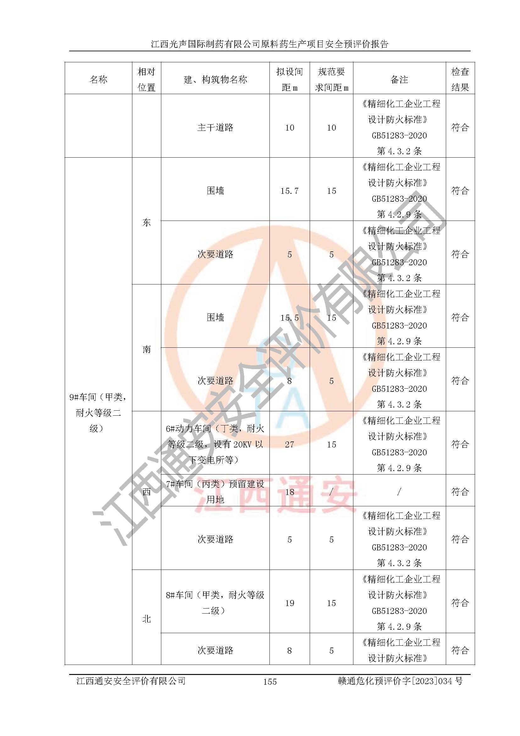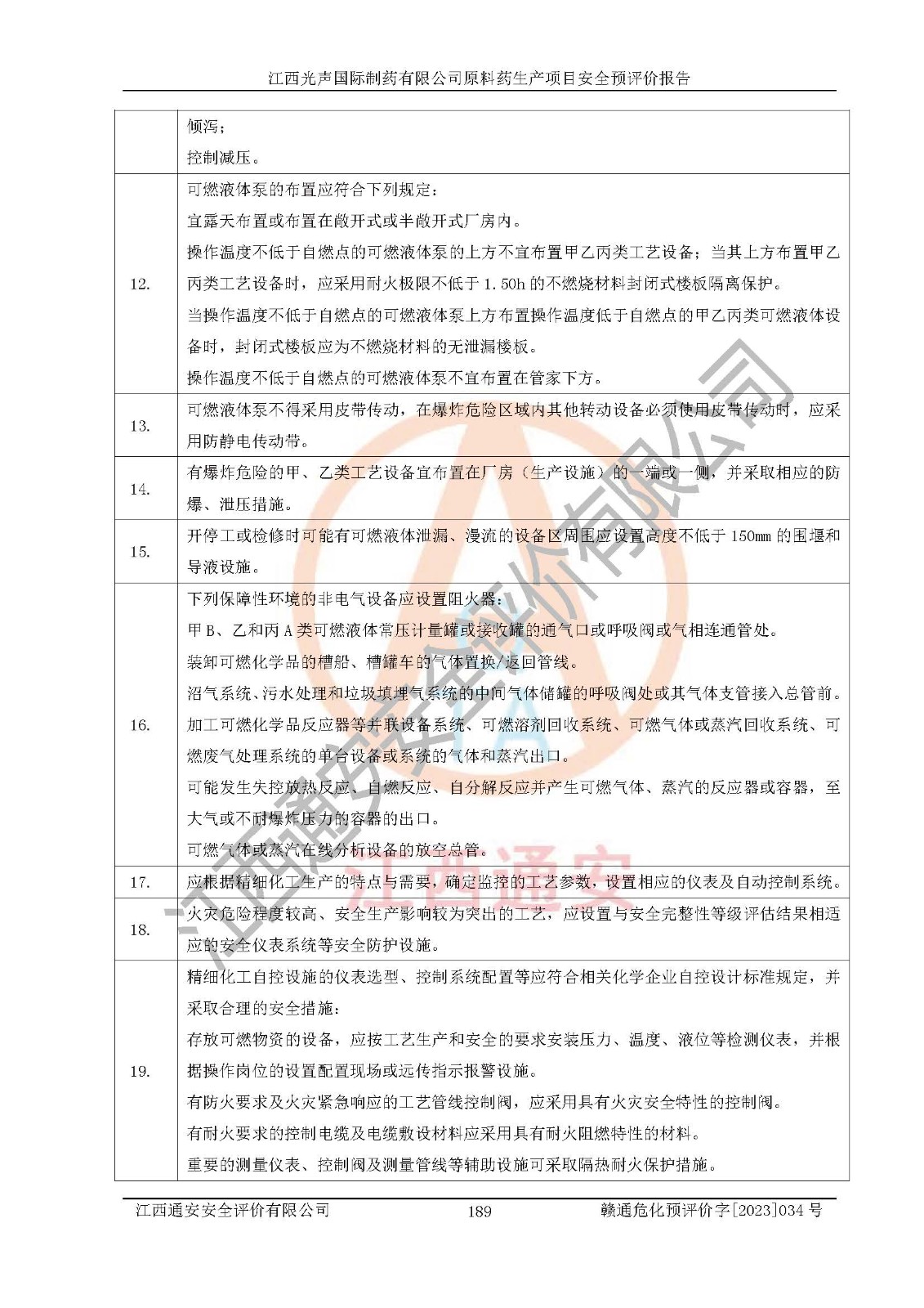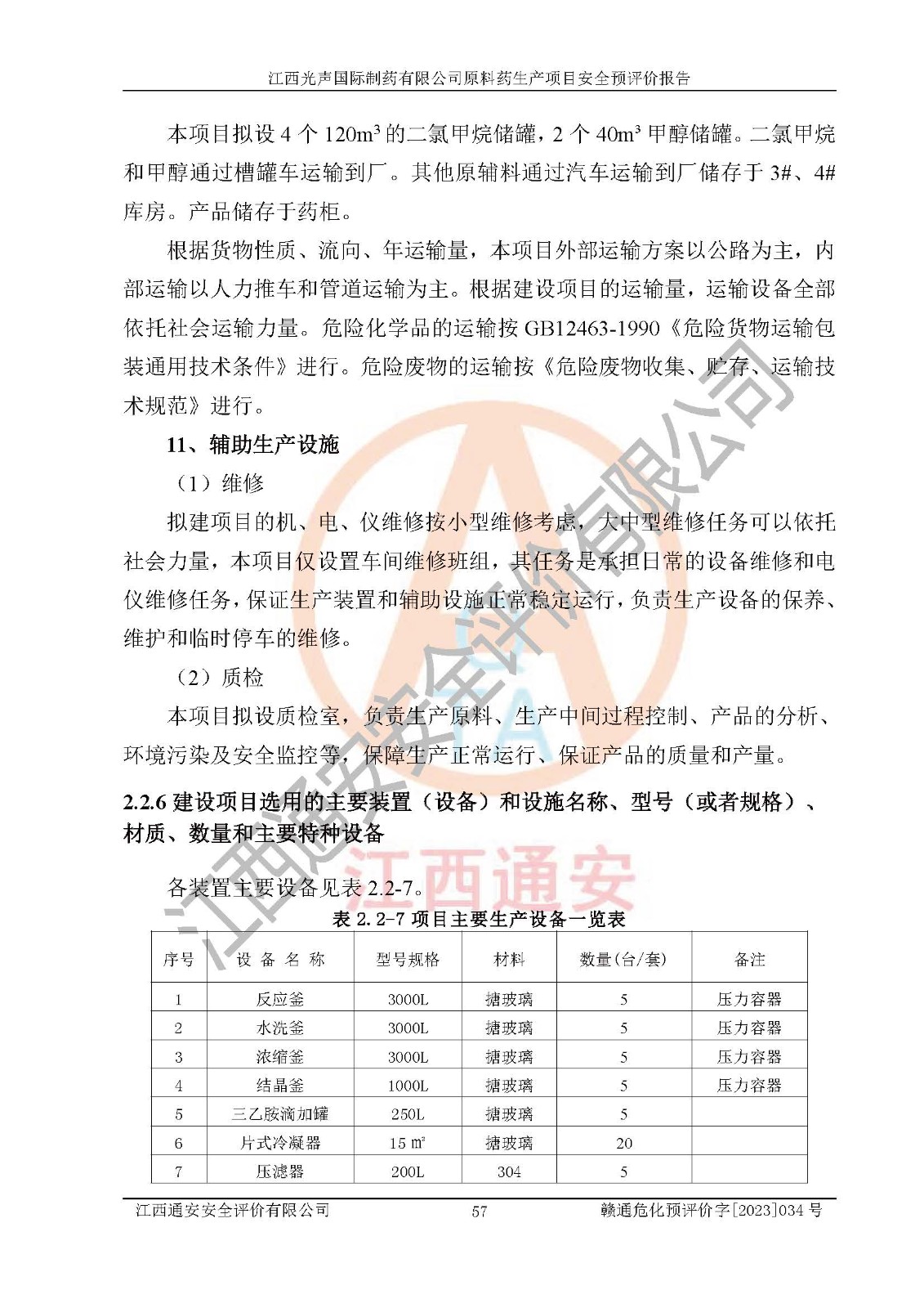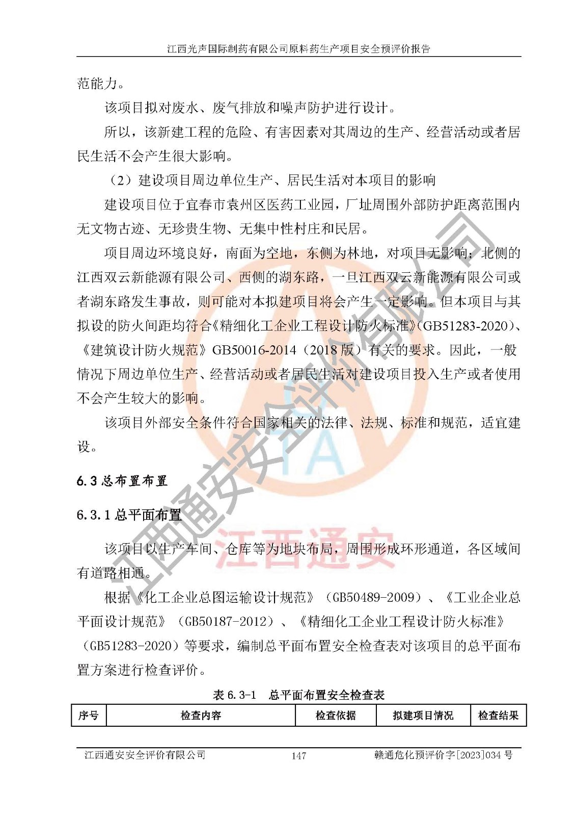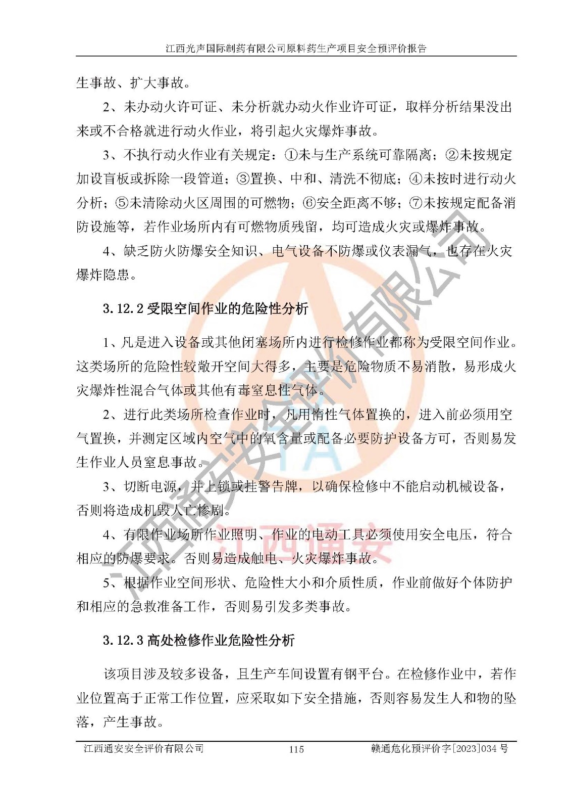 通過對江西光聲**制藥有限公司原料藥生產(chǎn)項目的危險、有害因素分析及定性、定量分析,結果為: 1、該建設項目中所涉及到的危險物質包括甲醇、乙醇、乙酸乙酯、**、三乙胺等易燃液體,在裝置運行和物料儲運過程中存在著易燃液體泄漏引發(fā)的火災爆炸危險;溴化氫屬于有毒氣體,二氯甲烷屬于毒害品,人員意外接觸后存在中毒窒息危險。另外,使用的鹽酸、溴化氫、氫氧化鈉、三乙胺等原料具有腐蝕性,人體意外接觸后易引發(fā)化學灼傷;同時該項目使用的反應釜、離心機、輸料泵等設備如操作不慎還會帶來機械傷害。因此,該項目在建成后的運行過程中存在火災與爆炸、中毒與窒息、觸電、機械傷害、高處墜落、物體打擊、**傷害、起重傷害、灼燙、淹溺、其他傷害等危險因素和化學因素、物理因素等有害因素。 2、重點防范的重大危險、有害因素:通過對該項目存在的危險、有害因素進行分析辨識,在生產(chǎn)過程中重點防范的重大危險、有害因素主要為火災與爆炸、中毒與窒息。 3、預先危險性分析法評價結果:該裝置運行過程中火災、爆炸的危險性等級為Ⅳ級,電氣火災、觸電、中毒窒息、灼燙的危險性為Ⅲ級,機械傷害、高處墜落、**傷害、起重傷害、淹溺、噪聲危害的危險性等級為Ⅱ級。因此,火災、爆炸是該裝置需重點防范的危險有害因素。而引發(fā)火災、爆炸的主要因素是甲醇、乙醇、乙酸乙酯以及三乙胺等可燃物質的泄漏及各類點火源的存在。企業(yè)在今后生產(chǎn)過程中,應將可燃物質的泄漏以及消除點火源做為重點加以控制。 4、危險度評價法的分析結果:該項目5#車間、8#車間、9#車間、罐區(qū)單元的危險等級分別為II級,屬中度危險;4#倉庫單元危險等級分別為Ⅲ級,屬低度危險。 5、重大危險源辨識結果:依據(jù)《危險化學品重大危險源辨識》(GB18218-2018),該擬建項目不構成危險化學品重大危險源。 6、根據(jù)**安全監(jiān)管總局辦公廳《關于公布首批重點監(jiān)管的危險化工工藝目錄的通知》(安監(jiān)總管三[2009]116號)和《**安全監(jiān)管總局關于公布第二批重點監(jiān)管危險化工工藝目錄和調(diào)整首批重點監(jiān)管危險化工工藝中部分典型工藝的通知》安監(jiān)總管三[2013]3號的規(guī)定,該擬建項目不涉及危險化工工藝。 7、特殊危險化學品辨識:該擬建項目涉及的甲醇、乙酸乙酯屬于重點監(jiān)管的危險化學品;擬建項目涉及的**、鹽酸屬于易制毒化學品,涉及的甲醇、乙醇屬于特別管控危險化學品,不涉及監(jiān)控化學品,不涉及易制爆化學品。 綜上所述:江西光聲**制藥有限公司原料藥生產(chǎn)項目符合**、省有關安全生產(chǎn)的法律法規(guī)、規(guī)章、標準、規(guī)范的要求,在以后的初步設計、施工圖設計和建設施工、安裝調(diào)試及生產(chǎn)運行中,如能嚴格執(zhí)行**有關安全生產(chǎn)法律、法規(guī)和有關標準、規(guī)范,認真采納本報告書中安全對策措施及建議,真正做到安全設施與主體工程同時設計、同時施工、同時投入生產(chǎn)和使用的“三同時”,工程的危險、有害因素可得到**控制,風險在可接受范圍內(nèi),具有**的本質安全水平;本建設項目從安全方面分析可行。 |