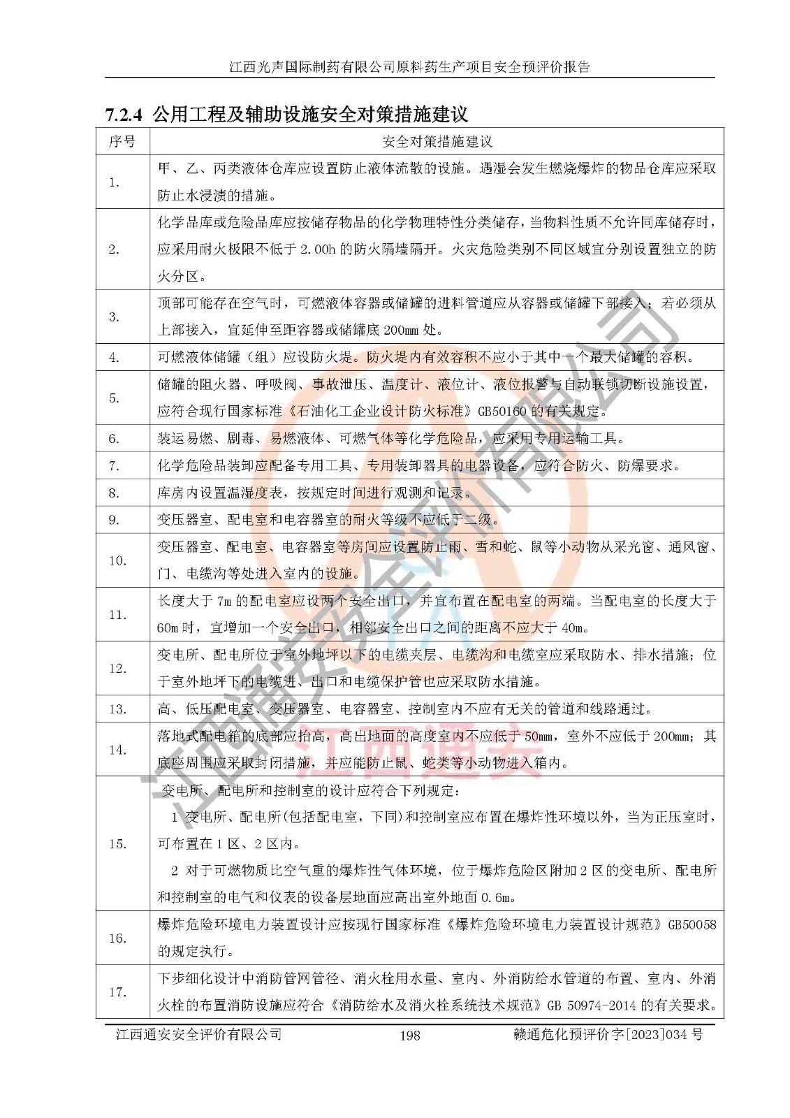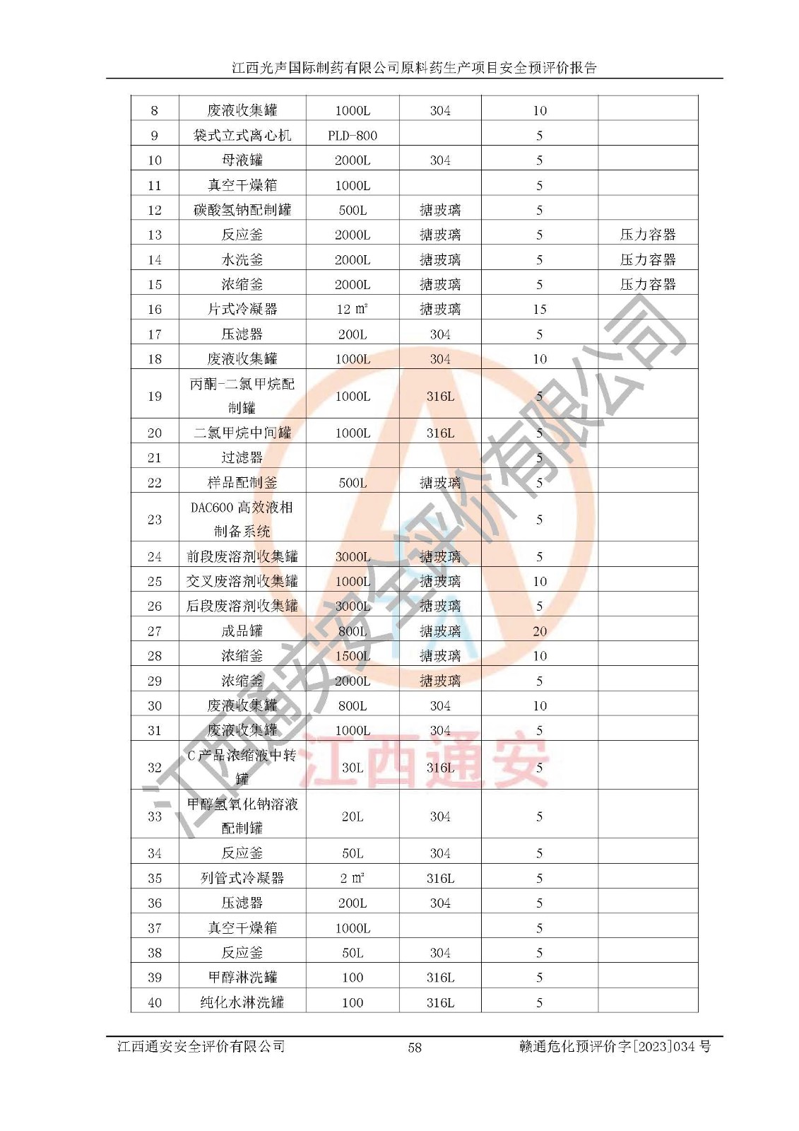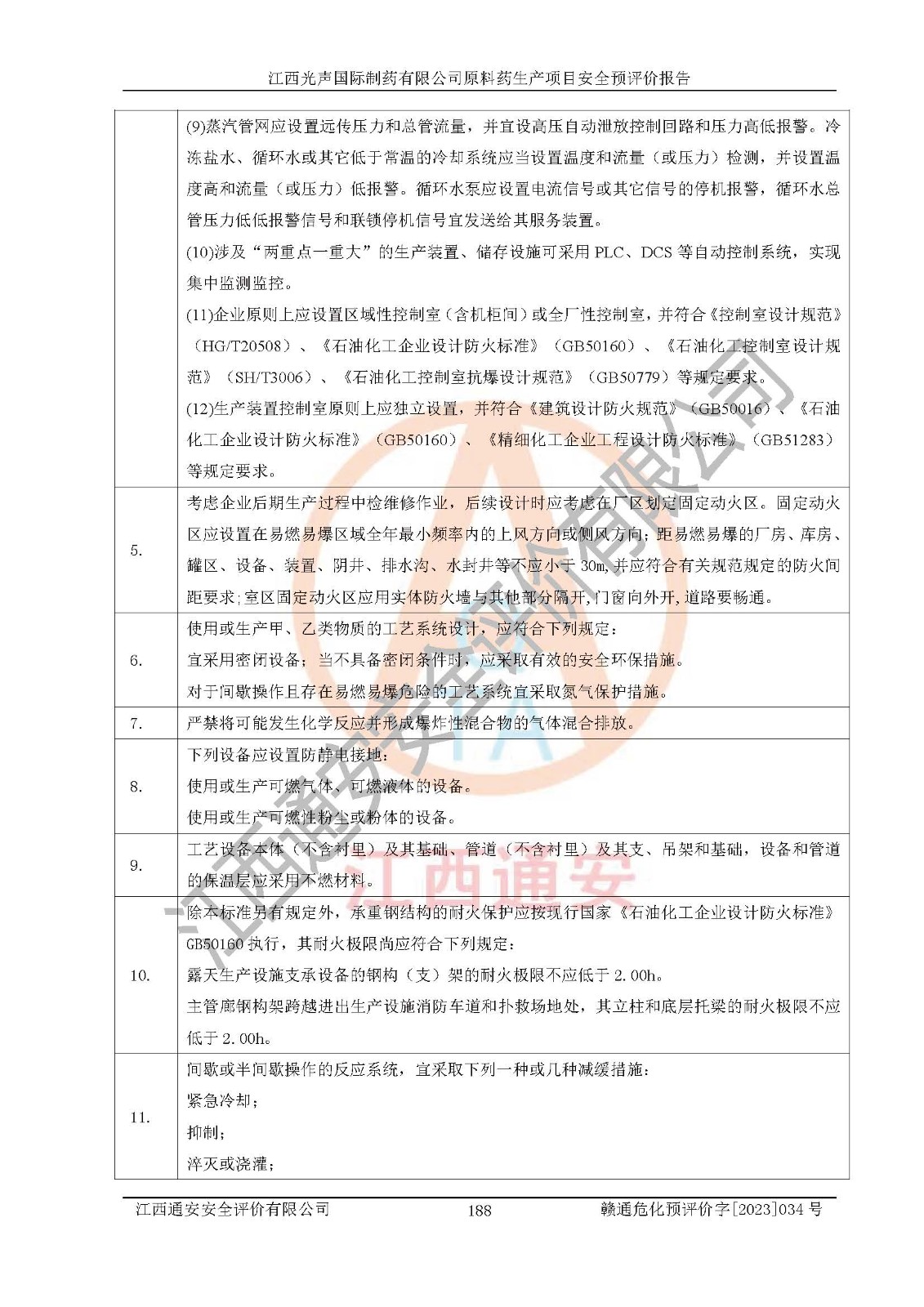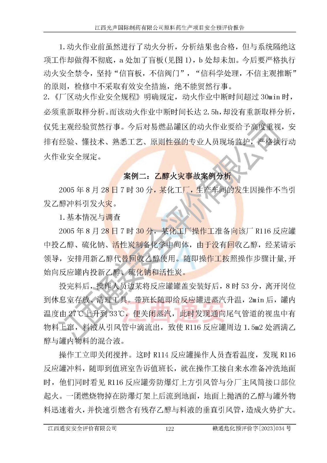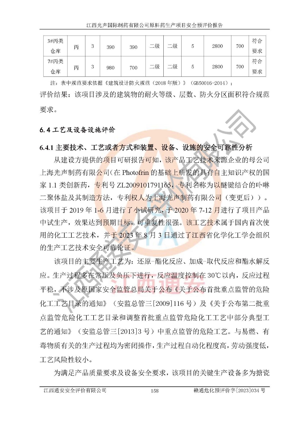 通過對江西光聲**制藥有限公司原料藥生產(chǎn)項目的危險、有害因素分析及定性、定量分析,結果為: 1、該建設項目中所涉及到的危險物質包括甲醇、乙醇、乙酸乙酯、**、三乙胺等易燃液體,在裝置運行和物料儲運過程中存在著易燃液體泄漏引發(fā)的火災爆炸危險;溴化氫屬于有毒氣體,二氯甲烷屬于毒害品,人員意外接觸后存在中毒窒息危險。另外,使用的鹽酸、溴化氫、氫氧化鈉、三乙胺等原料具有腐蝕性,人體意外接觸后易引發(fā)化學灼傷;同時該項目使用的反應釜、離心機、輸料泵等設備如操作不慎還會帶來機械傷害。因此,該項目在建成后的運行過程中存在火災與爆炸、中毒與窒息、觸電、機械傷害、高處墜落、物體打擊、**傷害、起重傷害、灼燙、淹溺、其他傷害等危險因素和化學因素、物理因素等有害因素。 2、重點防范的重大危險、有害因素:通過對該項目存在的危險、有害因素進行分析辨識,在生產(chǎn)過程中重點防范的重大危險、有害因素主要為火災與爆炸、中毒與窒息。 3、預先危險性分析法評價結果:該裝置運行過程中火災、爆炸的危險性等級為Ⅳ級,電氣火災、觸電、中毒窒息、灼燙的危險性為Ⅲ級,機械傷害、高處墜落、**傷害、起重傷害、淹溺、噪聲危害的危險性等級為Ⅱ級。因此,火災、爆炸是該裝置需重點防范的危險有害因素。而引發(fā)火災、爆炸的主要因素是甲醇、乙醇、乙酸乙酯以及三乙胺等可燃物質的泄漏及各類點火源的存在。企業(yè)在今后生產(chǎn)過程中,應將可燃物質的泄漏以及消除點火源做為重點加以控制。 4、危險度評價法的分析結果:該項目5#車間、8#車間、9#車間、罐區(qū)單元的危險等級分別為II級,屬中度危險;4#倉庫單元危險等級分別為Ⅲ級,屬低度危險。 5、重大危險源辨識結果:依據(jù)《危險化學品重大危險源辨識》(GB18218-2018),該擬建項目不構成危險化學品重大危險源。 6、根據(jù)**安全監(jiān)管總局辦公廳《關于公布首批重點監(jiān)管的危險化工工藝目錄的通知》(安監(jiān)總管三[2009]116號)和《**安全監(jiān)管總局關于公布第二批重點監(jiān)管危險化工工藝目錄和調(diào)整首批重點監(jiān)管危險化工工藝中部分典型工藝的通知》安監(jiān)總管三[2013]3號的規(guī)定,該擬建項目不涉及危險化工工藝。 7、特殊危險化學品辨識:該擬建項目涉及的甲醇、乙酸乙酯屬于重點監(jiān)管的危險化學品;擬建項目涉及的**、鹽酸屬于易制毒化學品,涉及的甲醇、乙醇屬于特別管控危險化學品,不涉及監(jiān)控化學品,不涉及易制爆化學品。 綜上所述:江西光聲**制藥有限公司原料藥生產(chǎn)項目符合**、省有關安全生產(chǎn)的法律法規(guī)、規(guī)章、標準、規(guī)范的要求,在以后的初步設計、施工圖設計和建設施工、安裝調(diào)試及生產(chǎn)運行中,如能嚴格執(zhí)行**有關安全生產(chǎn)法律、法規(guī)和有關標準、規(guī)范,認真采納本報告書中安全對策措施及建議,真正做到安全設施與主體工程同時設計、同時施工、同時投入生產(chǎn)和使用的“三同時”,工程的危險、有害因素可得到**控制,風險在可接受范圍內(nèi),具有**的本質安全水平;本建設項目從安全方面分析可行。 |