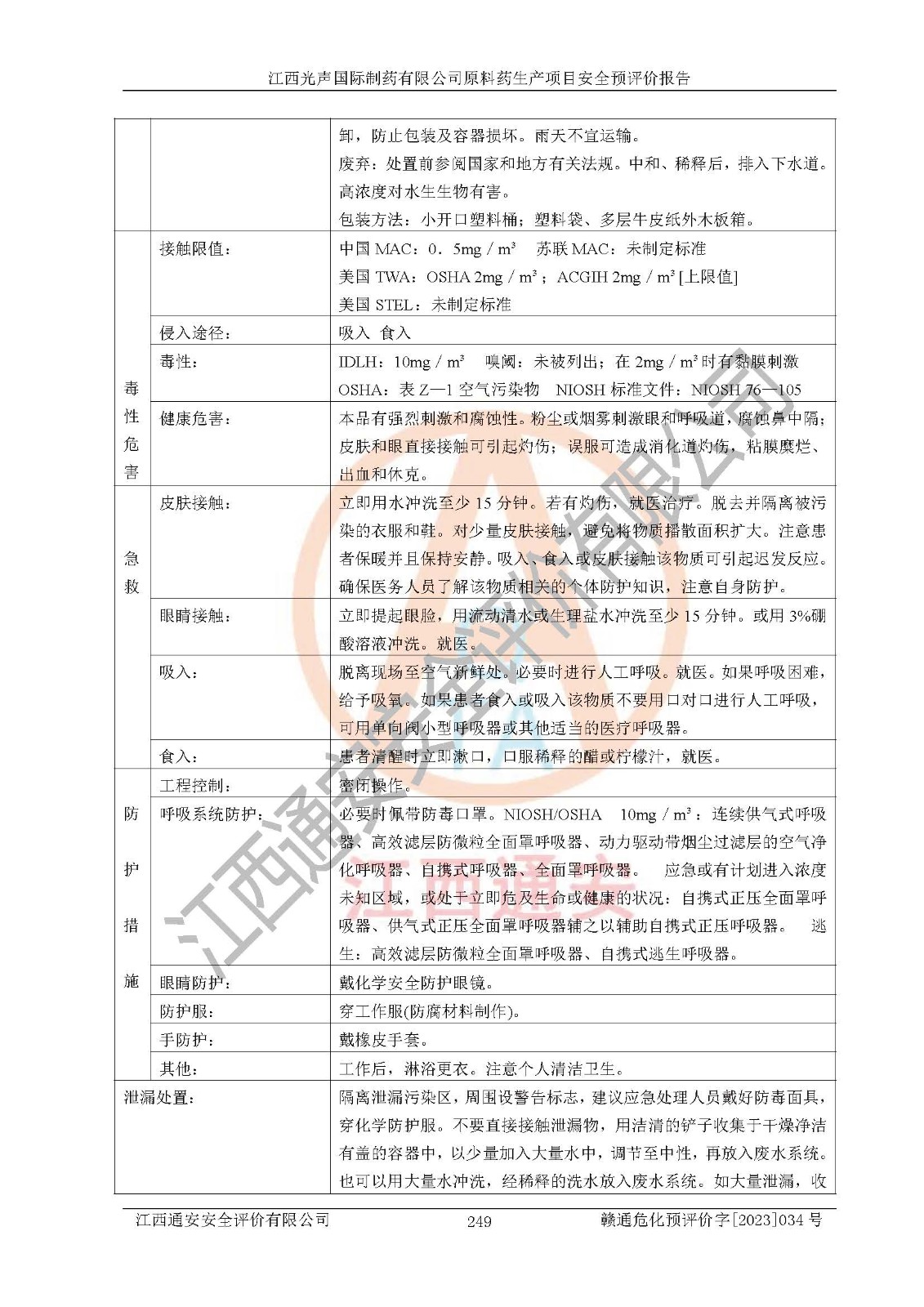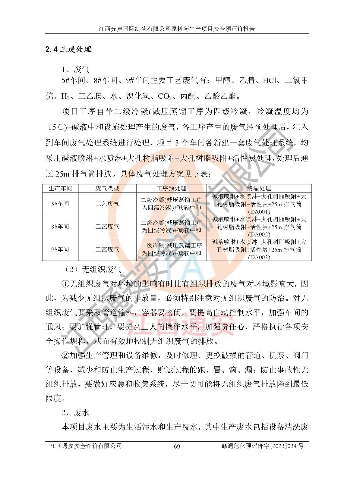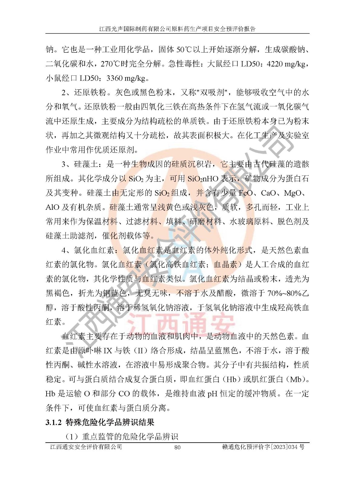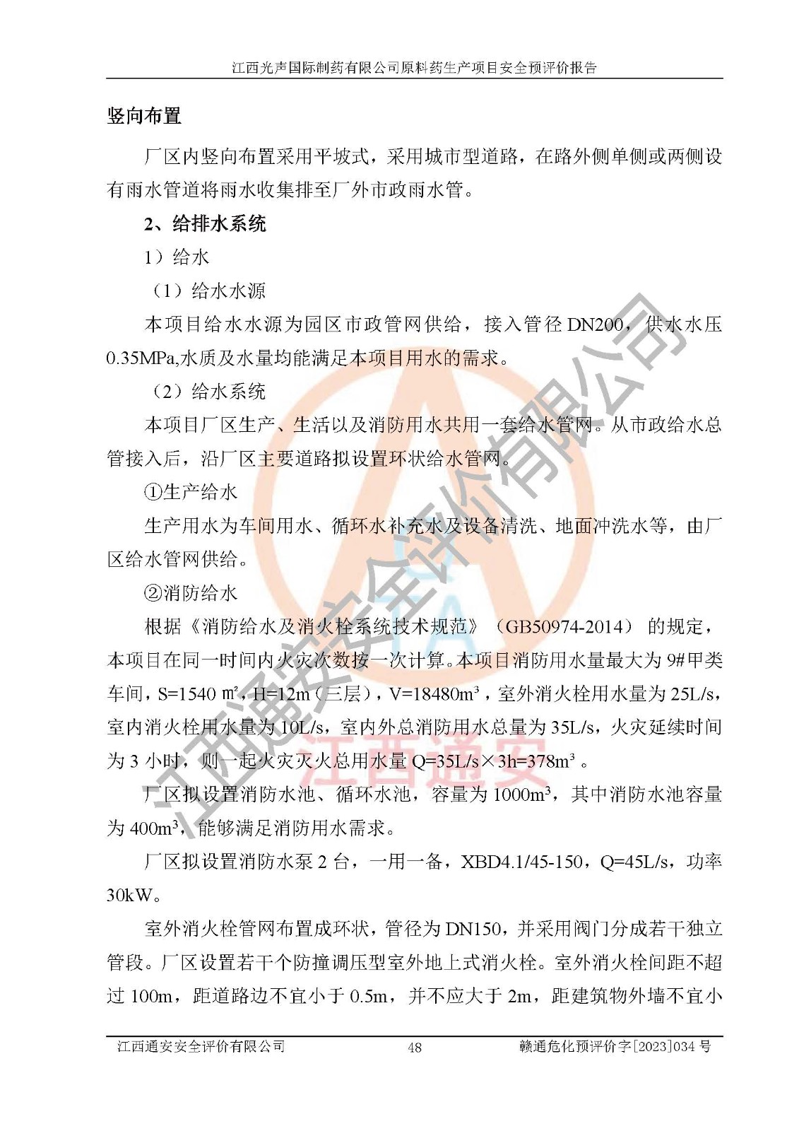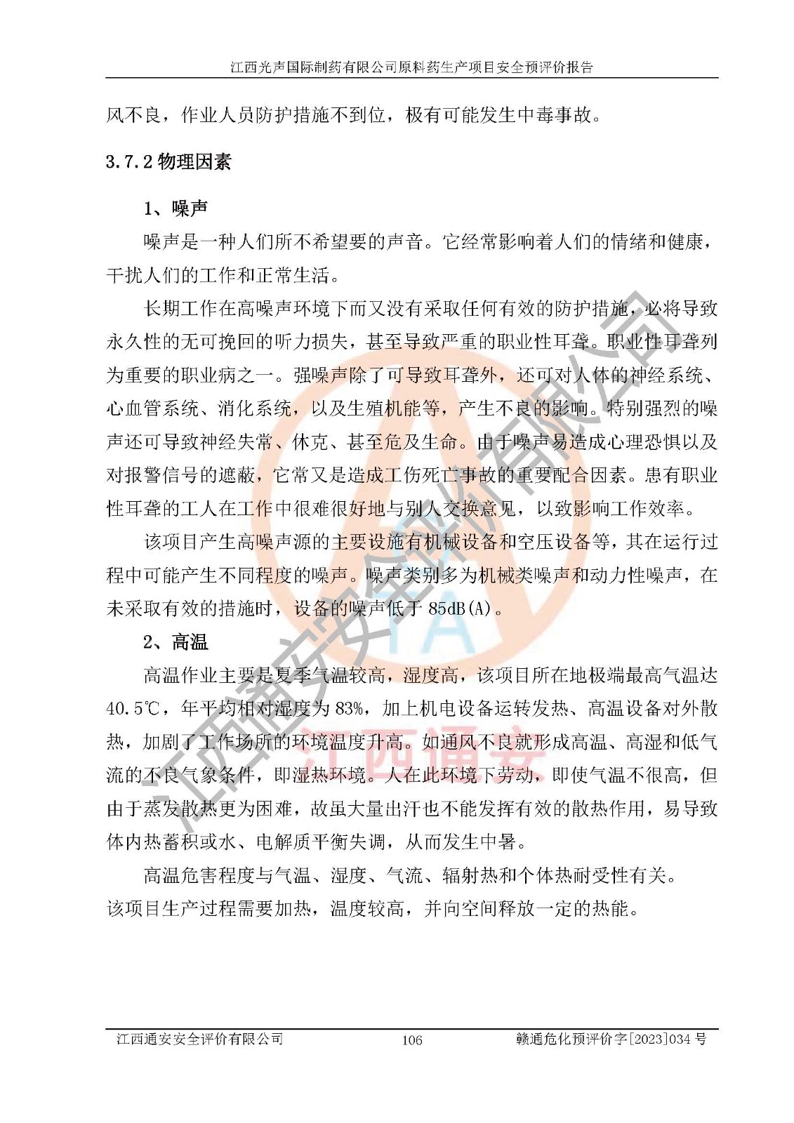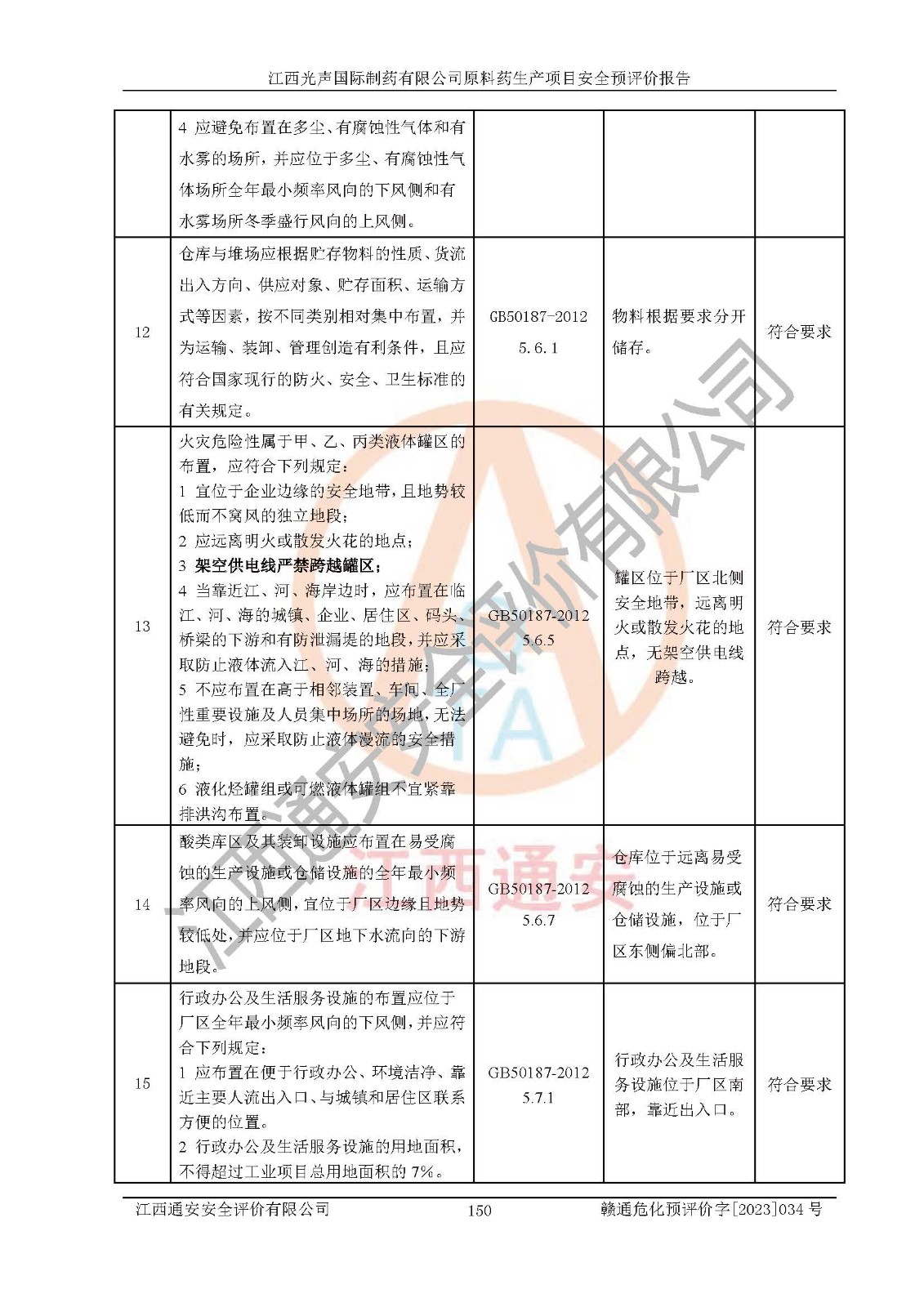 通過對江西光聲**制藥有限公司原料藥生產(chǎn)項目的危險、有害因素分析及定性、定量分析,結果為: 1、該建設項目中所涉及到的危險物質包括甲醇、乙醇、乙酸乙酯、**、三乙胺等易燃液體,在裝置運行和物料儲運過程中存在著易燃液體泄漏引發(fā)的火災爆炸危險;溴化氫屬于有毒氣體,二氯甲烷屬于毒害品,人員意外接觸后存在中毒窒息危險。另外,使用的鹽酸、溴化氫、氫氧化鈉、三乙胺等原料具有腐蝕性,人體意外接觸后易引發(fā)化學灼傷;同時該項目使用的反應釜、離心機、輸料泵等設備如操作不慎還會帶來機械傷害。因此,該項目在建成后的運行過程中存在火災與爆炸、中毒與窒息、觸電、機械傷害、高處墜落、物體打擊、**傷害、起重傷害、灼燙、淹溺、其他傷害等危險因素和化學因素、物理因素等有害因素。 2、重點防范的重大危險、有害因素:通過對該項目存在的危險、有害因素進行分析辨識,在生產(chǎn)過程中重點防范的重大危險、有害因素主要為火災與爆炸、中毒與窒息。 3、預先危險性分析法評價結果:該裝置運行過程中火災、爆炸的危險性等級為Ⅳ級,電氣火災、觸電、中毒窒息、灼燙的危險性為Ⅲ級,機械傷害、高處墜落、**傷害、起重傷害、淹溺、噪聲危害的危險性等級為Ⅱ級。因此,火災、爆炸是該裝置需重點防范的危險有害因素。而引發(fā)火災、爆炸的主要因素是甲醇、乙醇、乙酸乙酯以及三乙胺等可燃物質的泄漏及各類點火源的存在。企業(yè)在今后生產(chǎn)過程中,應將可燃物質的泄漏以及消除點火源做為重點加以控制。 4、危險度評價法的分析結果:該項目5#車間、8#車間、9#車間、罐區(qū)單元的危險等級分別為II級,屬中度危險;4#倉庫單元危險等級分別為Ⅲ級,屬低度危險。 5、重大危險源辨識結果:依據(jù)《危險化學品重大危險源辨識》(GB18218-2018),該擬建項目不構成危險化學品重大危險源。 6、根據(jù)**安全監(jiān)管總局辦公廳《關于公布首批重點監(jiān)管的危險化工工藝目錄的通知》(安監(jiān)總管三[2009]116號)和《**安全監(jiān)管總局關于公布第二批重點監(jiān)管危險化工工藝目錄和調(diào)整首批重點監(jiān)管危險化工工藝中部分典型工藝的通知》安監(jiān)總管三[2013]3號的規(guī)定,該擬建項目不涉及危險化工工藝。 7、特殊危險化學品辨識:該擬建項目涉及的甲醇、乙酸乙酯屬于重點監(jiān)管的危險化學品;擬建項目涉及的**、鹽酸屬于易制毒化學品,涉及的甲醇、乙醇屬于特別管控危險化學品,不涉及監(jiān)控化學品,不涉及易制爆化學品。 綜上所述:江西光聲**制藥有限公司原料藥生產(chǎn)項目符合**、省有關安全生產(chǎn)的法律法規(guī)、規(guī)章、標準、規(guī)范的要求,在以后的初步設計、施工圖設計和建設施工、安裝調(diào)試及生產(chǎn)運行中,如能嚴格執(zhí)行**有關安全生產(chǎn)法律、法規(guī)和有關標準、規(guī)范,認真采納本報告書中安全對策措施及建議,真正做到安全設施與主體工程同時設計、同時施工、同時投入生產(chǎn)和使用的“三同時”,工程的危險、有害因素可得到**控制,風險在可接受范圍內(nèi),具有**的本質安全水平;本建設項目從安全方面分析可行。 |
