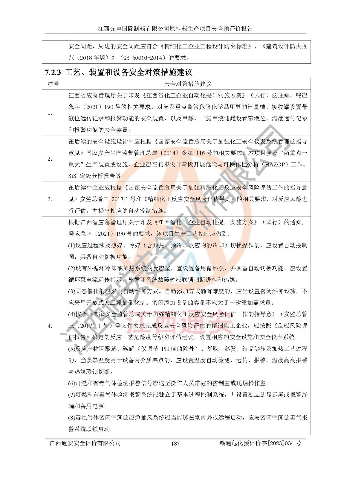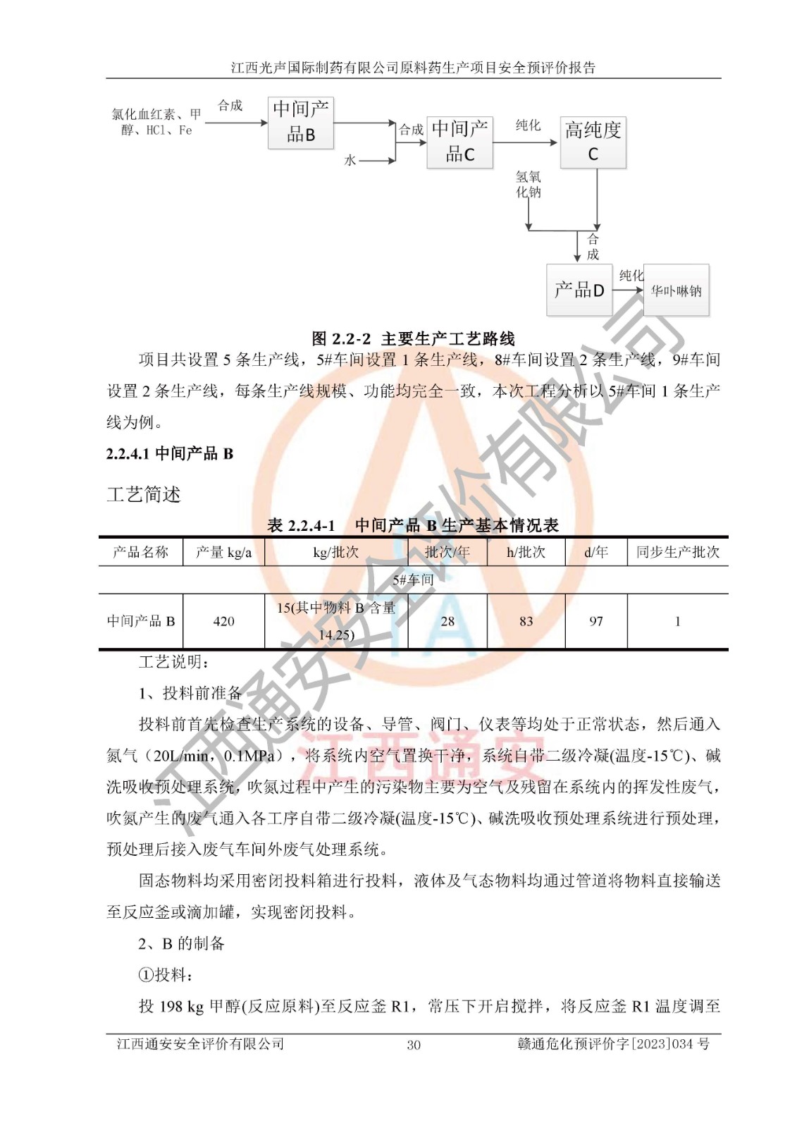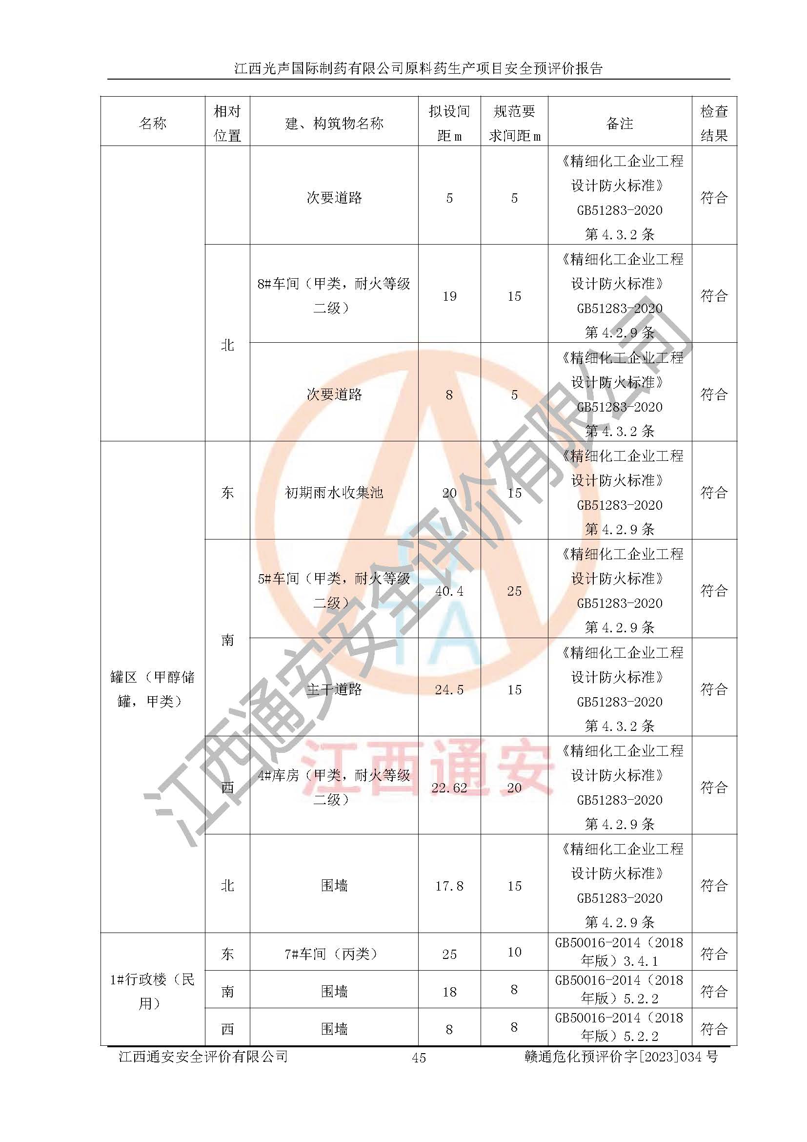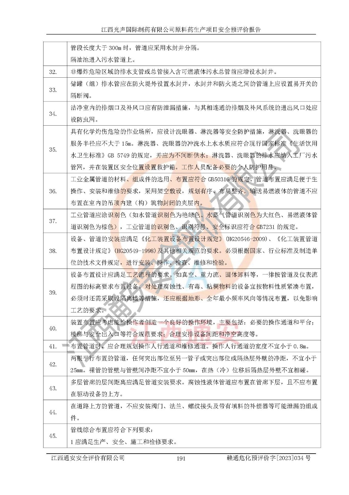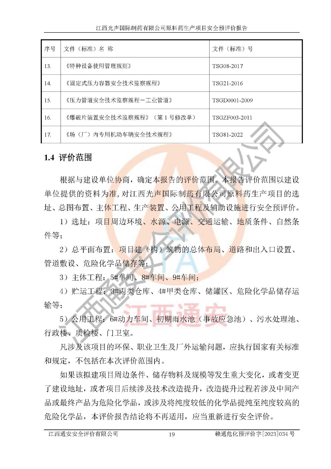 通過對江西光聲**制藥有限公司原料藥生產(chǎn)項目的危險、有害因素分析及定性、定量分析,結果為: 1、該建設項目中所涉及到的危險物質包括甲醇、乙醇、乙酸乙酯、**、三乙胺等易燃液體,在裝置運行和物料儲運過程中存在著易燃液體泄漏引發(fā)的火災爆炸危險;溴化氫屬于有毒氣體,二氯甲烷屬于毒害品,人員意外接觸后存在中毒窒息危險。另外,使用的鹽酸、溴化氫、氫氧化鈉、三乙胺等原料具有腐蝕性,人體意外接觸后易引發(fā)化學灼傷;同時該項目使用的反應釜、離心機、輸料泵等設備如操作不慎還會帶來機械傷害。因此,該項目在建成后的運行過程中存在火災與爆炸、中毒與窒息、觸電、機械傷害、高處墜落、物體打擊、**傷害、起重傷害、灼燙、淹溺、其他傷害等危險因素和化學因素、物理因素等有害因素。 2、重點防范的重大危險、有害因素:通過對該項目存在的危險、有害因素進行分析辨識,在生產(chǎn)過程中重點防范的重大危險、有害因素主要為火災與爆炸、中毒與窒息。 3、預先危險性分析法評價結果:該裝置運行過程中火災、爆炸的危險性等級為Ⅳ級,電氣火災、觸電、中毒窒息、灼燙的危險性為Ⅲ級,機械傷害、高處墜落、**傷害、起重傷害、淹溺、噪聲危害的危險性等級為Ⅱ級。因此,火災、爆炸是該裝置需重點防范的危險有害因素。而引發(fā)火災、爆炸的主要因素是甲醇、乙醇、乙酸乙酯以及三乙胺等可燃物質的泄漏及各類點火源的存在。企業(yè)在今后生產(chǎn)過程中,應將可燃物質的泄漏以及消除點火源做為重點加以控制。 4、危險度評價法的分析結果:該項目5#車間、8#車間、9#車間、罐區(qū)單元的危險等級分別為II級,屬中度危險;4#倉庫單元危險等級分別為Ⅲ級,屬低度危險。 5、重大危險源辨識結果:依據(jù)《危險化學品重大危險源辨識》(GB18218-2018),該擬建項目不構成危險化學品重大危險源。 6、根據(jù)**安全監(jiān)管總局辦公廳《關于公布首批重點監(jiān)管的危險化工工藝目錄的通知》(安監(jiān)總管三[2009]116號)和《**安全監(jiān)管總局關于公布第二批重點監(jiān)管危險化工工藝目錄和調(diào)整首批重點監(jiān)管危險化工工藝中部分典型工藝的通知》安監(jiān)總管三[2013]3號的規(guī)定,該擬建項目不涉及危險化工工藝。 7、特殊危險化學品辨識:該擬建項目涉及的甲醇、乙酸乙酯屬于重點監(jiān)管的危險化學品;擬建項目涉及的**、鹽酸屬于易制毒化學品,涉及的甲醇、乙醇屬于特別管控危險化學品,不涉及監(jiān)控化學品,不涉及易制爆化學品。 綜上所述:江西光聲**制藥有限公司原料藥生產(chǎn)項目符合**、省有關安全生產(chǎn)的法律法規(guī)、規(guī)章、標準、規(guī)范的要求,在以后的初步設計、施工圖設計和建設施工、安裝調(diào)試及生產(chǎn)運行中,如能嚴格執(zhí)行**有關安全生產(chǎn)法律、法規(guī)和有關標準、規(guī)范,認真采納本報告書中安全對策措施及建議,真正做到安全設施與主體工程同時設計、同時施工、同時投入生產(chǎn)和使用的“三同時”,工程的危險、有害因素可得到**控制,風險在可接受范圍內(nèi),具有**的本質安全水平;本建設項目從安全方面分析可行。 |