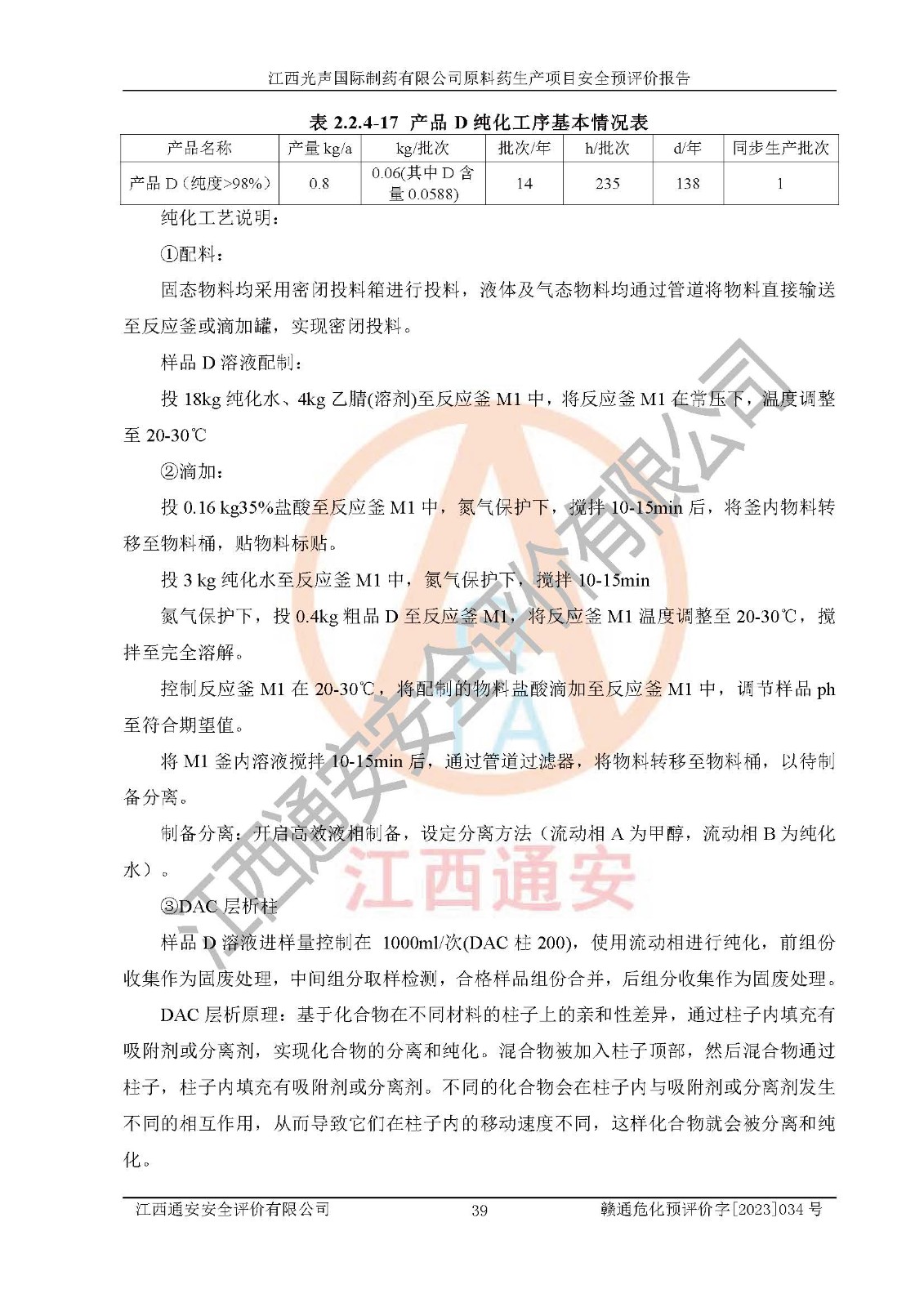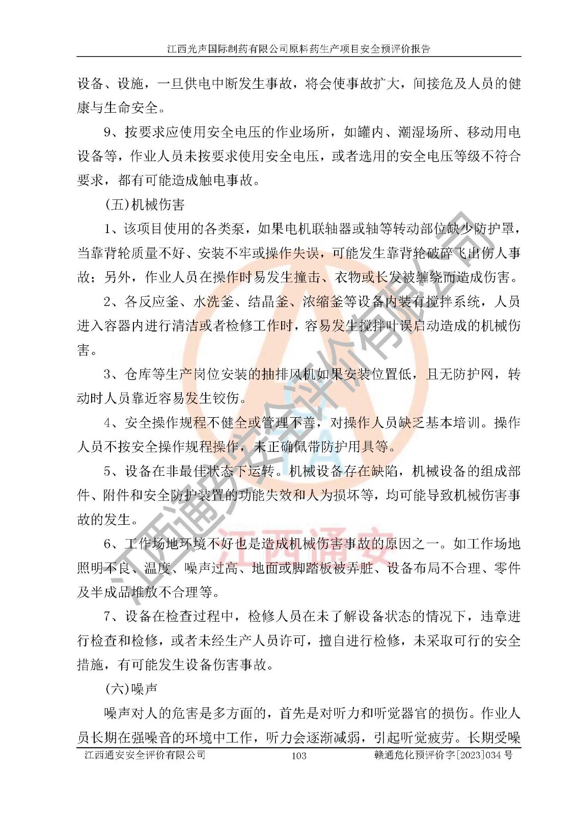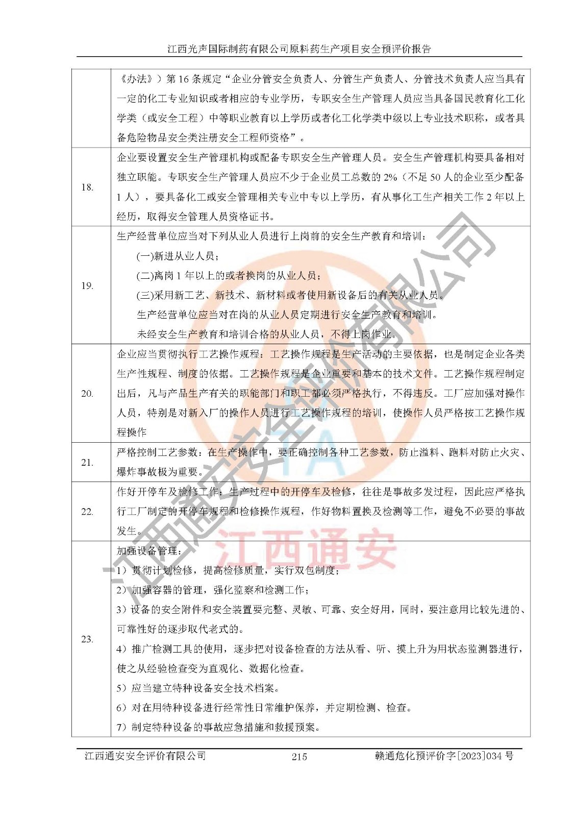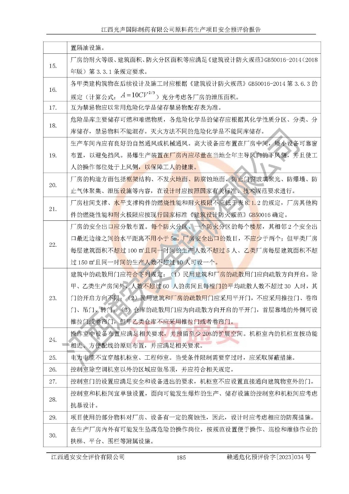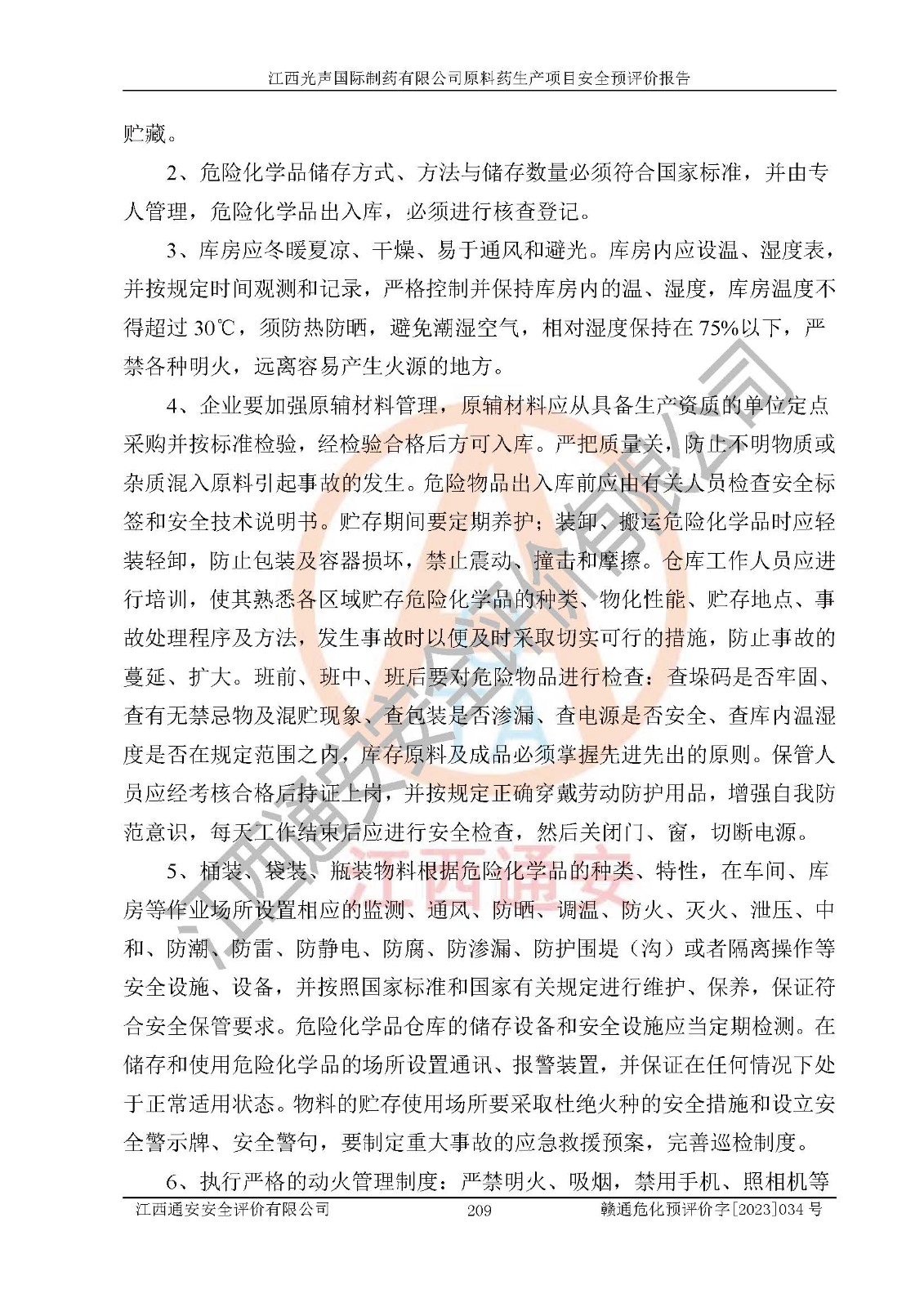通過對江西光聲**制藥有限公司原料藥生產(chǎn)項目的危險、有害因素分析及定性、定量分析,結果為: 1、該建設項目中所涉及到的危險物質包括甲醇、乙醇、乙酸乙酯、**、三乙胺等易燃液體,在裝置運行和物料儲運過程中存在著易燃液體泄漏引發(fā)的火災爆炸危險;溴化氫屬于有毒氣體,二氯甲烷屬于毒害品,人員意外接觸后存在中毒窒息危險。另外,使用的鹽酸、溴化氫、氫氧化鈉、三乙胺等原料具有腐蝕性,人體意外接觸后易引發(fā)化學灼傷;同時該項目使用的反應釜、離心機、輸料泵等設備如操作不慎還會帶來機械傷害。因此,該項目在建成后的運行過程中存在火災與爆炸、中毒與窒息、觸電、機械傷害、高處墜落、物體打擊、**傷害、起重傷害、灼燙、淹溺、其他傷害等危險因素和化學因素、物理因素等有害因素。 2、重點防范的重大危險、有害因素:通過對該項目存在的危險、有害因素進行分析辨識,在生產(chǎn)過程中重點防范的重大危險、有害因素主要為火災與爆炸、中毒與窒息。 3、預先危險性分析法評價結果:該裝置運行過程中火災、爆炸的危險性等級為Ⅳ級,電氣火災、觸電、中毒窒息、灼燙的危險性為Ⅲ級,機械傷害、高處墜落、**傷害、起重傷害、淹溺、噪聲危害的危險性等級為Ⅱ級。因此,火災、爆炸是該裝置需重點防范的危險有害因素。而引發(fā)火災、爆炸的主要因素是甲醇、乙醇、乙酸乙酯以及三乙胺等可燃物質的泄漏及各類點火源的存在。企業(yè)在今后生產(chǎn)過程中,應將可燃物質的泄漏以及消除點火源做為重點加以控制。 4、危險度評價法的分析結果:該項目5#車間、8#車間、9#車間、罐區(qū)單元的危險等級分別為II級,屬中度危險;4#倉庫單元危險等級分別為Ⅲ級,屬低度危險。 5、重大危險源辨識結果:依據(jù)《危險化學品重大危險源辨識》(GB18218-2018),該擬建項目不構成危險化學品重大危險源。 6、根據(jù)**安全監(jiān)管總局辦公廳《關于公布首批重點監(jiān)管的危險化工工藝目錄的通知》(安監(jiān)總管三[2009]116號)和《**安全監(jiān)管總局關于公布第二批重點監(jiān)管危險化工工藝目錄和調(diào)整首批重點監(jiān)管危險化工工藝中部分典型工藝的通知》安監(jiān)總管三[2013]3號的規(guī)定,該擬建項目不涉及危險化工工藝。 7、特殊危險化學品辨識:該擬建項目涉及的甲醇、乙酸乙酯屬于重點監(jiān)管的危險化學品;擬建項目涉及的**、鹽酸屬于易制毒化學品,涉及的甲醇、乙醇屬于特別管控危險化學品,不涉及監(jiān)控化學品,不涉及易制爆化學品。 綜上所述:江西光聲**制藥有限公司原料藥生產(chǎn)項目符合**、省有關安全生產(chǎn)的法律法規(guī)、規(guī)章、標準、規(guī)范的要求,在以后的初步設計、施工圖設計和建設施工、安裝調(diào)試及生產(chǎn)運行中,如能嚴格執(zhí)行**有關安全生產(chǎn)法律、法規(guī)和有關標準、規(guī)范,認真采納本報告書中安全對策措施及建議,真正做到安全設施與主體工程同時設計、同時施工、同時投入生產(chǎn)和使用的“三同時”,工程的危險、有害因素可得到**控制,風險在可接受范圍內(nèi),具有**的本質安全水平;本建設項目從安全方面分析可行。 |