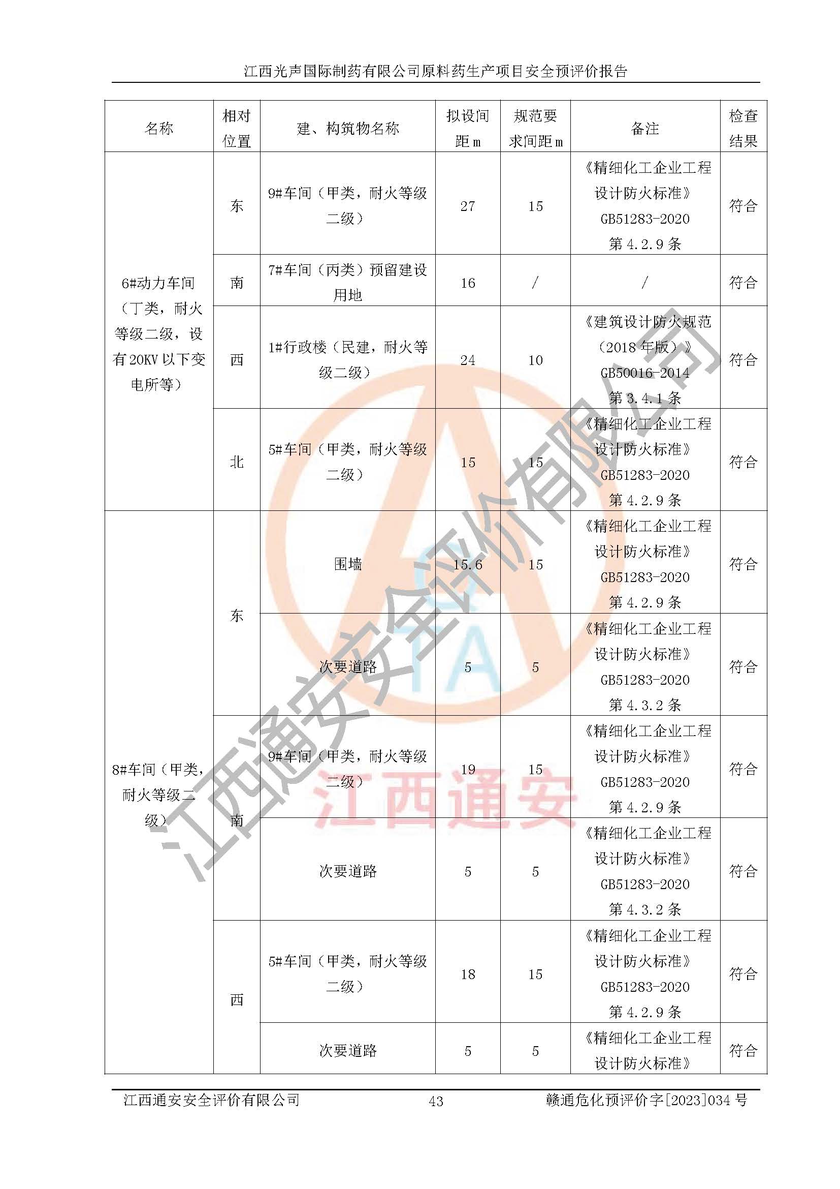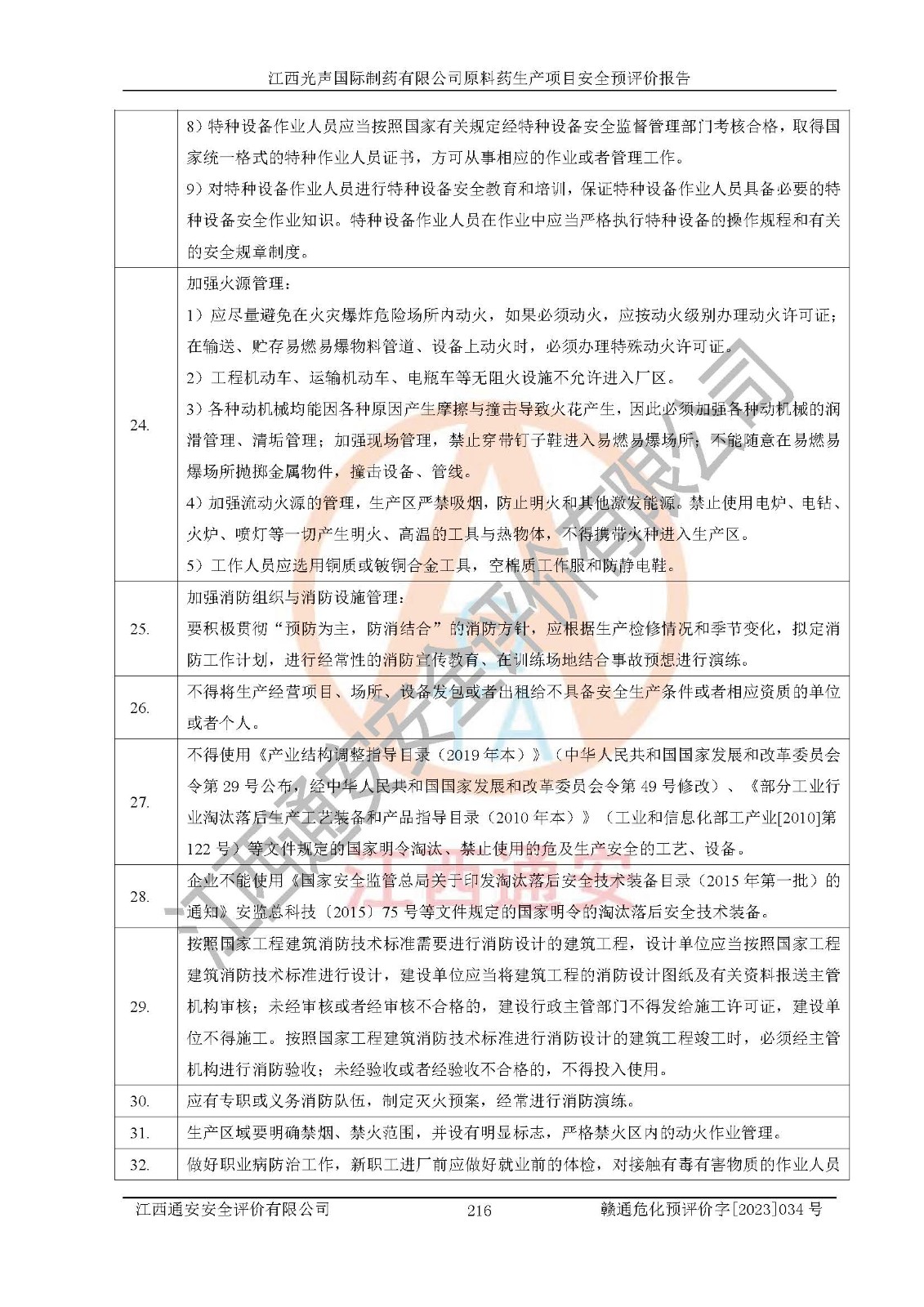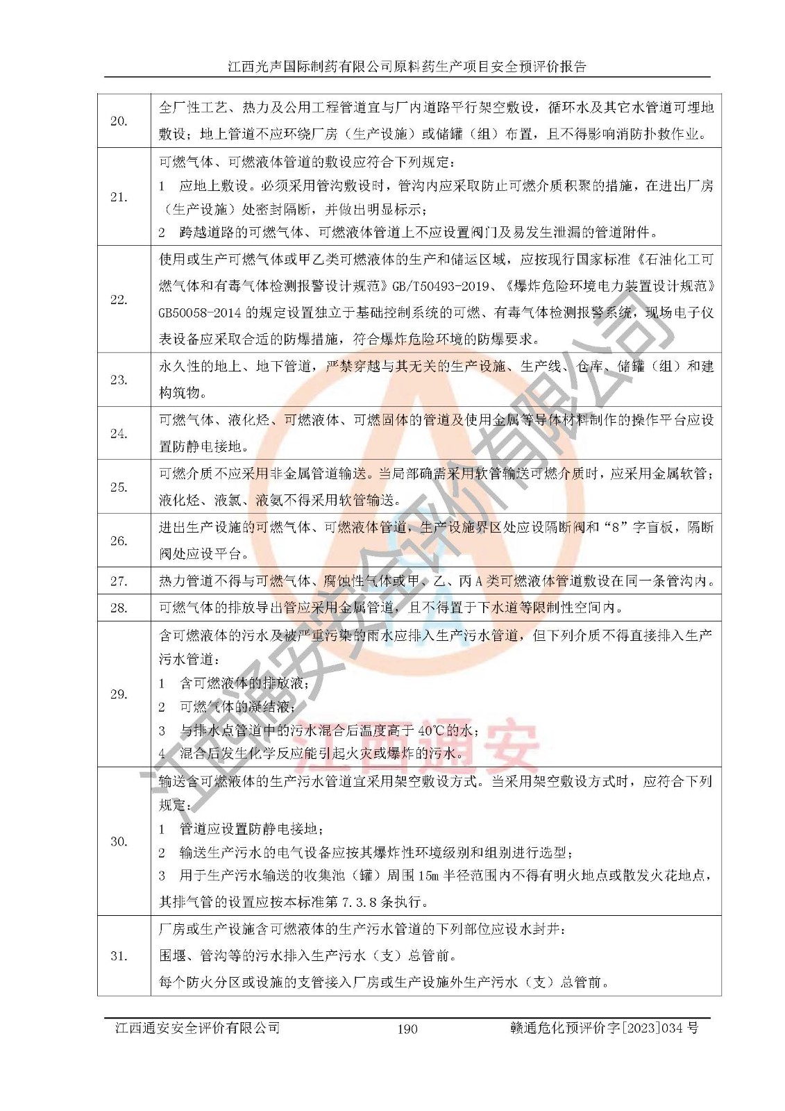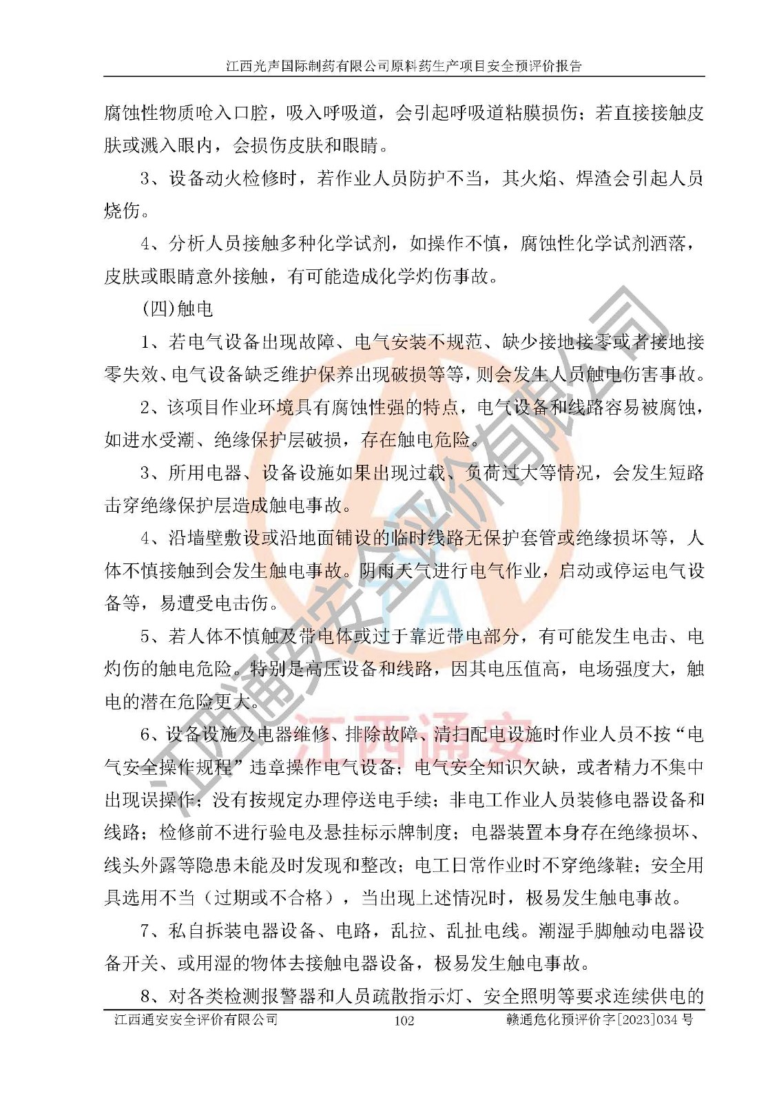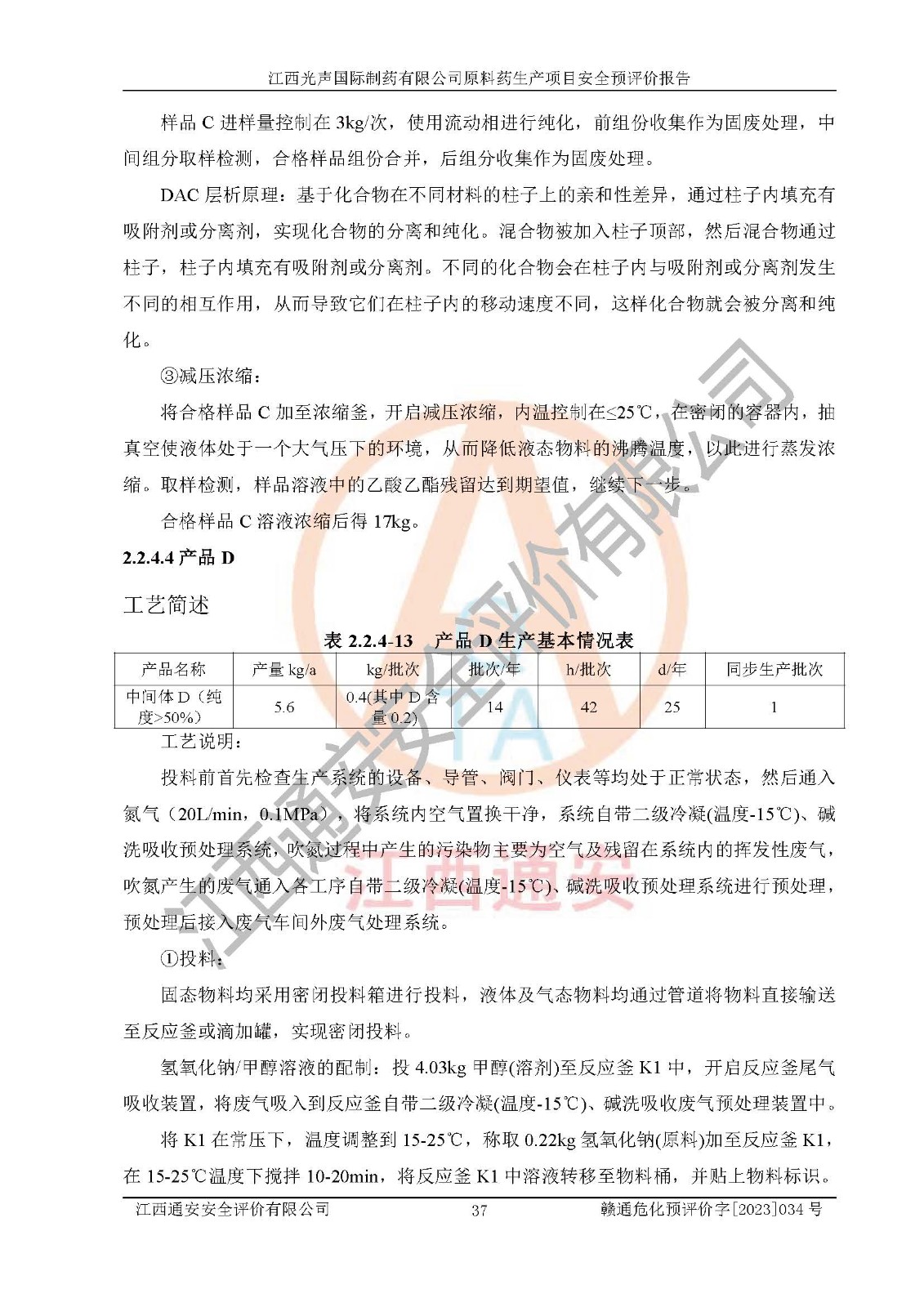 通過對江西光聲**制藥有限公司原料藥生產(chǎn)項目的危險、有害因素分析及定性、定量分析,結果為: 1、該建設項目中所涉及到的危險物質包括甲醇、乙醇、乙酸乙酯、**、三乙胺等易燃液體,在裝置運行和物料儲運過程中存在著易燃液體泄漏引發(fā)的火災爆炸危險;溴化氫屬于有毒氣體,二氯甲烷屬于毒害品,人員意外接觸后存在中毒窒息危險。另外,使用的鹽酸、溴化氫、氫氧化鈉、三乙胺等原料具有腐蝕性,人體意外接觸后易引發(fā)化學灼傷;同時該項目使用的反應釜、離心機、輸料泵等設備如操作不慎還會帶來機械傷害。因此,該項目在建成后的運行過程中存在火災與爆炸、中毒與窒息、觸電、機械傷害、高處墜落、物體打擊、**傷害、起重傷害、灼燙、淹溺、其他傷害等危險因素和化學因素、物理因素等有害因素。 2、重點防范的重大危險、有害因素:通過對該項目存在的危險、有害因素進行分析辨識,在生產(chǎn)過程中重點防范的重大危險、有害因素主要為火災與爆炸、中毒與窒息。 3、預先危險性分析法評價結果:該裝置運行過程中火災、爆炸的危險性等級為Ⅳ級,電氣火災、觸電、中毒窒息、灼燙的危險性為Ⅲ級,機械傷害、高處墜落、**傷害、起重傷害、淹溺、噪聲危害的危險性等級為Ⅱ級。因此,火災、爆炸是該裝置需重點防范的危險有害因素。而引發(fā)火災、爆炸的主要因素是甲醇、乙醇、乙酸乙酯以及三乙胺等可燃物質的泄漏及各類點火源的存在。企業(yè)在今后生產(chǎn)過程中,應將可燃物質的泄漏以及消除點火源做為重點加以控制。 4、危險度評價法的分析結果:該項目5#車間、8#車間、9#車間、罐區(qū)單元的危險等級分別為II級,屬中度危險;4#倉庫單元危險等級分別為Ⅲ級,屬低度危險。 5、重大危險源辨識結果:依據(jù)《危險化學品重大危險源辨識》(GB18218-2018),該擬建項目不構成危險化學品重大危險源。 6、根據(jù)**安全監(jiān)管總局辦公廳《關于公布首批重點監(jiān)管的危險化工工藝目錄的通知》(安監(jiān)總管三[2009]116號)和《**安全監(jiān)管總局關于公布第二批重點監(jiān)管危險化工工藝目錄和調(diào)整首批重點監(jiān)管危險化工工藝中部分典型工藝的通知》安監(jiān)總管三[2013]3號的規(guī)定,該擬建項目不涉及危險化工工藝。 7、特殊危險化學品辨識:該擬建項目涉及的甲醇、乙酸乙酯屬于重點監(jiān)管的危險化學品;擬建項目涉及的**、鹽酸屬于易制毒化學品,涉及的甲醇、乙醇屬于特別管控危險化學品,不涉及監(jiān)控化學品,不涉及易制爆化學品。 綜上所述:江西光聲**制藥有限公司原料藥生產(chǎn)項目符合**、省有關安全生產(chǎn)的法律法規(guī)、規(guī)章、標準、規(guī)范的要求,在以后的初步設計、施工圖設計和建設施工、安裝調(diào)試及生產(chǎn)運行中,如能嚴格執(zhí)行**有關安全生產(chǎn)法律、法規(guī)和有關標準、規(guī)范,認真采納本報告書中安全對策措施及建議,真正做到安全設施與主體工程同時設計、同時施工、同時投入生產(chǎn)和使用的“三同時”,工程的危險、有害因素可得到**控制,風險在可接受范圍內(nèi),具有**的本質安全水平;本建設項目從安全方面分析可行。 |