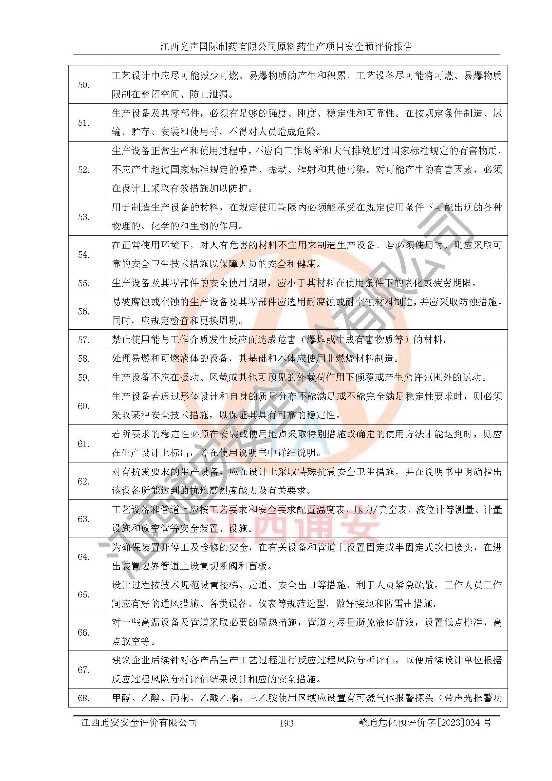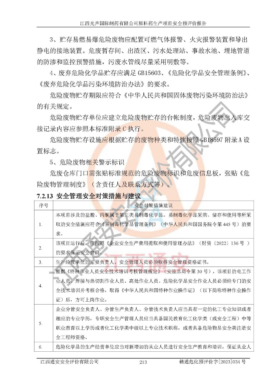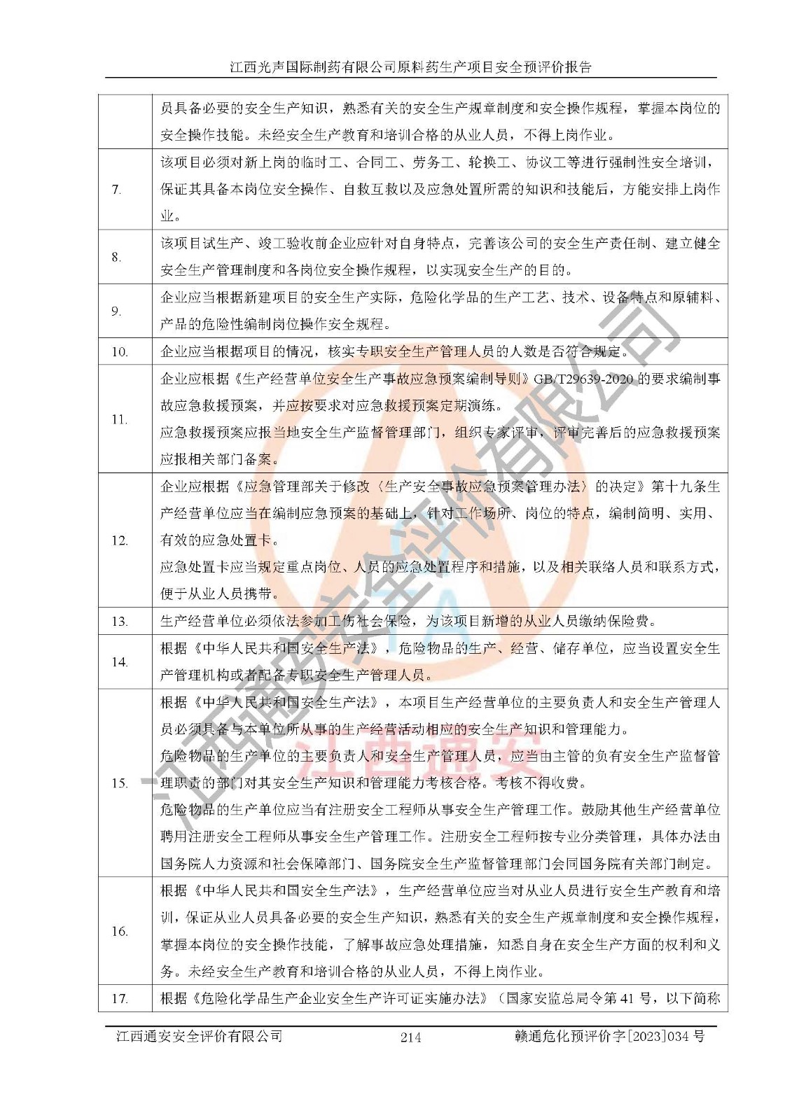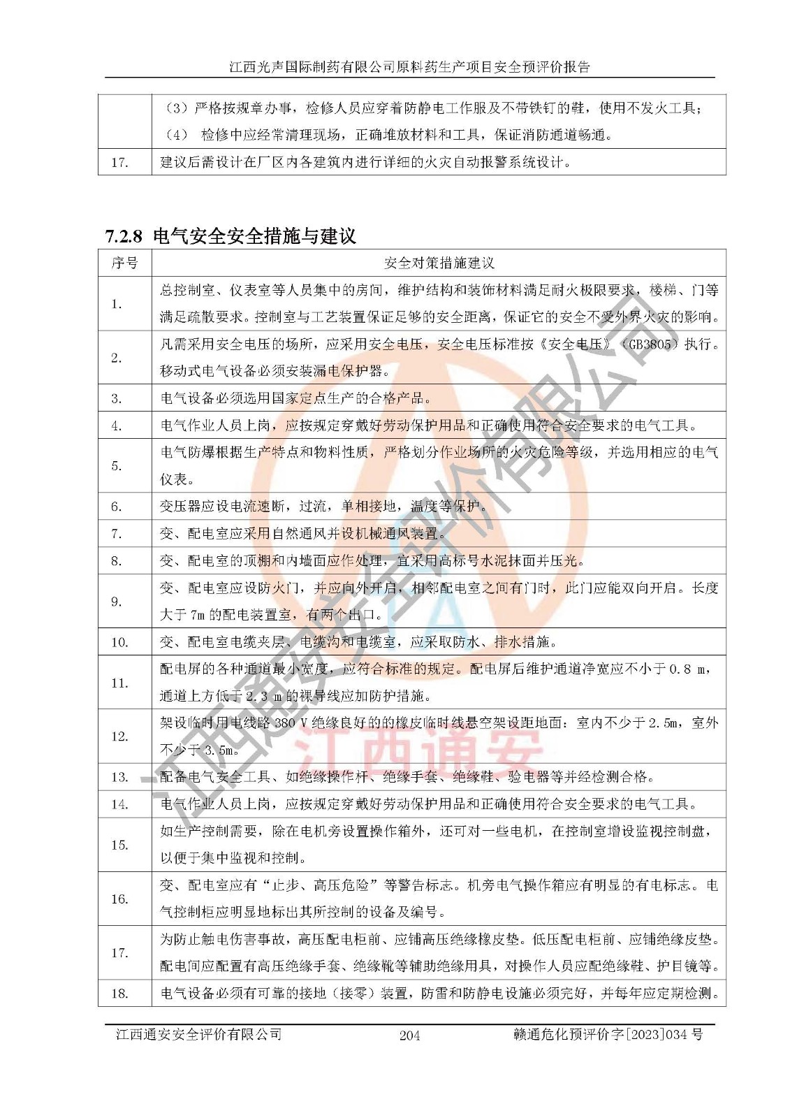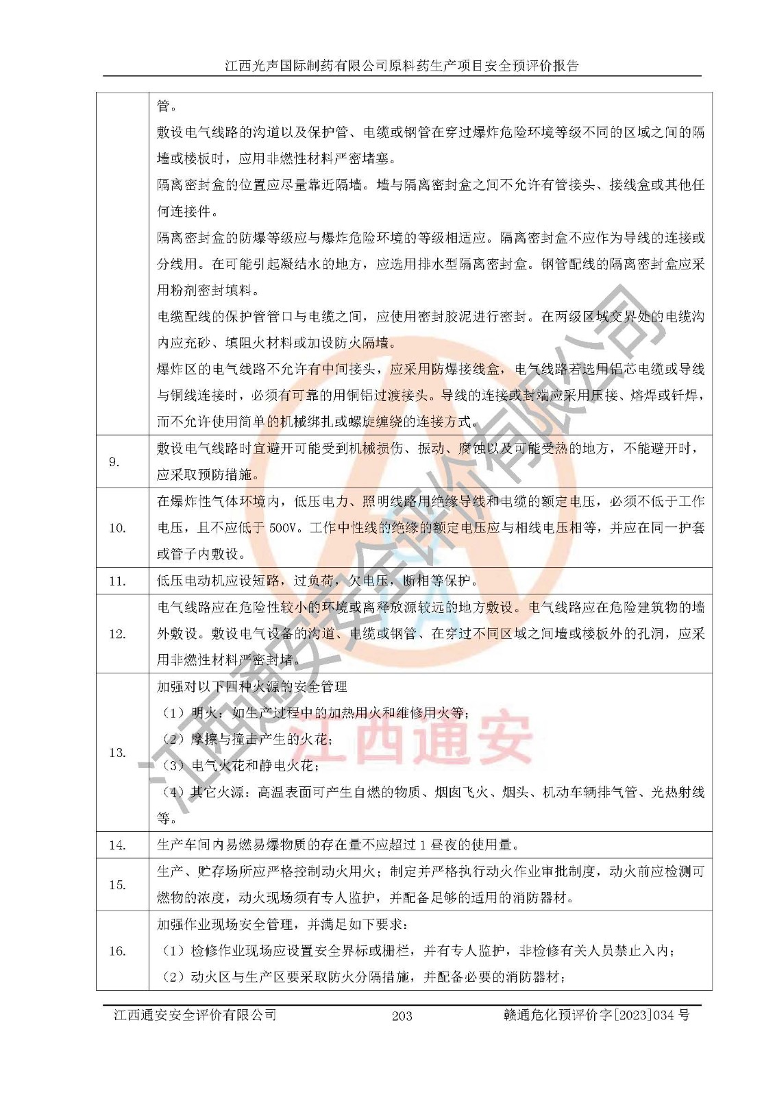 通過對江西光聲**制藥有限公司原料藥生產(chǎn)項目的危險、有害因素分析及定性、定量分析,結果為: 1、該建設項目中所涉及到的危險物質包括甲醇、乙醇、乙酸乙酯、**、三乙胺等易燃液體,在裝置運行和物料儲運過程中存在著易燃液體泄漏引發(fā)的火災爆炸危險;溴化氫屬于有毒氣體,二氯甲烷屬于毒害品,人員意外接觸后存在中毒窒息危險。另外,使用的鹽酸、溴化氫、氫氧化鈉、三乙胺等原料具有腐蝕性,人體意外接觸后易引發(fā)化學灼傷;同時該項目使用的反應釜、離心機、輸料泵等設備如操作不慎還會帶來機械傷害。因此,該項目在建成后的運行過程中存在火災與爆炸、中毒與窒息、觸電、機械傷害、高處墜落、物體打擊、**傷害、起重傷害、灼燙、淹溺、其他傷害等危險因素和化學因素、物理因素等有害因素。 2、重點防范的重大危險、有害因素:通過對該項目存在的危險、有害因素進行分析辨識,在生產(chǎn)過程中重點防范的重大危險、有害因素主要為火災與爆炸、中毒與窒息。 3、預先危險性分析法評價結果:該裝置運行過程中火災、爆炸的危險性等級為Ⅳ級,電氣火災、觸電、中毒窒息、灼燙的危險性為Ⅲ級,機械傷害、高處墜落、**傷害、起重傷害、淹溺、噪聲危害的危險性等級為Ⅱ級。因此,火災、爆炸是該裝置需重點防范的危險有害因素。而引發(fā)火災、爆炸的主要因素是甲醇、乙醇、乙酸乙酯以及三乙胺等可燃物質的泄漏及各類點火源的存在。企業(yè)在今后生產(chǎn)過程中,應將可燃物質的泄漏以及消除點火源做為重點加以控制。 4、危險度評價法的分析結果:該項目5#車間、8#車間、9#車間、罐區(qū)單元的危險等級分別為II級,屬中度危險;4#倉庫單元危險等級分別為Ⅲ級,屬低度危險。 5、重大危險源辨識結果:依據(jù)《危險化學品重大危險源辨識》(GB18218-2018),該擬建項目不構成危險化學品重大危險源。 6、根據(jù)**安全監(jiān)管總局辦公廳《關于公布首批重點監(jiān)管的危險化工工藝目錄的通知》(安監(jiān)總管三[2009]116號)和《**安全監(jiān)管總局關于公布第二批重點監(jiān)管危險化工工藝目錄和調(diào)整首批重點監(jiān)管危險化工工藝中部分典型工藝的通知》安監(jiān)總管三[2013]3號的規(guī)定,該擬建項目不涉及危險化工工藝。 7、特殊危險化學品辨識:該擬建項目涉及的甲醇、乙酸乙酯屬于重點監(jiān)管的危險化學品;擬建項目涉及的**、鹽酸屬于易制毒化學品,涉及的甲醇、乙醇屬于特別管控危險化學品,不涉及監(jiān)控化學品,不涉及易制爆化學品。 綜上所述:江西光聲**制藥有限公司原料藥生產(chǎn)項目符合**、省有關安全生產(chǎn)的法律法規(guī)、規(guī)章、標準、規(guī)范的要求,在以后的初步設計、施工圖設計和建設施工、安裝調(diào)試及生產(chǎn)運行中,如能嚴格執(zhí)行**有關安全生產(chǎn)法律、法規(guī)和有關標準、規(guī)范,認真采納本報告書中安全對策措施及建議,真正做到安全設施與主體工程同時設計、同時施工、同時投入生產(chǎn)和使用的“三同時”,工程的危險、有害因素可得到**控制,風險在可接受范圍內(nèi),具有**的本質安全水平;本建設項目從安全方面分析可行。 |