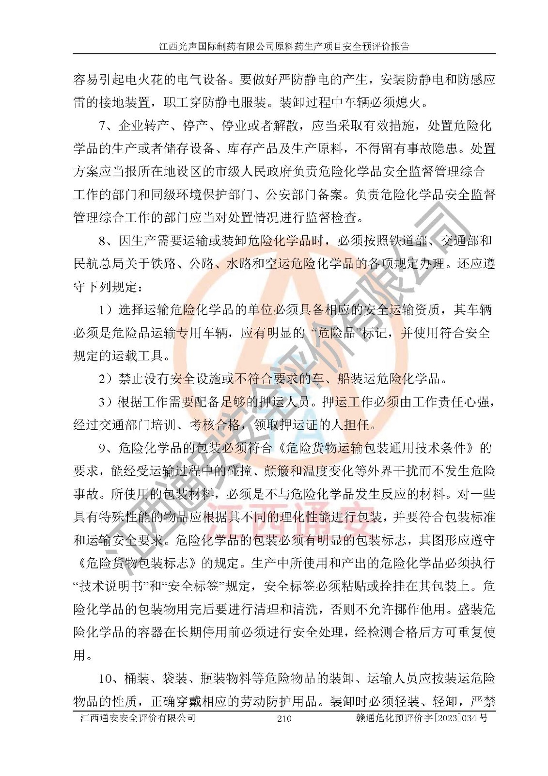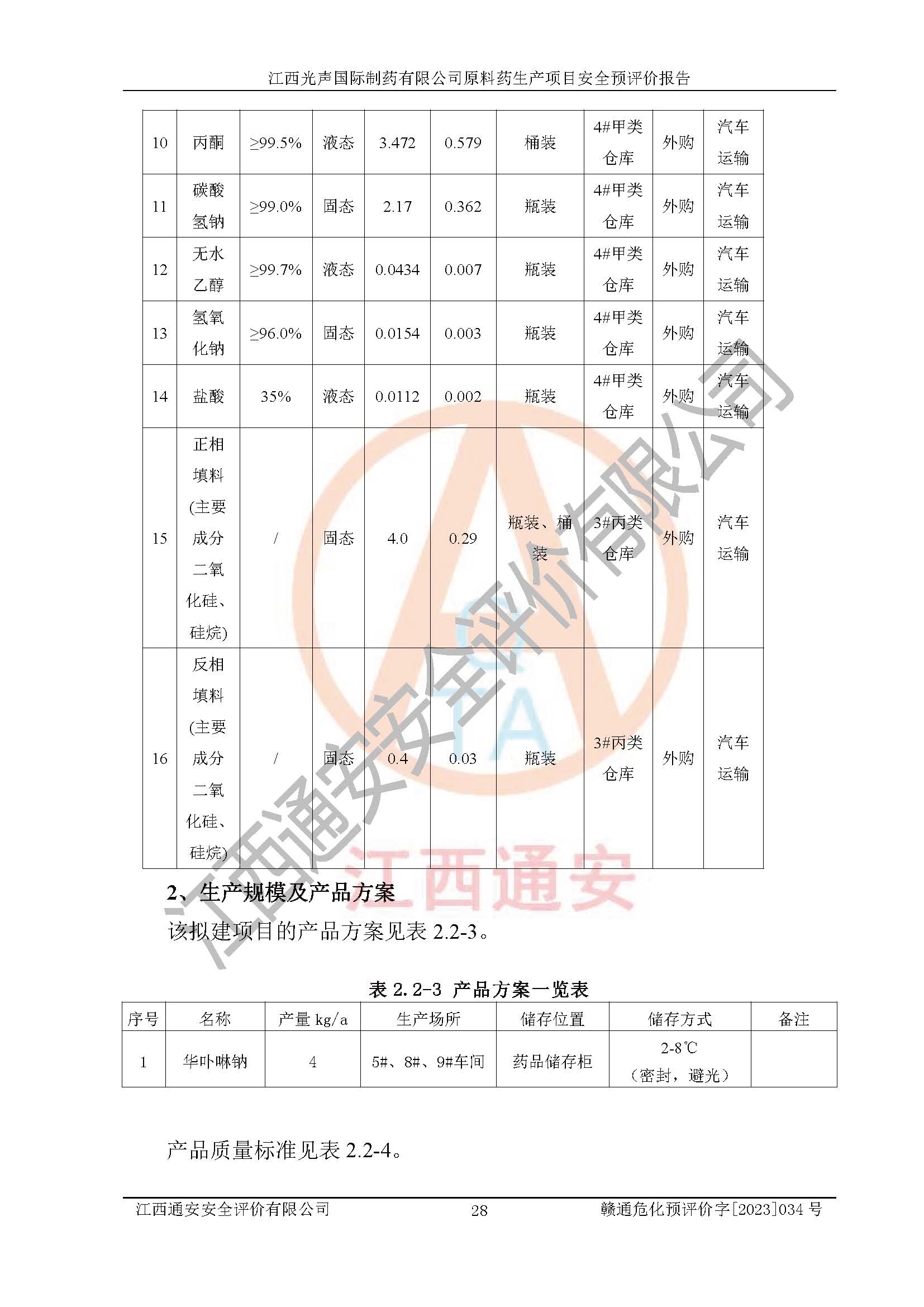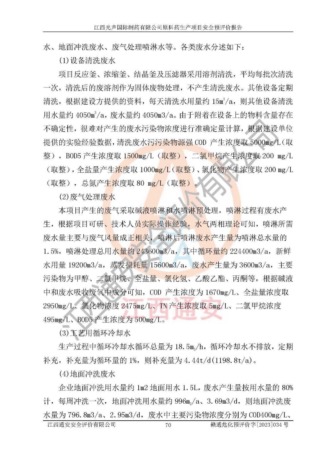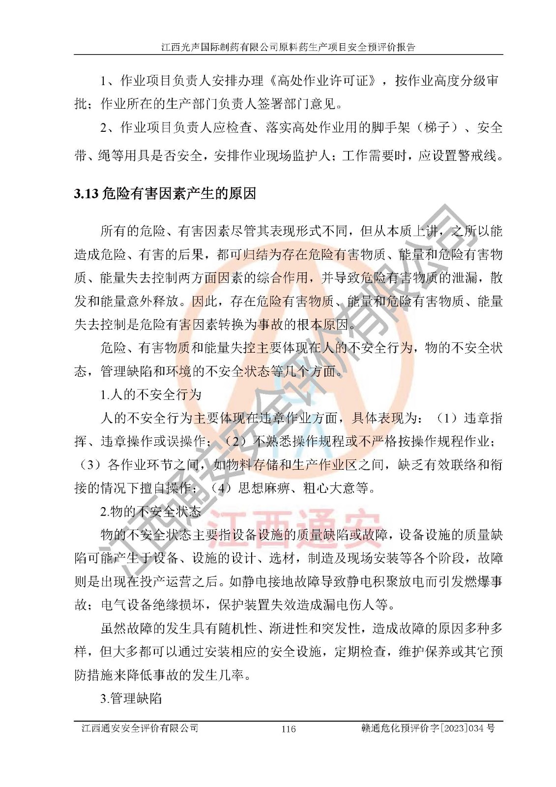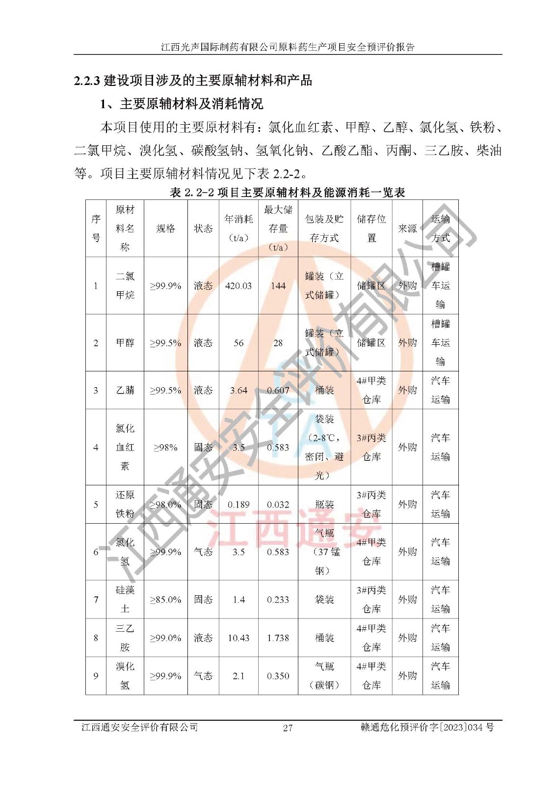 通過對江西光聲**制藥有限公司原料藥生產(chǎn)項目的危險、有害因素分析及定性、定量分析,結果為: 1、該建設項目中所涉及到的危險物質包括甲醇、乙醇、乙酸乙酯、**、三乙胺等易燃液體,在裝置運行和物料儲運過程中存在著易燃液體泄漏引發(fā)的火災爆炸危險;溴化氫屬于有毒氣體,二氯甲烷屬于毒害品,人員意外接觸后存在中毒窒息危險。另外,使用的鹽酸、溴化氫、氫氧化鈉、三乙胺等原料具有腐蝕性,人體意外接觸后易引發(fā)化學灼傷;同時該項目使用的反應釜、離心機、輸料泵等設備如操作不慎還會帶來機械傷害。因此,該項目在建成后的運行過程中存在火災與爆炸、中毒與窒息、觸電、機械傷害、高處墜落、物體打擊、**傷害、起重傷害、灼燙、淹溺、其他傷害等危險因素和化學因素、物理因素等有害因素。 2、重點防范的重大危險、有害因素:通過對該項目存在的危險、有害因素進行分析辨識,在生產(chǎn)過程中重點防范的重大危險、有害因素主要為火災與爆炸、中毒與窒息。 3、預先危險性分析法評價結果:該裝置運行過程中火災、爆炸的危險性等級為Ⅳ級,電氣火災、觸電、中毒窒息、灼燙的危險性為Ⅲ級,機械傷害、高處墜落、**傷害、起重傷害、淹溺、噪聲危害的危險性等級為Ⅱ級。因此,火災、爆炸是該裝置需重點防范的危險有害因素。而引發(fā)火災、爆炸的主要因素是甲醇、乙醇、乙酸乙酯以及三乙胺等可燃物質的泄漏及各類點火源的存在。企業(yè)在今后生產(chǎn)過程中,應將可燃物質的泄漏以及消除點火源做為重點加以控制。 4、危險度評價法的分析結果:該項目5#車間、8#車間、9#車間、罐區(qū)單元的危險等級分別為II級,屬中度危險;4#倉庫單元危險等級分別為Ⅲ級,屬低度危險。 5、重大危險源辨識結果:依據(jù)《危險化學品重大危險源辨識》(GB18218-2018),該擬建項目不構成危險化學品重大危險源。 6、根據(jù)**安全監(jiān)管總局辦公廳《關于公布首批重點監(jiān)管的危險化工工藝目錄的通知》(安監(jiān)總管三[2009]116號)和《**安全監(jiān)管總局關于公布第二批重點監(jiān)管危險化工工藝目錄和調(diào)整首批重點監(jiān)管危險化工工藝中部分典型工藝的通知》安監(jiān)總管三[2013]3號的規(guī)定,該擬建項目不涉及危險化工工藝。 7、特殊危險化學品辨識:該擬建項目涉及的甲醇、乙酸乙酯屬于重點監(jiān)管的危險化學品;擬建項目涉及的**、鹽酸屬于易制毒化學品,涉及的甲醇、乙醇屬于特別管控危險化學品,不涉及監(jiān)控化學品,不涉及易制爆化學品。 綜上所述:江西光聲**制藥有限公司原料藥生產(chǎn)項目符合**、省有關安全生產(chǎn)的法律法規(guī)、規(guī)章、標準、規(guī)范的要求,在以后的初步設計、施工圖設計和建設施工、安裝調(diào)試及生產(chǎn)運行中,如能嚴格執(zhí)行**有關安全生產(chǎn)法律、法規(guī)和有關標準、規(guī)范,認真采納本報告書中安全對策措施及建議,真正做到安全設施與主體工程同時設計、同時施工、同時投入生產(chǎn)和使用的“三同時”,工程的危險、有害因素可得到**控制,風險在可接受范圍內(nèi),具有**的本質安全水平;本建設項目從安全方面分析可行。 |