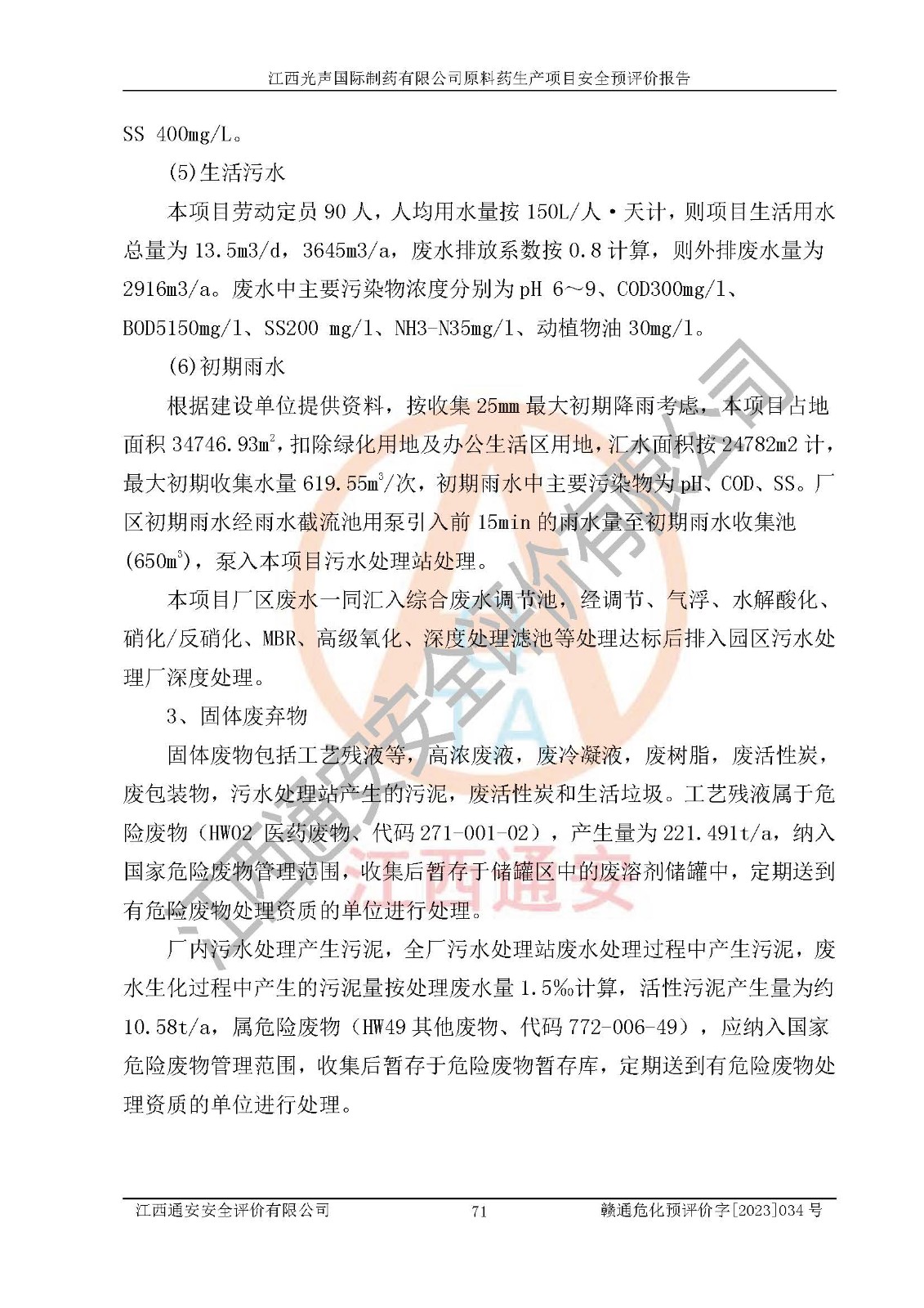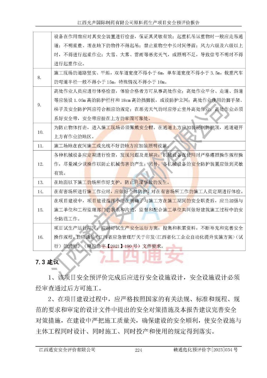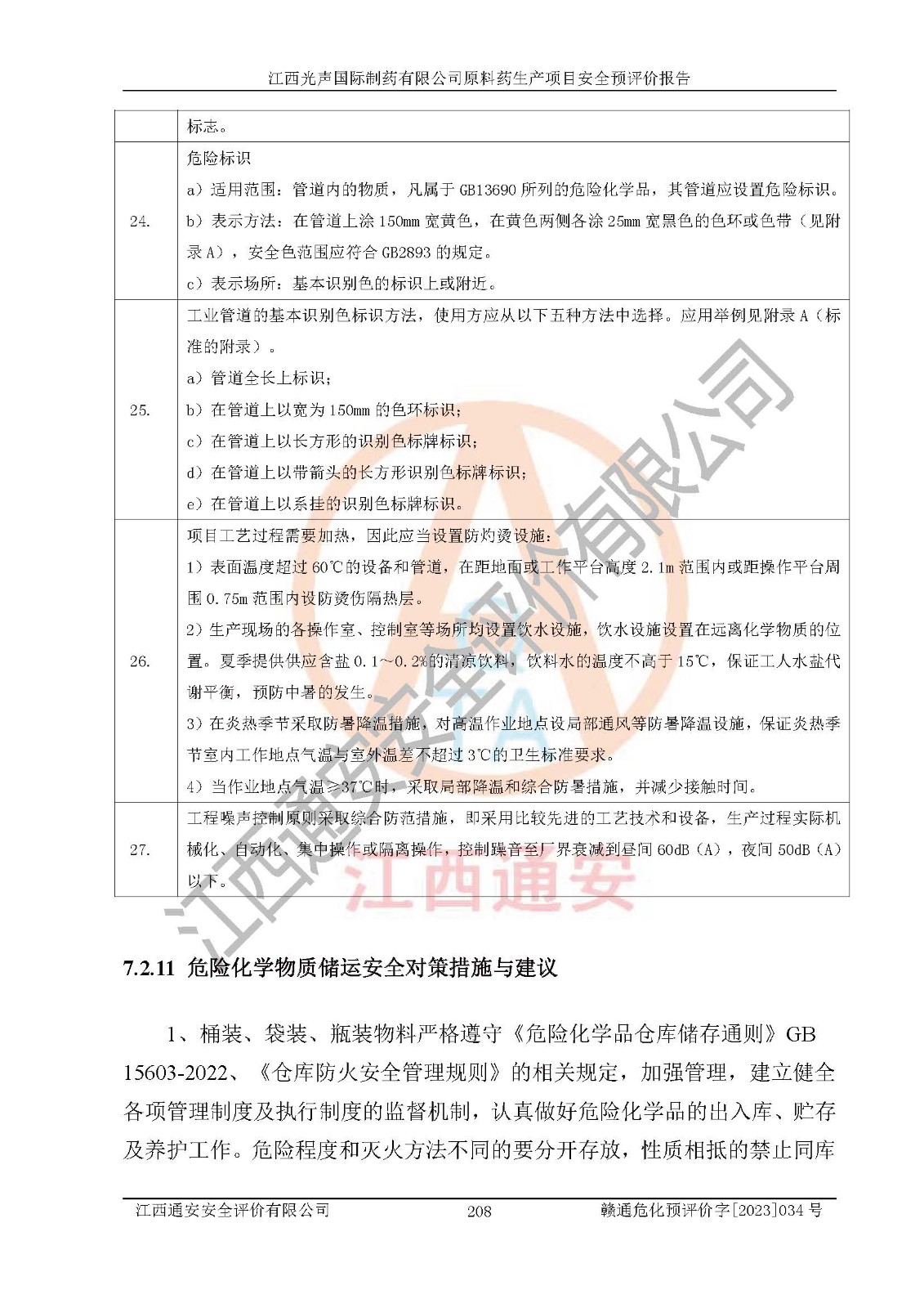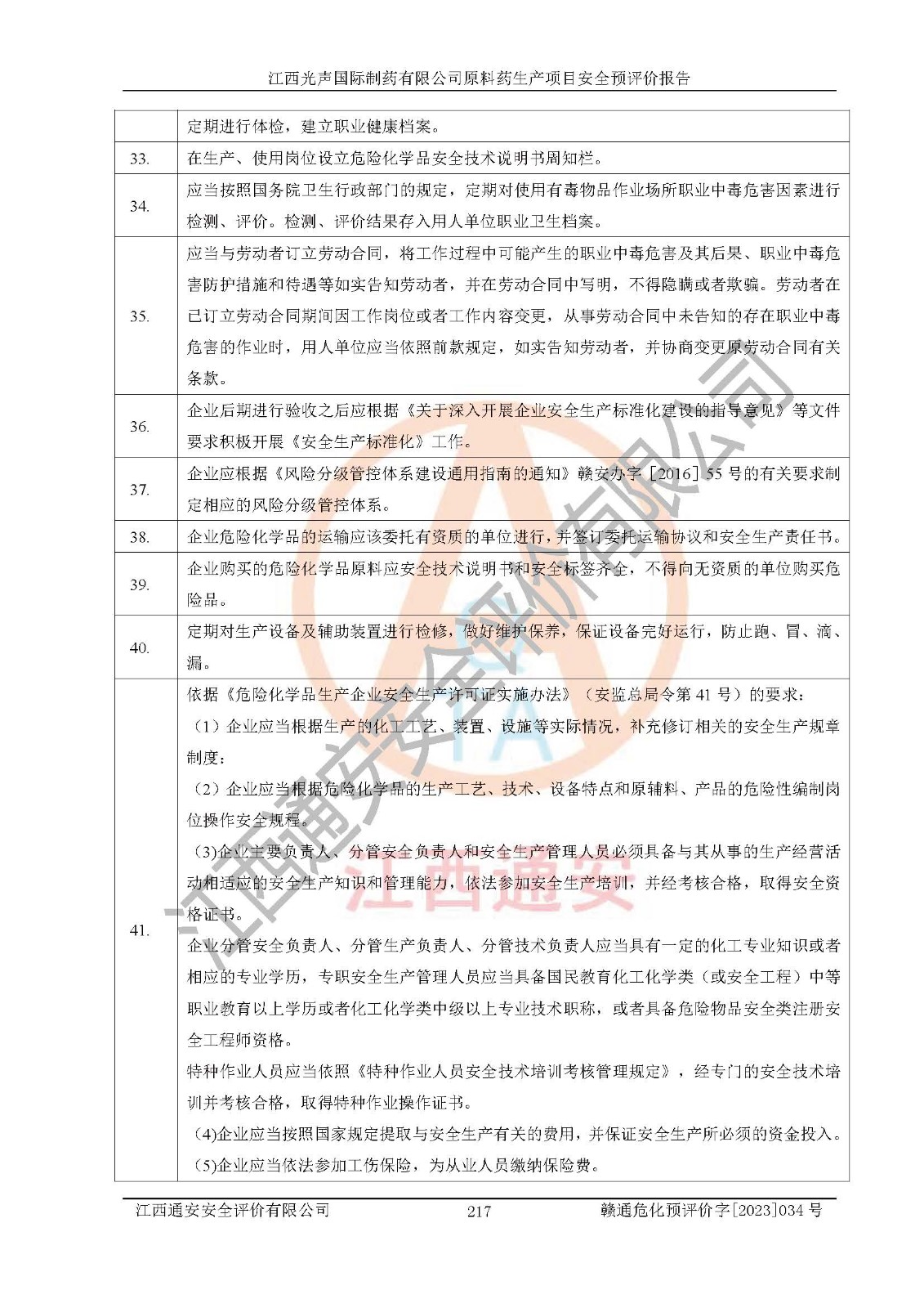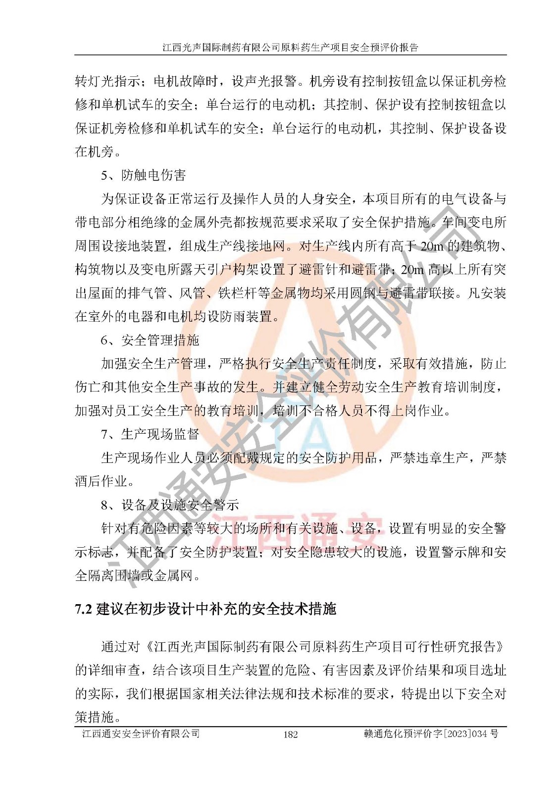 通過對江西光聲**制藥有限公司原料藥生產(chǎn)項目的危險、有害因素分析及定性、定量分析,結果為: 1、該建設項目中所涉及到的危險物質包括甲醇、乙醇、乙酸乙酯、**、三乙胺等易燃液體,在裝置運行和物料儲運過程中存在著易燃液體泄漏引發(fā)的火災爆炸危險;溴化氫屬于有毒氣體,二氯甲烷屬于毒害品,人員意外接觸后存在中毒窒息危險。另外,使用的鹽酸、溴化氫、氫氧化鈉、三乙胺等原料具有腐蝕性,人體意外接觸后易引發(fā)化學灼傷;同時該項目使用的反應釜、離心機、輸料泵等設備如操作不慎還會帶來機械傷害。因此,該項目在建成后的運行過程中存在火災與爆炸、中毒與窒息、觸電、機械傷害、高處墜落、物體打擊、**傷害、起重傷害、灼燙、淹溺、其他傷害等危險因素和化學因素、物理因素等有害因素。 2、重點防范的重大危險、有害因素:通過對該項目存在的危險、有害因素進行分析辨識,在生產(chǎn)過程中重點防范的重大危險、有害因素主要為火災與爆炸、中毒與窒息。 3、預先危險性分析法評價結果:該裝置運行過程中火災、爆炸的危險性等級為Ⅳ級,電氣火災、觸電、中毒窒息、灼燙的危險性為Ⅲ級,機械傷害、高處墜落、**傷害、起重傷害、淹溺、噪聲危害的危險性等級為Ⅱ級。因此,火災、爆炸是該裝置需重點防范的危險有害因素。而引發(fā)火災、爆炸的主要因素是甲醇、乙醇、乙酸乙酯以及三乙胺等可燃物質的泄漏及各類點火源的存在。企業(yè)在今后生產(chǎn)過程中,應將可燃物質的泄漏以及消除點火源做為重點加以控制。 4、危險度評價法的分析結果:該項目5#車間、8#車間、9#車間、罐區(qū)單元的危險等級分別為II級,屬中度危險;4#倉庫單元危險等級分別為Ⅲ級,屬低度危險。 5、重大危險源辨識結果:依據(jù)《危險化學品重大危險源辨識》(GB18218-2018),該擬建項目不構成危險化學品重大危險源。 6、根據(jù)**安全監(jiān)管總局辦公廳《關于公布首批重點監(jiān)管的危險化工工藝目錄的通知》(安監(jiān)總管三[2009]116號)和《**安全監(jiān)管總局關于公布第二批重點監(jiān)管危險化工工藝目錄和調(diào)整首批重點監(jiān)管危險化工工藝中部分典型工藝的通知》安監(jiān)總管三[2013]3號的規(guī)定,該擬建項目不涉及危險化工工藝。 7、特殊危險化學品辨識:該擬建項目涉及的甲醇、乙酸乙酯屬于重點監(jiān)管的危險化學品;擬建項目涉及的**、鹽酸屬于易制毒化學品,涉及的甲醇、乙醇屬于特別管控危險化學品,不涉及監(jiān)控化學品,不涉及易制爆化學品。 綜上所述:江西光聲**制藥有限公司原料藥生產(chǎn)項目符合**、省有關安全生產(chǎn)的法律法規(guī)、規(guī)章、標準、規(guī)范的要求,在以后的初步設計、施工圖設計和建設施工、安裝調(diào)試及生產(chǎn)運行中,如能嚴格執(zhí)行**有關安全生產(chǎn)法律、法規(guī)和有關標準、規(guī)范,認真采納本報告書中安全對策措施及建議,真正做到安全設施與主體工程同時設計、同時施工、同時投入生產(chǎn)和使用的“三同時”,工程的危險、有害因素可得到**控制,風險在可接受范圍內(nèi),具有**的本質安全水平;本建設項目從安全方面分析可行。 |