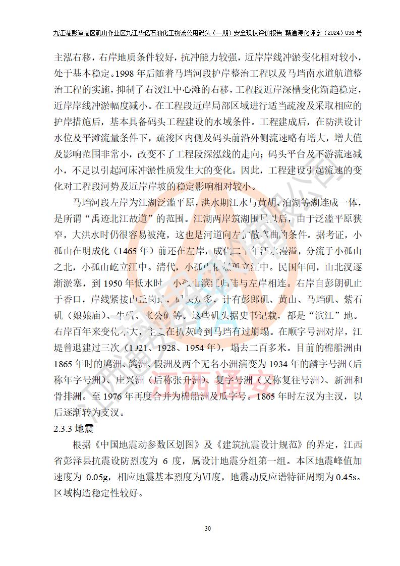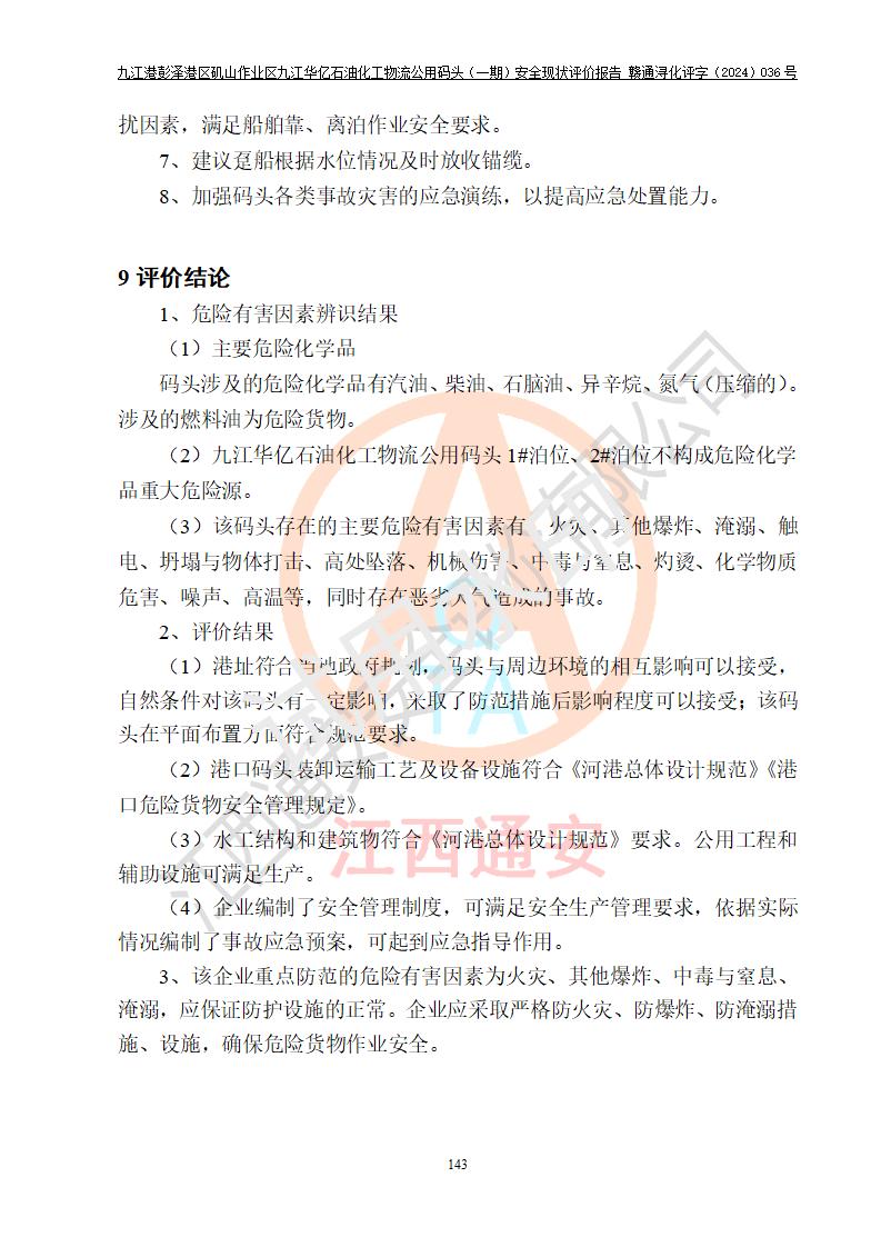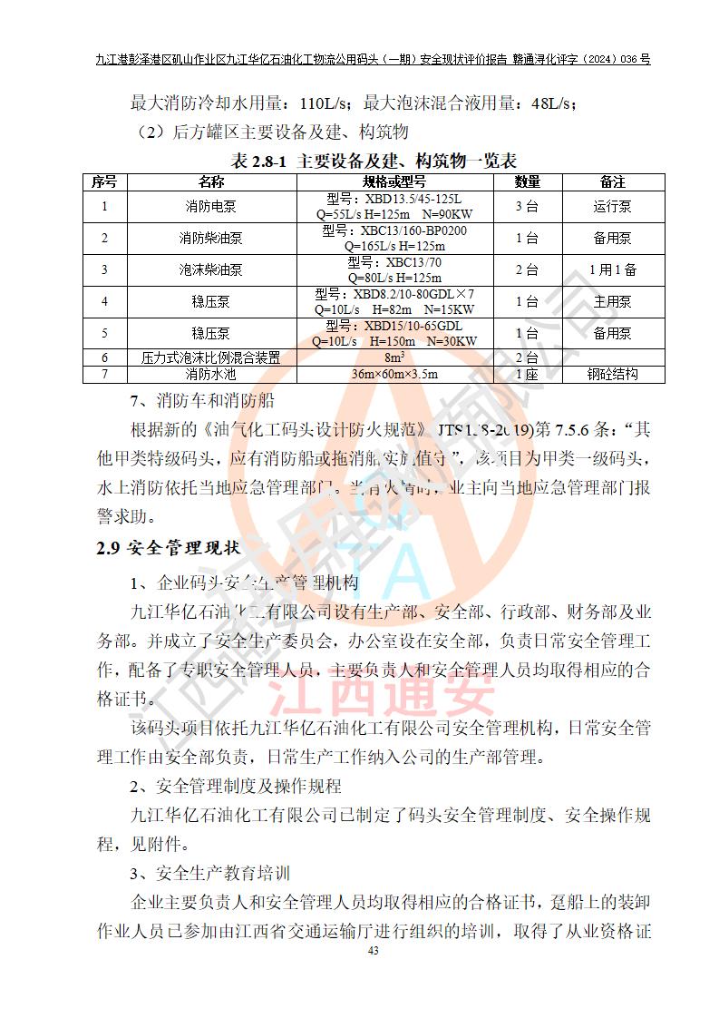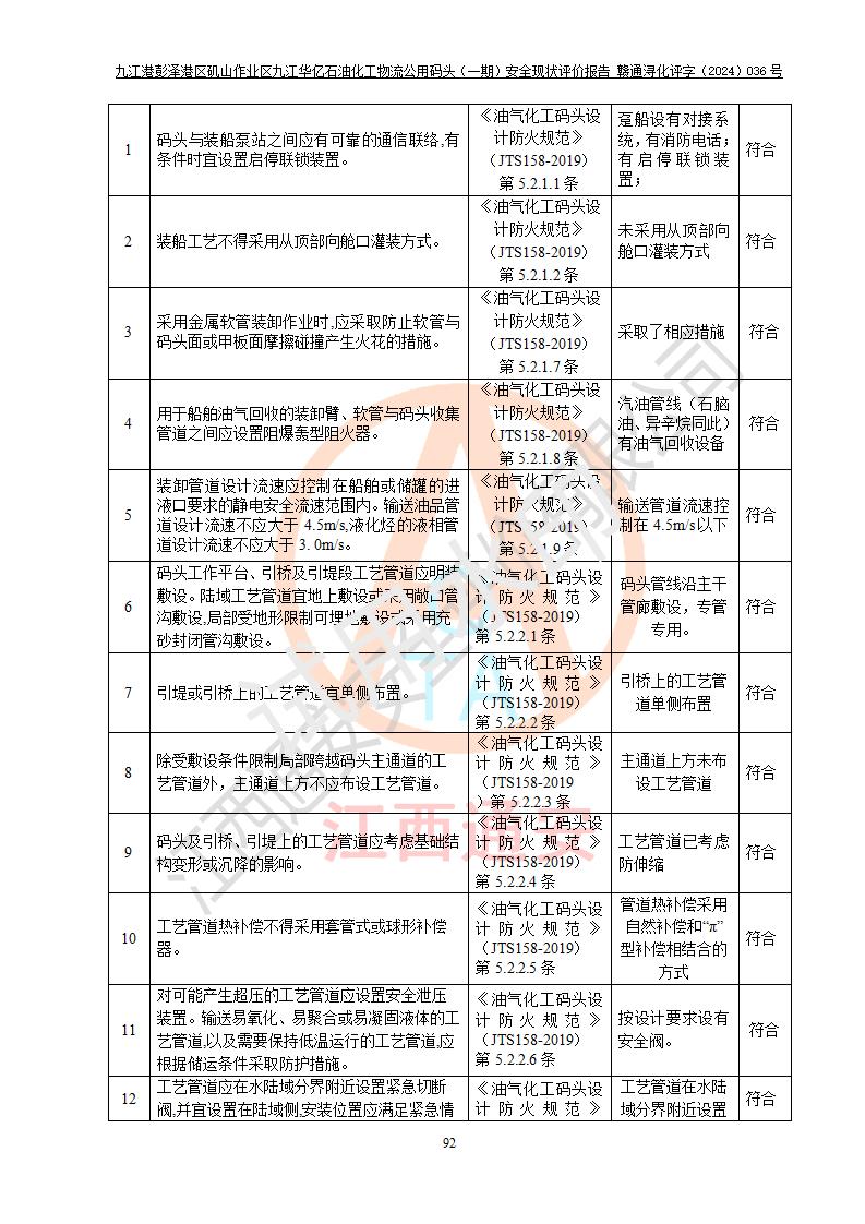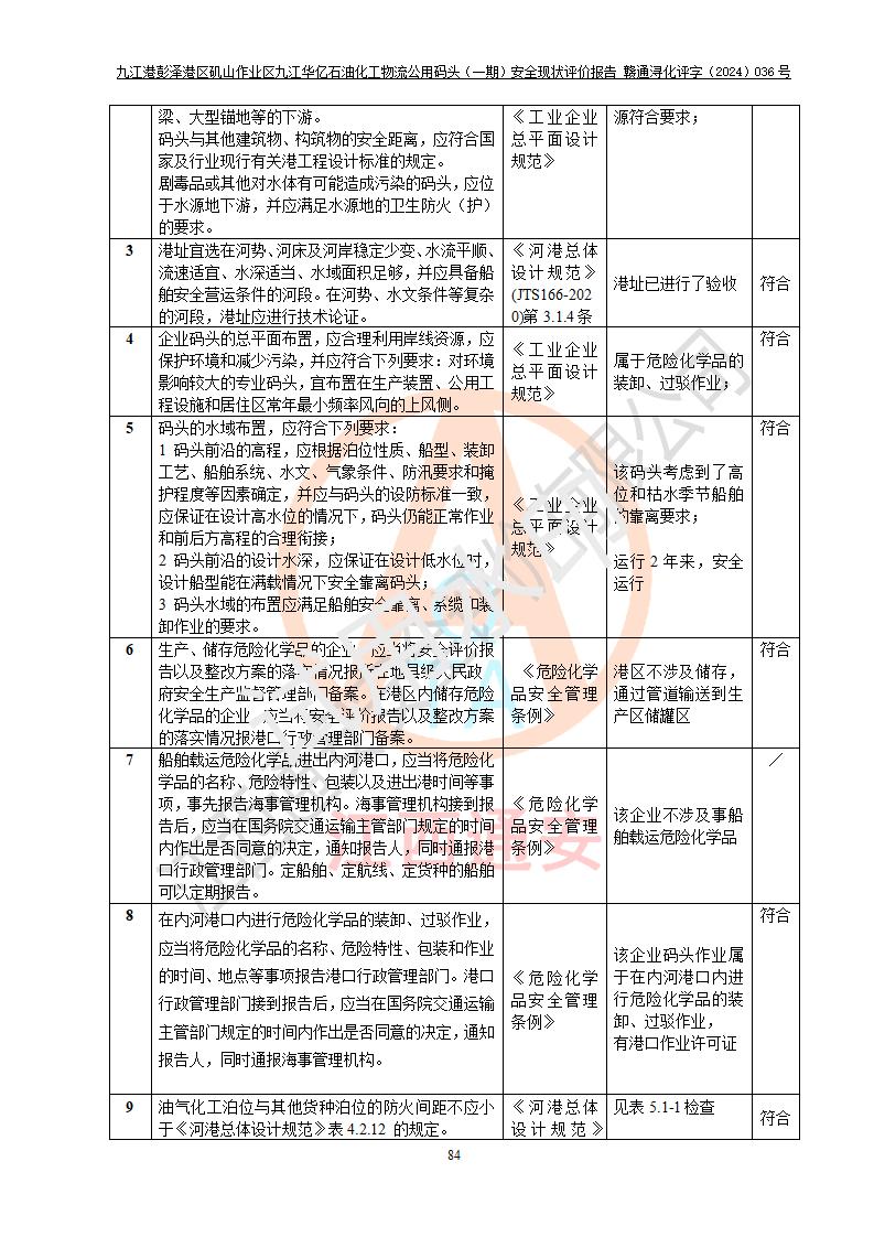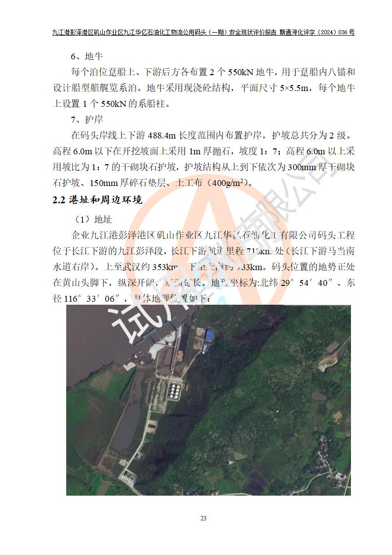 九江港彭澤港區(qū)磯山作業(yè)區(qū)九江華億石油化工物流公用碼頭(一期) 安全現(xiàn)狀評價報告