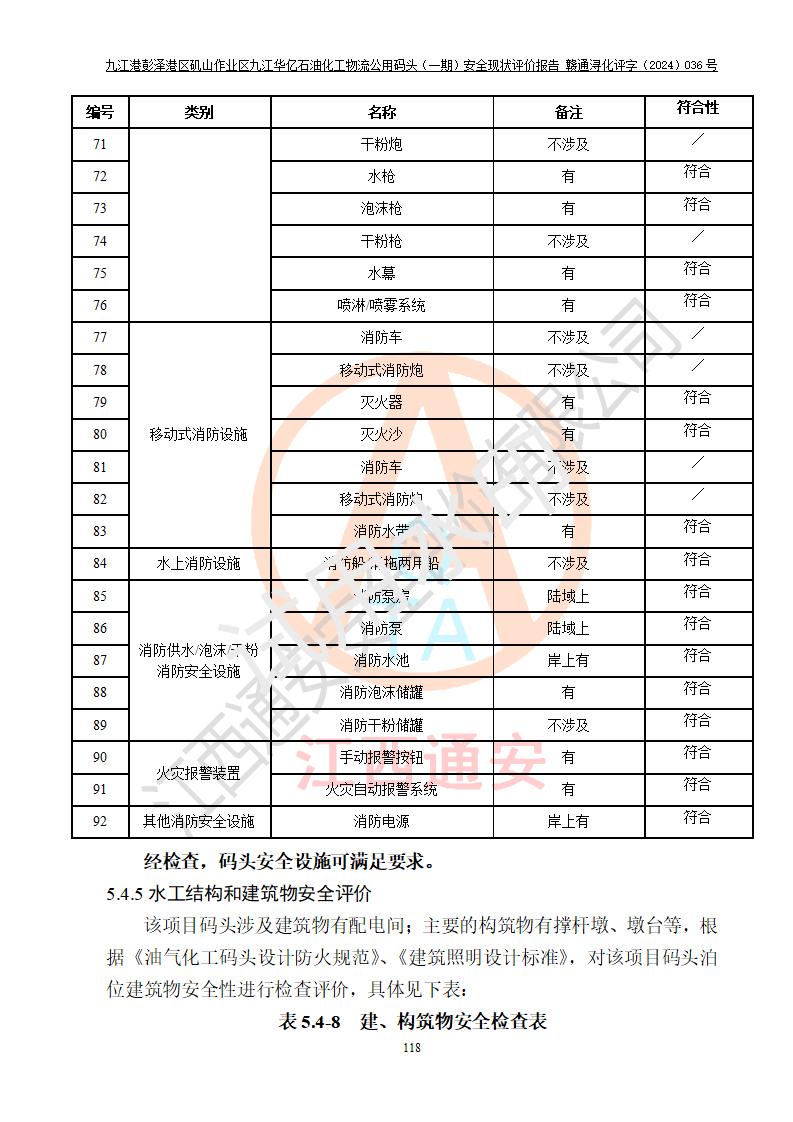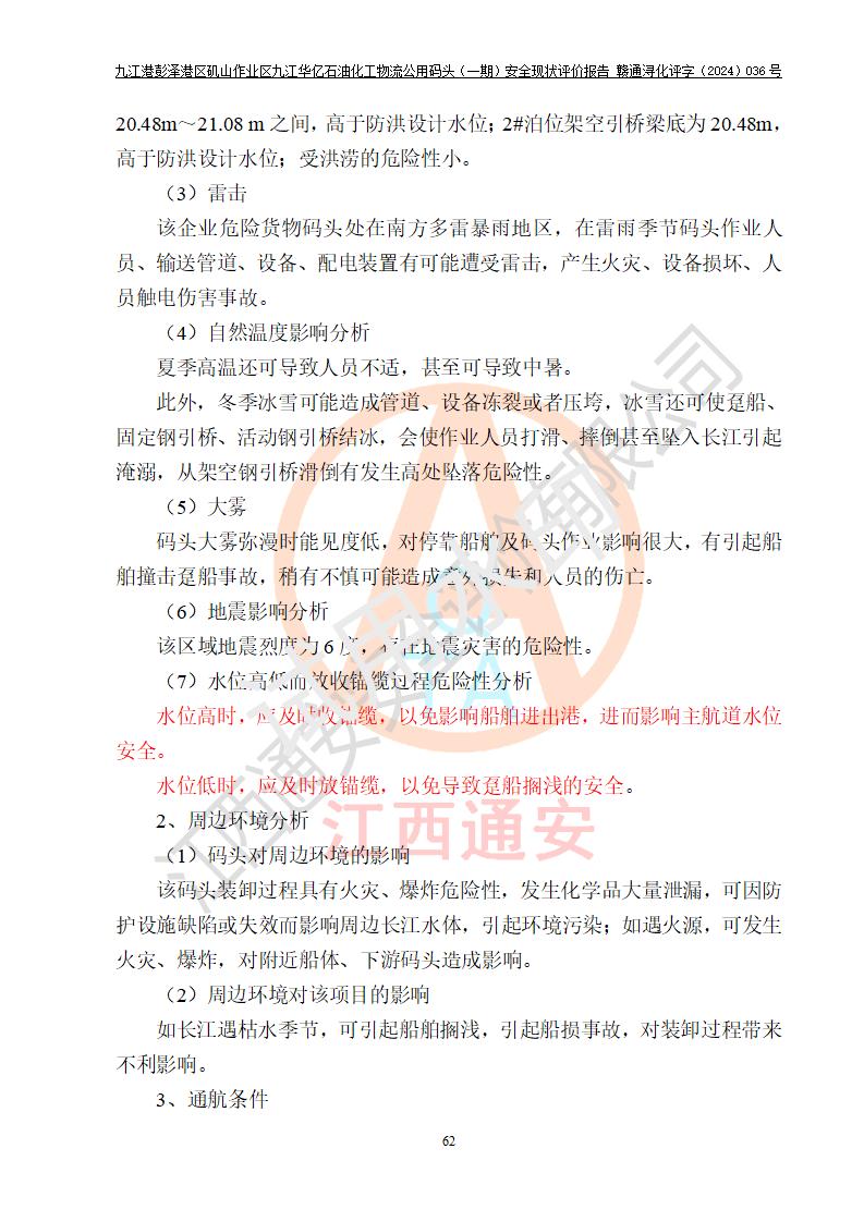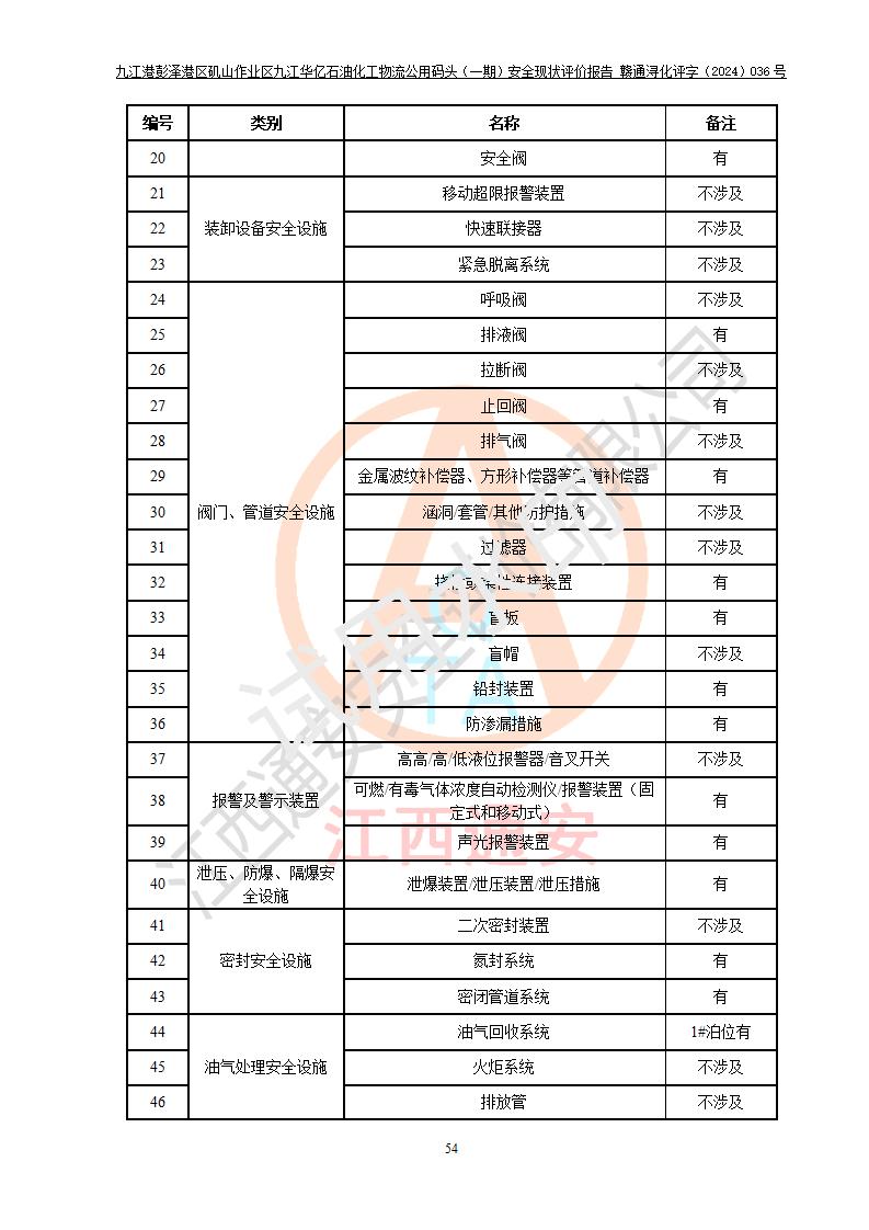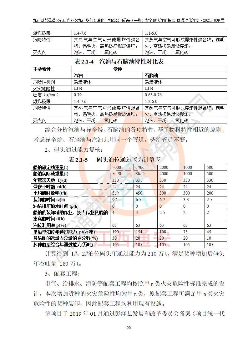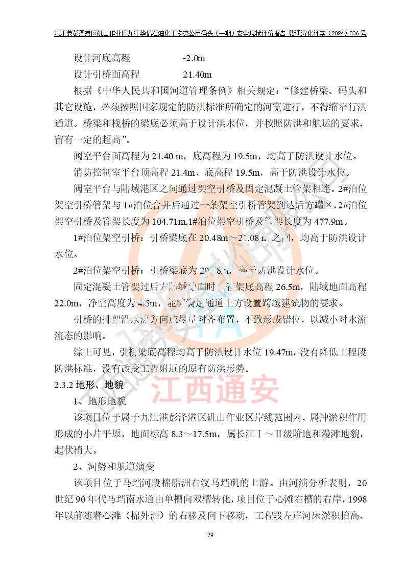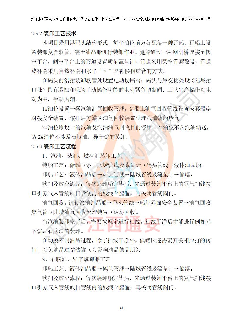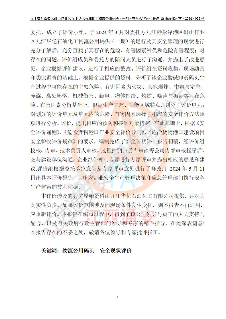 九江港彭澤港區(qū)磯山作業(yè)區(qū)九江華億石油化工物流公用碼頭(一期) 安全現(xiàn)狀評價報告