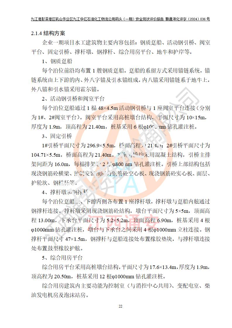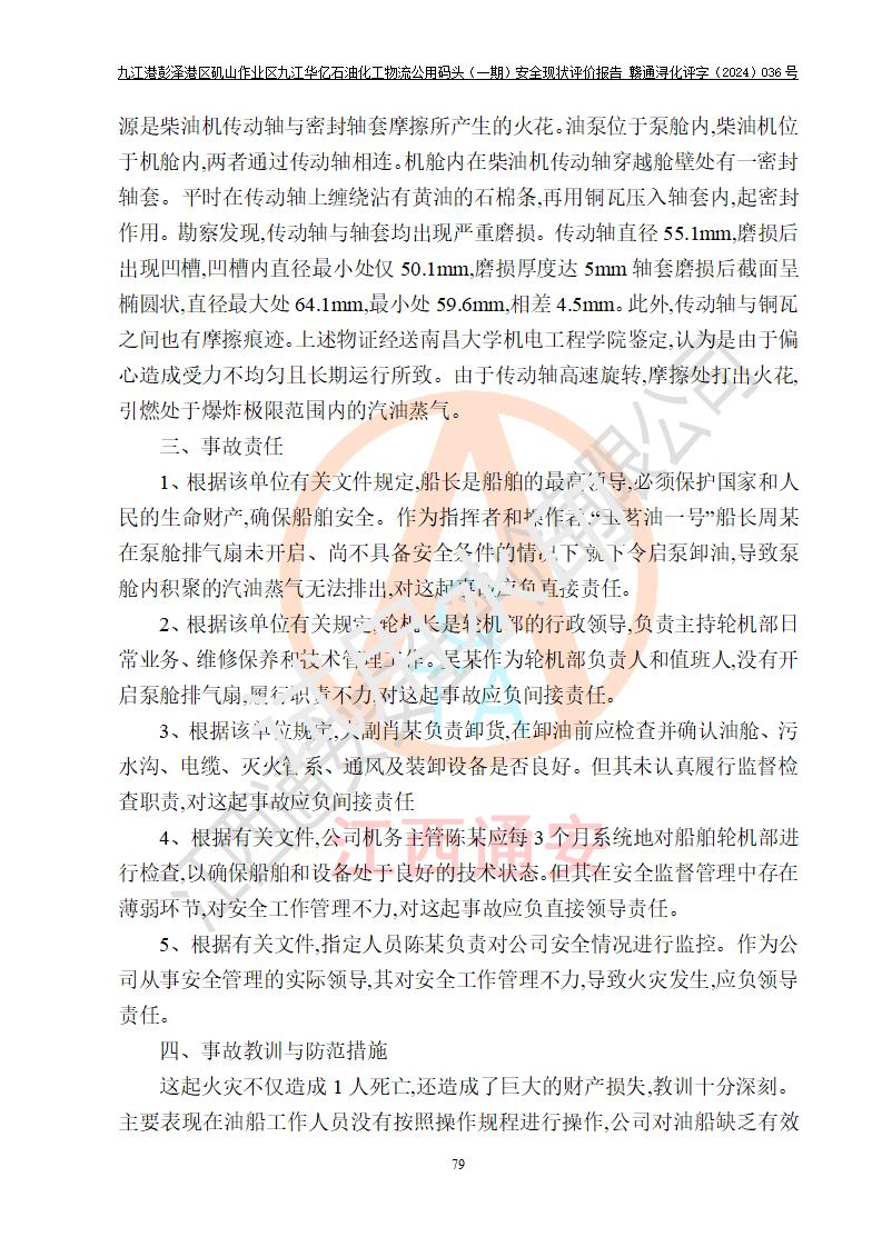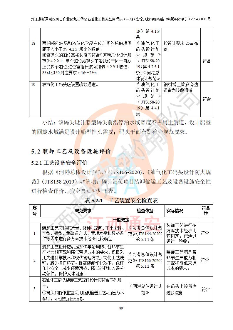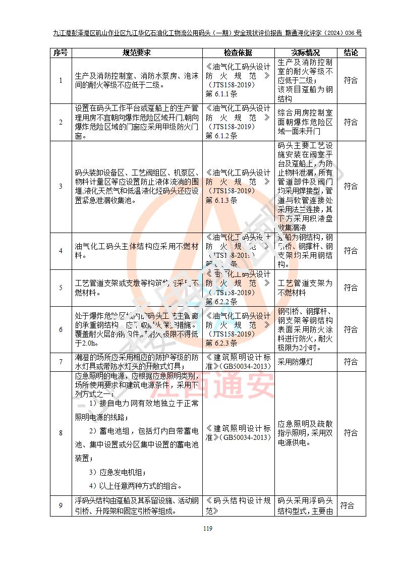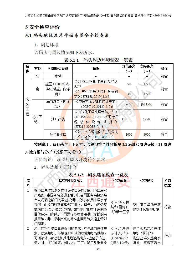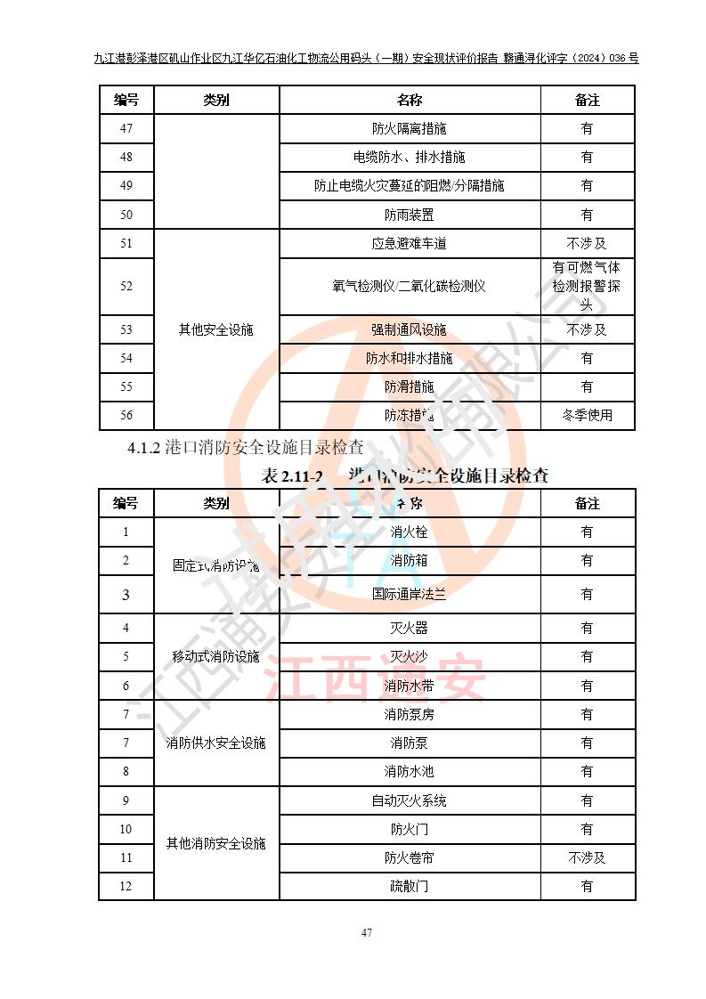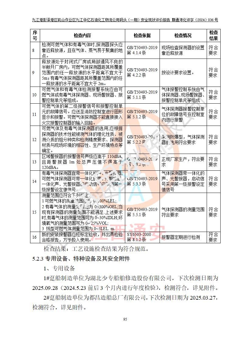 九江港彭澤港區(qū)磯山作業(yè)區(qū)九江華億石油化工物流公用碼頭(一期) 安全現(xiàn)狀評價報告