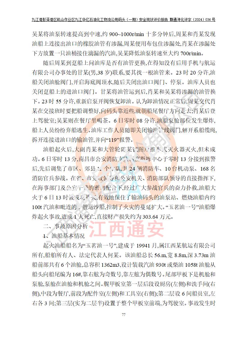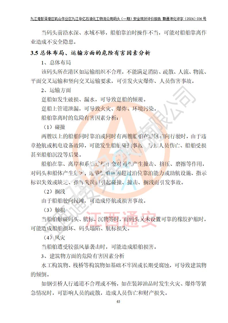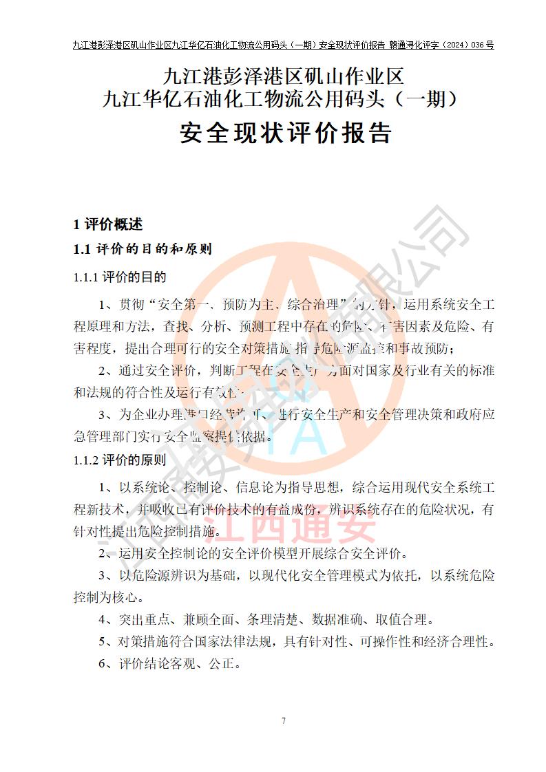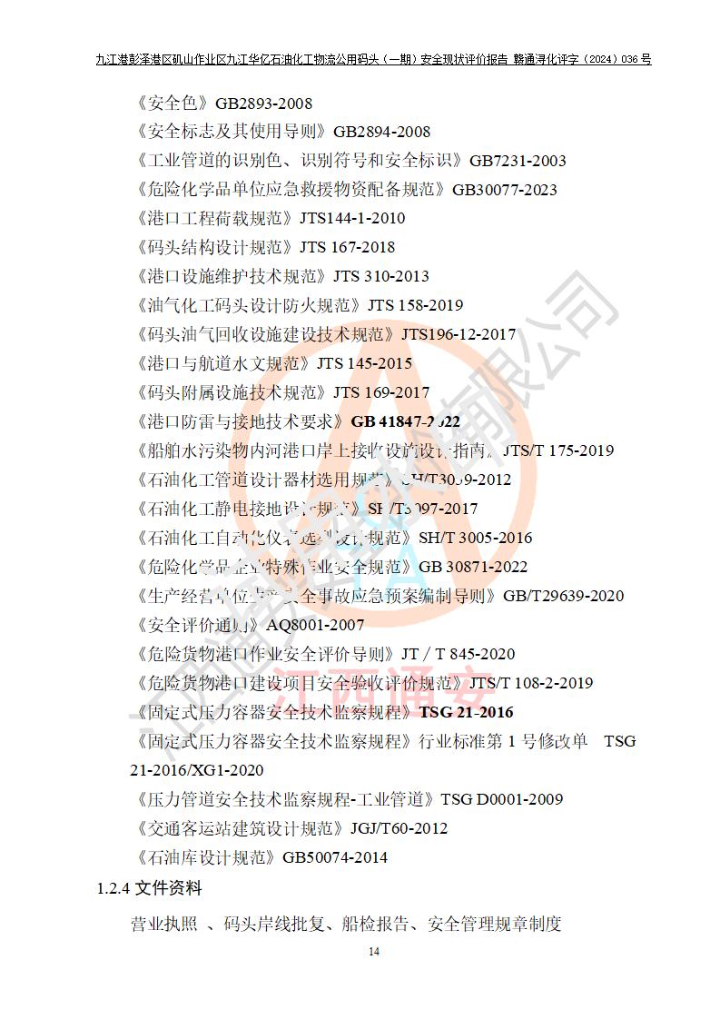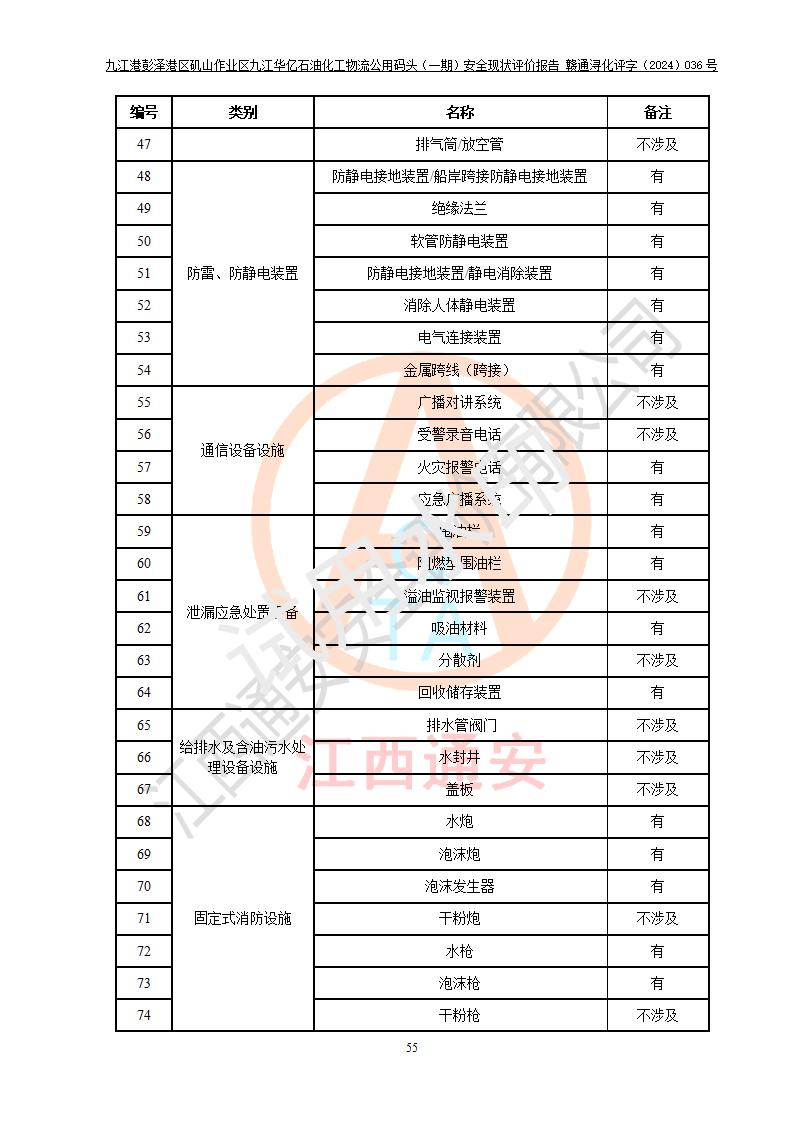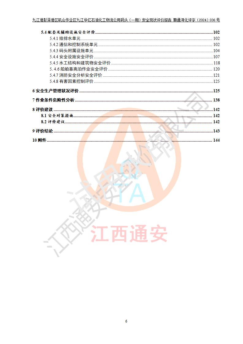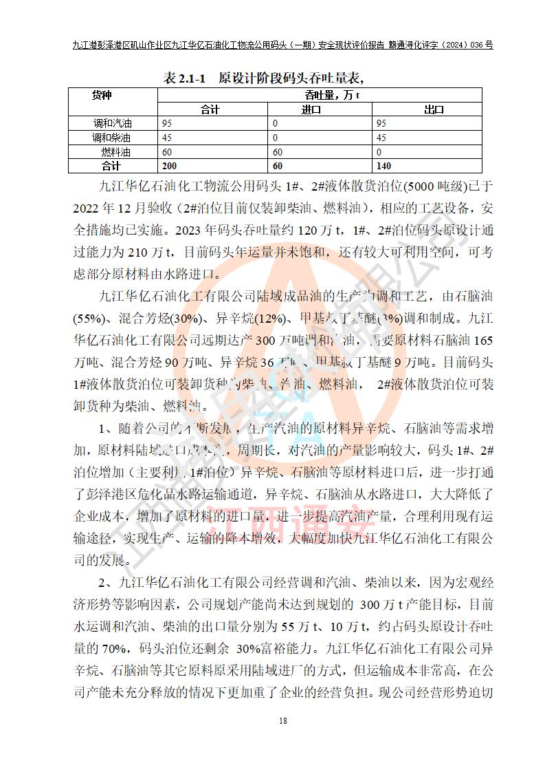 九江港彭澤港區(qū)磯山作業(yè)區(qū)九江華億石油化工物流公用碼頭(一期) 安全現(xiàn)狀評價報告