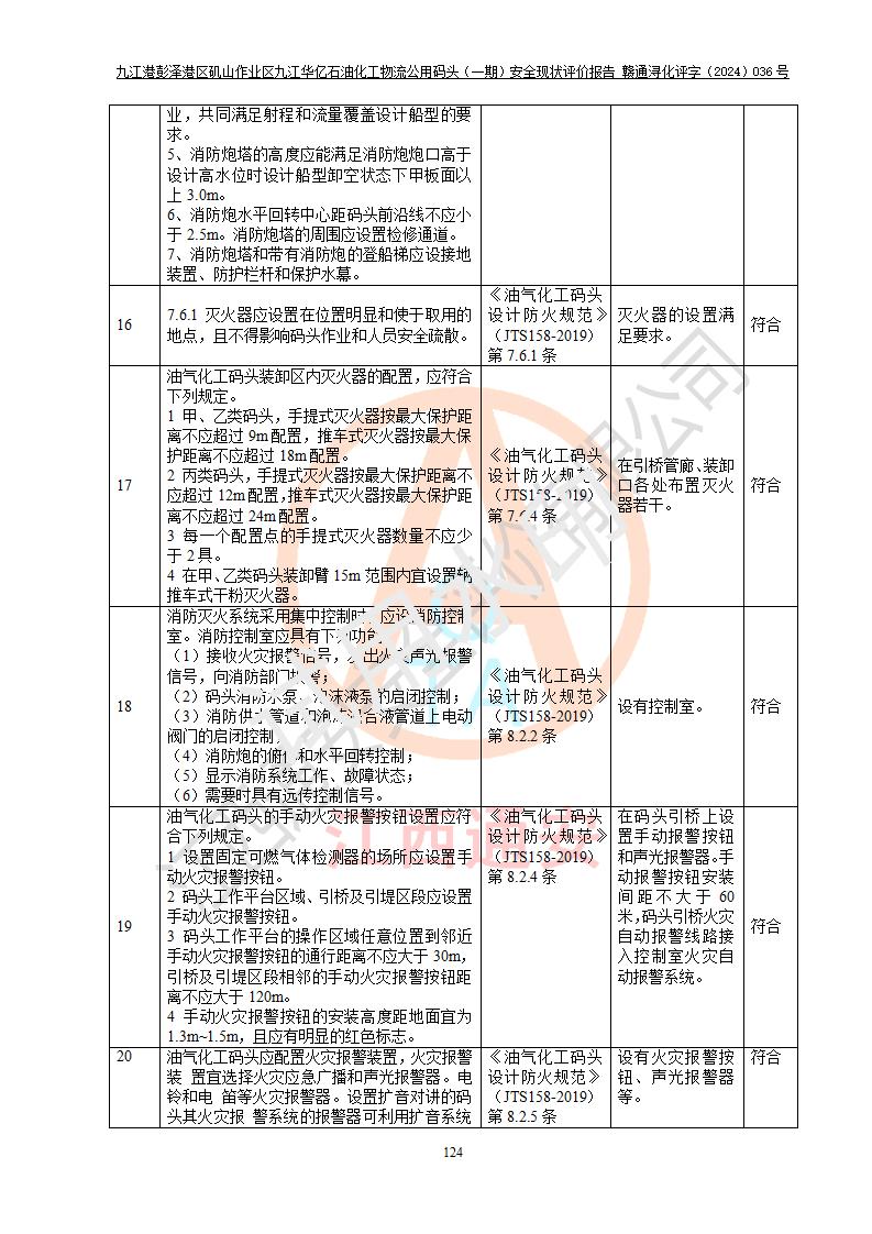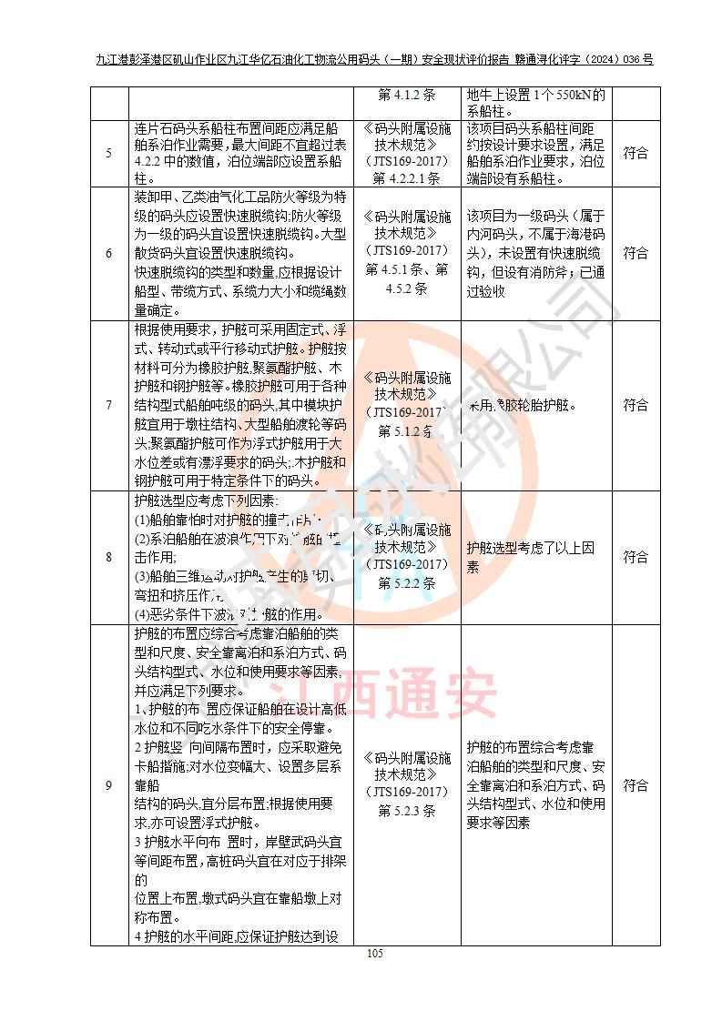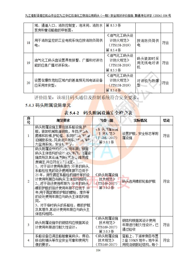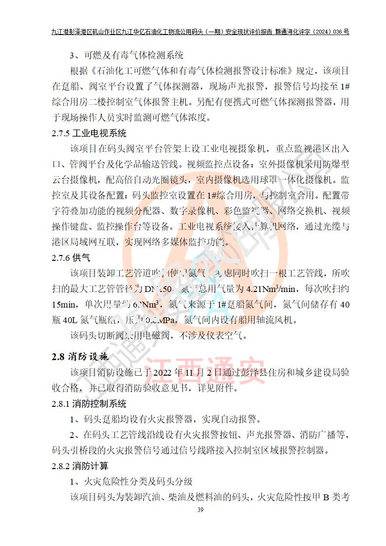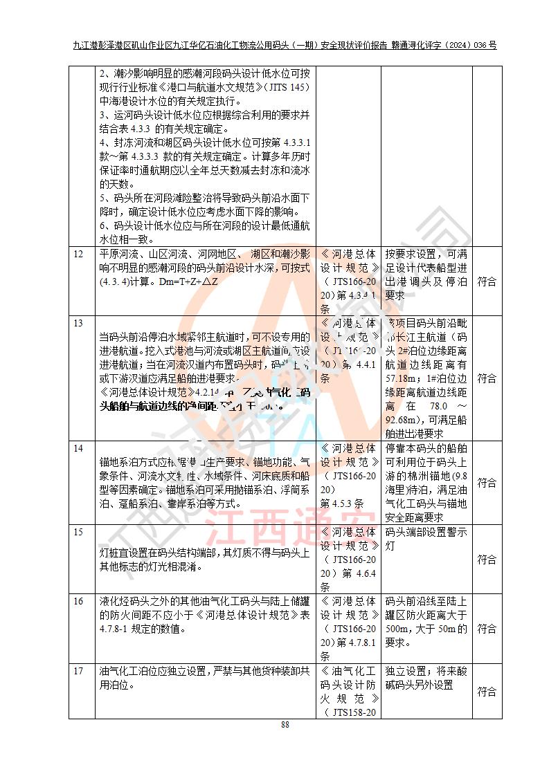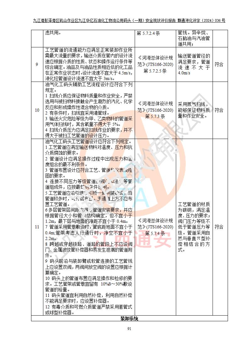 九江港彭澤港區(qū)磯山作業(yè)區(qū)九江華億石油化工物流公用碼頭(一期) 安全現(xiàn)狀評價報告