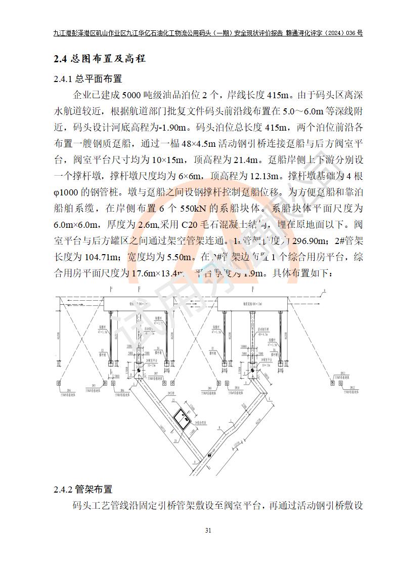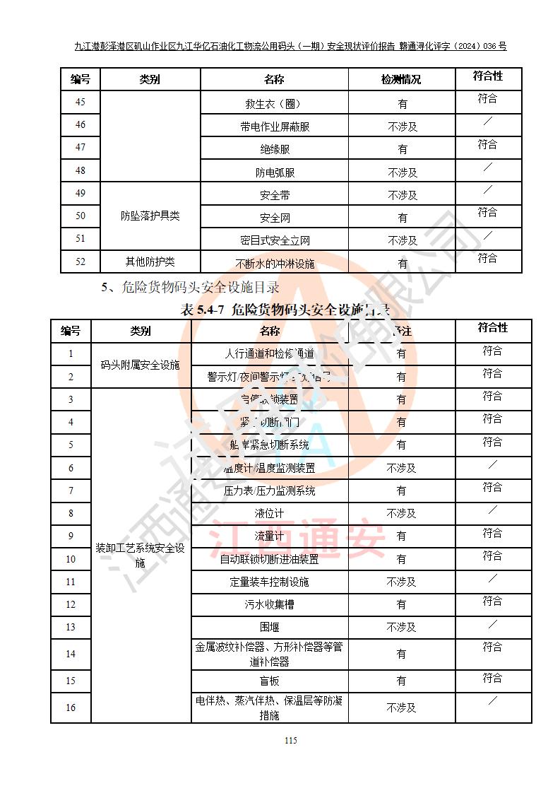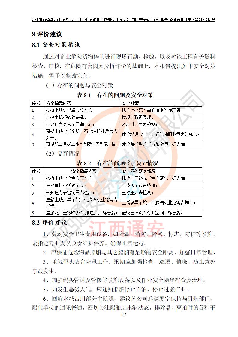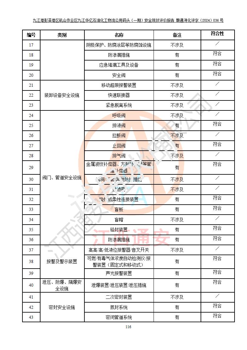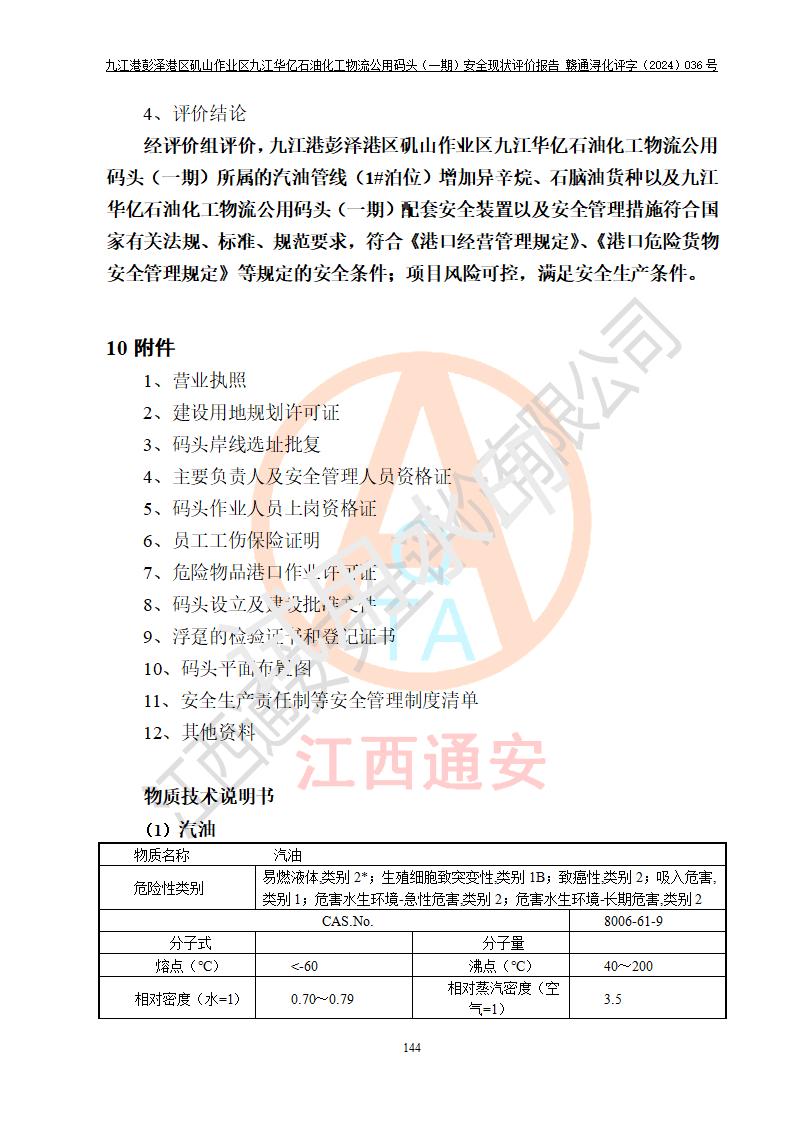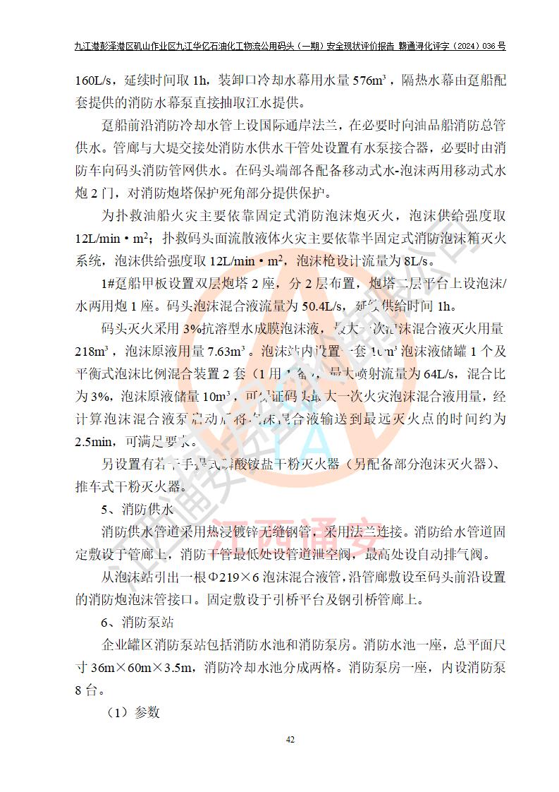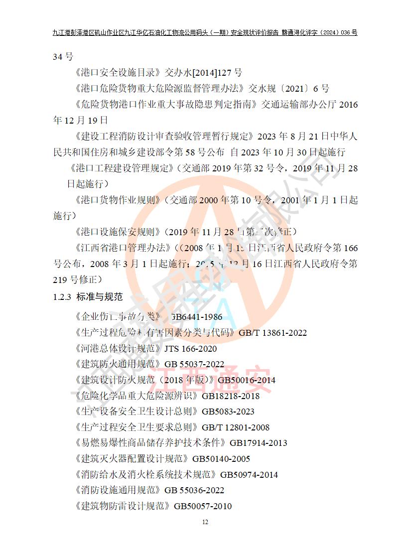 九江港彭澤港區(qū)磯山作業(yè)區(qū)九江華億石油化工物流公用碼頭(一期) 安全現(xiàn)狀評價報告