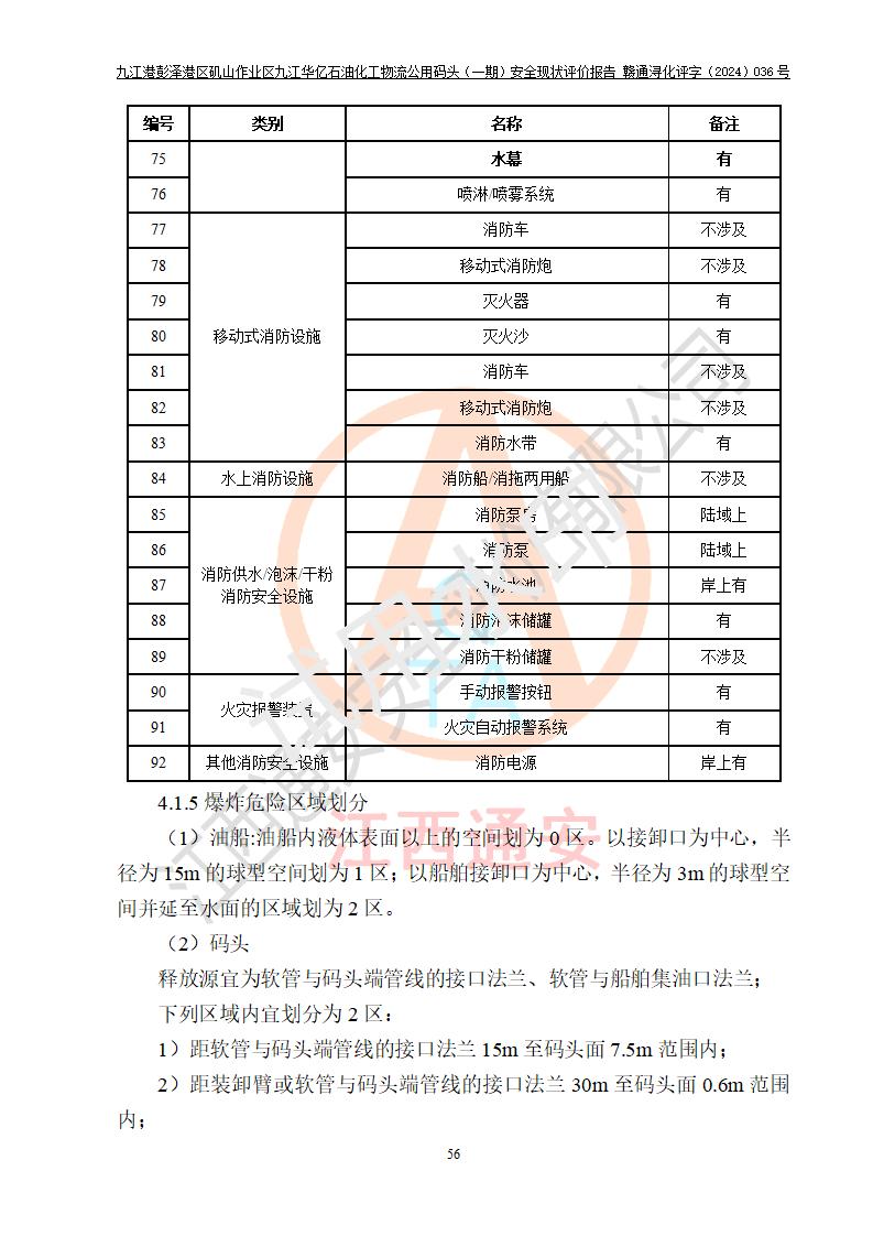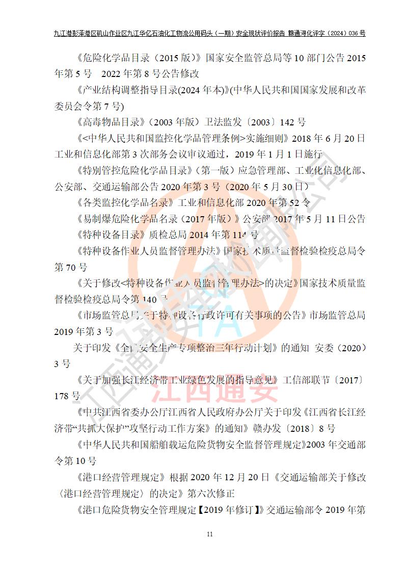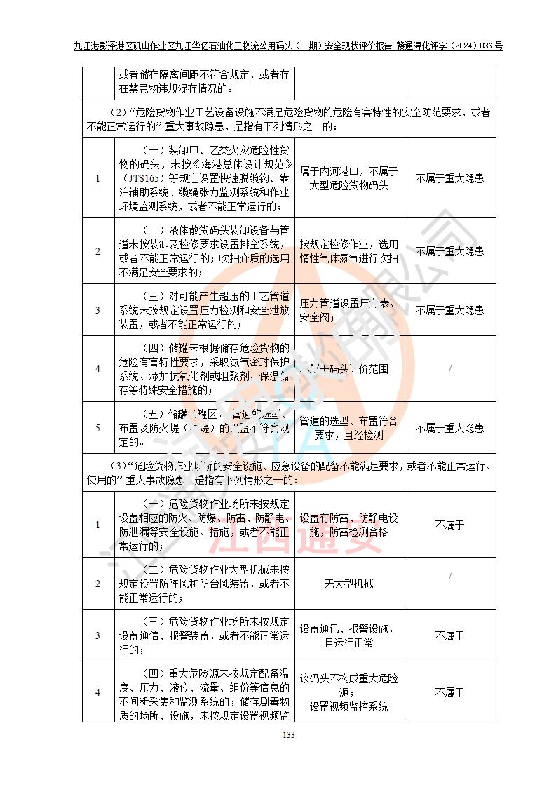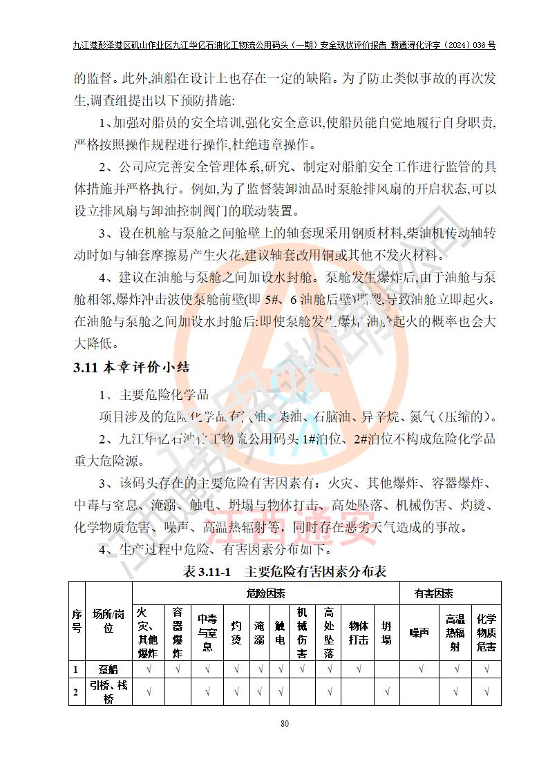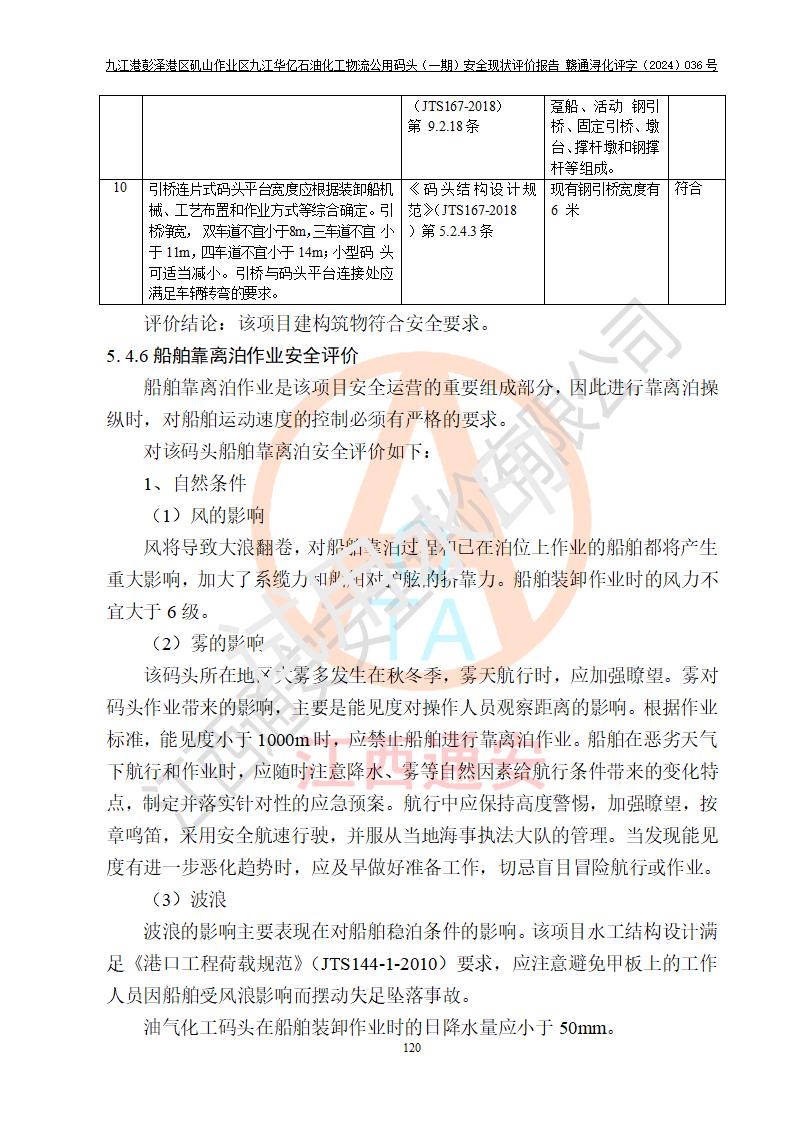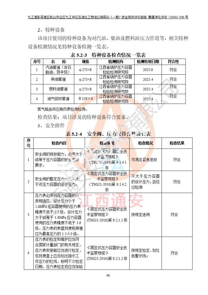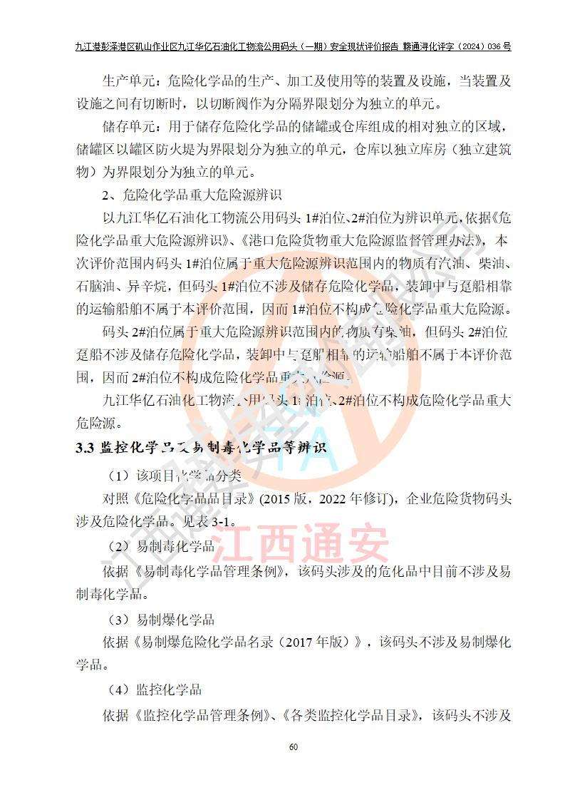 九江港彭澤港區(qū)磯山作業(yè)區(qū)九江華億石油化工物流公用碼頭(一期) 安全現(xiàn)狀評價報告