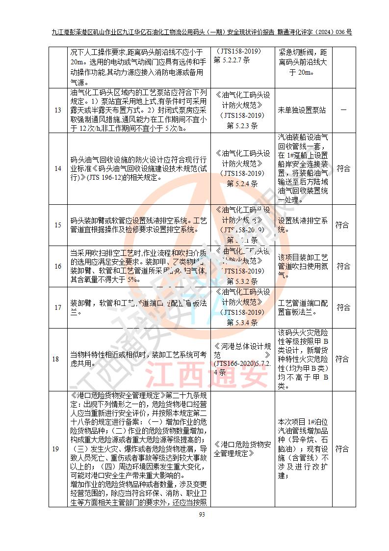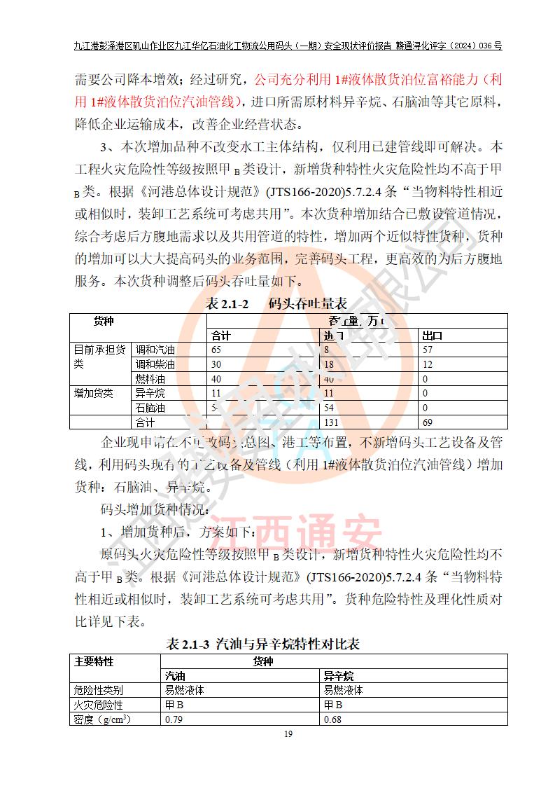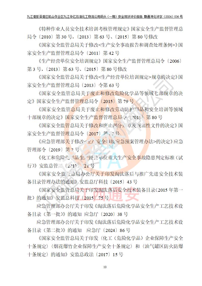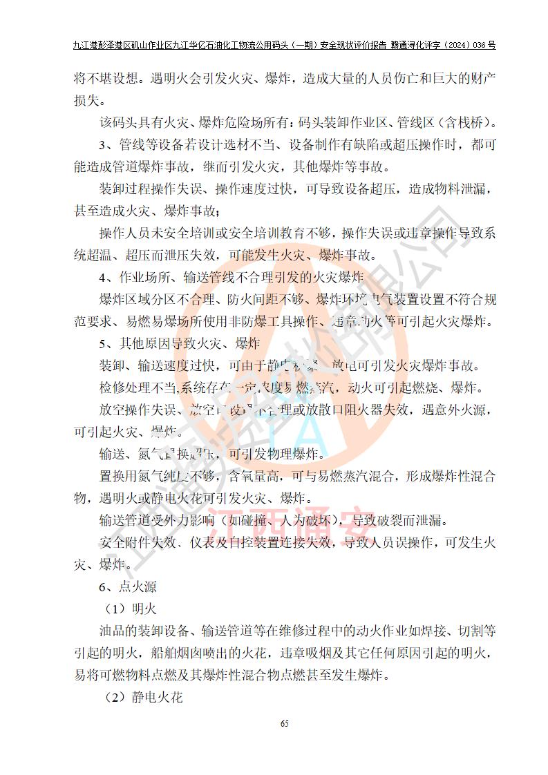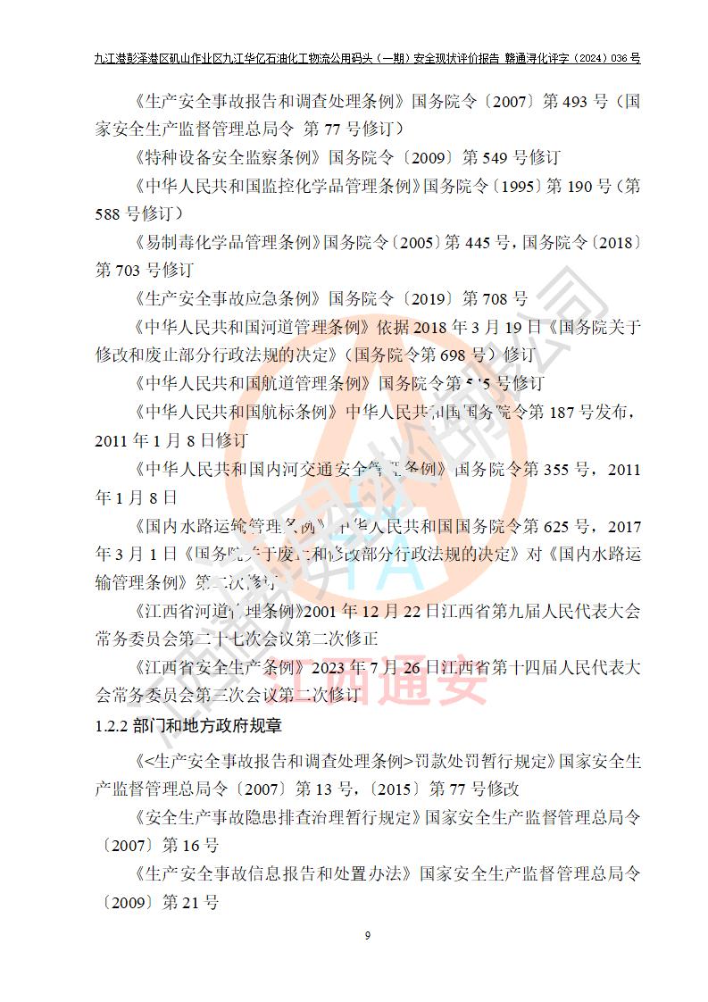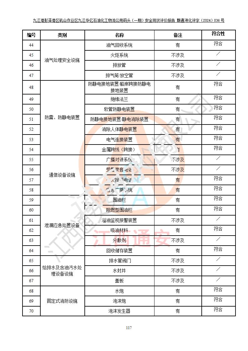 九江港彭澤港區(qū)磯山作業(yè)區(qū)九江華億石油化工物流公用碼頭(一期) 安全現(xiàn)狀評價報告