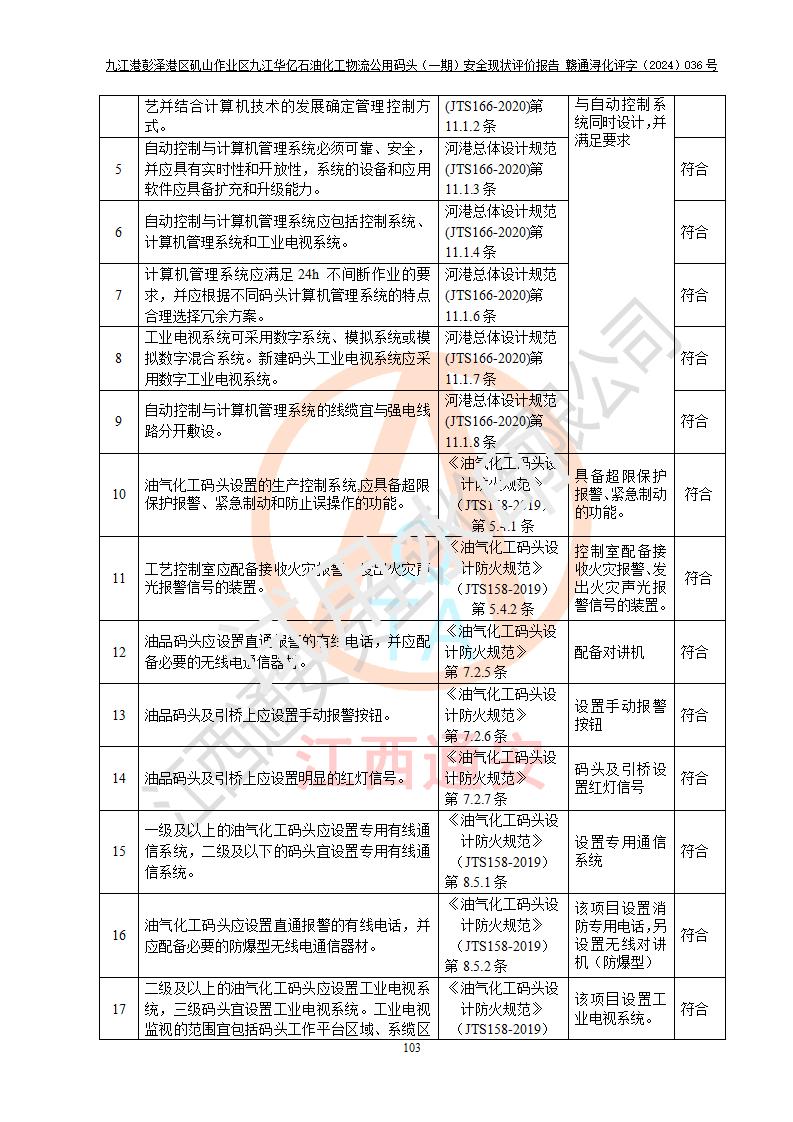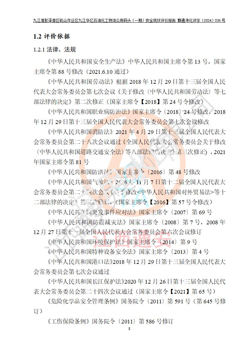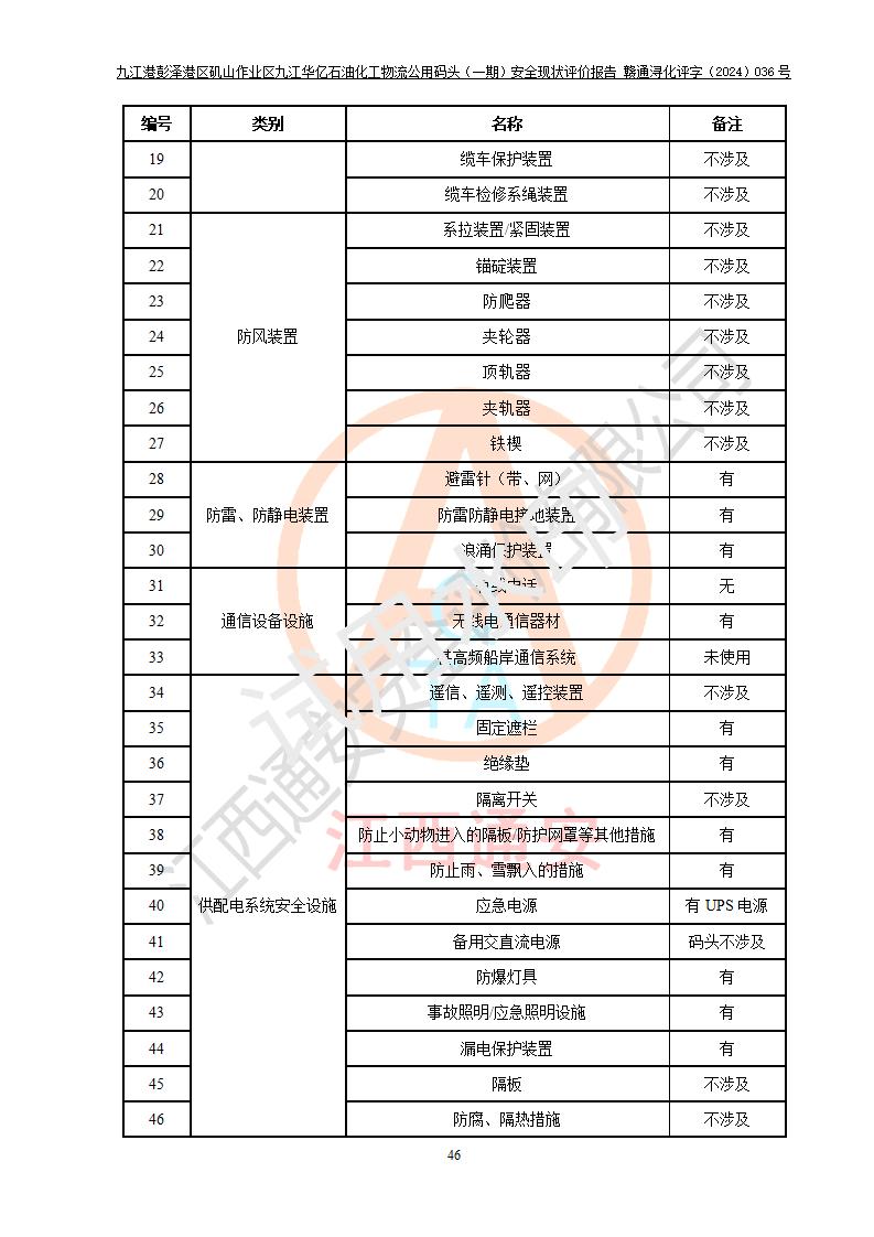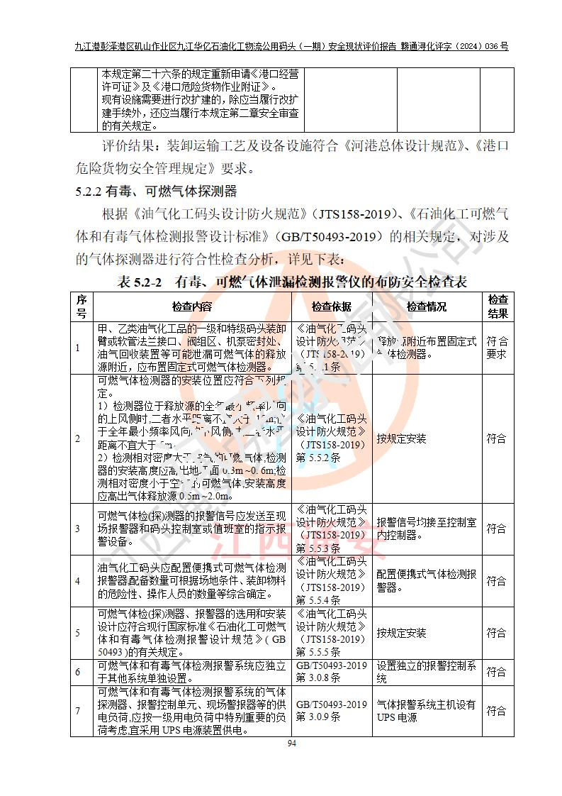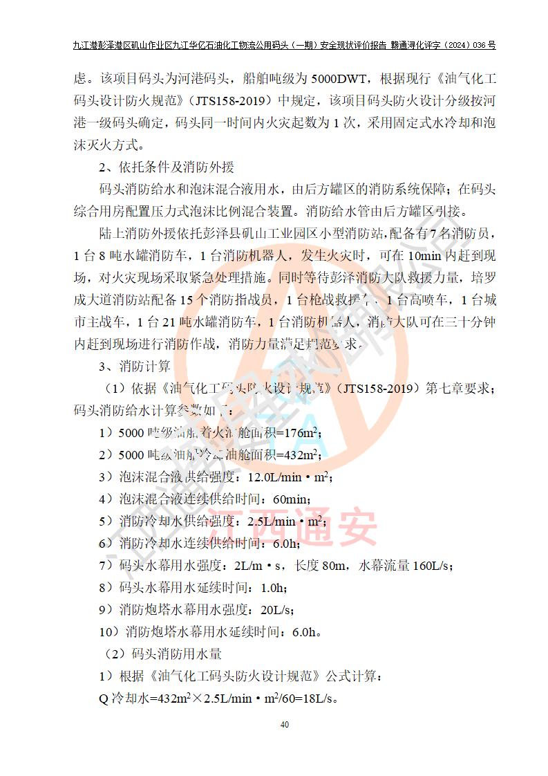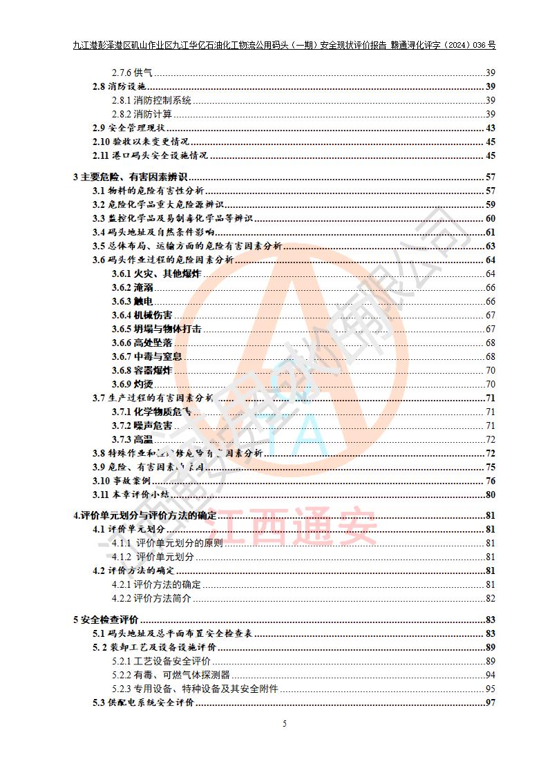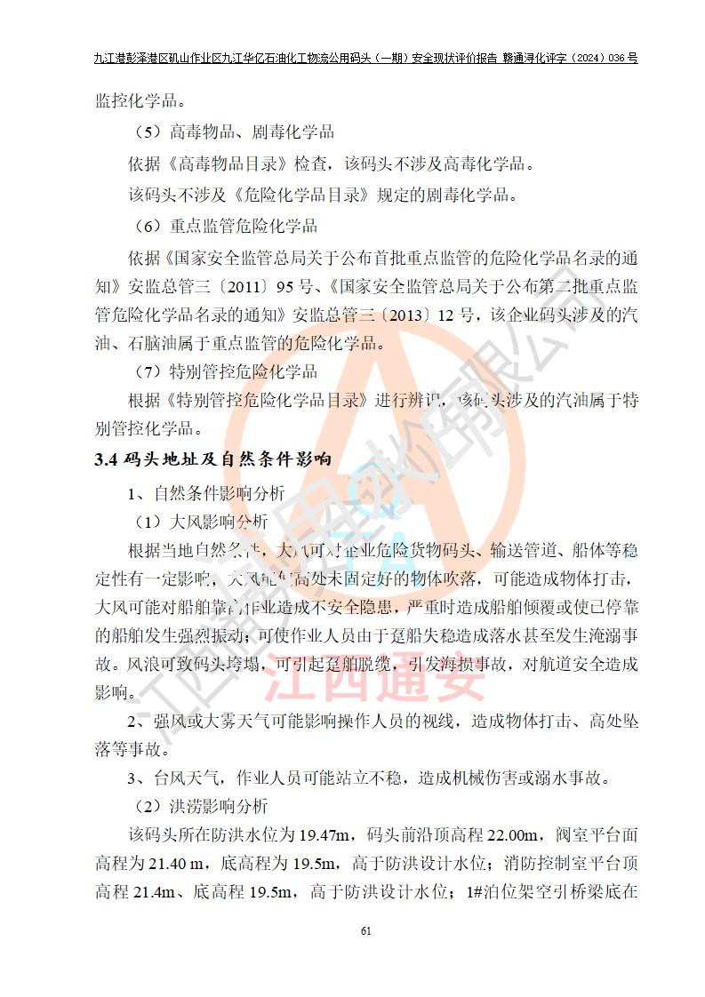 九江港彭澤港區(qū)磯山作業(yè)區(qū)九江華億石油化工物流公用碼頭(一期) 安全現(xiàn)狀評價報告