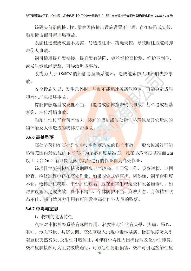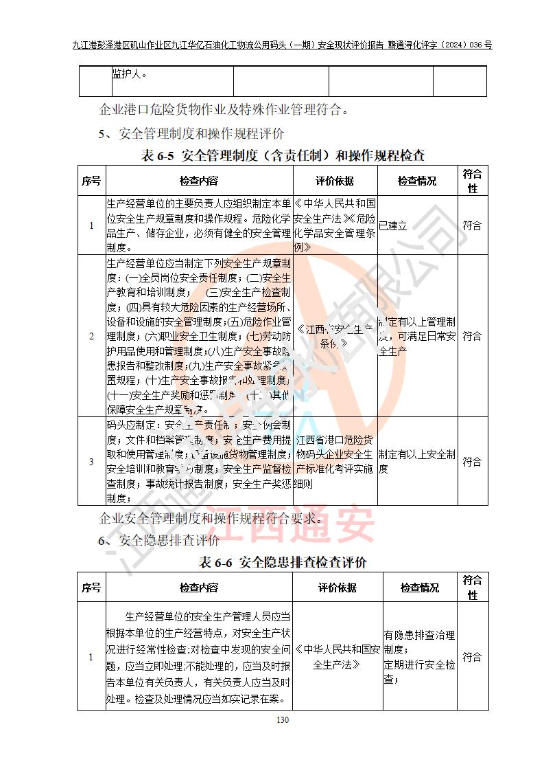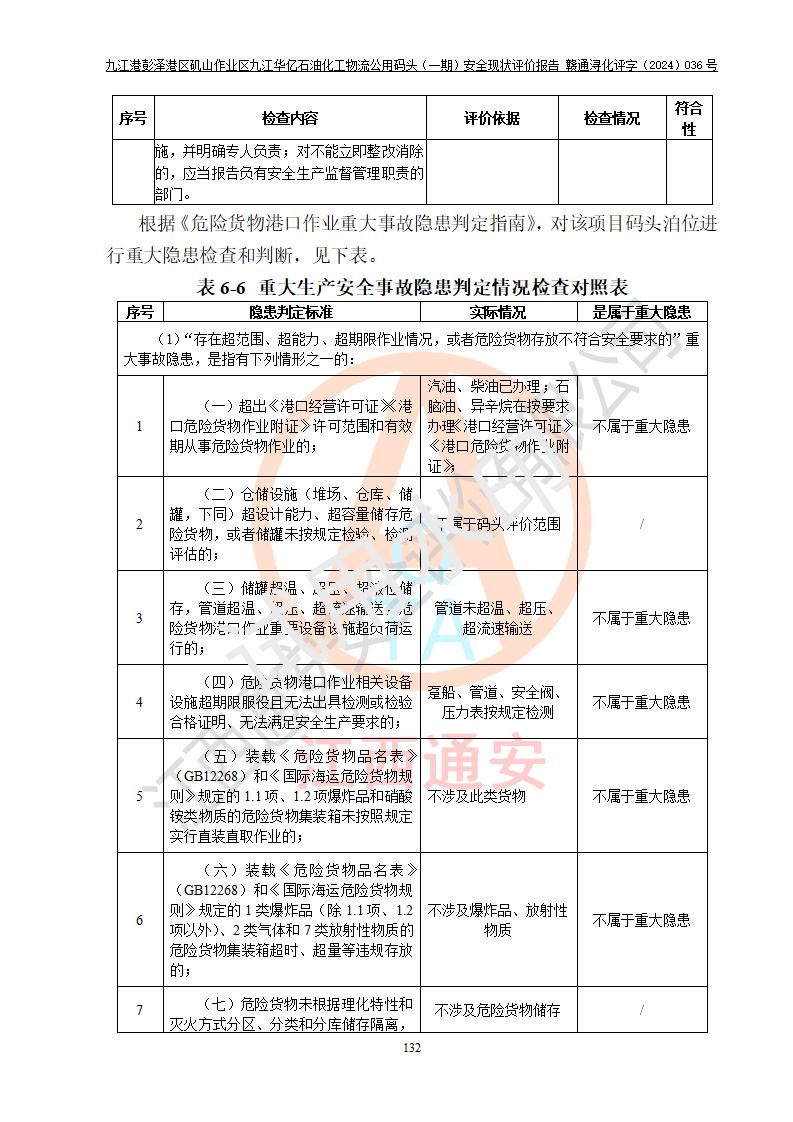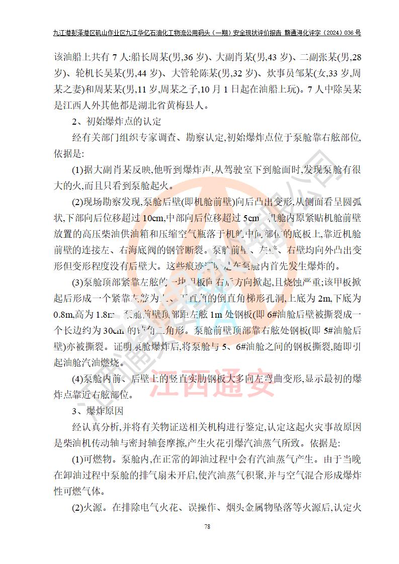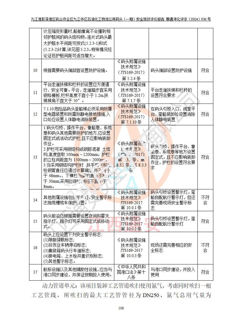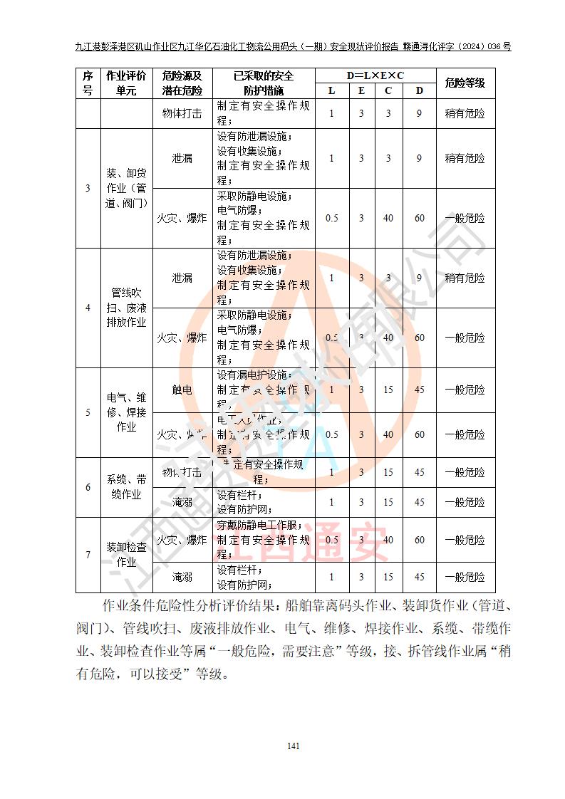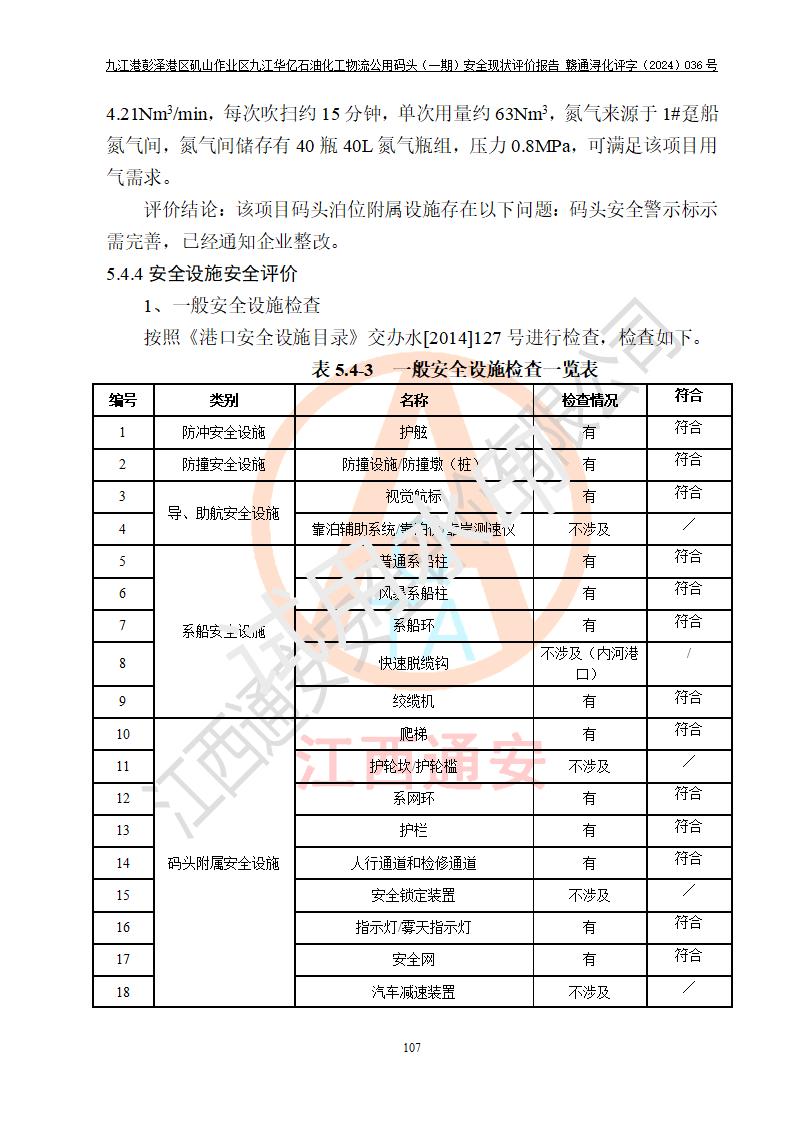 九江港彭澤港區(qū)磯山作業(yè)區(qū)九江華億石油化工物流公用碼頭(一期) 安全現(xiàn)狀評價報告