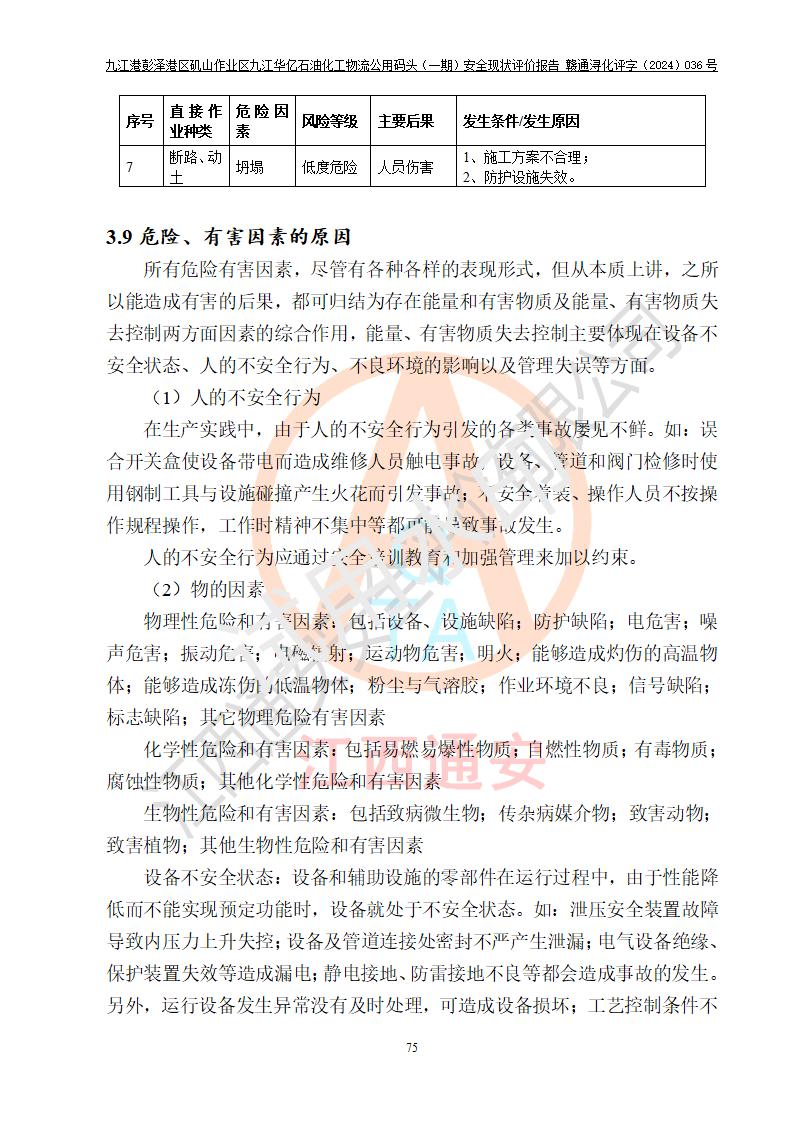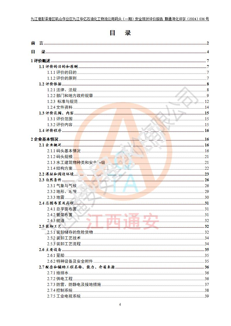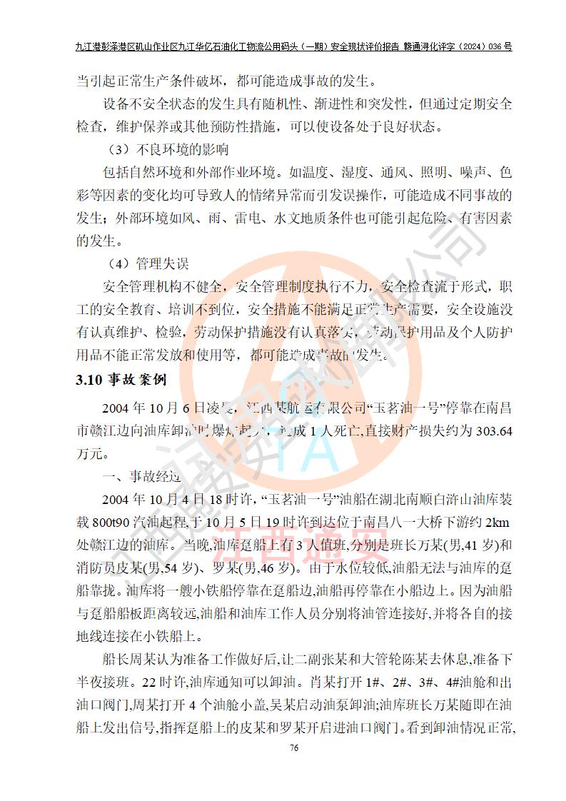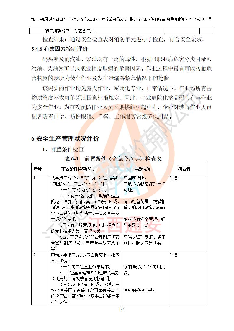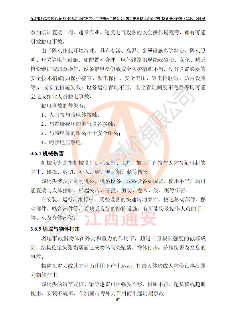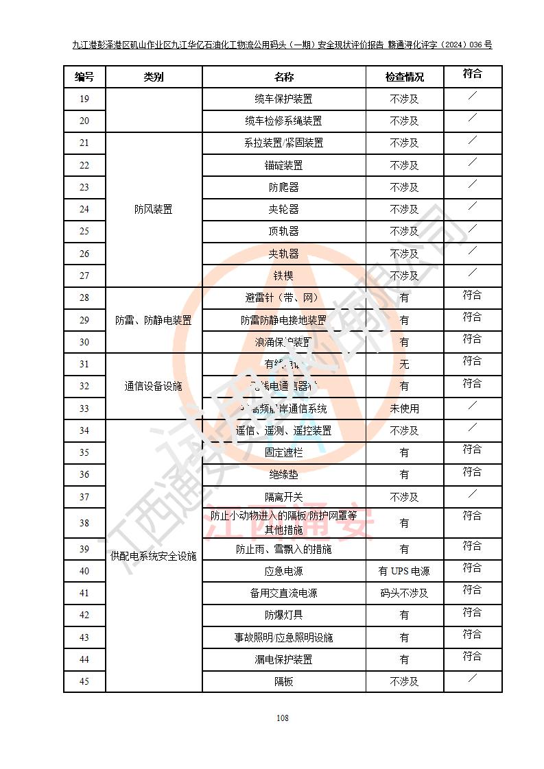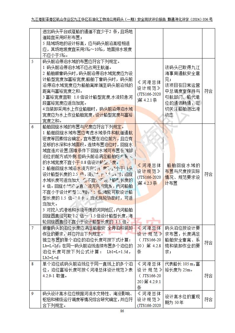 九江港彭澤港區(qū)磯山作業(yè)區(qū)九江華億石油化工物流公用碼頭(一期) 安全現(xiàn)狀評價報告