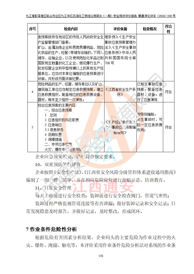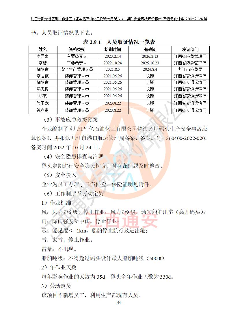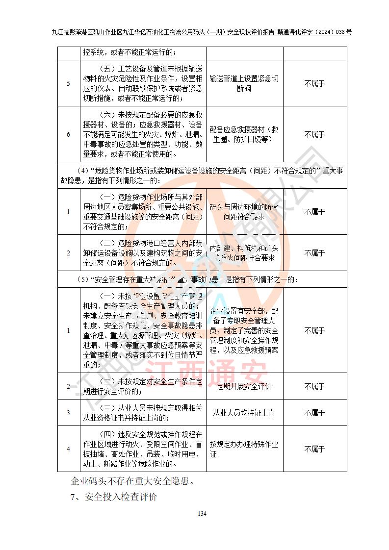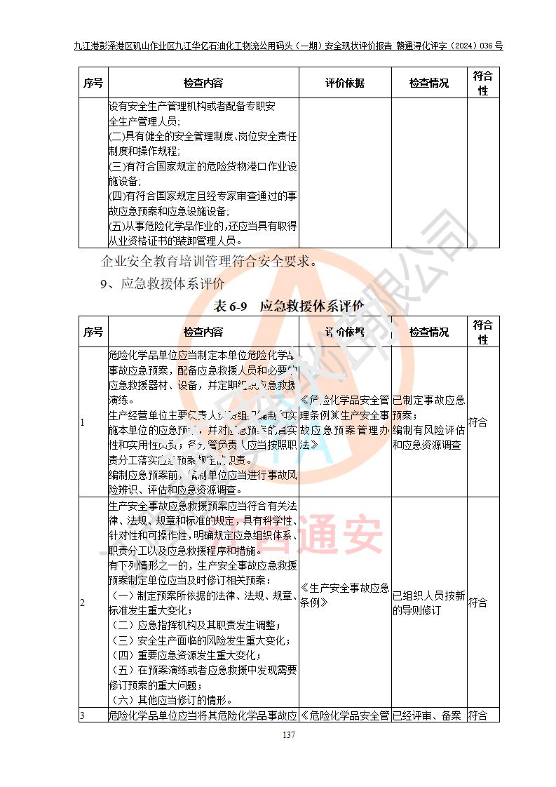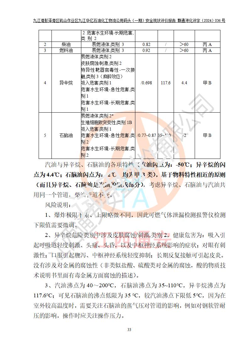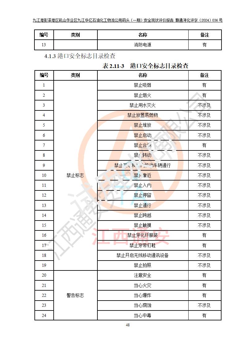 九江港彭澤港區(qū)磯山作業(yè)區(qū)九江華億石油化工物流公用碼頭(一期) 安全現(xiàn)狀評價報告