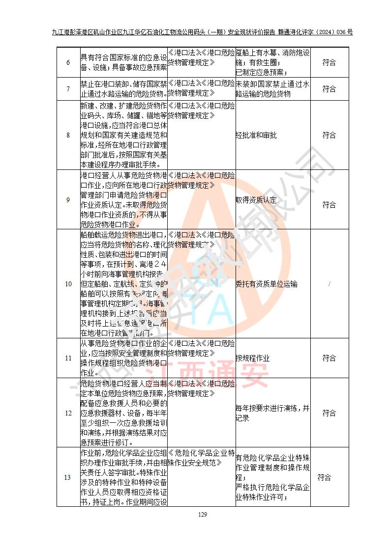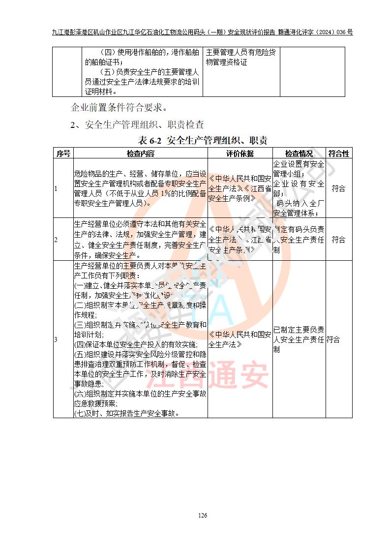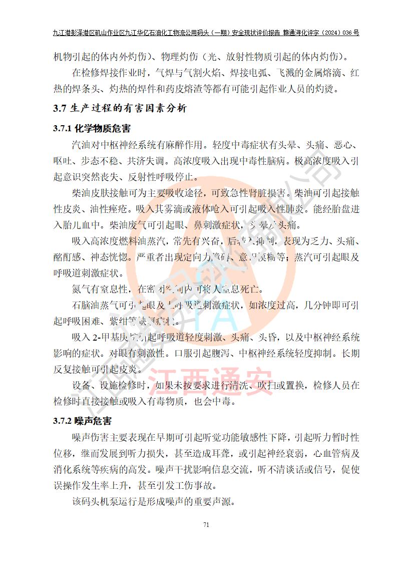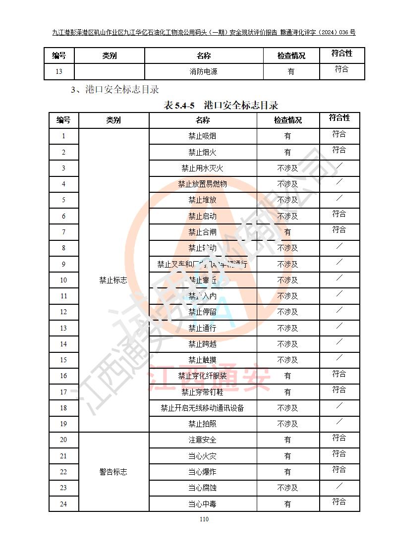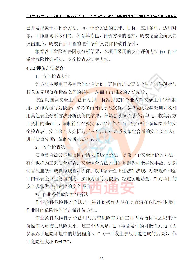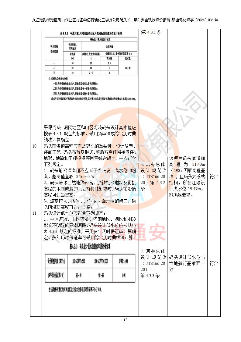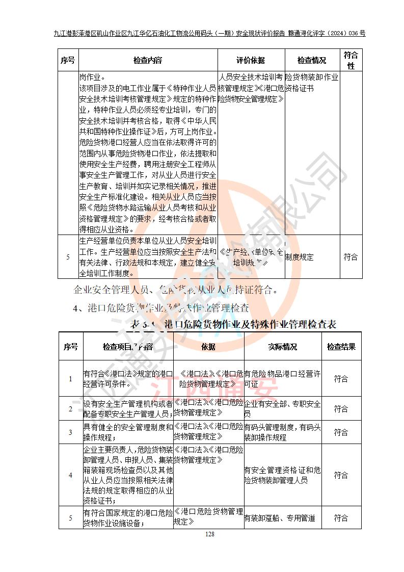 九江港彭澤港區(qū)磯山作業(yè)區(qū)九江華億石油化工物流公用碼頭(一期) 安全現(xiàn)狀評價報告