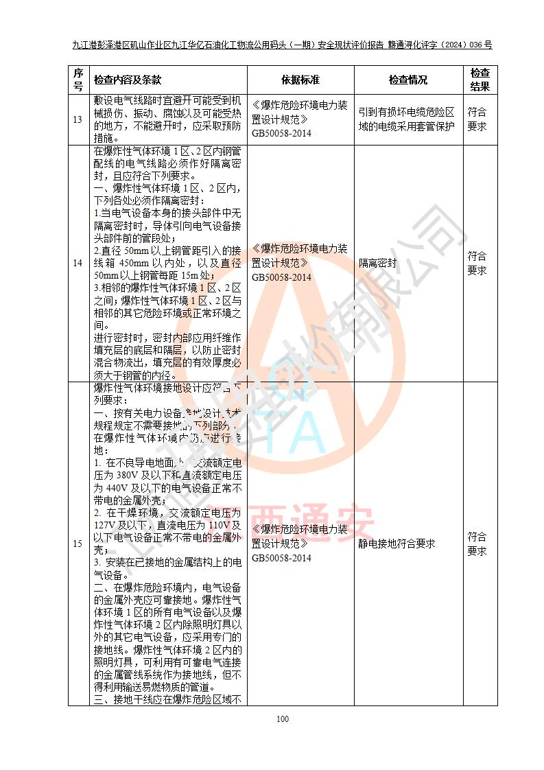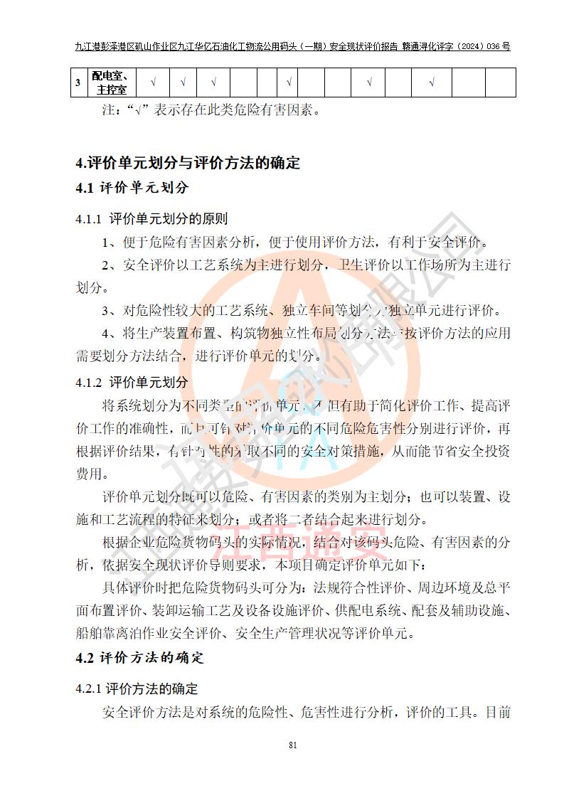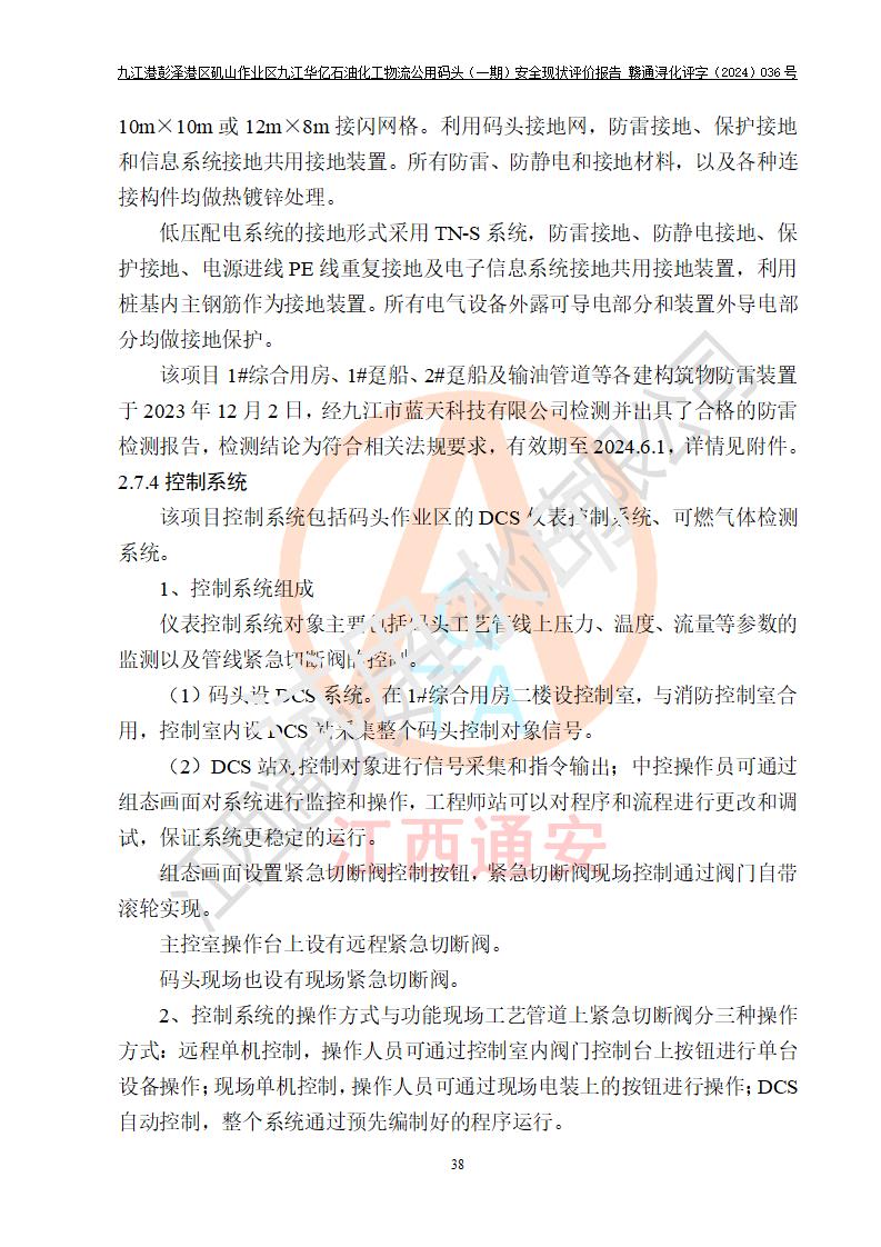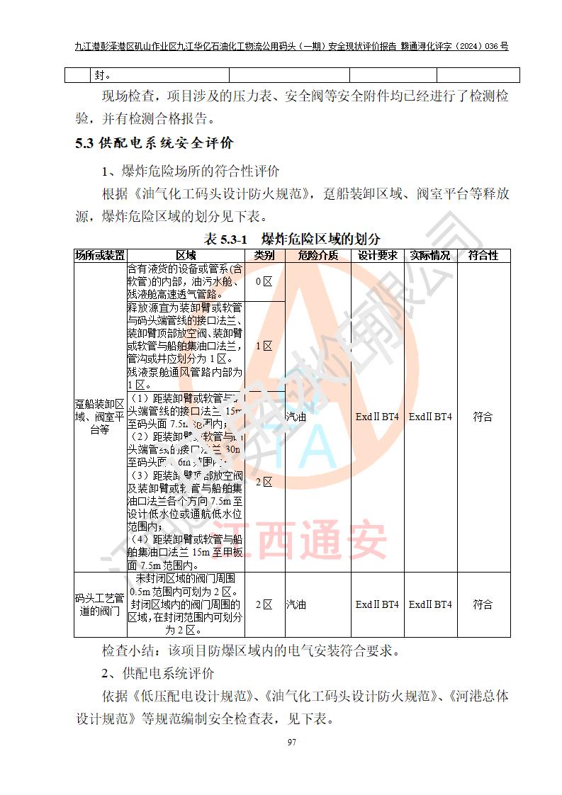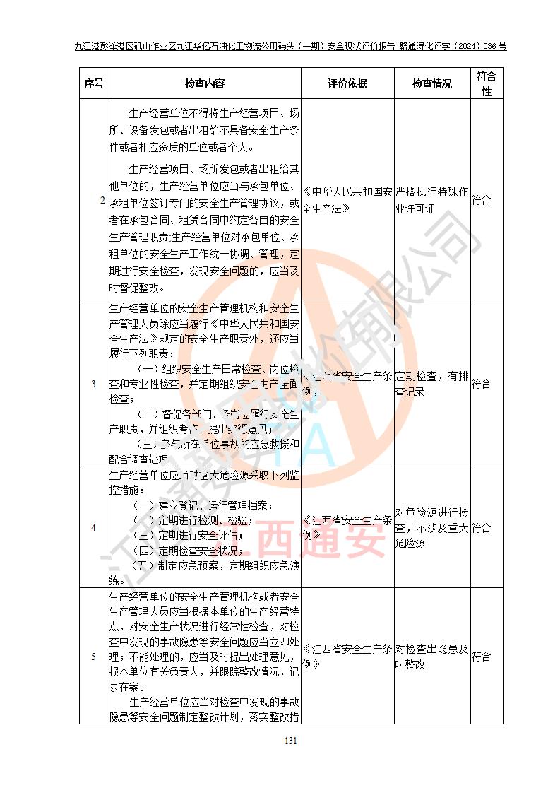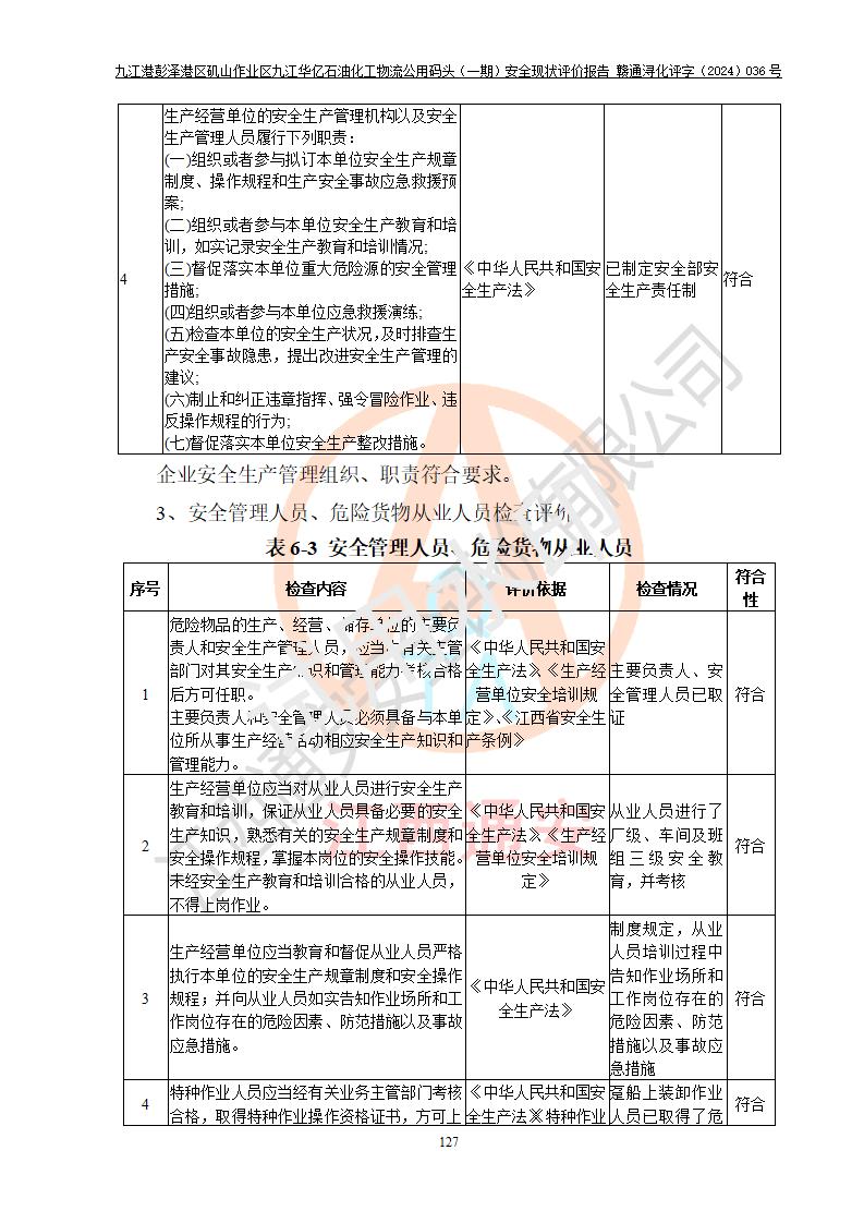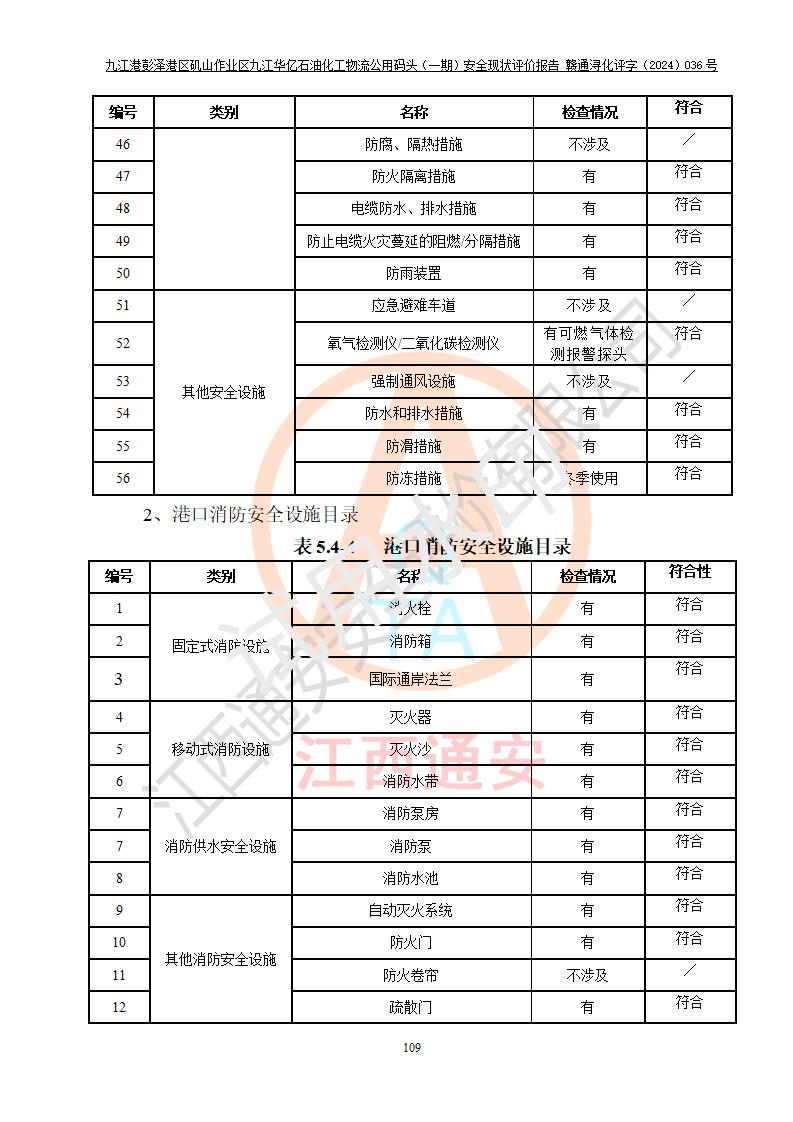 九江港彭澤港區(qū)磯山作業(yè)區(qū)九江華億石油化工物流公用碼頭(一期) 安全現(xiàn)狀評價報告