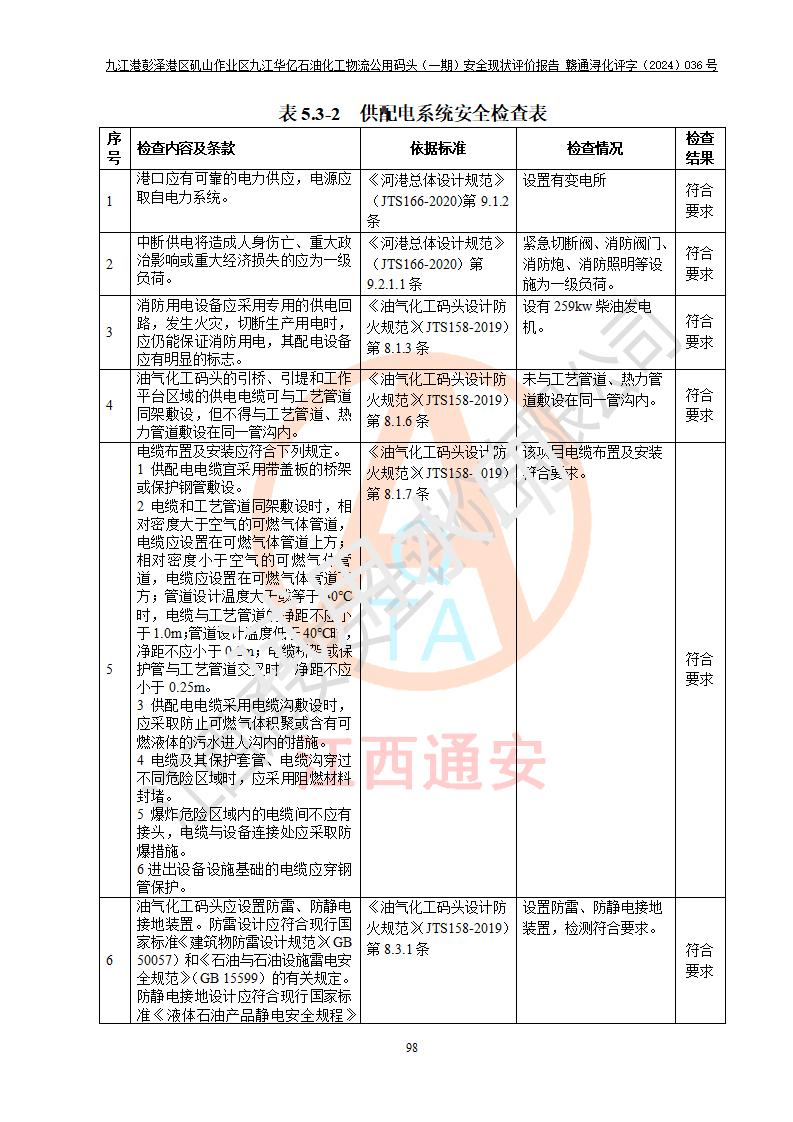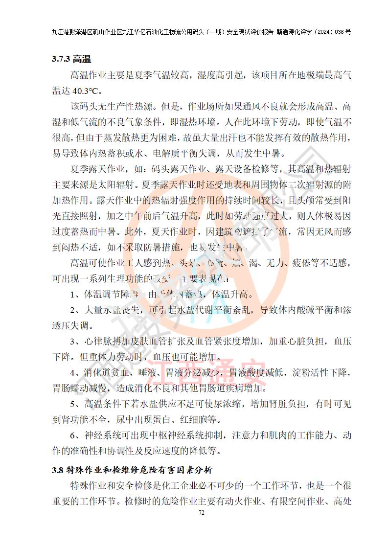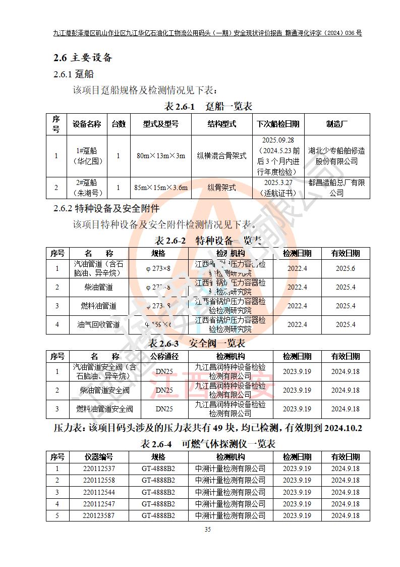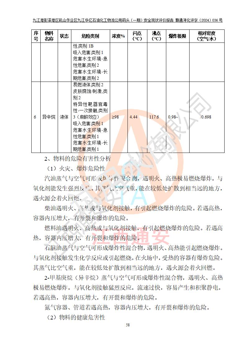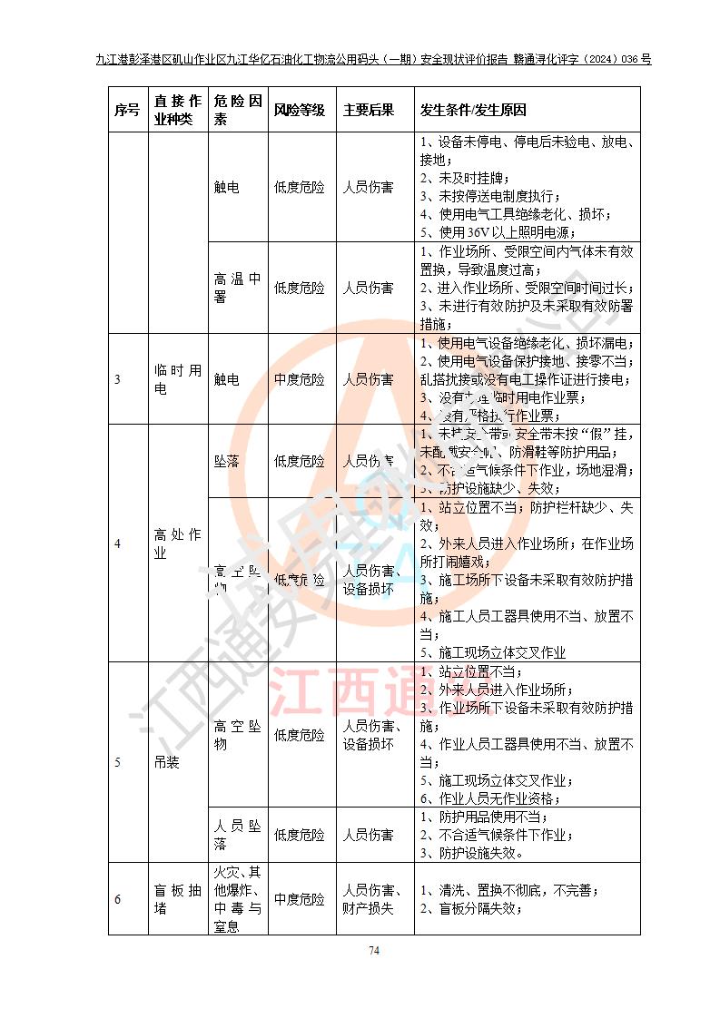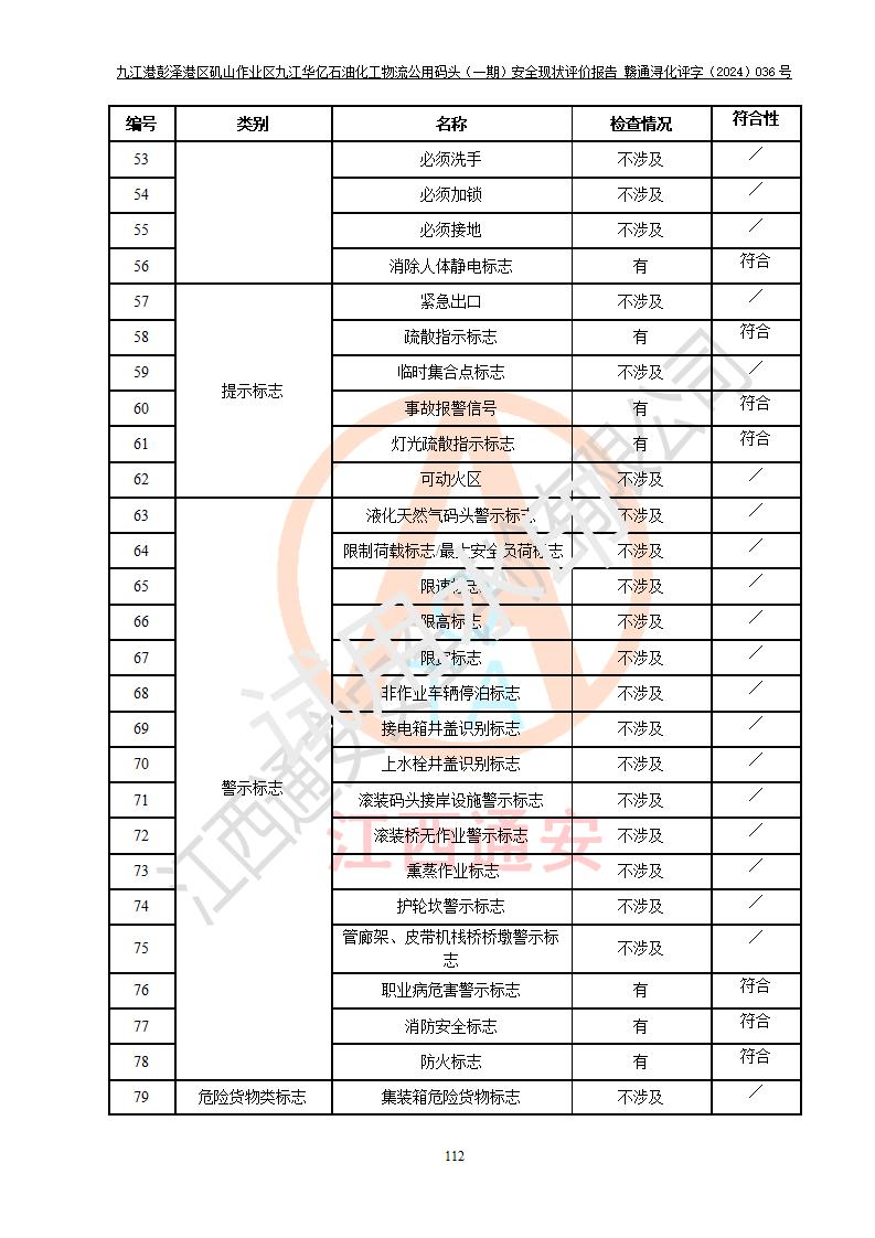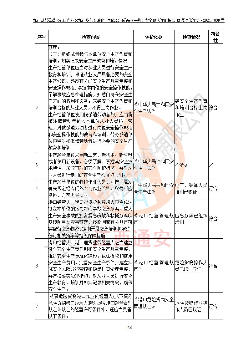 九江港彭澤港區(qū)磯山作業(yè)區(qū)九江華億石油化工物流公用碼頭(一期) 安全現(xiàn)狀評價報告