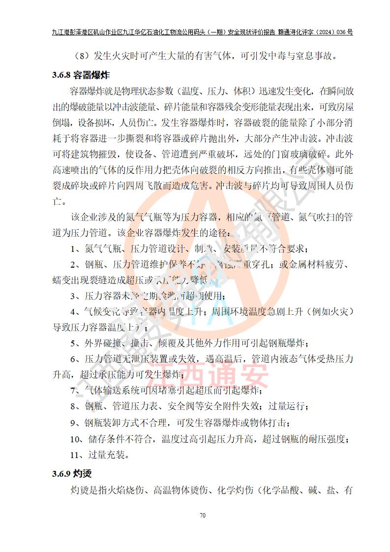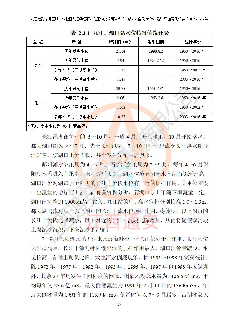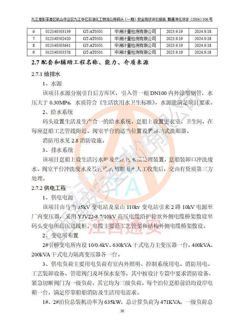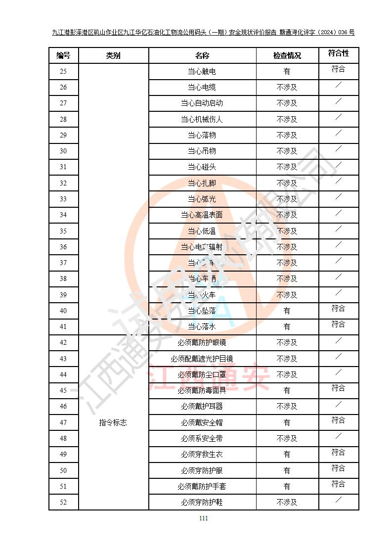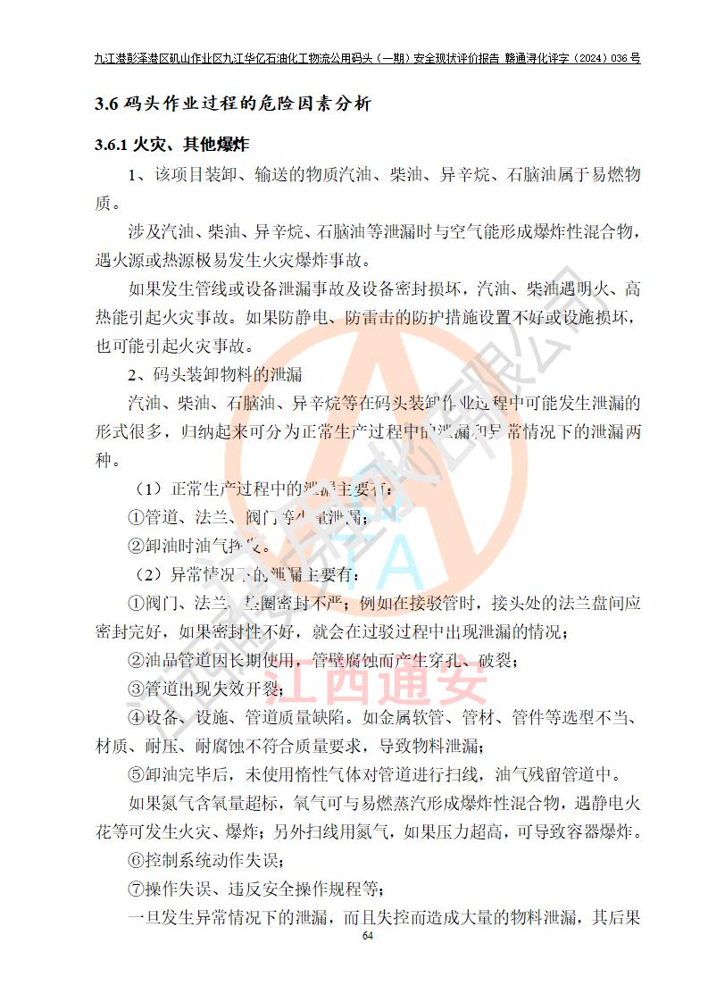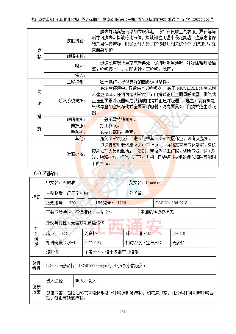 九江港彭澤港區(qū)磯山作業(yè)區(qū)九江華億石油化工物流公用碼頭(一期) 安全現(xiàn)狀評價報告