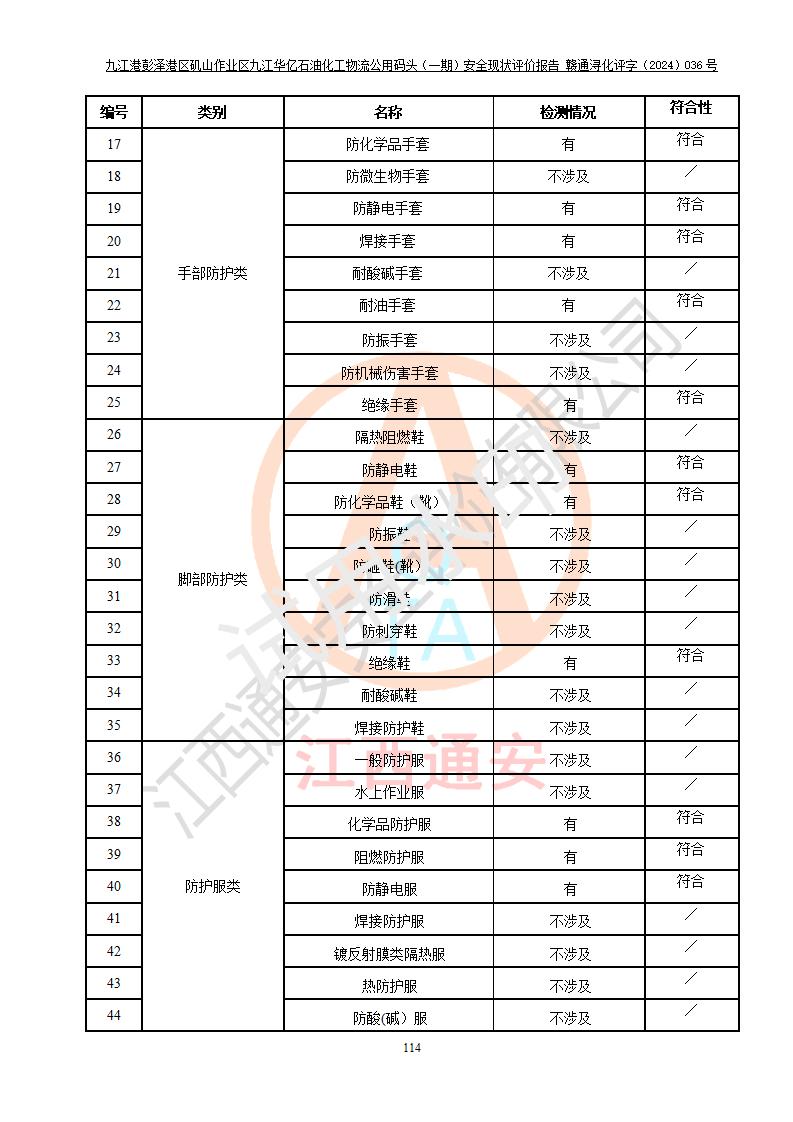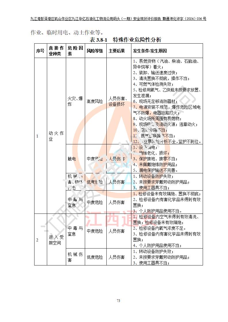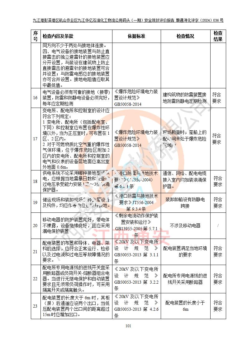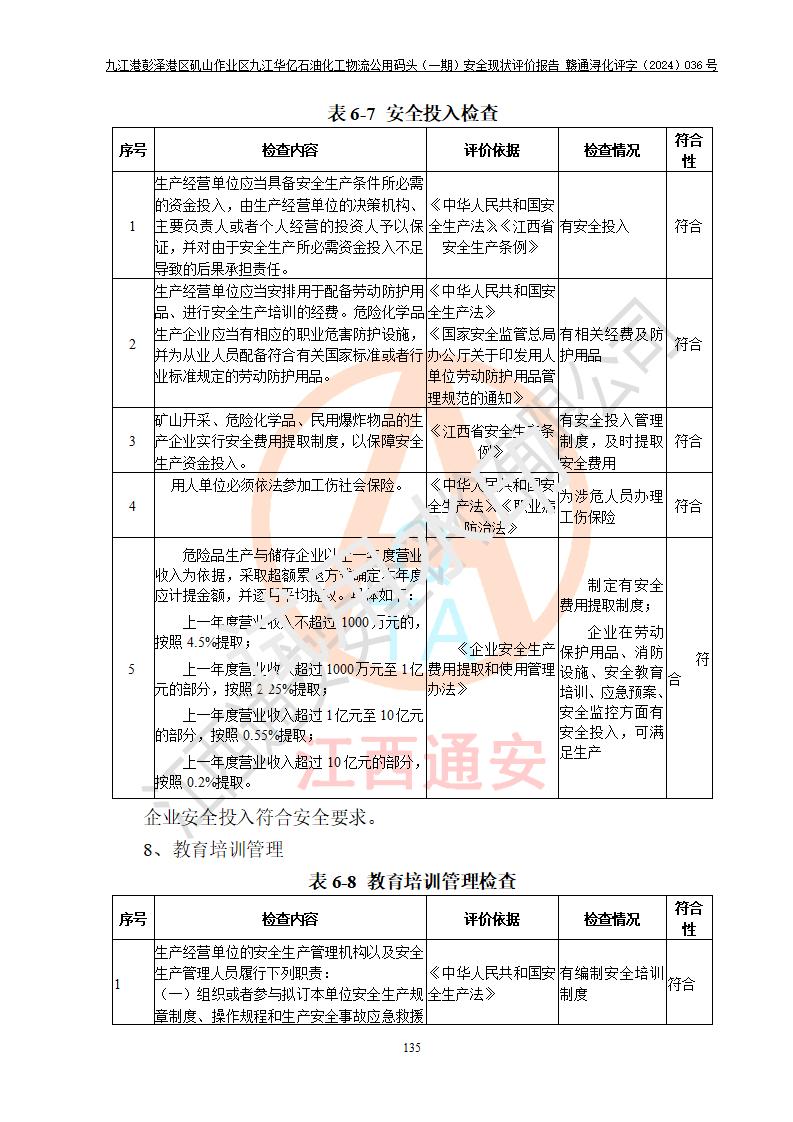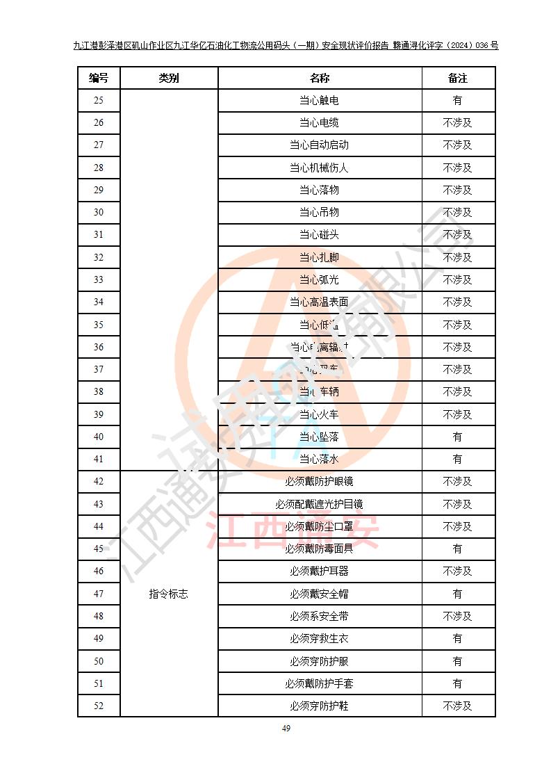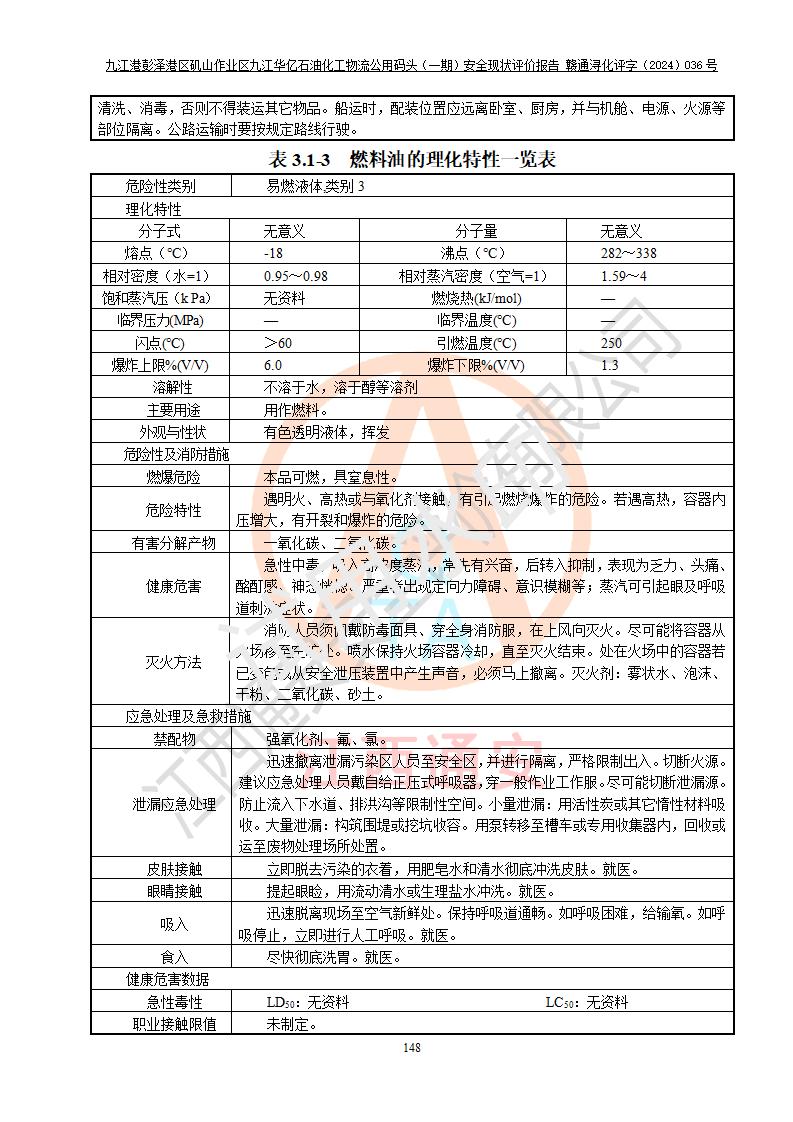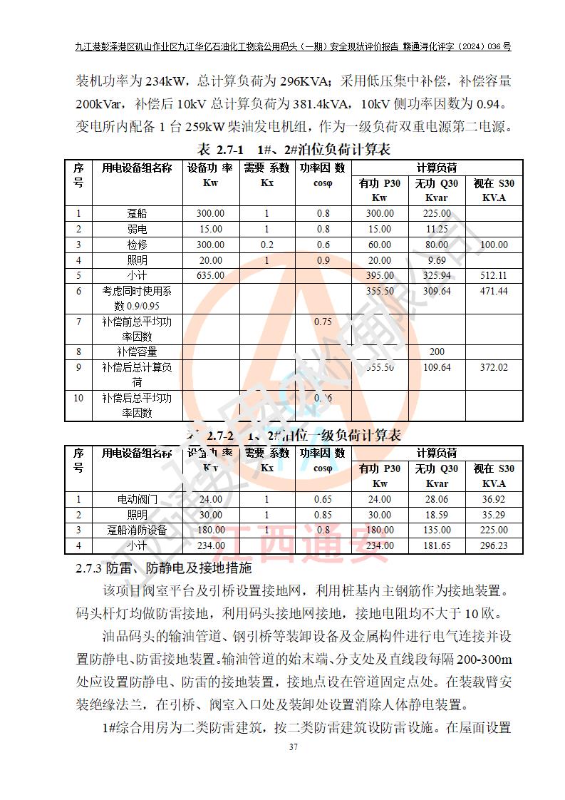 九江港彭澤港區(qū)磯山作業(yè)區(qū)九江華億石油化工物流公用碼頭(一期) 安全現(xiàn)狀評價報告