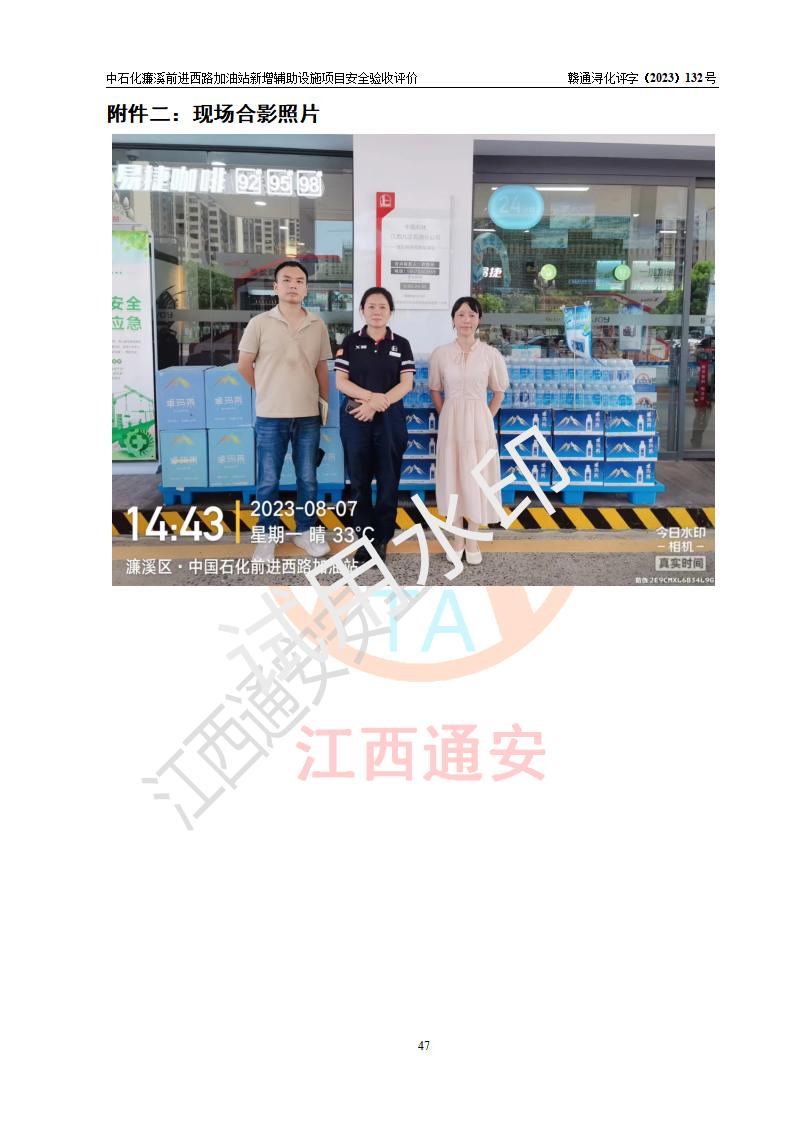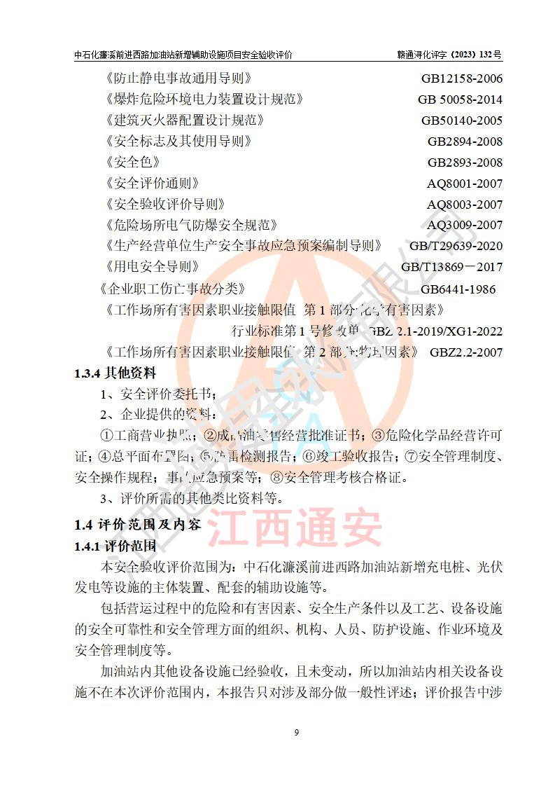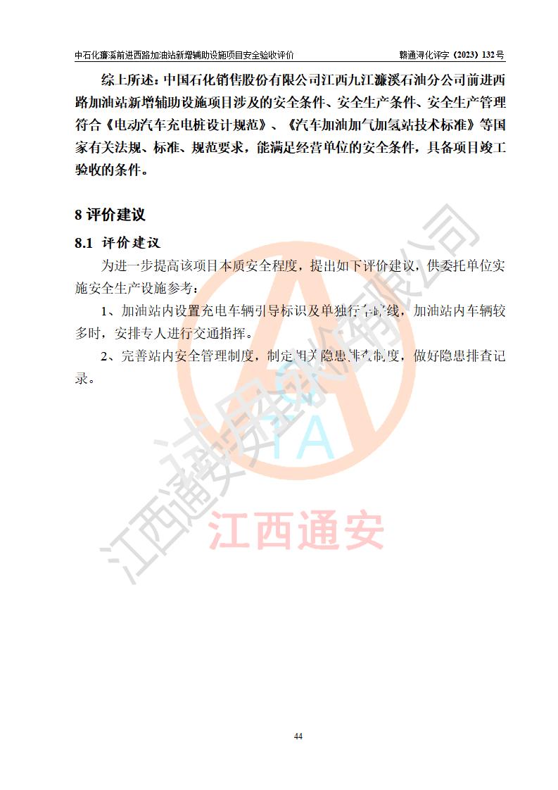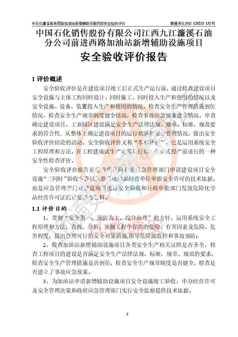 評(píng)價(jià)報(bào)告名稱 | 中國石化銷售股份有限公司江西九江濂溪石油分公司前進(jìn)西路加油站新增輔助設(shè)施項(xiàng)目安全驗(yàn)收評(píng)價(jià)報(bào)告 | |||