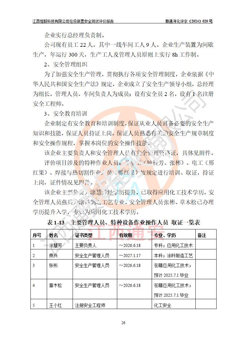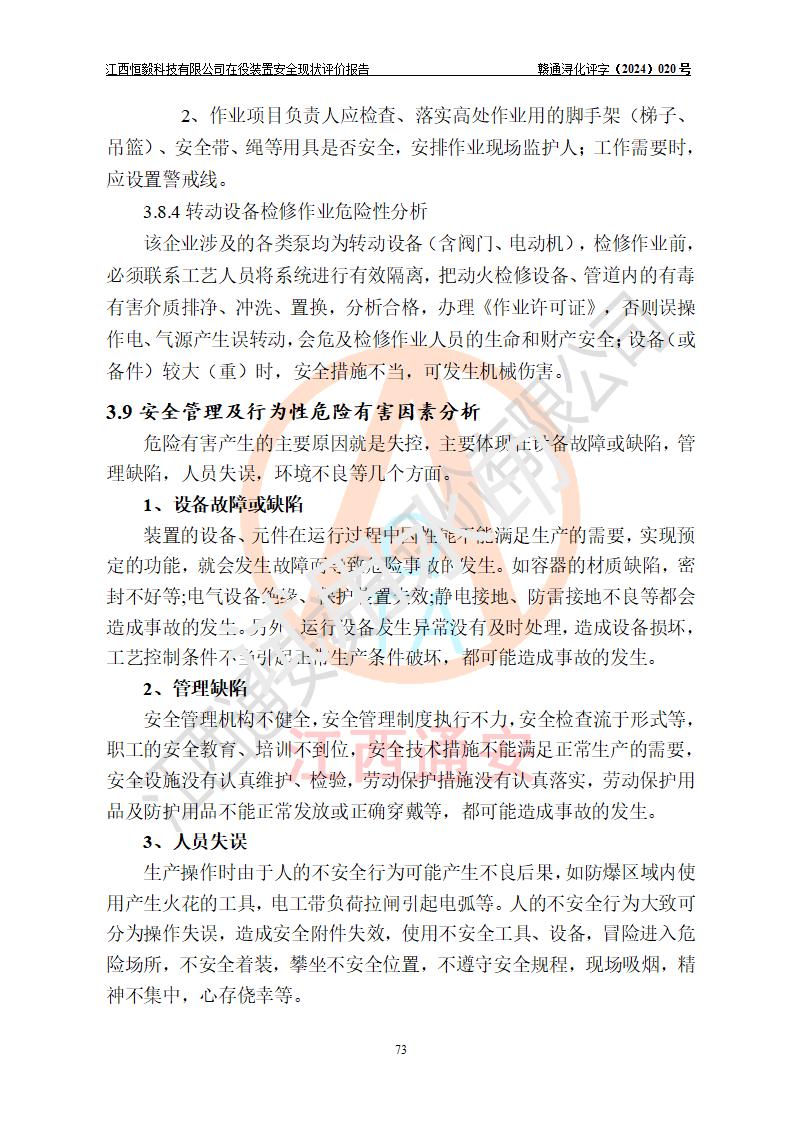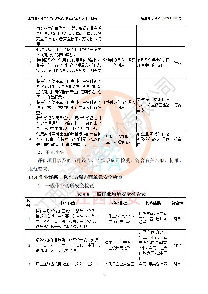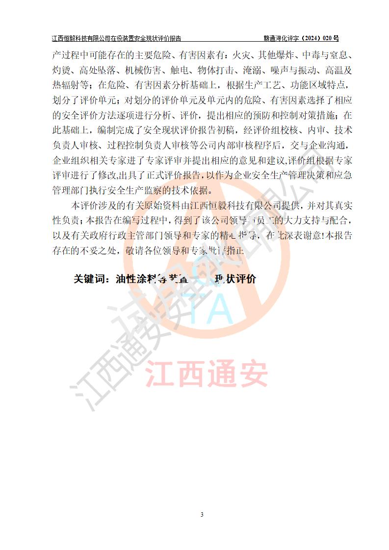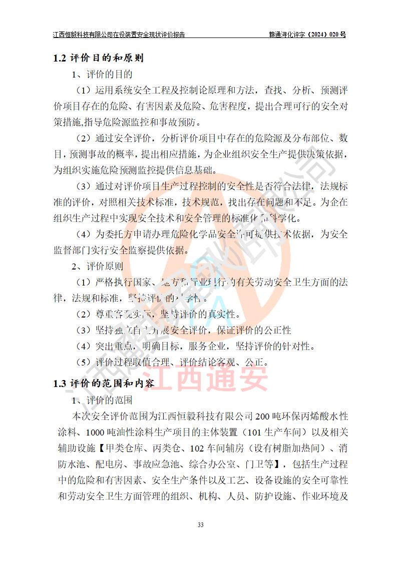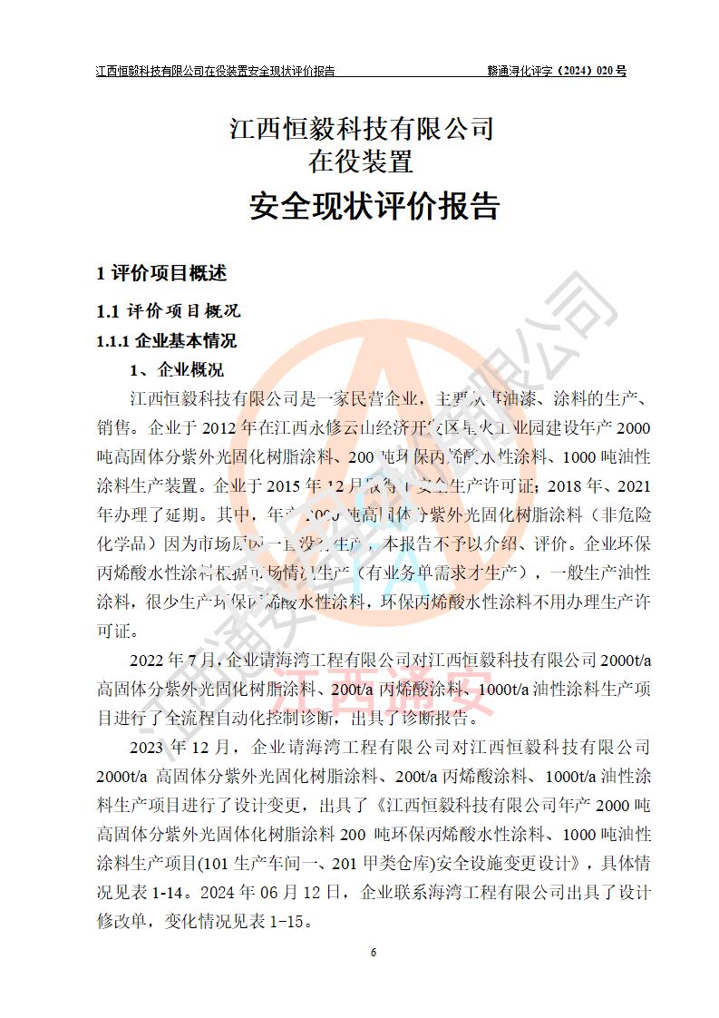 評(píng)價(jià)報(bào)告名稱 | 江西恒毅科技有限公司在役裝置安全現(xiàn)狀評(píng)價(jià)報(bào)告 | ||||