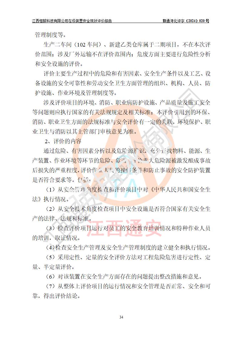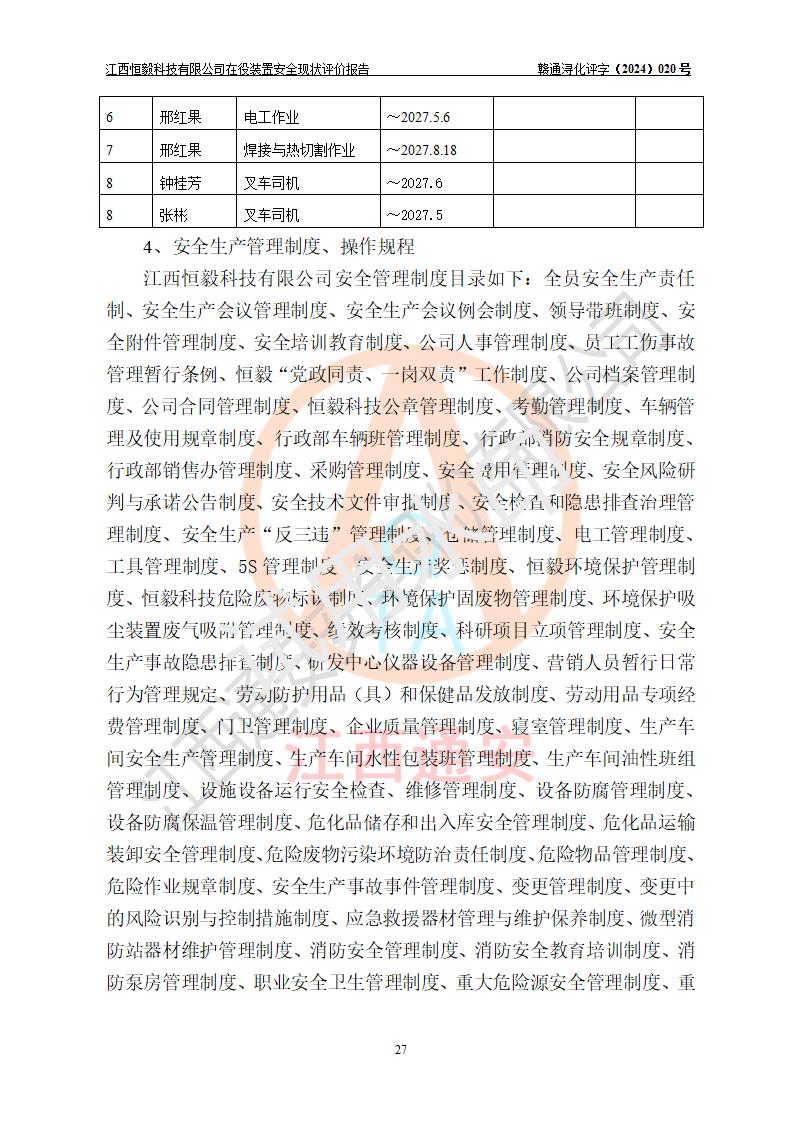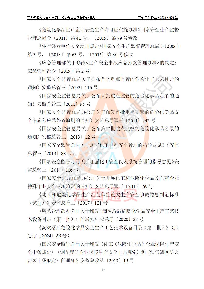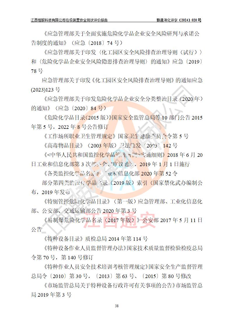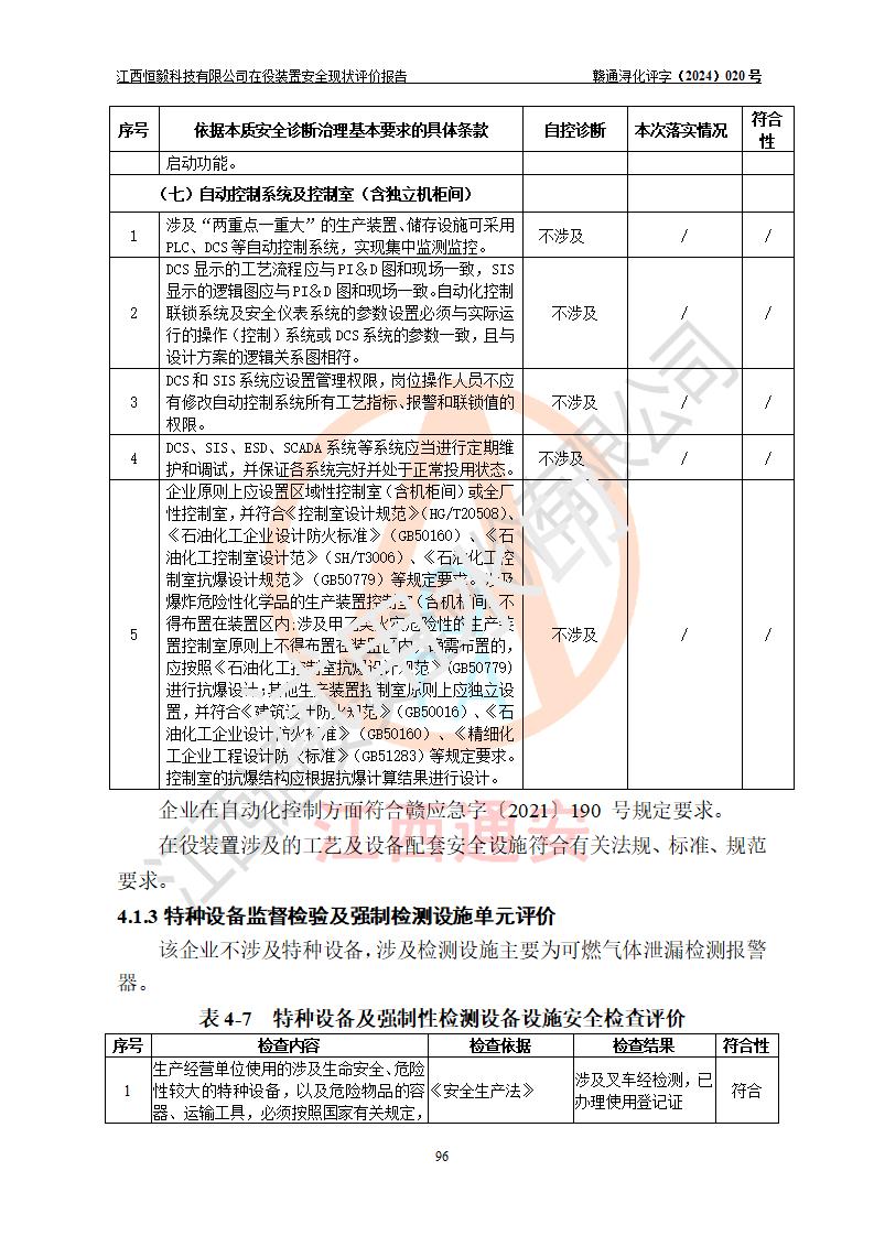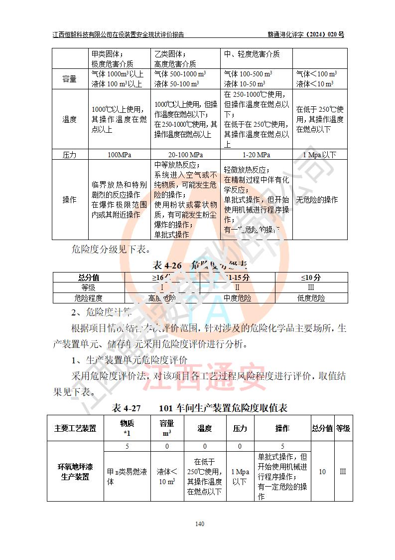 評(píng)價(jià)報(bào)告名稱 | 江西恒毅科技有限公司在役裝置安全現(xiàn)狀評(píng)價(jià)報(bào)告 | ||||