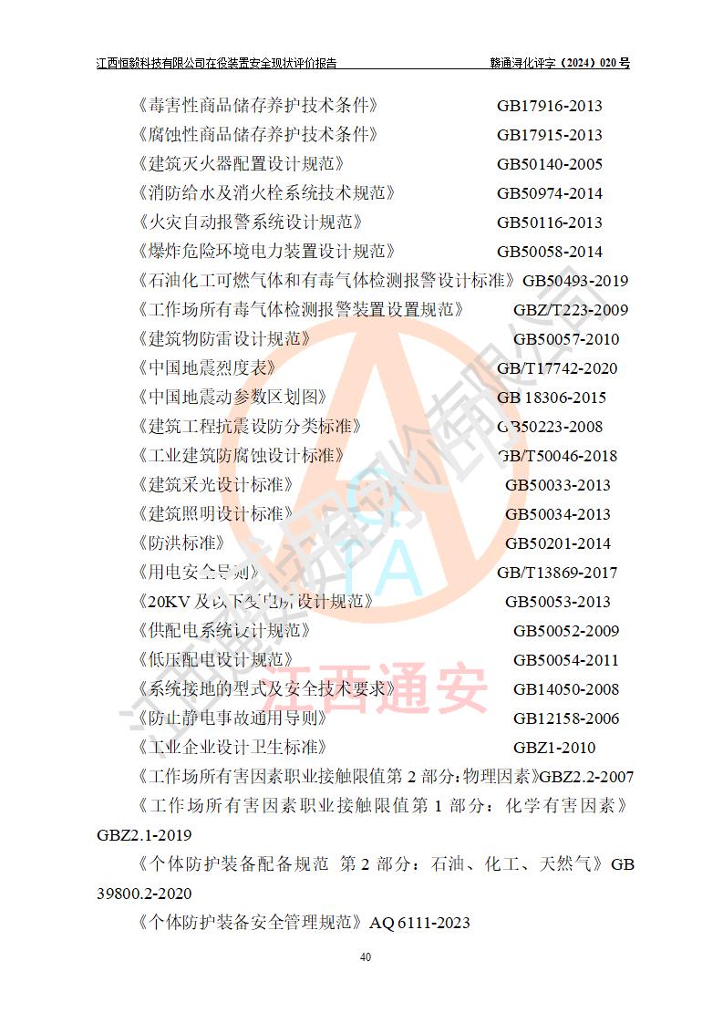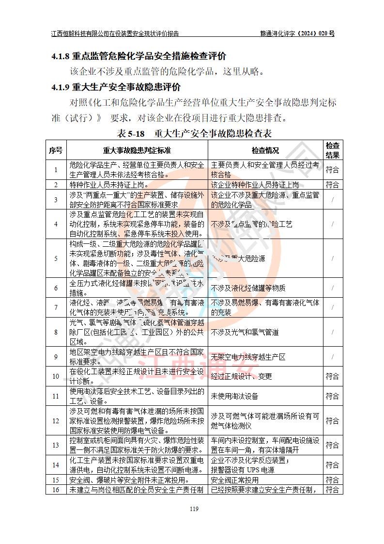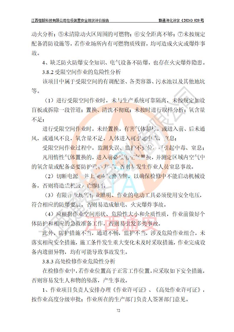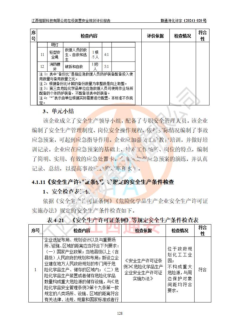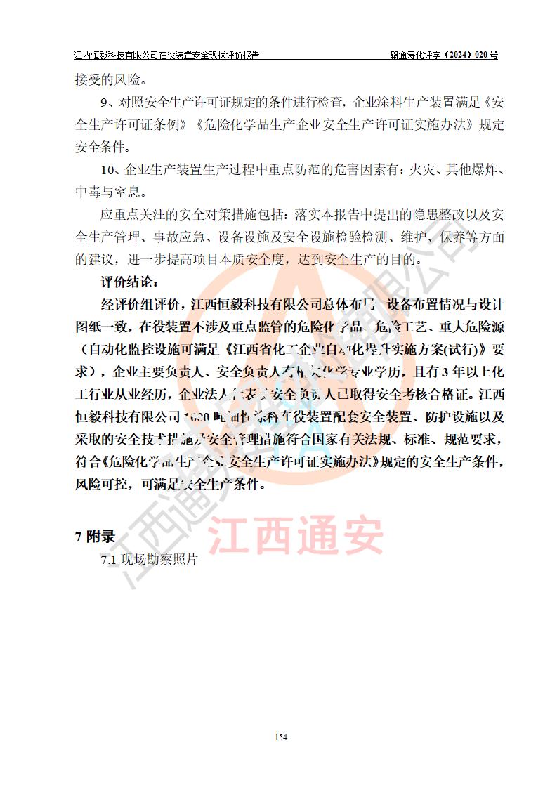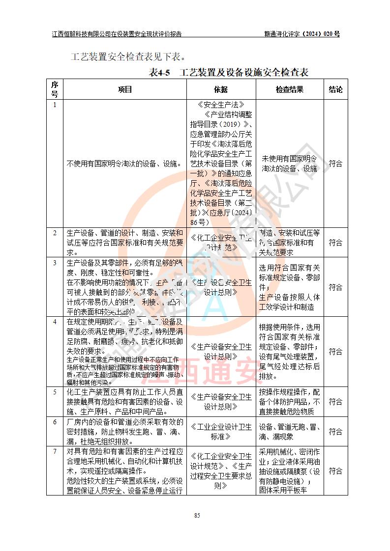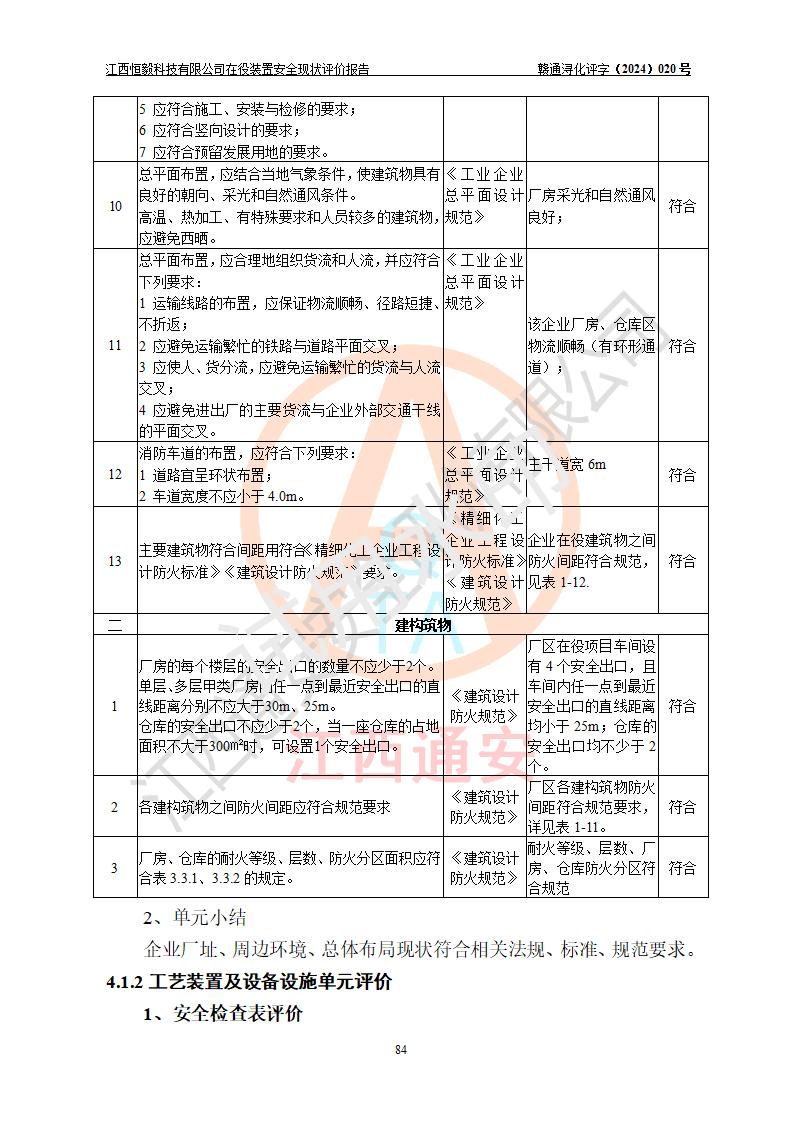評(píng)價(jià)報(bào)告名稱 | 江西恒毅科技有限公司在役裝置安全現(xiàn)狀評(píng)價(jià)報(bào)告 | ||||
