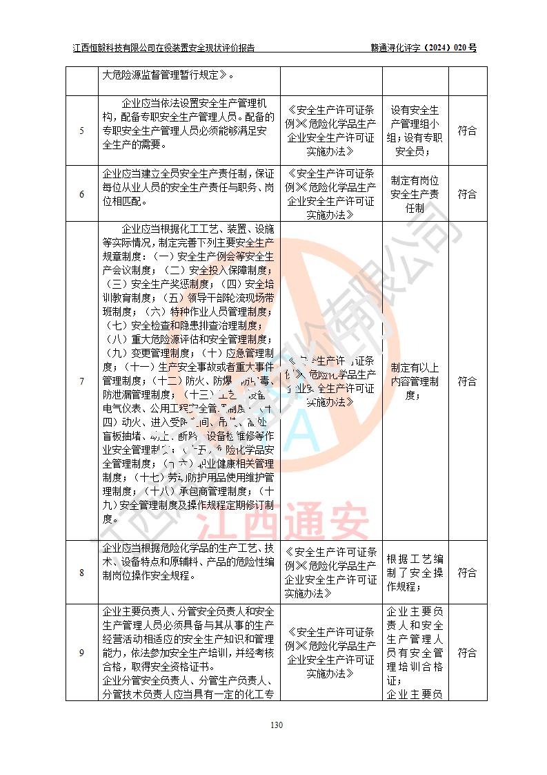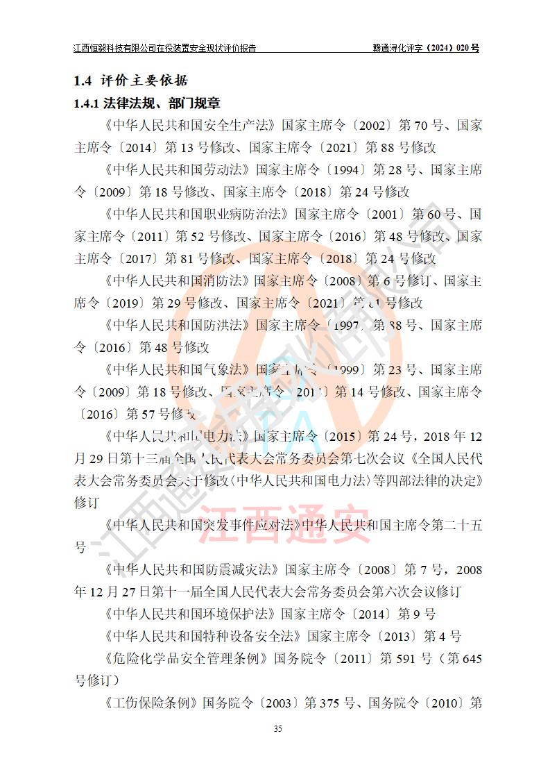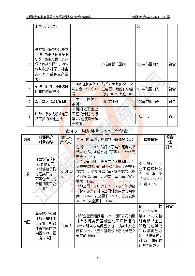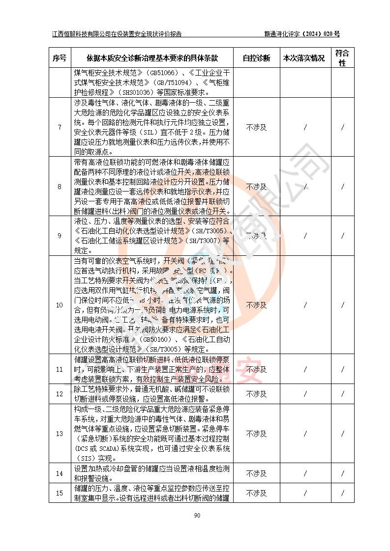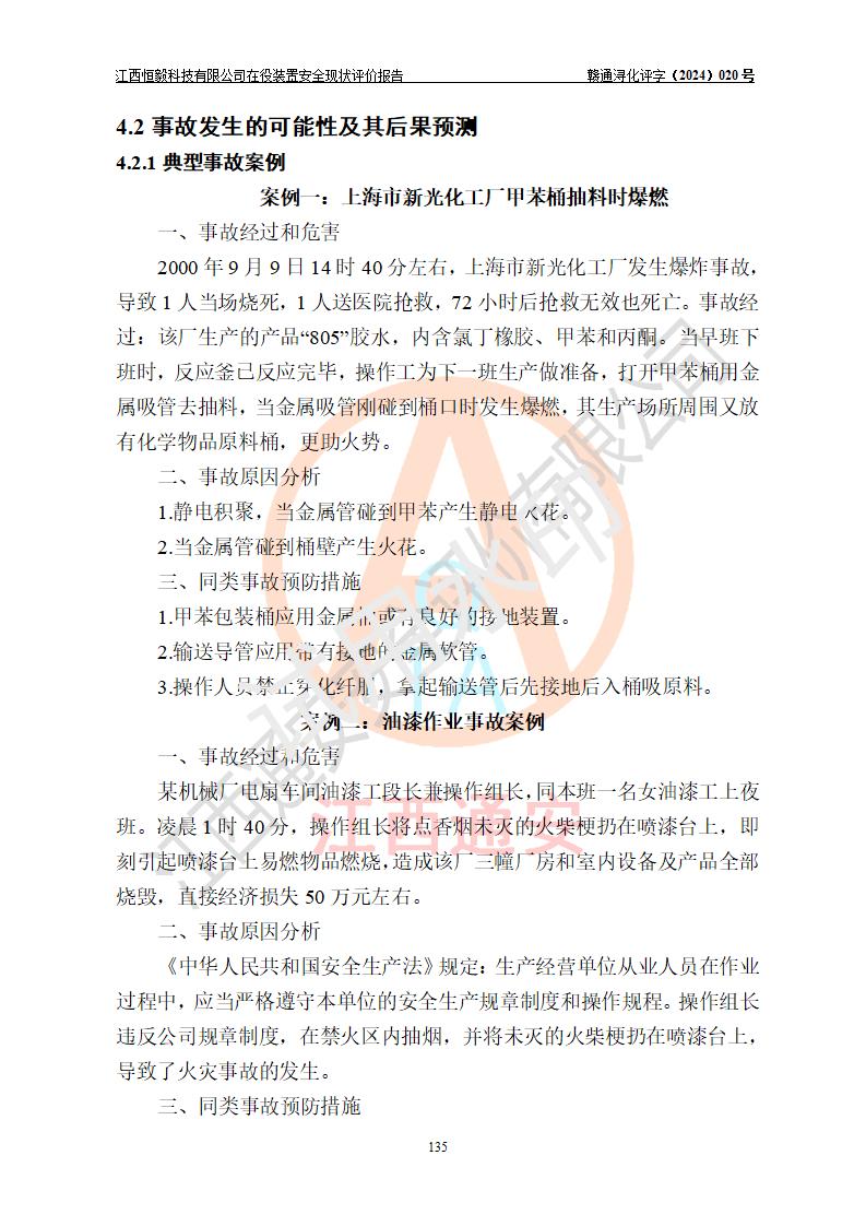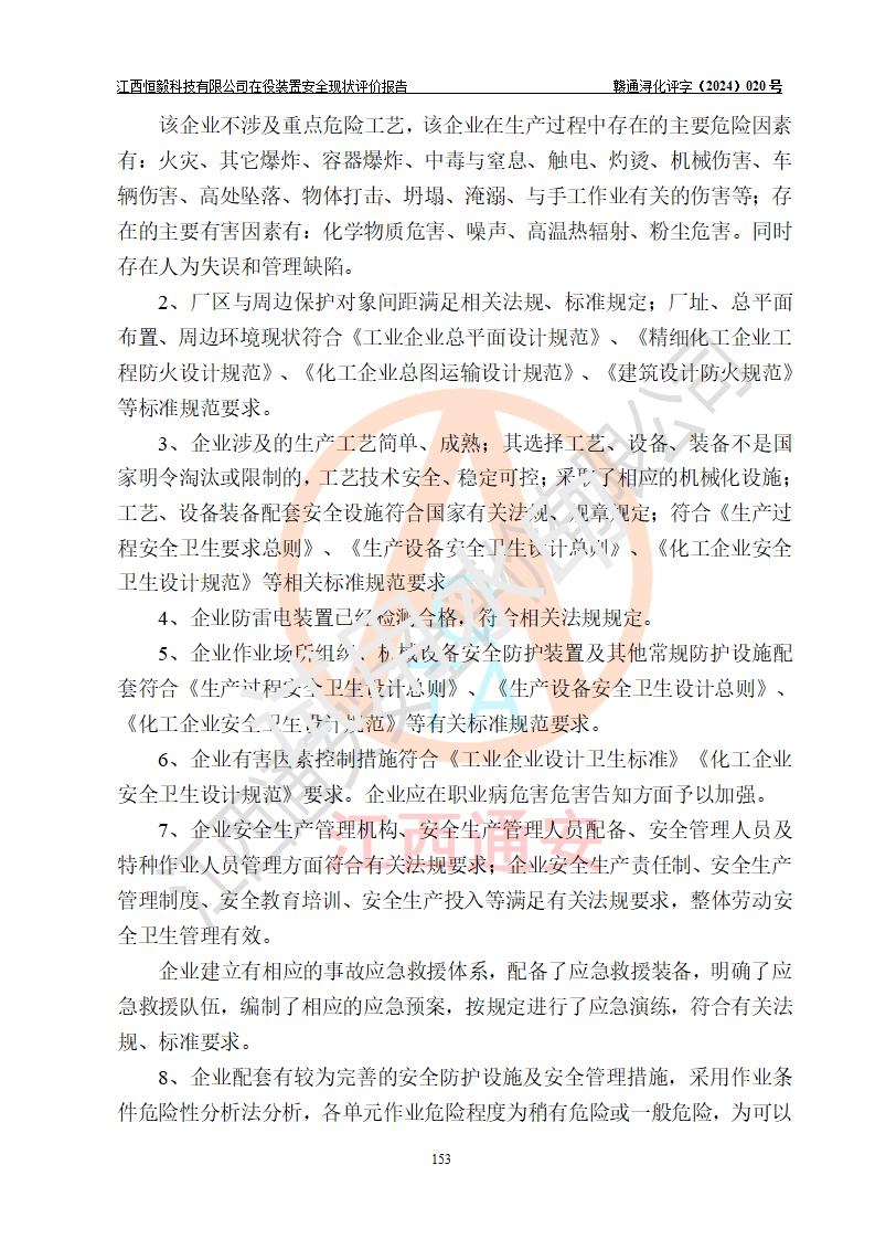 評(píng)價(jià)報(bào)告名稱 | 江西恒毅科技有限公司在役裝置安全現(xiàn)狀評(píng)價(jià)報(bào)告 | ||||