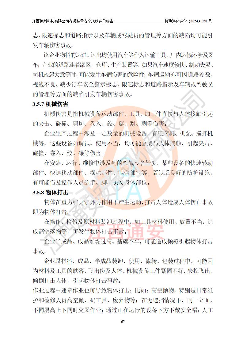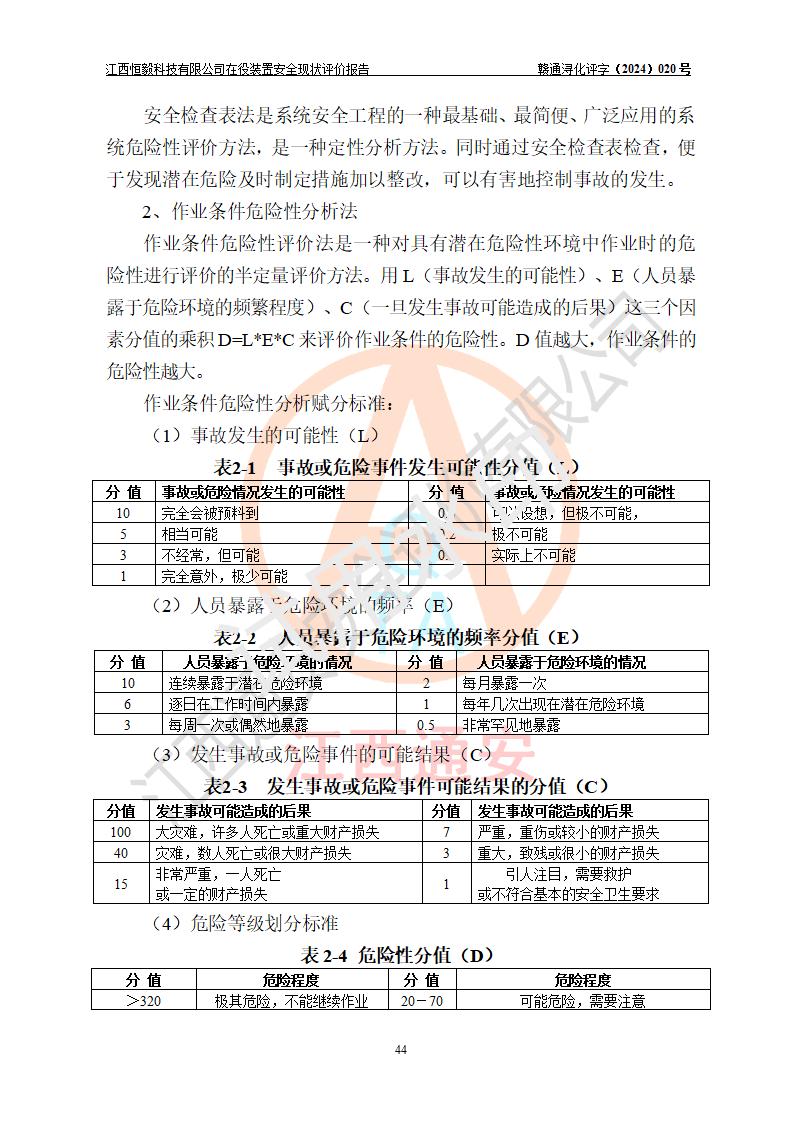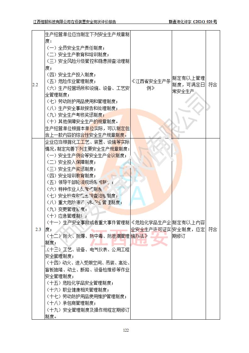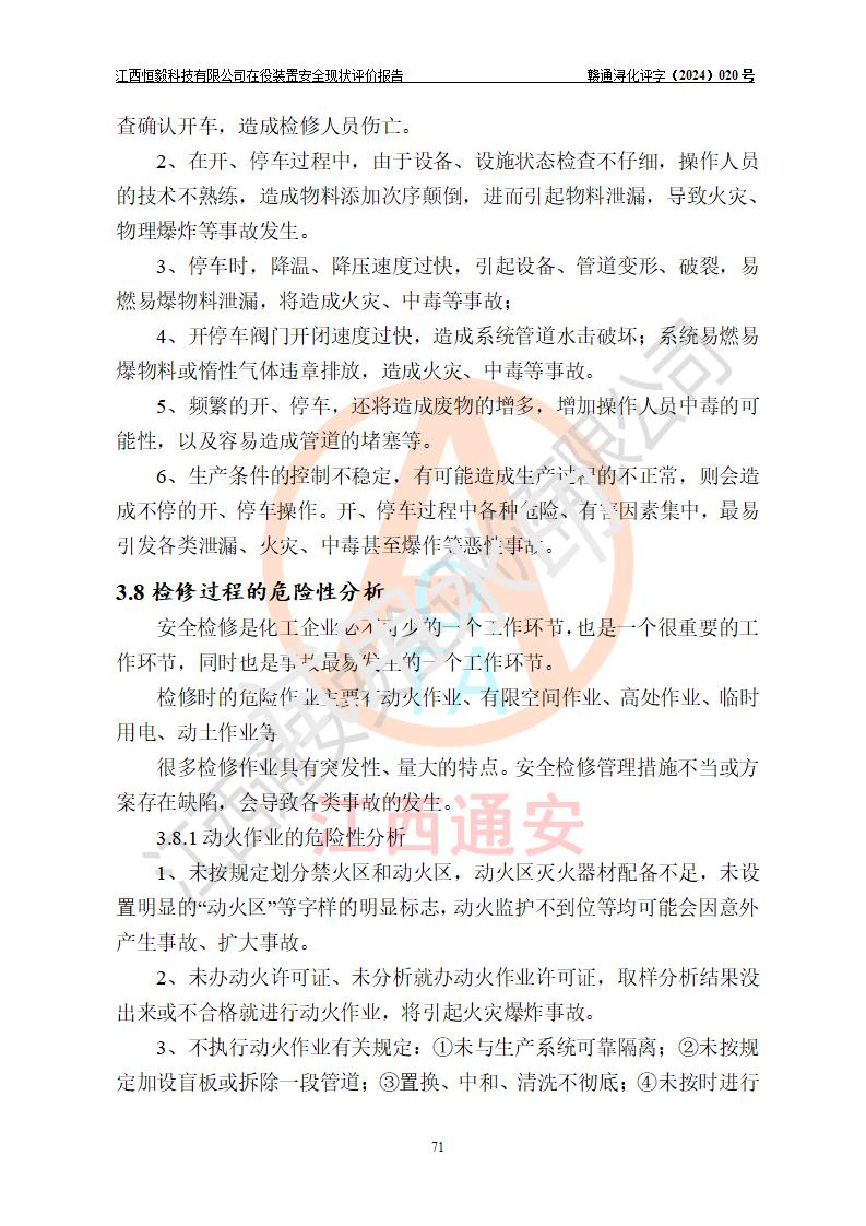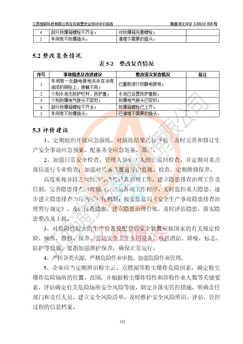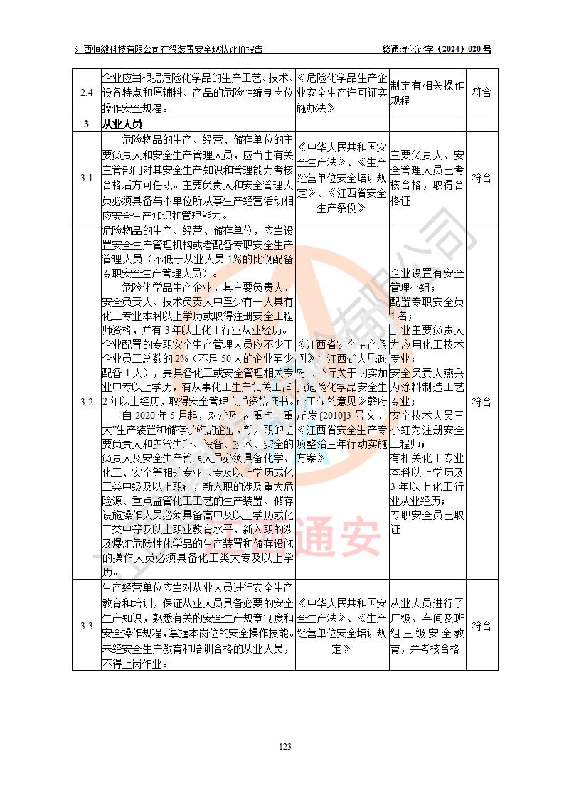 評(píng)價(jià)報(bào)告名稱 | 江西恒毅科技有限公司在役裝置安全現(xiàn)狀評(píng)價(jià)報(bào)告 | ||||