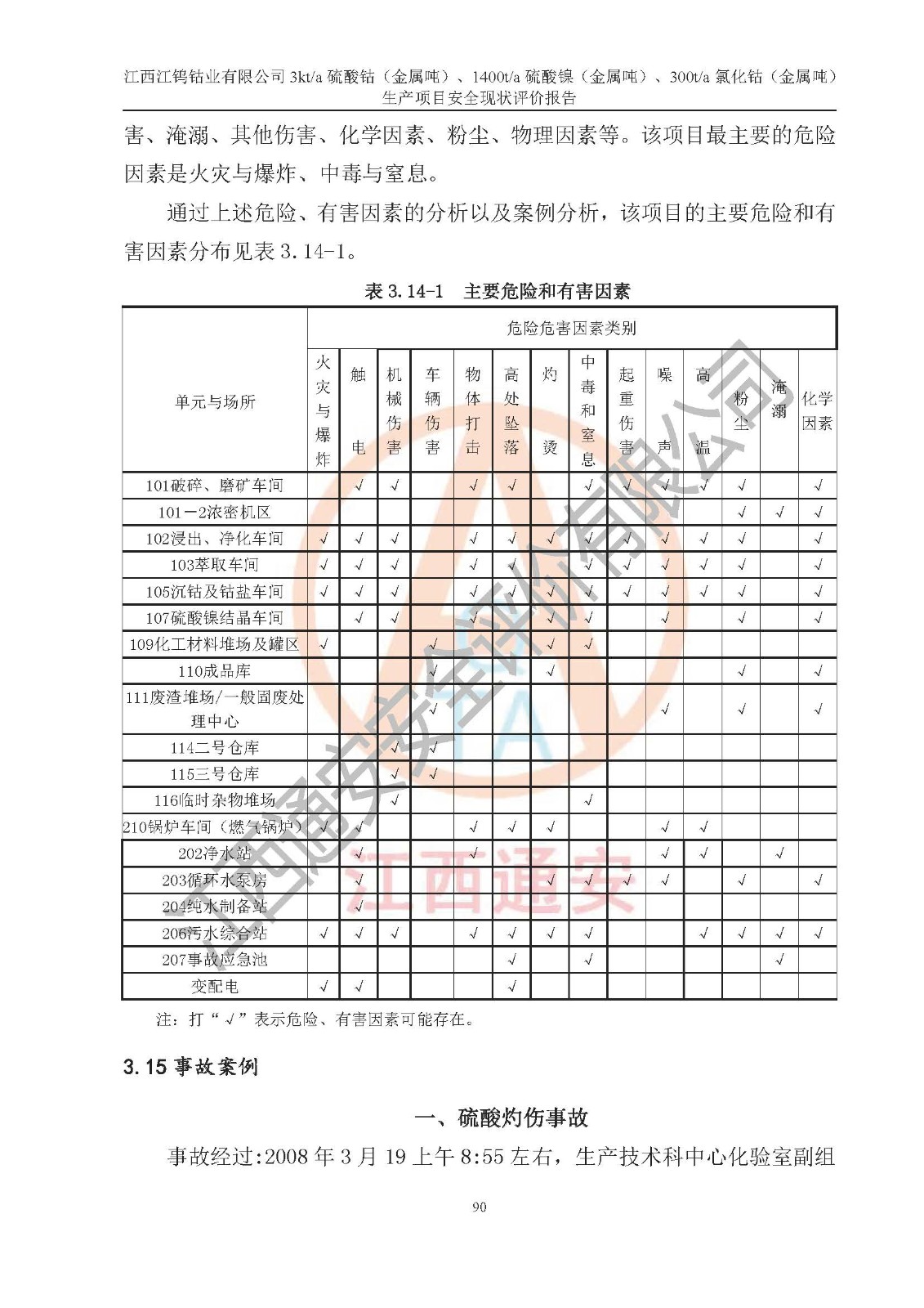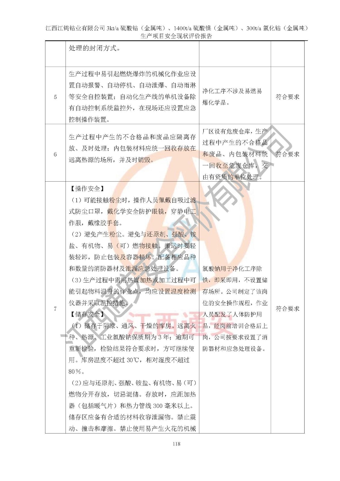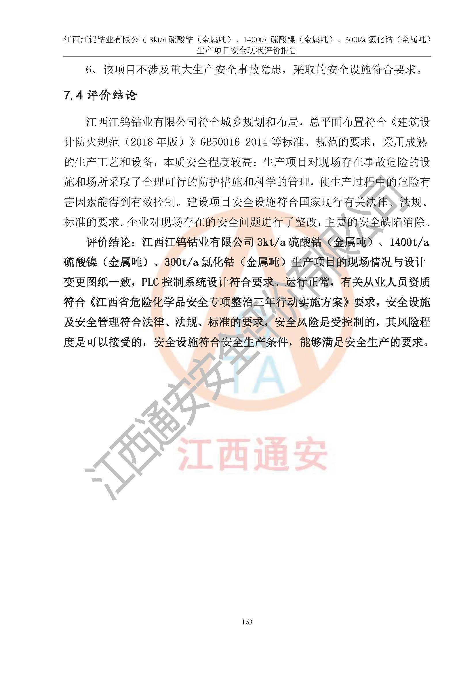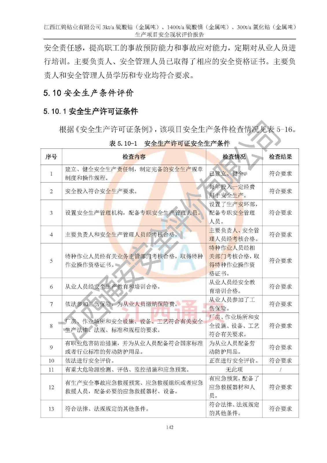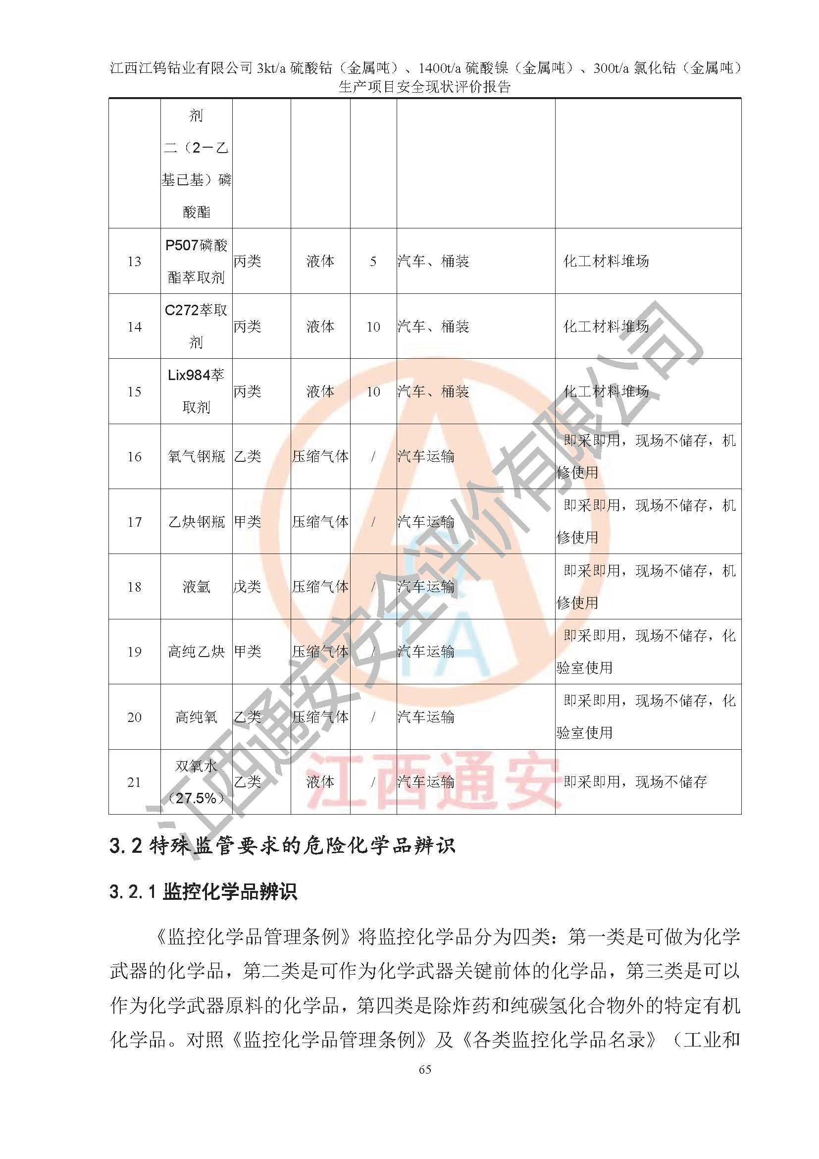 一、定量評價(jià)結(jié)果 1、作業(yè)條件危險(xiǎn)性分析評價(jià)結(jié)果:在選定的13個(gè)評價(jià)單元中,作業(yè)危險(xiǎn)等級為“可能危險(xiǎn),需要注意”,作業(yè)條件相對安全。 2、危險(xiǎn)程評價(jià)法分析結(jié)果:化工材料倉庫及罐區(qū)危險(xiǎn)程度為**危險(xiǎn),本項(xiàng)目在硫酸和鹽酸儲罐區(qū)設(shè)有圍堰、洗眼噴淋設(shè)施,儲罐均為常壓設(shè)備,設(shè)有就地液位和遠(yuǎn)傳的高低液位報(bào)警裝置,卸料、物料輸送、投料采用密閉化和機(jī)械化操作,公司制定了酸罐區(qū)的安全操作規(guī)程,作業(yè)人員穿戴個(gè)體防護(hù)用品,并配備了應(yīng)急救援裝備,通過采取**的安全設(shè)施和安全管理措施可以使風(fēng)險(xiǎn)降低到可接受范圍內(nèi);萃取車間危險(xiǎn)程度為低度危險(xiǎn)。風(fēng)險(xiǎn)在可接受范圍內(nèi)。。 4、定量風(fēng)險(xiǎn)評價(jià)分析結(jié)果:根據(jù)個(gè)人風(fēng)險(xiǎn)分析效果圖,該項(xiàng)目的個(gè)人風(fēng)險(xiǎn)符合要求;根據(jù)社會風(fēng)險(xiǎn)分析效果圖可知,該項(xiàng)目無社會風(fēng)險(xiǎn)。鍋爐發(fā)生物理爆炸的多米諾半徑局限在廠界內(nèi),企業(yè)會定期對鍋爐、空氣儲罐及安全附件進(jìn)行檢測,鍋爐操作工持證上崗,并加強(qiáng)日常的安全管理,可**降低發(fā)生物理爆炸的風(fēng)險(xiǎn)。 二、定性評價(jià)結(jié)果 1、依據(jù)相關(guān)法律、法規(guī)、標(biāo)準(zhǔn)等的規(guī)定,該項(xiàng)目外部安全條件、總平面布置、工藝及設(shè)備、防火防爆安全設(shè)施等符合**相關(guān)標(biāo)準(zhǔn)規(guī)范的要求,能滿足安全生產(chǎn)的要求。根據(jù)《江西江鎢鈷業(yè)有限公司全流程自動(dòng)化控制評估報(bào)告》(含《隱患清單》)評估報(bào)告,在役裝置的自動(dòng)化系統(tǒng)不需要提升。 2、該項(xiàng)目公用輔助設(shè)施能夠滿足安全生產(chǎn)的要求。 3、該項(xiàng)目按要求設(shè)置了安全生產(chǎn)管理機(jī)構(gòu),配備了專職安全生產(chǎn)管理人員,建立了全員安全生產(chǎn)責(zé)任制,制定了安全管理制度和崗位安全操作規(guī)程等。該公司修訂了生產(chǎn)安全事故應(yīng)急預(yù)案,配備了應(yīng)急救援器材,按要求定期進(jìn)行相關(guān)培訓(xùn)及演練。 4、公司主要負(fù)責(zé)人、安全管理人員經(jīng)培訓(xùn)考核取得了相應(yīng)的安全資格證書。主要負(fù)責(zé)人、分管安全負(fù)責(zé)人、分管生產(chǎn)、設(shè)備、技術(shù)負(fù)責(zé)人和安全管理人員的專業(yè)和學(xué)歷符合要求。特種作業(yè)人員均經(jīng)過培訓(xùn)考核合格后持證上崗,其他從業(yè)人員均進(jìn)行了安全教育培訓(xùn),具備安全知識與操作技能;公司配備了應(yīng)急救援物資,為從業(yè)人員配備了相應(yīng)的勞動(dòng)防護(hù)用品。 5、該項(xiàng)目的安全生產(chǎn)條件符合《安全生產(chǎn)許可證條例》、《危險(xiǎn)化學(xué)品生產(chǎn)企業(yè)安全生產(chǎn)許可證實(shí)施辦法》的要求,該項(xiàng)目不涉及重大生產(chǎn)安全事故隱患。 6、該項(xiàng)目不涉及重大生產(chǎn)安全事故隱患,采取的安全設(shè)施符合要求。 三、評價(jià)結(jié)論 江西江鎢鈷業(yè)有限公司符合城鄉(xiāng)規(guī)劃和布局,總平面布置符合《建筑設(shè)計(jì)防火規(guī)范(2018年版)》GB50016-2014等標(biāo)準(zhǔn)、規(guī)范的要求,采用成熟的生產(chǎn)工藝和設(shè)備,本質(zhì)安全程度較高;生產(chǎn)項(xiàng)目對現(xiàn)場存在事故危險(xiǎn)的設(shè)施和場所采取了合理可行的防護(hù)措施和科學(xué)的管理,使生產(chǎn)過程中的危險(xiǎn)有害因素能得到**控制。建設(shè)項(xiàng)目安全設(shè)施符合**現(xiàn)行有關(guān)法律、法規(guī)、標(biāo)準(zhǔn)的要求。企業(yè)對現(xiàn)場存在的安全問題進(jìn)行了整改,主要的安全缺陷消除。 評價(jià)結(jié)論:江西江鎢鈷業(yè)有限公司3kt/a硫酸鈷(金屬噸)、1400t/a硫酸鎳(金屬噸)、300t/a氯化鈷(金屬噸)生產(chǎn)項(xiàng)目的現(xiàn)場情況與設(shè)計(jì)變更圖紙一致,PLC控制系統(tǒng)設(shè)計(jì)符合要求、運(yùn)行正常,有關(guān)從業(yè)人員資質(zhì)符合《江西省危險(xiǎn)化學(xué)品安全專項(xiàng)整治三年行動(dòng)實(shí)施方案》要求,安全設(shè)施及安全管理符合法律、法規(guī)、標(biāo)準(zhǔn)的要求,安全風(fēng)險(xiǎn)是受控制的,其風(fēng)險(xiǎn)程度是可以接受的,安全設(shè)施符合安全生產(chǎn)條件,能夠滿足安全生產(chǎn)的要求。 |