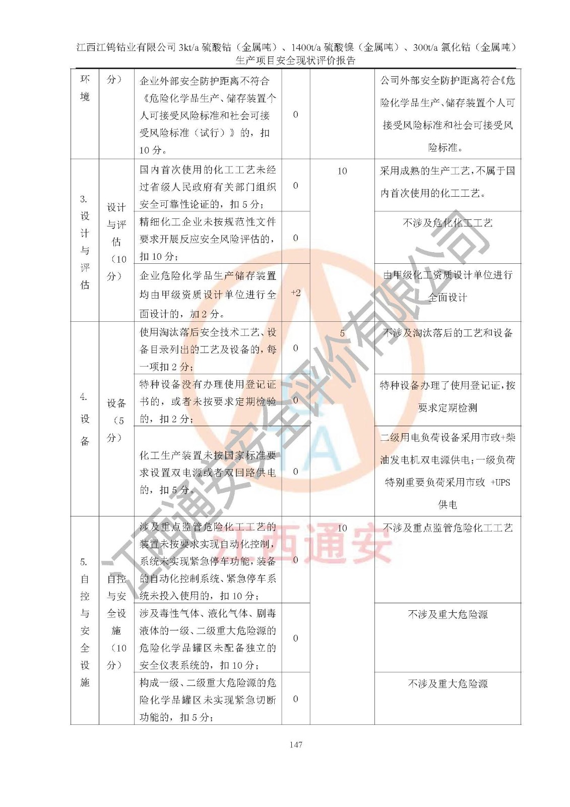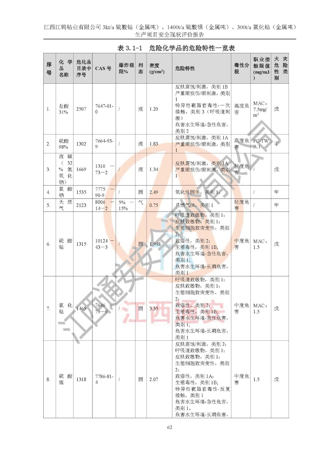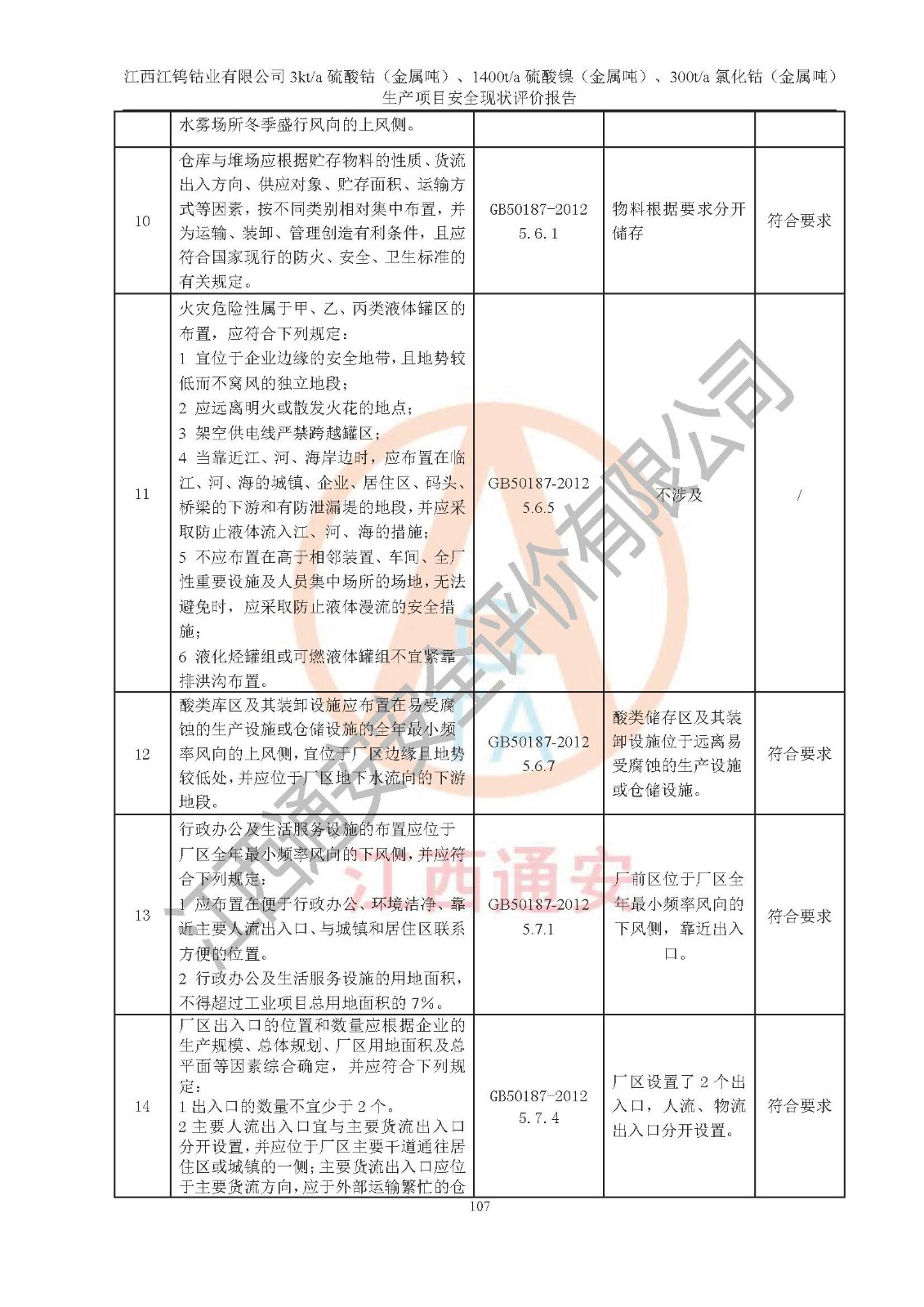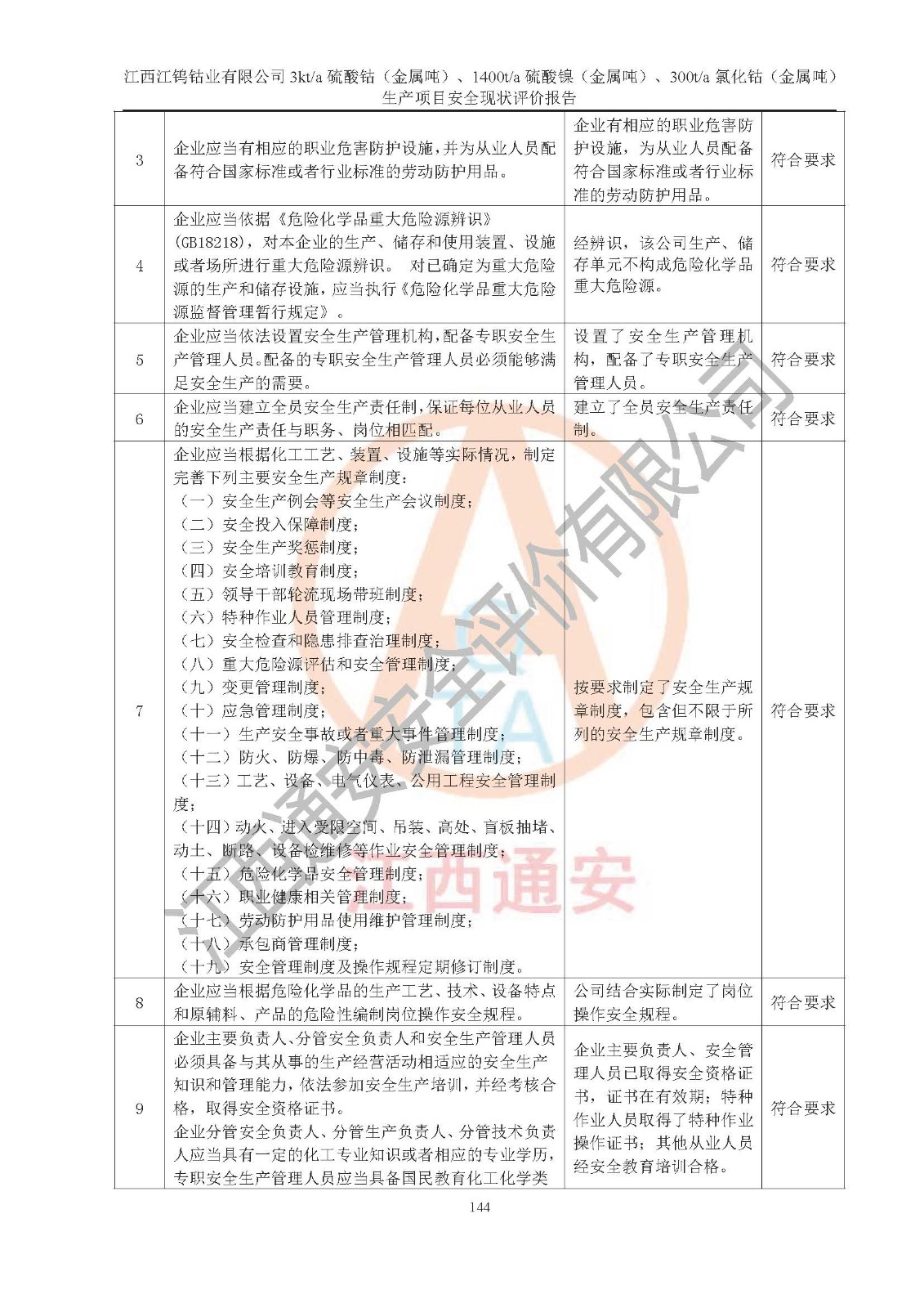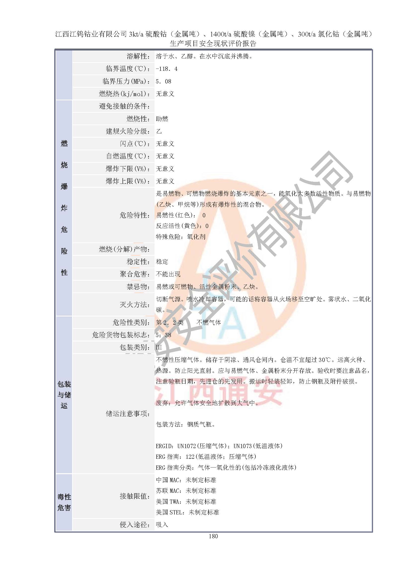 一、定量評價(jià)結(jié)果 1、作業(yè)條件危險(xiǎn)性分析評價(jià)結(jié)果:在選定的13個(gè)評價(jià)單元中,作業(yè)危險(xiǎn)等級為“可能危險(xiǎn),需要注意”,作業(yè)條件相對安全。 2、危險(xiǎn)程評價(jià)法分析結(jié)果:化工材料倉庫及罐區(qū)危險(xiǎn)程度為**危險(xiǎn),本項(xiàng)目在硫酸和鹽酸儲罐區(qū)設(shè)有圍堰、洗眼噴淋設(shè)施,儲罐均為常壓設(shè)備,設(shè)有就地液位和遠(yuǎn)傳的高低液位報(bào)警裝置,卸料、物料輸送、投料采用密閉化和機(jī)械化操作,公司制定了酸罐區(qū)的安全操作規(guī)程,作業(yè)人員穿戴個(gè)體防護(hù)用品,并配備了應(yīng)急救援裝備,通過采取**的安全設(shè)施和安全管理措施可以使風(fēng)險(xiǎn)降低到可接受范圍內(nèi);萃取車間危險(xiǎn)程度為低度危險(xiǎn)。風(fēng)險(xiǎn)在可接受范圍內(nèi)。。 4、定量風(fēng)險(xiǎn)評價(jià)分析結(jié)果:根據(jù)個(gè)人風(fēng)險(xiǎn)分析效果圖,該項(xiàng)目的個(gè)人風(fēng)險(xiǎn)符合要求;根據(jù)社會風(fēng)險(xiǎn)分析效果圖可知,該項(xiàng)目無社會風(fēng)險(xiǎn)。鍋爐發(fā)生物理爆炸的多米諾半徑局限在廠界內(nèi),企業(yè)會定期對鍋爐、空氣儲罐及安全附件進(jìn)行檢測,鍋爐操作工持證上崗,并加強(qiáng)日常的安全管理,可**降低發(fā)生物理爆炸的風(fēng)險(xiǎn)。 二、定性評價(jià)結(jié)果 1、依據(jù)相關(guān)法律、法規(guī)、標(biāo)準(zhǔn)等的規(guī)定,該項(xiàng)目外部安全條件、總平面布置、工藝及設(shè)備、防火防爆安全設(shè)施等符合**相關(guān)標(biāo)準(zhǔn)規(guī)范的要求,能滿足安全生產(chǎn)的要求。根據(jù)《江西江鎢鈷業(yè)有限公司全流程自動(dòng)化控制評估報(bào)告》(含《隱患清單》)評估報(bào)告,在役裝置的自動(dòng)化系統(tǒng)不需要提升。 2、該項(xiàng)目公用輔助設(shè)施能夠滿足安全生產(chǎn)的要求。 3、該項(xiàng)目按要求設(shè)置了安全生產(chǎn)管理機(jī)構(gòu),配備了專職安全生產(chǎn)管理人員,建立了全員安全生產(chǎn)責(zé)任制,制定了安全管理制度和崗位安全操作規(guī)程等。該公司修訂了生產(chǎn)安全事故應(yīng)急預(yù)案,配備了應(yīng)急救援器材,按要求定期進(jìn)行相關(guān)培訓(xùn)及演練。 4、公司主要負(fù)責(zé)人、安全管理人員經(jīng)培訓(xùn)考核取得了相應(yīng)的安全資格證書。主要負(fù)責(zé)人、分管安全負(fù)責(zé)人、分管生產(chǎn)、設(shè)備、技術(shù)負(fù)責(zé)人和安全管理人員的專業(yè)和學(xué)歷符合要求。特種作業(yè)人員均經(jīng)過培訓(xùn)考核合格后持證上崗,其他從業(yè)人員均進(jìn)行了安全教育培訓(xùn),具備安全知識與操作技能;公司配備了應(yīng)急救援物資,為從業(yè)人員配備了相應(yīng)的勞動(dòng)防護(hù)用品。 5、該項(xiàng)目的安全生產(chǎn)條件符合《安全生產(chǎn)許可證條例》、《危險(xiǎn)化學(xué)品生產(chǎn)企業(yè)安全生產(chǎn)許可證實(shí)施辦法》的要求,該項(xiàng)目不涉及重大生產(chǎn)安全事故隱患。 6、該項(xiàng)目不涉及重大生產(chǎn)安全事故隱患,采取的安全設(shè)施符合要求。 三、評價(jià)結(jié)論 江西江鎢鈷業(yè)有限公司符合城鄉(xiāng)規(guī)劃和布局,總平面布置符合《建筑設(shè)計(jì)防火規(guī)范(2018年版)》GB50016-2014等標(biāo)準(zhǔn)、規(guī)范的要求,采用成熟的生產(chǎn)工藝和設(shè)備,本質(zhì)安全程度較高;生產(chǎn)項(xiàng)目對現(xiàn)場存在事故危險(xiǎn)的設(shè)施和場所采取了合理可行的防護(hù)措施和科學(xué)的管理,使生產(chǎn)過程中的危險(xiǎn)有害因素能得到**控制。建設(shè)項(xiàng)目安全設(shè)施符合**現(xiàn)行有關(guān)法律、法規(guī)、標(biāo)準(zhǔn)的要求。企業(yè)對現(xiàn)場存在的安全問題進(jìn)行了整改,主要的安全缺陷消除。 評價(jià)結(jié)論:江西江鎢鈷業(yè)有限公司3kt/a硫酸鈷(金屬噸)、1400t/a硫酸鎳(金屬噸)、300t/a氯化鈷(金屬噸)生產(chǎn)項(xiàng)目的現(xiàn)場情況與設(shè)計(jì)變更圖紙一致,PLC控制系統(tǒng)設(shè)計(jì)符合要求、運(yùn)行正常,有關(guān)從業(yè)人員資質(zhì)符合《江西省危險(xiǎn)化學(xué)品安全專項(xiàng)整治三年行動(dòng)實(shí)施方案》要求,安全設(shè)施及安全管理符合法律、法規(guī)、標(biāo)準(zhǔn)的要求,安全風(fēng)險(xiǎn)是受控制的,其風(fēng)險(xiǎn)程度是可以接受的,安全設(shè)施符合安全生產(chǎn)條件,能夠滿足安全生產(chǎn)的要求。 |