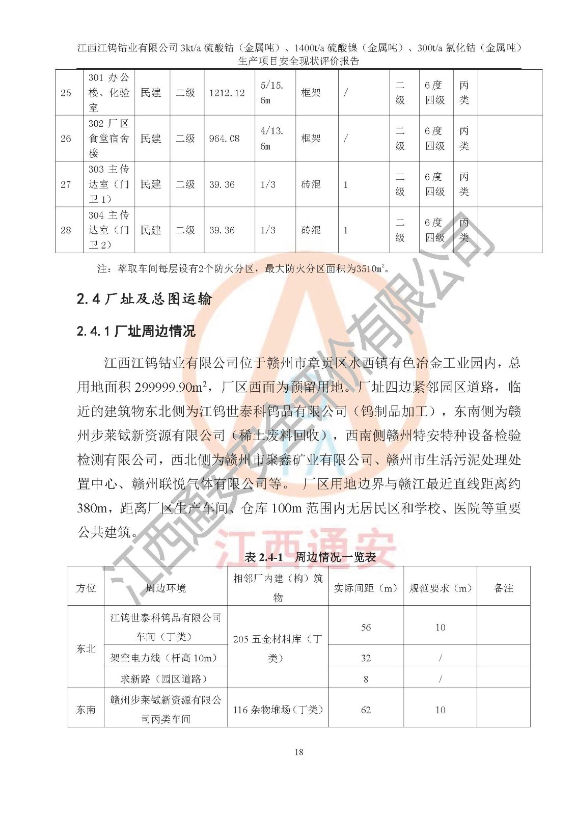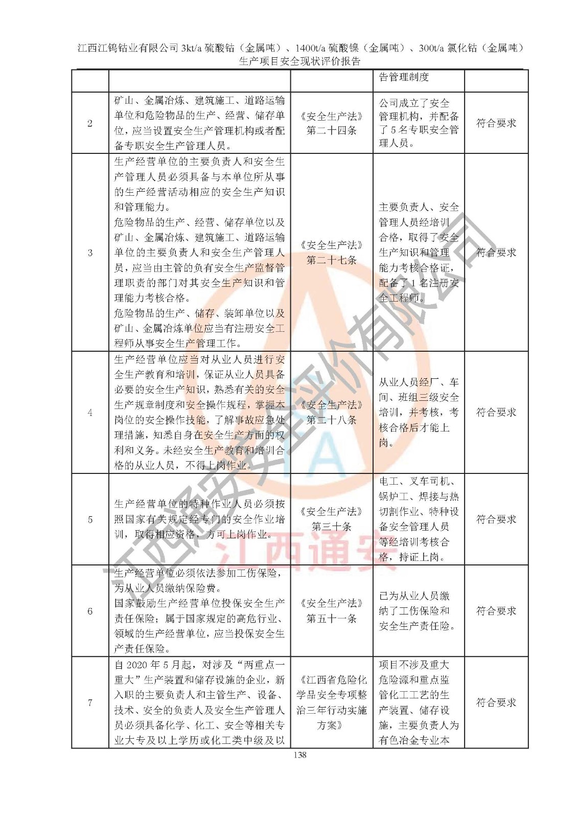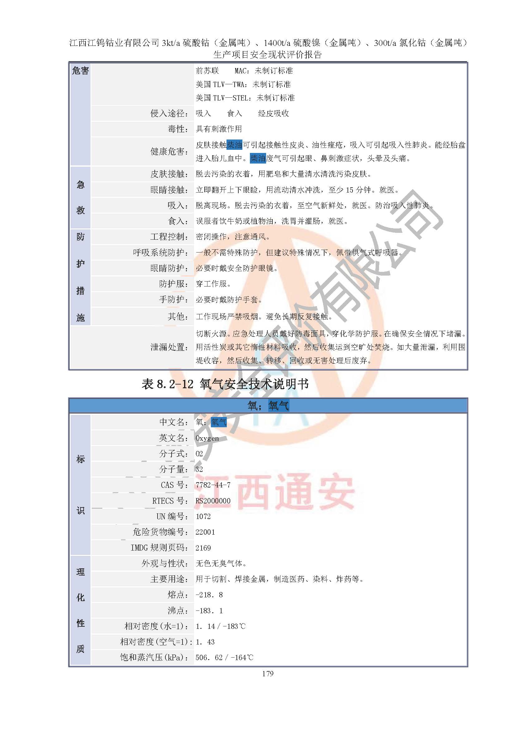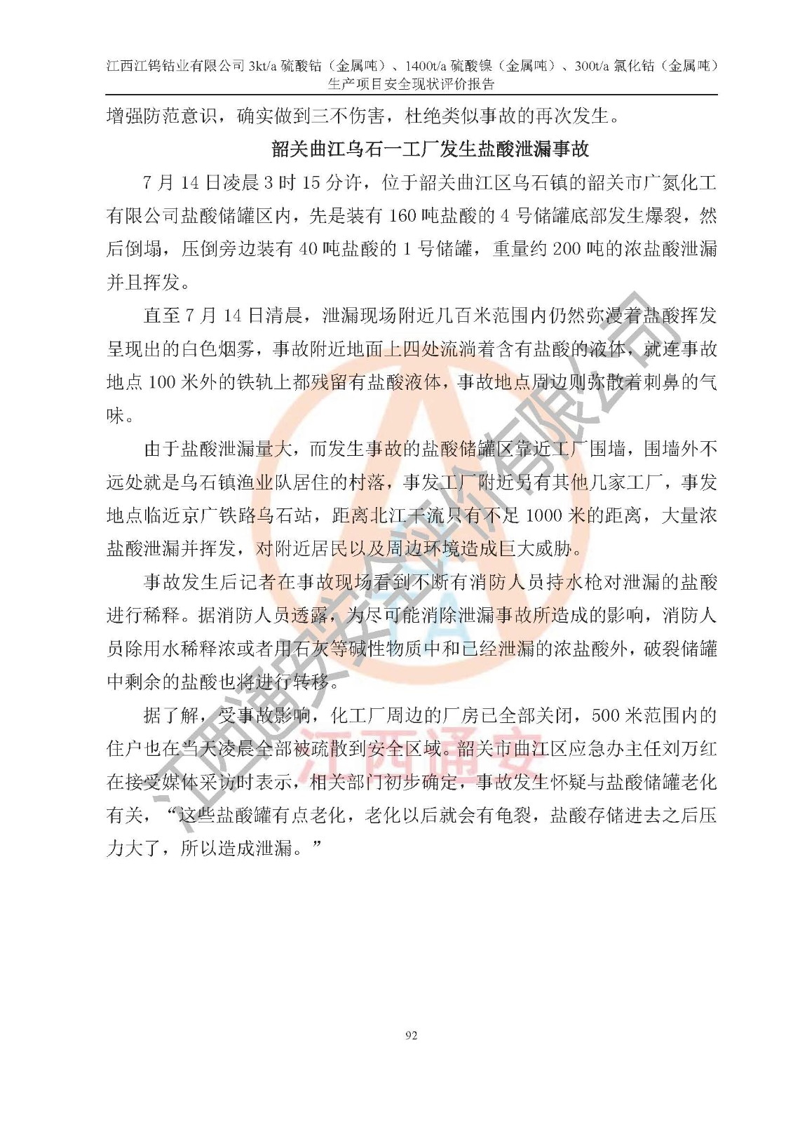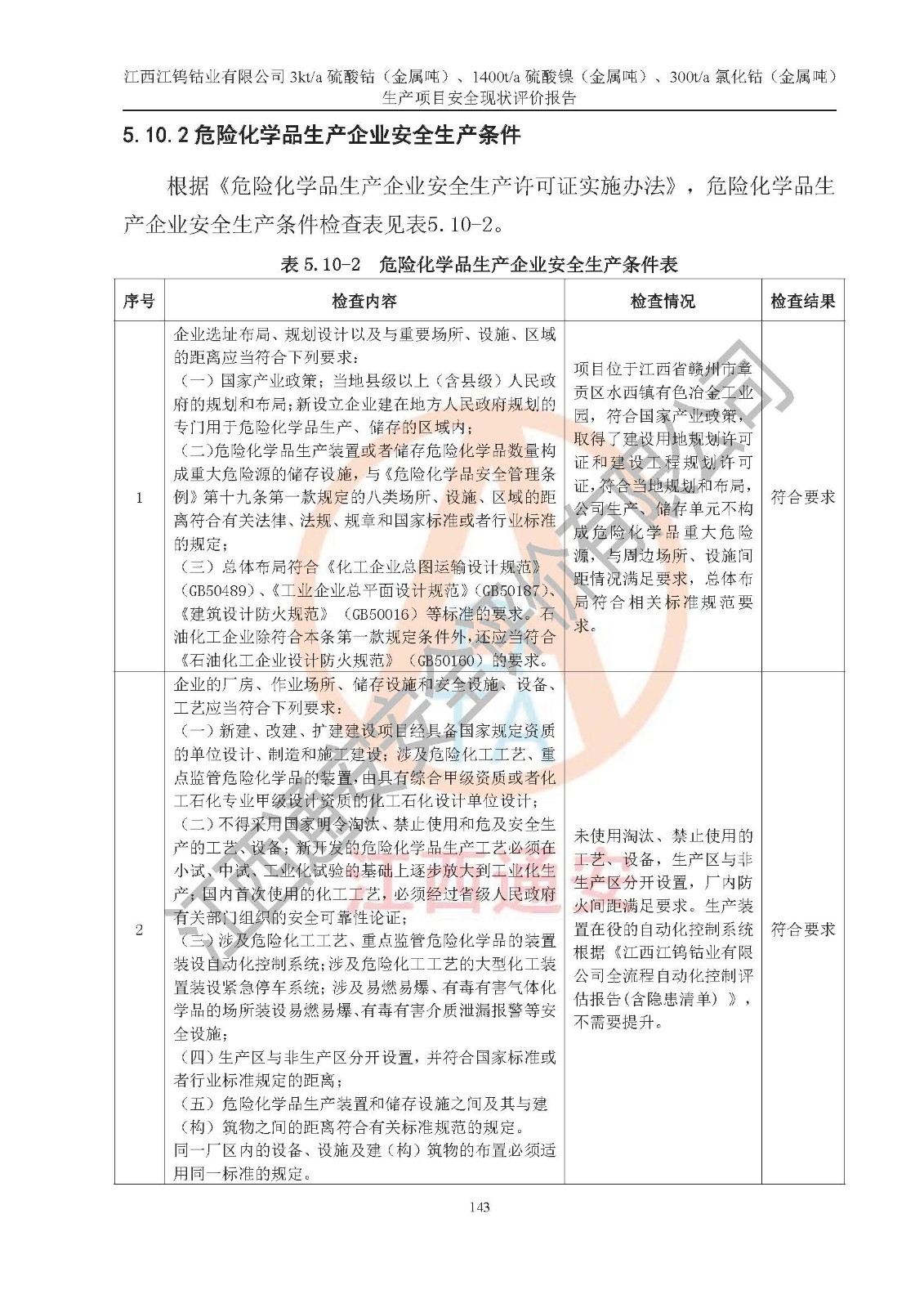 一、定量評價(jià)結(jié)果 1、作業(yè)條件危險(xiǎn)性分析評價(jià)結(jié)果:在選定的13個(gè)評價(jià)單元中,作業(yè)危險(xiǎn)等級為“可能危險(xiǎn),需要注意”,作業(yè)條件相對安全。 2、危險(xiǎn)程評價(jià)法分析結(jié)果:化工材料倉庫及罐區(qū)危險(xiǎn)程度為**危險(xiǎn),本項(xiàng)目在硫酸和鹽酸儲罐區(qū)設(shè)有圍堰、洗眼噴淋設(shè)施,儲罐均為常壓設(shè)備,設(shè)有就地液位和遠(yuǎn)傳的高低液位報(bào)警裝置,卸料、物料輸送、投料采用密閉化和機(jī)械化操作,公司制定了酸罐區(qū)的安全操作規(guī)程,作業(yè)人員穿戴個(gè)體防護(hù)用品,并配備了應(yīng)急救援裝備,通過采取**的安全設(shè)施和安全管理措施可以使風(fēng)險(xiǎn)降低到可接受范圍內(nèi);萃取車間危險(xiǎn)程度為低度危險(xiǎn)。風(fēng)險(xiǎn)在可接受范圍內(nèi)。。 4、定量風(fēng)險(xiǎn)評價(jià)分析結(jié)果:根據(jù)個(gè)人風(fēng)險(xiǎn)分析效果圖,該項(xiàng)目的個(gè)人風(fēng)險(xiǎn)符合要求;根據(jù)社會風(fēng)險(xiǎn)分析效果圖可知,該項(xiàng)目無社會風(fēng)險(xiǎn)。鍋爐發(fā)生物理爆炸的多米諾半徑局限在廠界內(nèi),企業(yè)會定期對鍋爐、空氣儲罐及安全附件進(jìn)行檢測,鍋爐操作工持證上崗,并加強(qiáng)日常的安全管理,可**降低發(fā)生物理爆炸的風(fēng)險(xiǎn)。 二、定性評價(jià)結(jié)果 1、依據(jù)相關(guān)法律、法規(guī)、標(biāo)準(zhǔn)等的規(guī)定,該項(xiàng)目外部安全條件、總平面布置、工藝及設(shè)備、防火防爆安全設(shè)施等符合**相關(guān)標(biāo)準(zhǔn)規(guī)范的要求,能滿足安全生產(chǎn)的要求。根據(jù)《江西江鎢鈷業(yè)有限公司全流程自動(dòng)化控制評估報(bào)告》(含《隱患清單》)評估報(bào)告,在役裝置的自動(dòng)化系統(tǒng)不需要提升。 2、該項(xiàng)目公用輔助設(shè)施能夠滿足安全生產(chǎn)的要求。 3、該項(xiàng)目按要求設(shè)置了安全生產(chǎn)管理機(jī)構(gòu),配備了專職安全生產(chǎn)管理人員,建立了全員安全生產(chǎn)責(zé)任制,制定了安全管理制度和崗位安全操作規(guī)程等。該公司修訂了生產(chǎn)安全事故應(yīng)急預(yù)案,配備了應(yīng)急救援器材,按要求定期進(jìn)行相關(guān)培訓(xùn)及演練。 4、公司主要負(fù)責(zé)人、安全管理人員經(jīng)培訓(xùn)考核取得了相應(yīng)的安全資格證書。主要負(fù)責(zé)人、分管安全負(fù)責(zé)人、分管生產(chǎn)、設(shè)備、技術(shù)負(fù)責(zé)人和安全管理人員的專業(yè)和學(xué)歷符合要求。特種作業(yè)人員均經(jīng)過培訓(xùn)考核合格后持證上崗,其他從業(yè)人員均進(jìn)行了安全教育培訓(xùn),具備安全知識與操作技能;公司配備了應(yīng)急救援物資,為從業(yè)人員配備了相應(yīng)的勞動(dòng)防護(hù)用品。 5、該項(xiàng)目的安全生產(chǎn)條件符合《安全生產(chǎn)許可證條例》、《危險(xiǎn)化學(xué)品生產(chǎn)企業(yè)安全生產(chǎn)許可證實(shí)施辦法》的要求,該項(xiàng)目不涉及重大生產(chǎn)安全事故隱患。 6、該項(xiàng)目不涉及重大生產(chǎn)安全事故隱患,采取的安全設(shè)施符合要求。 三、評價(jià)結(jié)論 江西江鎢鈷業(yè)有限公司符合城鄉(xiāng)規(guī)劃和布局,總平面布置符合《建筑設(shè)計(jì)防火規(guī)范(2018年版)》GB50016-2014等標(biāo)準(zhǔn)、規(guī)范的要求,采用成熟的生產(chǎn)工藝和設(shè)備,本質(zhì)安全程度較高;生產(chǎn)項(xiàng)目對現(xiàn)場存在事故危險(xiǎn)的設(shè)施和場所采取了合理可行的防護(hù)措施和科學(xué)的管理,使生產(chǎn)過程中的危險(xiǎn)有害因素能得到**控制。建設(shè)項(xiàng)目安全設(shè)施符合**現(xiàn)行有關(guān)法律、法規(guī)、標(biāo)準(zhǔn)的要求。企業(yè)對現(xiàn)場存在的安全問題進(jìn)行了整改,主要的安全缺陷消除。 評價(jià)結(jié)論:江西江鎢鈷業(yè)有限公司3kt/a硫酸鈷(金屬噸)、1400t/a硫酸鎳(金屬噸)、300t/a氯化鈷(金屬噸)生產(chǎn)項(xiàng)目的現(xiàn)場情況與設(shè)計(jì)變更圖紙一致,PLC控制系統(tǒng)設(shè)計(jì)符合要求、運(yùn)行正常,有關(guān)從業(yè)人員資質(zhì)符合《江西省危險(xiǎn)化學(xué)品安全專項(xiàng)整治三年行動(dòng)實(shí)施方案》要求,安全設(shè)施及安全管理符合法律、法規(guī)、標(biāo)準(zhǔn)的要求,安全風(fēng)險(xiǎn)是受控制的,其風(fēng)險(xiǎn)程度是可以接受的,安全設(shè)施符合安全生產(chǎn)條件,能夠滿足安全生產(chǎn)的要求。 |
