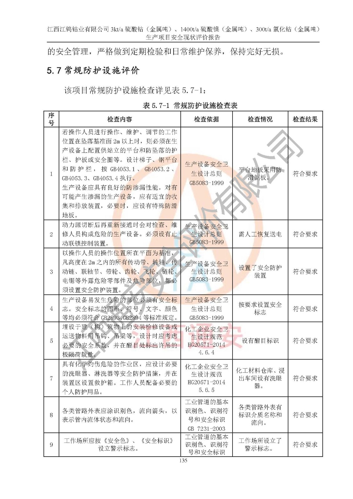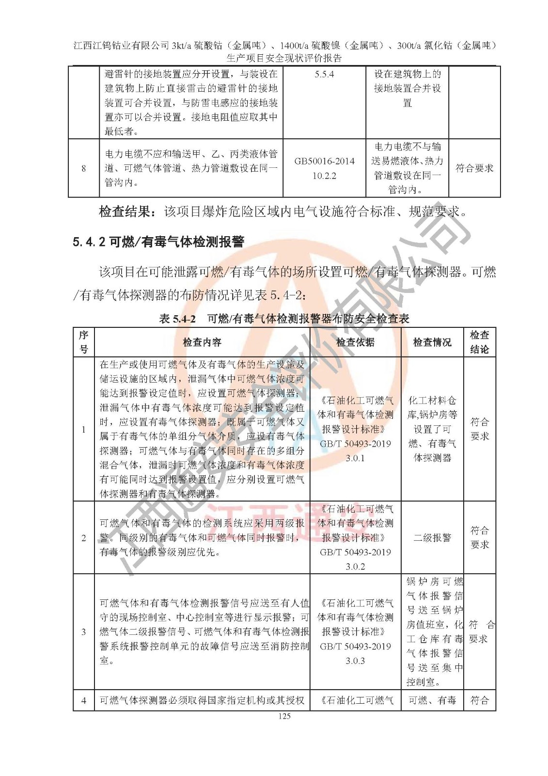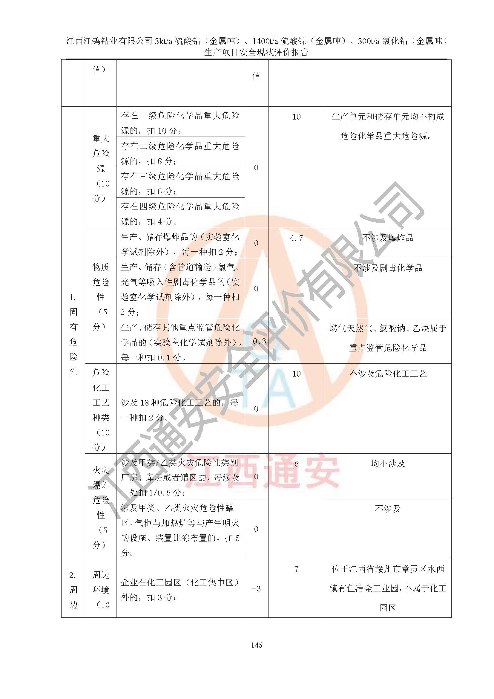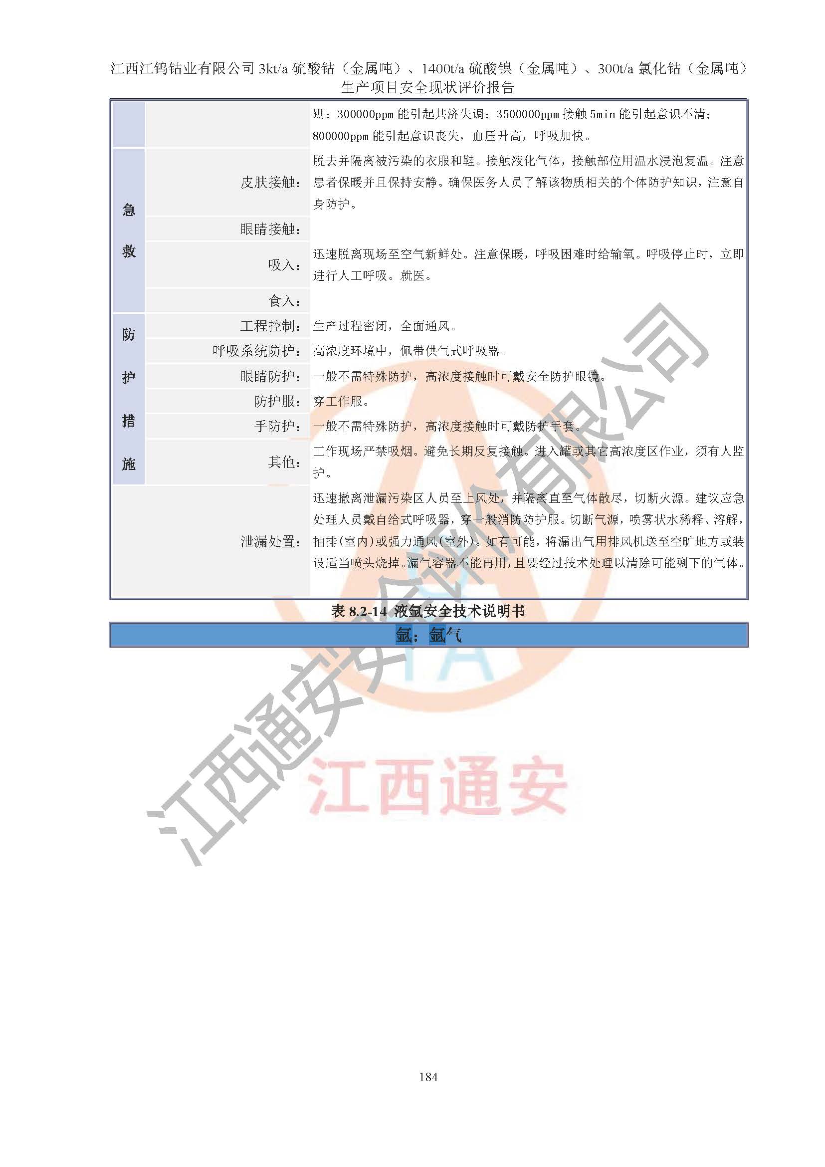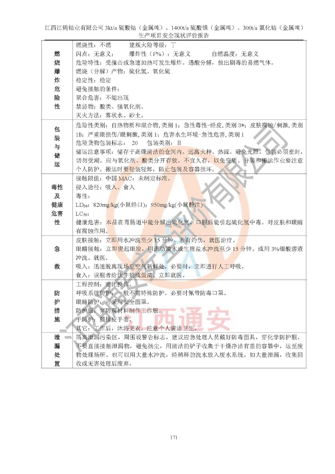 一、定量評價(jià)結(jié)果 1、作業(yè)條件危險(xiǎn)性分析評價(jià)結(jié)果:在選定的13個(gè)評價(jià)單元中,作業(yè)危險(xiǎn)等級為“可能危險(xiǎn),需要注意”,作業(yè)條件相對安全。 2、危險(xiǎn)程評價(jià)法分析結(jié)果:化工材料倉庫及罐區(qū)危險(xiǎn)程度為**危險(xiǎn),本項(xiàng)目在硫酸和鹽酸儲罐區(qū)設(shè)有圍堰、洗眼噴淋設(shè)施,儲罐均為常壓設(shè)備,設(shè)有就地液位和遠(yuǎn)傳的高低液位報(bào)警裝置,卸料、物料輸送、投料采用密閉化和機(jī)械化操作,公司制定了酸罐區(qū)的安全操作規(guī)程,作業(yè)人員穿戴個(gè)體防護(hù)用品,并配備了應(yīng)急救援裝備,通過采取**的安全設(shè)施和安全管理措施可以使風(fēng)險(xiǎn)降低到可接受范圍內(nèi);萃取車間危險(xiǎn)程度為低度危險(xiǎn)。風(fēng)險(xiǎn)在可接受范圍內(nèi)。。 4、定量風(fēng)險(xiǎn)評價(jià)分析結(jié)果:根據(jù)個(gè)人風(fēng)險(xiǎn)分析效果圖,該項(xiàng)目的個(gè)人風(fēng)險(xiǎn)符合要求;根據(jù)社會風(fēng)險(xiǎn)分析效果圖可知,該項(xiàng)目無社會風(fēng)險(xiǎn)。鍋爐發(fā)生物理爆炸的多米諾半徑局限在廠界內(nèi),企業(yè)會定期對鍋爐、空氣儲罐及安全附件進(jìn)行檢測,鍋爐操作工持證上崗,并加強(qiáng)日常的安全管理,可**降低發(fā)生物理爆炸的風(fēng)險(xiǎn)。 二、定性評價(jià)結(jié)果 1、依據(jù)相關(guān)法律、法規(guī)、標(biāo)準(zhǔn)等的規(guī)定,該項(xiàng)目外部安全條件、總平面布置、工藝及設(shè)備、防火防爆安全設(shè)施等符合**相關(guān)標(biāo)準(zhǔn)規(guī)范的要求,能滿足安全生產(chǎn)的要求。根據(jù)《江西江鎢鈷業(yè)有限公司全流程自動(dòng)化控制評估報(bào)告》(含《隱患清單》)評估報(bào)告,在役裝置的自動(dòng)化系統(tǒng)不需要提升。 2、該項(xiàng)目公用輔助設(shè)施能夠滿足安全生產(chǎn)的要求。 3、該項(xiàng)目按要求設(shè)置了安全生產(chǎn)管理機(jī)構(gòu),配備了專職安全生產(chǎn)管理人員,建立了全員安全生產(chǎn)責(zé)任制,制定了安全管理制度和崗位安全操作規(guī)程等。該公司修訂了生產(chǎn)安全事故應(yīng)急預(yù)案,配備了應(yīng)急救援器材,按要求定期進(jìn)行相關(guān)培訓(xùn)及演練。 4、公司主要負(fù)責(zé)人、安全管理人員經(jīng)培訓(xùn)考核取得了相應(yīng)的安全資格證書。主要負(fù)責(zé)人、分管安全負(fù)責(zé)人、分管生產(chǎn)、設(shè)備、技術(shù)負(fù)責(zé)人和安全管理人員的專業(yè)和學(xué)歷符合要求。特種作業(yè)人員均經(jīng)過培訓(xùn)考核合格后持證上崗,其他從業(yè)人員均進(jìn)行了安全教育培訓(xùn),具備安全知識與操作技能;公司配備了應(yīng)急救援物資,為從業(yè)人員配備了相應(yīng)的勞動(dòng)防護(hù)用品。 5、該項(xiàng)目的安全生產(chǎn)條件符合《安全生產(chǎn)許可證條例》、《危險(xiǎn)化學(xué)品生產(chǎn)企業(yè)安全生產(chǎn)許可證實(shí)施辦法》的要求,該項(xiàng)目不涉及重大生產(chǎn)安全事故隱患。 6、該項(xiàng)目不涉及重大生產(chǎn)安全事故隱患,采取的安全設(shè)施符合要求。 三、評價(jià)結(jié)論 江西江鎢鈷業(yè)有限公司符合城鄉(xiāng)規(guī)劃和布局,總平面布置符合《建筑設(shè)計(jì)防火規(guī)范(2018年版)》GB50016-2014等標(biāo)準(zhǔn)、規(guī)范的要求,采用成熟的生產(chǎn)工藝和設(shè)備,本質(zhì)安全程度較高;生產(chǎn)項(xiàng)目對現(xiàn)場存在事故危險(xiǎn)的設(shè)施和場所采取了合理可行的防護(hù)措施和科學(xué)的管理,使生產(chǎn)過程中的危險(xiǎn)有害因素能得到**控制。建設(shè)項(xiàng)目安全設(shè)施符合**現(xiàn)行有關(guān)法律、法規(guī)、標(biāo)準(zhǔn)的要求。企業(yè)對現(xiàn)場存在的安全問題進(jìn)行了整改,主要的安全缺陷消除。 評價(jià)結(jié)論:江西江鎢鈷業(yè)有限公司3kt/a硫酸鈷(金屬噸)、1400t/a硫酸鎳(金屬噸)、300t/a氯化鈷(金屬噸)生產(chǎn)項(xiàng)目的現(xiàn)場情況與設(shè)計(jì)變更圖紙一致,PLC控制系統(tǒng)設(shè)計(jì)符合要求、運(yùn)行正常,有關(guān)從業(yè)人員資質(zhì)符合《江西省危險(xiǎn)化學(xué)品安全專項(xiàng)整治三年行動(dòng)實(shí)施方案》要求,安全設(shè)施及安全管理符合法律、法規(guī)、標(biāo)準(zhǔn)的要求,安全風(fēng)險(xiǎn)是受控制的,其風(fēng)險(xiǎn)程度是可以接受的,安全設(shè)施符合安全生產(chǎn)條件,能夠滿足安全生產(chǎn)的要求。 |