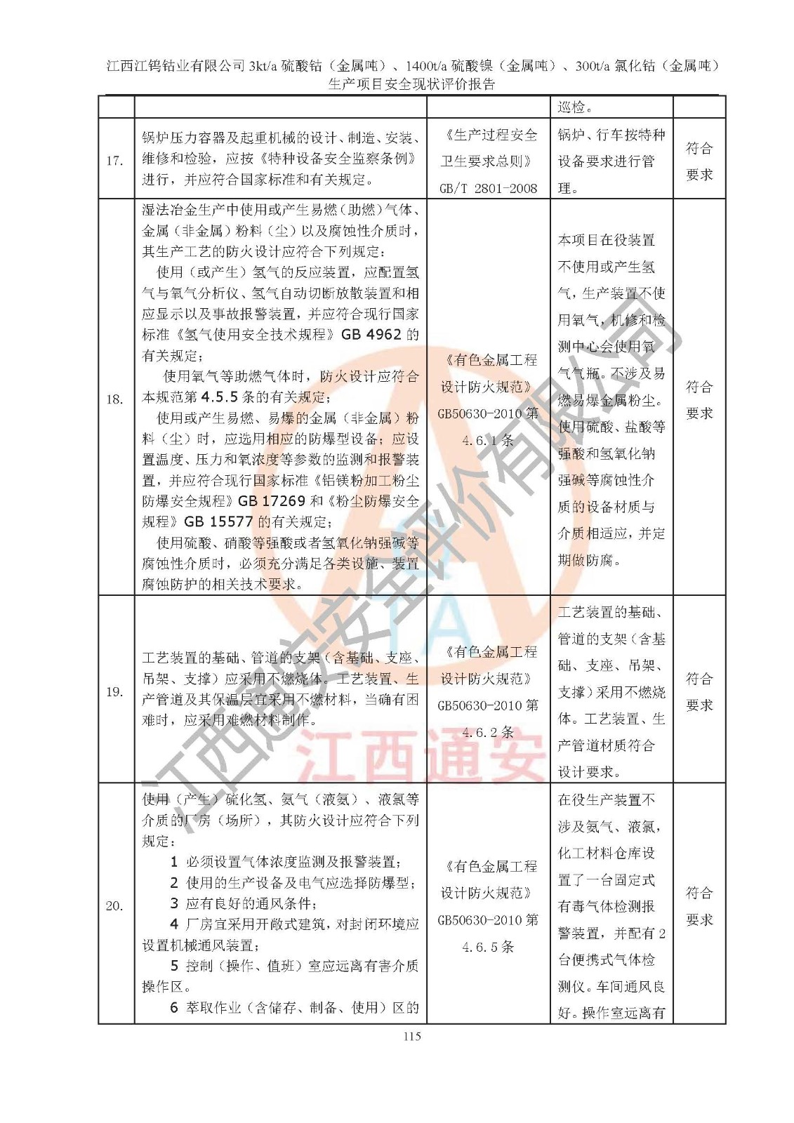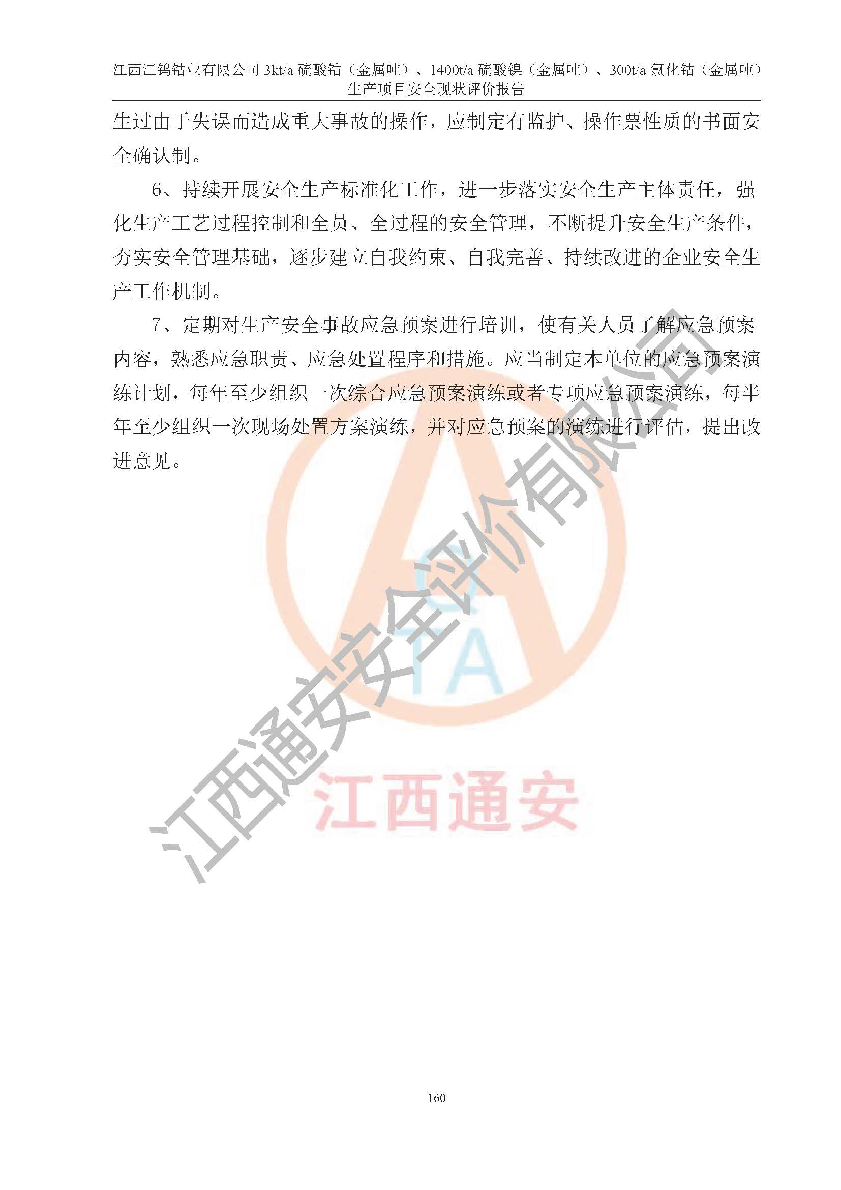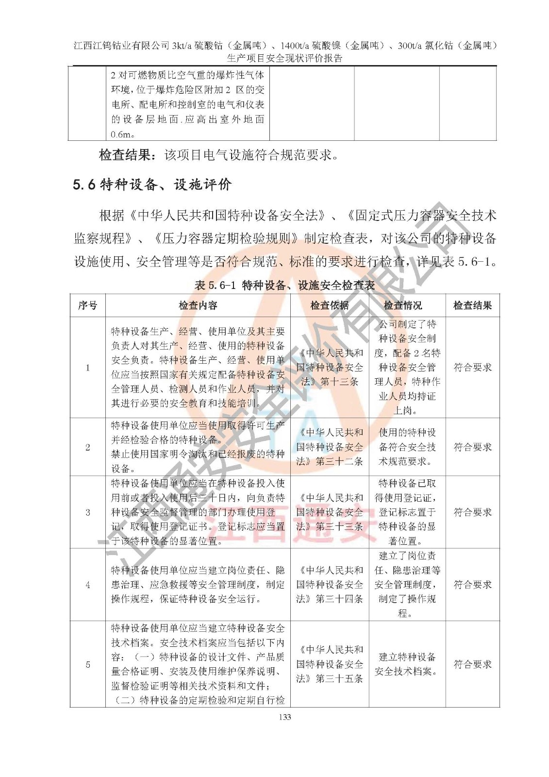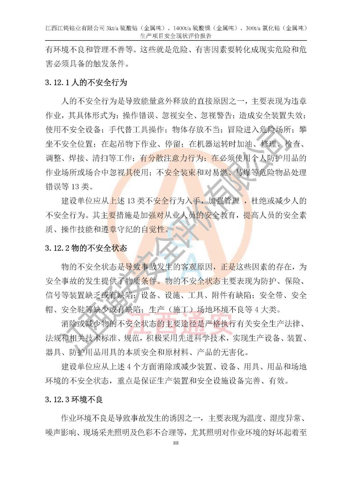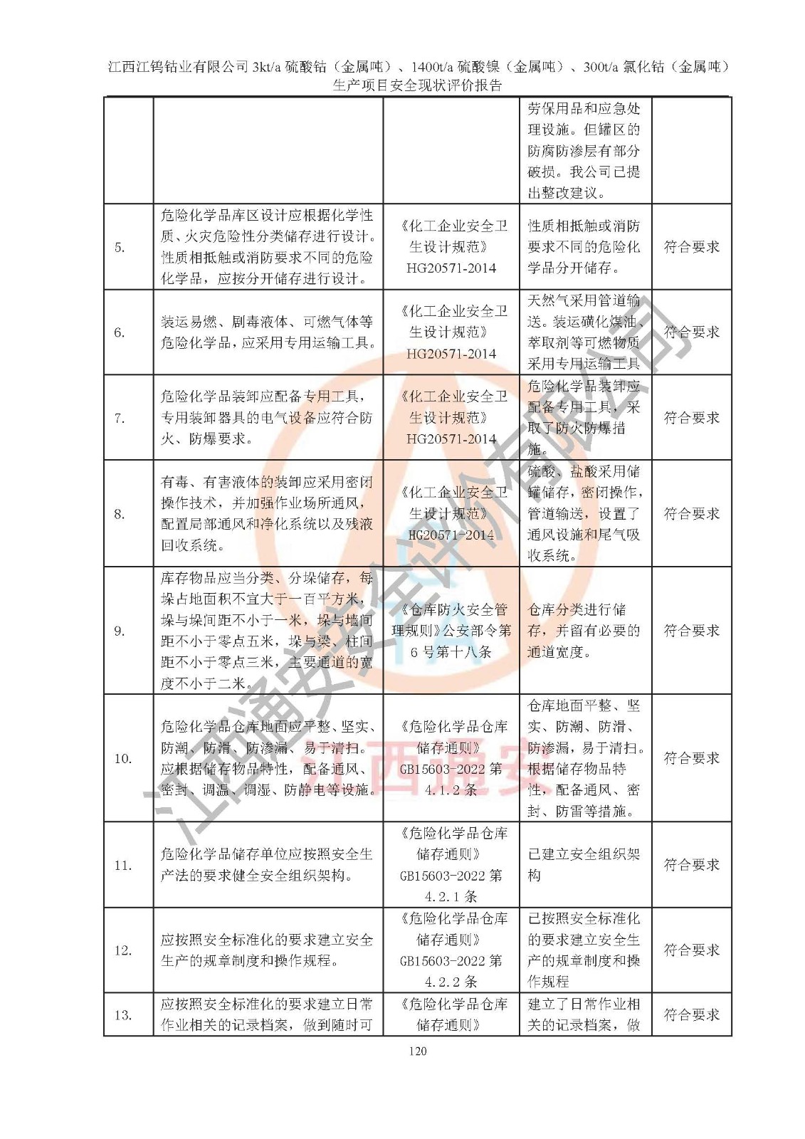 一、定量評價(jià)結(jié)果 1、作業(yè)條件危險(xiǎn)性分析評價(jià)結(jié)果:在選定的13個(gè)評價(jià)單元中,作業(yè)危險(xiǎn)等級為“可能危險(xiǎn),需要注意”,作業(yè)條件相對安全。 2、危險(xiǎn)程評價(jià)法分析結(jié)果:化工材料倉庫及罐區(qū)危險(xiǎn)程度為**危險(xiǎn),本項(xiàng)目在硫酸和鹽酸儲罐區(qū)設(shè)有圍堰、洗眼噴淋設(shè)施,儲罐均為常壓設(shè)備,設(shè)有就地液位和遠(yuǎn)傳的高低液位報(bào)警裝置,卸料、物料輸送、投料采用密閉化和機(jī)械化操作,公司制定了酸罐區(qū)的安全操作規(guī)程,作業(yè)人員穿戴個(gè)體防護(hù)用品,并配備了應(yīng)急救援裝備,通過采取**的安全設(shè)施和安全管理措施可以使風(fēng)險(xiǎn)降低到可接受范圍內(nèi);萃取車間危險(xiǎn)程度為低度危險(xiǎn)。風(fēng)險(xiǎn)在可接受范圍內(nèi)。。 4、定量風(fēng)險(xiǎn)評價(jià)分析結(jié)果:根據(jù)個(gè)人風(fēng)險(xiǎn)分析效果圖,該項(xiàng)目的個(gè)人風(fēng)險(xiǎn)符合要求;根據(jù)社會風(fēng)險(xiǎn)分析效果圖可知,該項(xiàng)目無社會風(fēng)險(xiǎn)。鍋爐發(fā)生物理爆炸的多米諾半徑局限在廠界內(nèi),企業(yè)會定期對鍋爐、空氣儲罐及安全附件進(jìn)行檢測,鍋爐操作工持證上崗,并加強(qiáng)日常的安全管理,可**降低發(fā)生物理爆炸的風(fēng)險(xiǎn)。 二、定性評價(jià)結(jié)果 1、依據(jù)相關(guān)法律、法規(guī)、標(biāo)準(zhǔn)等的規(guī)定,該項(xiàng)目外部安全條件、總平面布置、工藝及設(shè)備、防火防爆安全設(shè)施等符合**相關(guān)標(biāo)準(zhǔn)規(guī)范的要求,能滿足安全生產(chǎn)的要求。根據(jù)《江西江鎢鈷業(yè)有限公司全流程自動(dòng)化控制評估報(bào)告》(含《隱患清單》)評估報(bào)告,在役裝置的自動(dòng)化系統(tǒng)不需要提升。 2、該項(xiàng)目公用輔助設(shè)施能夠滿足安全生產(chǎn)的要求。 3、該項(xiàng)目按要求設(shè)置了安全生產(chǎn)管理機(jī)構(gòu),配備了專職安全生產(chǎn)管理人員,建立了全員安全生產(chǎn)責(zé)任制,制定了安全管理制度和崗位安全操作規(guī)程等。該公司修訂了生產(chǎn)安全事故應(yīng)急預(yù)案,配備了應(yīng)急救援器材,按要求定期進(jìn)行相關(guān)培訓(xùn)及演練。 4、公司主要負(fù)責(zé)人、安全管理人員經(jīng)培訓(xùn)考核取得了相應(yīng)的安全資格證書。主要負(fù)責(zé)人、分管安全負(fù)責(zé)人、分管生產(chǎn)、設(shè)備、技術(shù)負(fù)責(zé)人和安全管理人員的專業(yè)和學(xué)歷符合要求。特種作業(yè)人員均經(jīng)過培訓(xùn)考核合格后持證上崗,其他從業(yè)人員均進(jìn)行了安全教育培訓(xùn),具備安全知識與操作技能;公司配備了應(yīng)急救援物資,為從業(yè)人員配備了相應(yīng)的勞動(dòng)防護(hù)用品。 5、該項(xiàng)目的安全生產(chǎn)條件符合《安全生產(chǎn)許可證條例》、《危險(xiǎn)化學(xué)品生產(chǎn)企業(yè)安全生產(chǎn)許可證實(shí)施辦法》的要求,該項(xiàng)目不涉及重大生產(chǎn)安全事故隱患。 6、該項(xiàng)目不涉及重大生產(chǎn)安全事故隱患,采取的安全設(shè)施符合要求。 三、評價(jià)結(jié)論 江西江鎢鈷業(yè)有限公司符合城鄉(xiāng)規(guī)劃和布局,總平面布置符合《建筑設(shè)計(jì)防火規(guī)范(2018年版)》GB50016-2014等標(biāo)準(zhǔn)、規(guī)范的要求,采用成熟的生產(chǎn)工藝和設(shè)備,本質(zhì)安全程度較高;生產(chǎn)項(xiàng)目對現(xiàn)場存在事故危險(xiǎn)的設(shè)施和場所采取了合理可行的防護(hù)措施和科學(xué)的管理,使生產(chǎn)過程中的危險(xiǎn)有害因素能得到**控制。建設(shè)項(xiàng)目安全設(shè)施符合**現(xiàn)行有關(guān)法律、法規(guī)、標(biāo)準(zhǔn)的要求。企業(yè)對現(xiàn)場存在的安全問題進(jìn)行了整改,主要的安全缺陷消除。 評價(jià)結(jié)論:江西江鎢鈷業(yè)有限公司3kt/a硫酸鈷(金屬噸)、1400t/a硫酸鎳(金屬噸)、300t/a氯化鈷(金屬噸)生產(chǎn)項(xiàng)目的現(xiàn)場情況與設(shè)計(jì)變更圖紙一致,PLC控制系統(tǒng)設(shè)計(jì)符合要求、運(yùn)行正常,有關(guān)從業(yè)人員資質(zhì)符合《江西省危險(xiǎn)化學(xué)品安全專項(xiàng)整治三年行動(dòng)實(shí)施方案》要求,安全設(shè)施及安全管理符合法律、法規(guī)、標(biāo)準(zhǔn)的要求,安全風(fēng)險(xiǎn)是受控制的,其風(fēng)險(xiǎn)程度是可以接受的,安全設(shè)施符合安全生產(chǎn)條件,能夠滿足安全生產(chǎn)的要求。 |