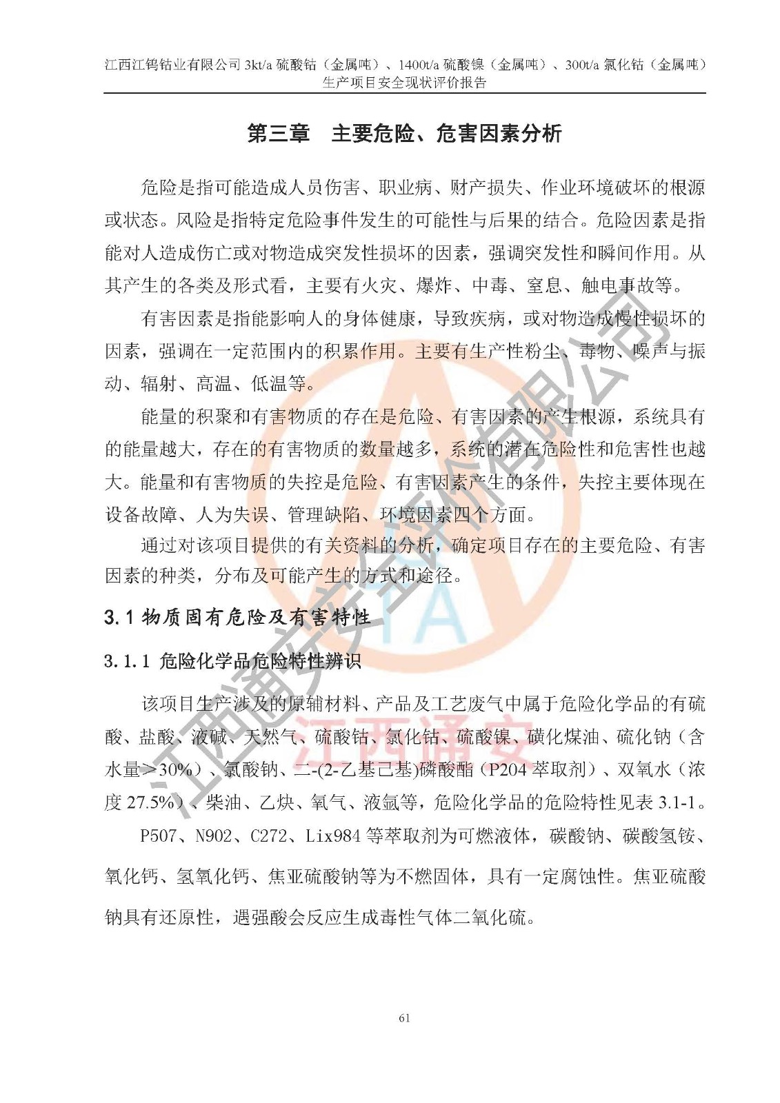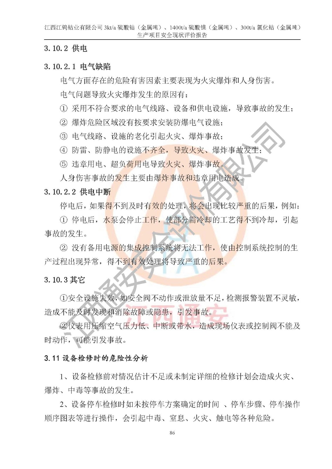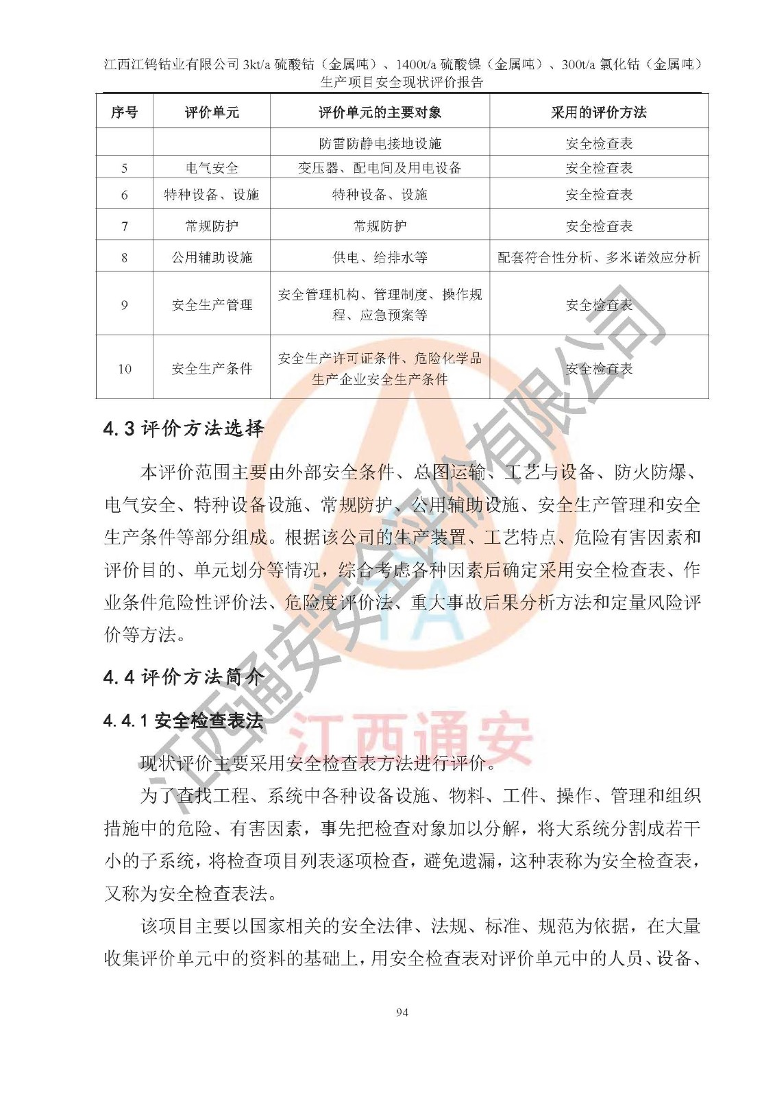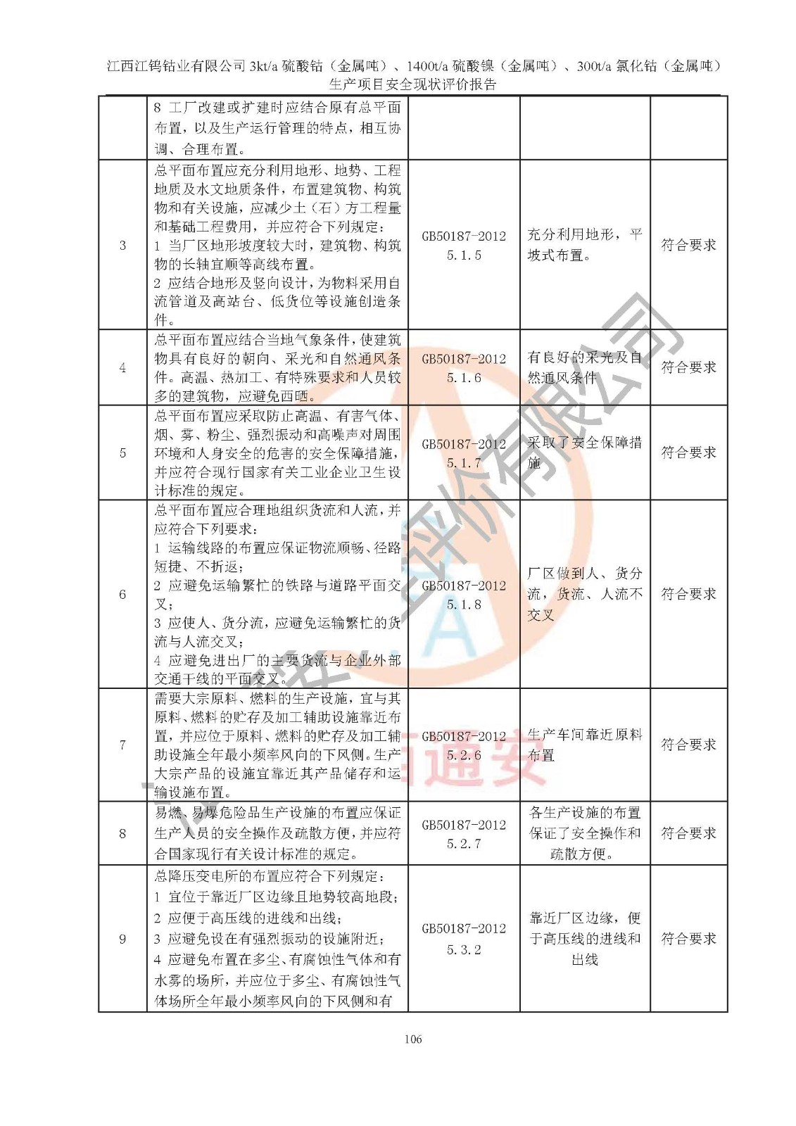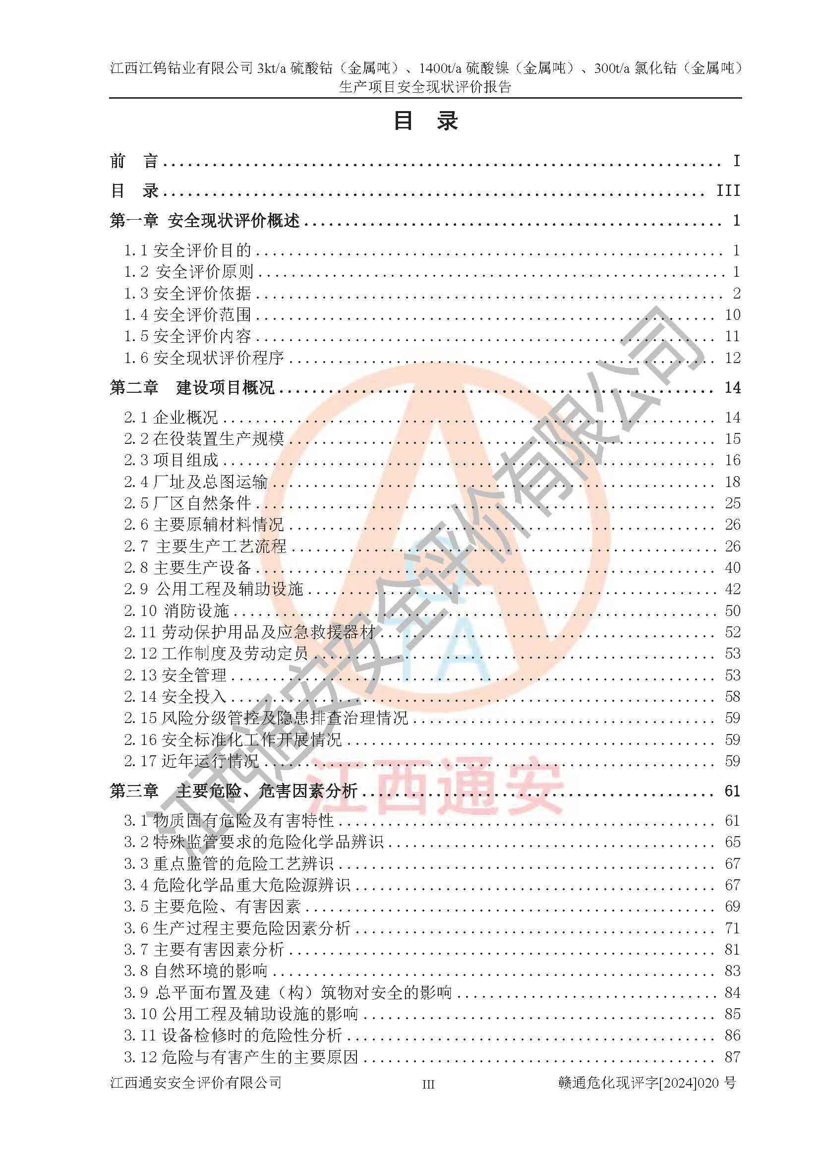 一、定量評價(jià)結(jié)果 1、作業(yè)條件危險(xiǎn)性分析評價(jià)結(jié)果:在選定的13個(gè)評價(jià)單元中,作業(yè)危險(xiǎn)等級為“可能危險(xiǎn),需要注意”,作業(yè)條件相對安全。 2、危險(xiǎn)程評價(jià)法分析結(jié)果:化工材料倉庫及罐區(qū)危險(xiǎn)程度為**危險(xiǎn),本項(xiàng)目在硫酸和鹽酸儲罐區(qū)設(shè)有圍堰、洗眼噴淋設(shè)施,儲罐均為常壓設(shè)備,設(shè)有就地液位和遠(yuǎn)傳的高低液位報(bào)警裝置,卸料、物料輸送、投料采用密閉化和機(jī)械化操作,公司制定了酸罐區(qū)的安全操作規(guī)程,作業(yè)人員穿戴個(gè)體防護(hù)用品,并配備了應(yīng)急救援裝備,通過采取**的安全設(shè)施和安全管理措施可以使風(fēng)險(xiǎn)降低到可接受范圍內(nèi);萃取車間危險(xiǎn)程度為低度危險(xiǎn)。風(fēng)險(xiǎn)在可接受范圍內(nèi)。。 4、定量風(fēng)險(xiǎn)評價(jià)分析結(jié)果:根據(jù)個(gè)人風(fēng)險(xiǎn)分析效果圖,該項(xiàng)目的個(gè)人風(fēng)險(xiǎn)符合要求;根據(jù)社會風(fēng)險(xiǎn)分析效果圖可知,該項(xiàng)目無社會風(fēng)險(xiǎn)。鍋爐發(fā)生物理爆炸的多米諾半徑局限在廠界內(nèi),企業(yè)會定期對鍋爐、空氣儲罐及安全附件進(jìn)行檢測,鍋爐操作工持證上崗,并加強(qiáng)日常的安全管理,可**降低發(fā)生物理爆炸的風(fēng)險(xiǎn)。 二、定性評價(jià)結(jié)果 1、依據(jù)相關(guān)法律、法規(guī)、標(biāo)準(zhǔn)等的規(guī)定,該項(xiàng)目外部安全條件、總平面布置、工藝及設(shè)備、防火防爆安全設(shè)施等符合**相關(guān)標(biāo)準(zhǔn)規(guī)范的要求,能滿足安全生產(chǎn)的要求。根據(jù)《江西江鎢鈷業(yè)有限公司全流程自動(dòng)化控制評估報(bào)告》(含《隱患清單》)評估報(bào)告,在役裝置的自動(dòng)化系統(tǒng)不需要提升。 2、該項(xiàng)目公用輔助設(shè)施能夠滿足安全生產(chǎn)的要求。 3、該項(xiàng)目按要求設(shè)置了安全生產(chǎn)管理機(jī)構(gòu),配備了專職安全生產(chǎn)管理人員,建立了全員安全生產(chǎn)責(zé)任制,制定了安全管理制度和崗位安全操作規(guī)程等。該公司修訂了生產(chǎn)安全事故應(yīng)急預(yù)案,配備了應(yīng)急救援器材,按要求定期進(jìn)行相關(guān)培訓(xùn)及演練。 4、公司主要負(fù)責(zé)人、安全管理人員經(jīng)培訓(xùn)考核取得了相應(yīng)的安全資格證書。主要負(fù)責(zé)人、分管安全負(fù)責(zé)人、分管生產(chǎn)、設(shè)備、技術(shù)負(fù)責(zé)人和安全管理人員的專業(yè)和學(xué)歷符合要求。特種作業(yè)人員均經(jīng)過培訓(xùn)考核合格后持證上崗,其他從業(yè)人員均進(jìn)行了安全教育培訓(xùn),具備安全知識與操作技能;公司配備了應(yīng)急救援物資,為從業(yè)人員配備了相應(yīng)的勞動(dòng)防護(hù)用品。 5、該項(xiàng)目的安全生產(chǎn)條件符合《安全生產(chǎn)許可證條例》、《危險(xiǎn)化學(xué)品生產(chǎn)企業(yè)安全生產(chǎn)許可證實(shí)施辦法》的要求,該項(xiàng)目不涉及重大生產(chǎn)安全事故隱患。 6、該項(xiàng)目不涉及重大生產(chǎn)安全事故隱患,采取的安全設(shè)施符合要求。 三、評價(jià)結(jié)論 江西江鎢鈷業(yè)有限公司符合城鄉(xiāng)規(guī)劃和布局,總平面布置符合《建筑設(shè)計(jì)防火規(guī)范(2018年版)》GB50016-2014等標(biāo)準(zhǔn)、規(guī)范的要求,采用成熟的生產(chǎn)工藝和設(shè)備,本質(zhì)安全程度較高;生產(chǎn)項(xiàng)目對現(xiàn)場存在事故危險(xiǎn)的設(shè)施和場所采取了合理可行的防護(hù)措施和科學(xué)的管理,使生產(chǎn)過程中的危險(xiǎn)有害因素能得到**控制。建設(shè)項(xiàng)目安全設(shè)施符合**現(xiàn)行有關(guān)法律、法規(guī)、標(biāo)準(zhǔn)的要求。企業(yè)對現(xiàn)場存在的安全問題進(jìn)行了整改,主要的安全缺陷消除。 評價(jià)結(jié)論:江西江鎢鈷業(yè)有限公司3kt/a硫酸鈷(金屬噸)、1400t/a硫酸鎳(金屬噸)、300t/a氯化鈷(金屬噸)生產(chǎn)項(xiàng)目的現(xiàn)場情況與設(shè)計(jì)變更圖紙一致,PLC控制系統(tǒng)設(shè)計(jì)符合要求、運(yùn)行正常,有關(guān)從業(yè)人員資質(zhì)符合《江西省危險(xiǎn)化學(xué)品安全專項(xiàng)整治三年行動(dòng)實(shí)施方案》要求,安全設(shè)施及安全管理符合法律、法規(guī)、標(biāo)準(zhǔn)的要求,安全風(fēng)險(xiǎn)是受控制的,其風(fēng)險(xiǎn)程度是可以接受的,安全設(shè)施符合安全生產(chǎn)條件,能夠滿足安全生產(chǎn)的要求。 |
