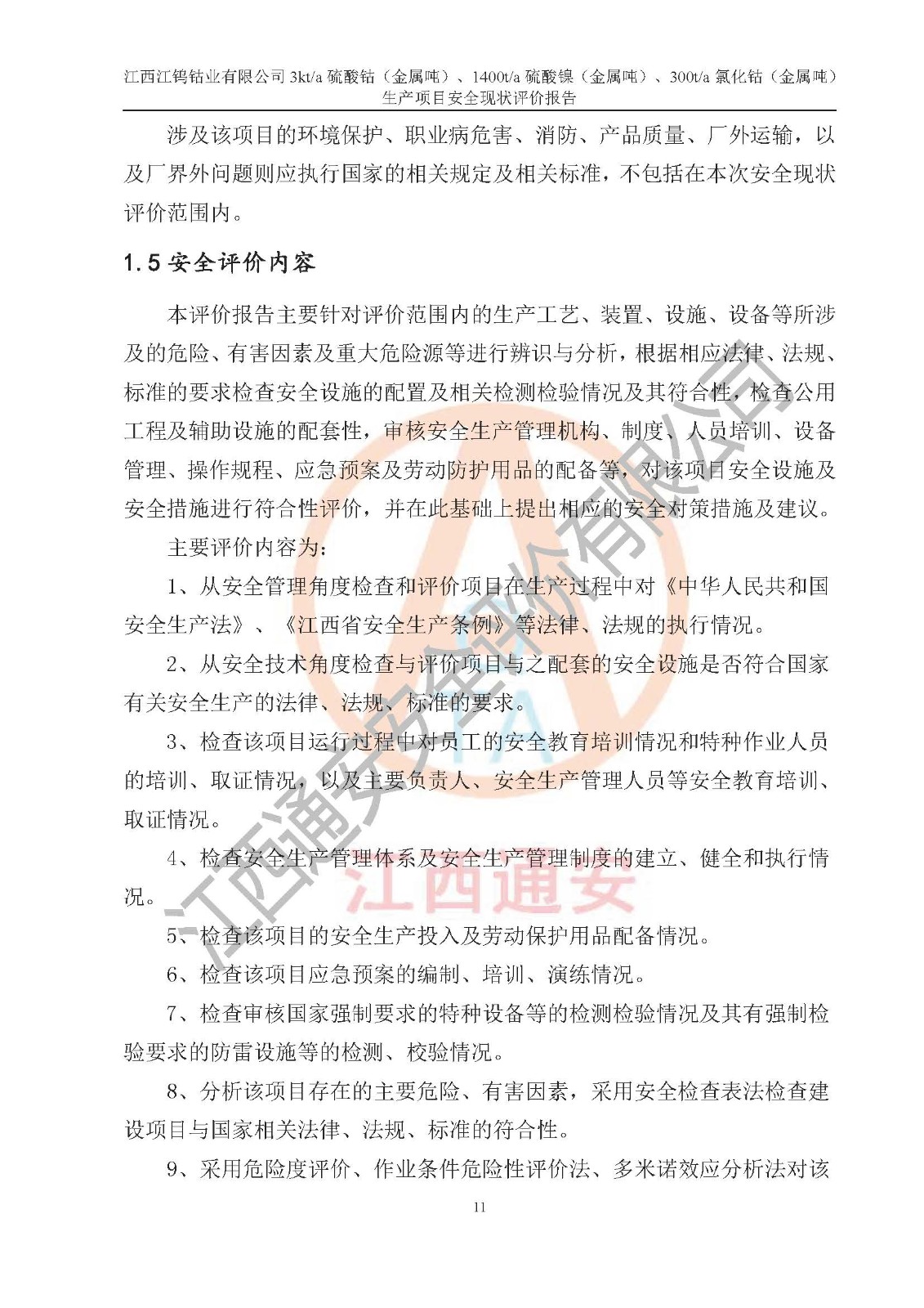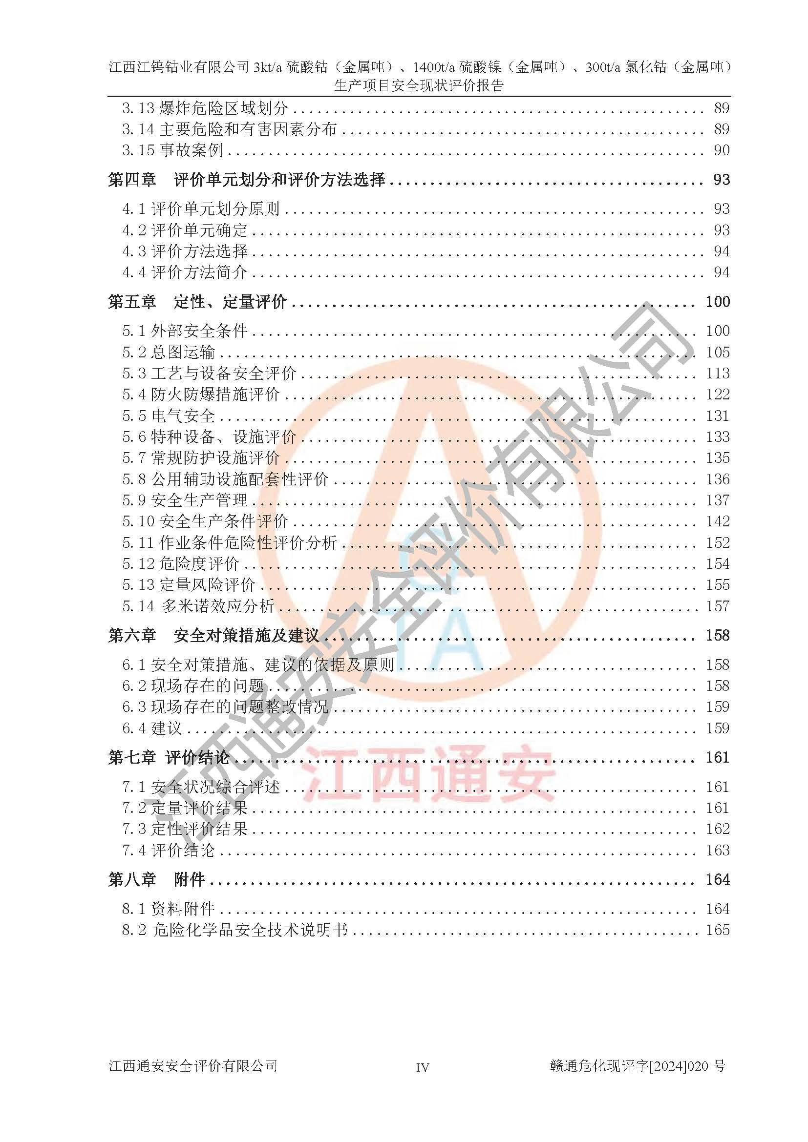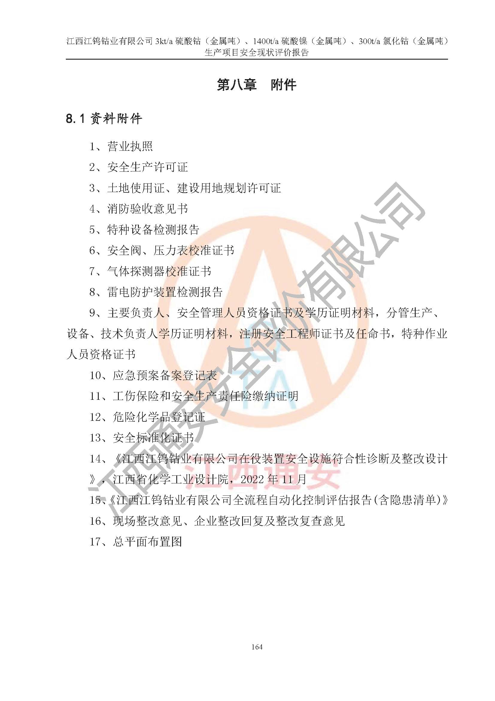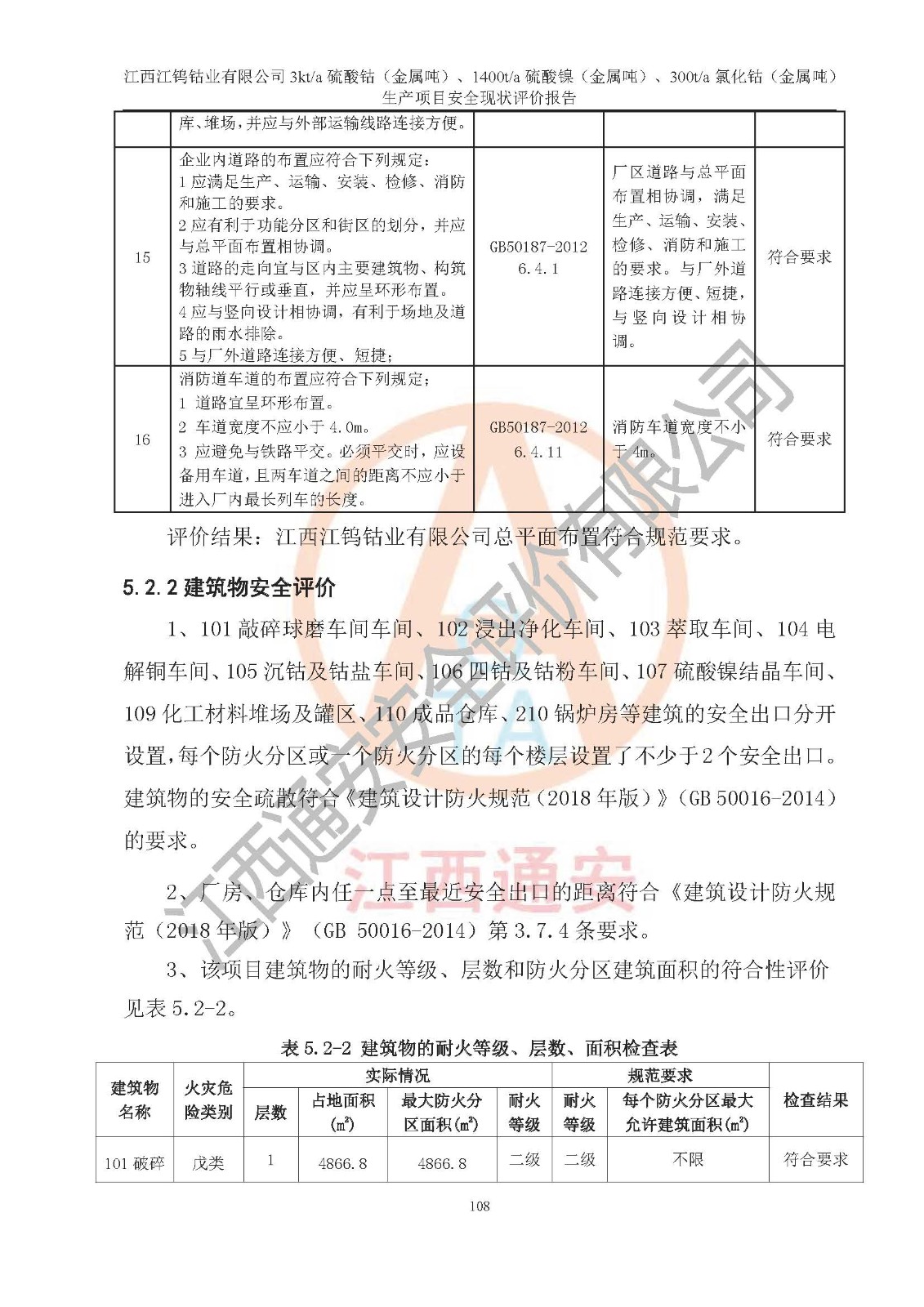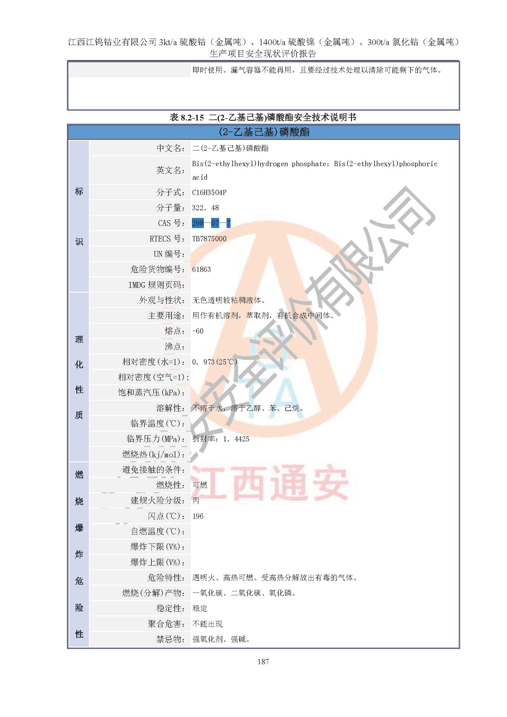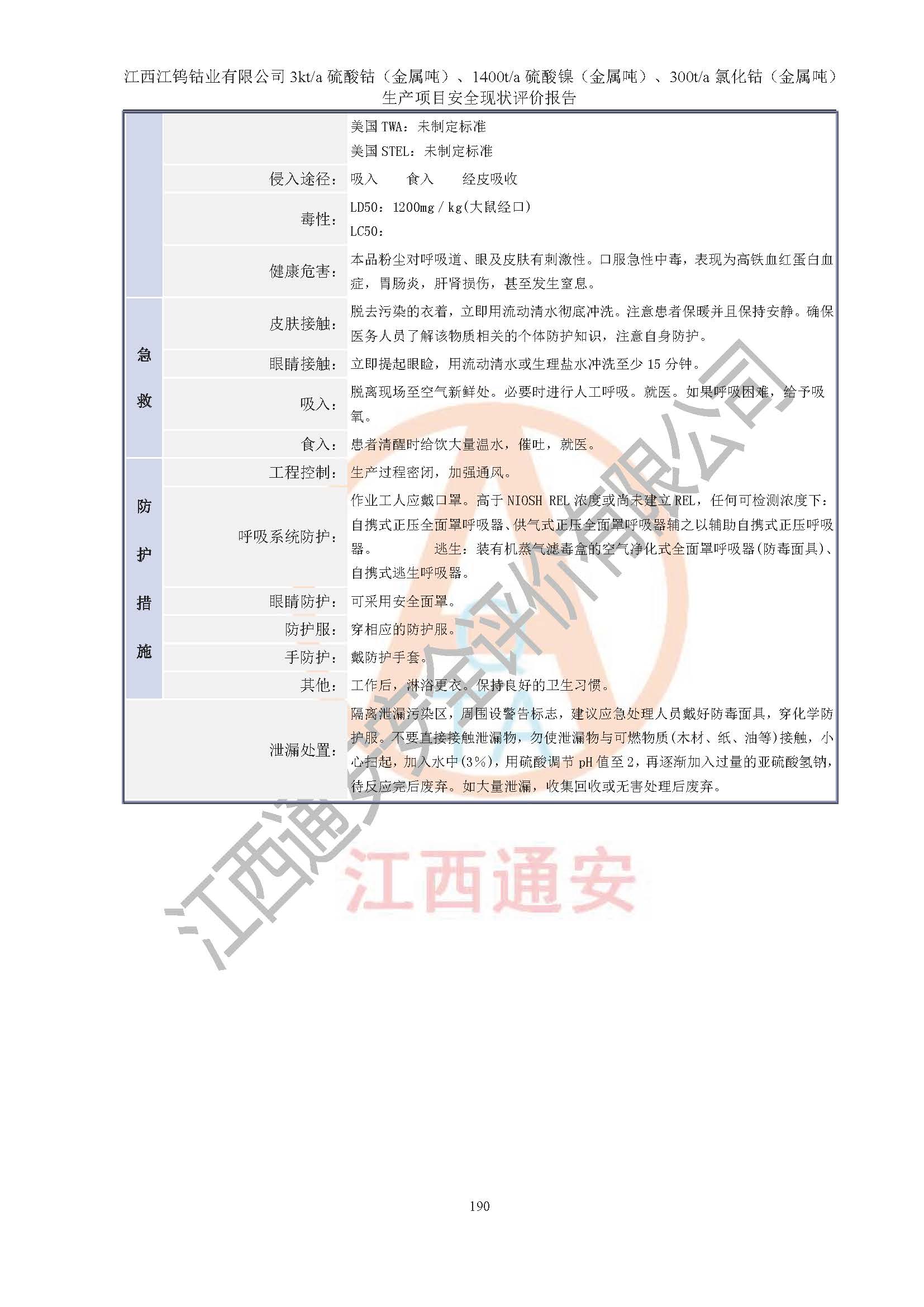 一、定量評價(jià)結(jié)果 1、作業(yè)條件危險(xiǎn)性分析評價(jià)結(jié)果:在選定的13個(gè)評價(jià)單元中,作業(yè)危險(xiǎn)等級為“可能危險(xiǎn),需要注意”,作業(yè)條件相對安全。 2、危險(xiǎn)程評價(jià)法分析結(jié)果:化工材料倉庫及罐區(qū)危險(xiǎn)程度為**危險(xiǎn),本項(xiàng)目在硫酸和鹽酸儲罐區(qū)設(shè)有圍堰、洗眼噴淋設(shè)施,儲罐均為常壓設(shè)備,設(shè)有就地液位和遠(yuǎn)傳的高低液位報(bào)警裝置,卸料、物料輸送、投料采用密閉化和機(jī)械化操作,公司制定了酸罐區(qū)的安全操作規(guī)程,作業(yè)人員穿戴個(gè)體防護(hù)用品,并配備了應(yīng)急救援裝備,通過采取**的安全設(shè)施和安全管理措施可以使風(fēng)險(xiǎn)降低到可接受范圍內(nèi);萃取車間危險(xiǎn)程度為低度危險(xiǎn)。風(fēng)險(xiǎn)在可接受范圍內(nèi)。。 4、定量風(fēng)險(xiǎn)評價(jià)分析結(jié)果:根據(jù)個(gè)人風(fēng)險(xiǎn)分析效果圖,該項(xiàng)目的個(gè)人風(fēng)險(xiǎn)符合要求;根據(jù)社會風(fēng)險(xiǎn)分析效果圖可知,該項(xiàng)目無社會風(fēng)險(xiǎn)。鍋爐發(fā)生物理爆炸的多米諾半徑局限在廠界內(nèi),企業(yè)會定期對鍋爐、空氣儲罐及安全附件進(jìn)行檢測,鍋爐操作工持證上崗,并加強(qiáng)日常的安全管理,可**降低發(fā)生物理爆炸的風(fēng)險(xiǎn)。 二、定性評價(jià)結(jié)果 1、依據(jù)相關(guān)法律、法規(guī)、標(biāo)準(zhǔn)等的規(guī)定,該項(xiàng)目外部安全條件、總平面布置、工藝及設(shè)備、防火防爆安全設(shè)施等符合**相關(guān)標(biāo)準(zhǔn)規(guī)范的要求,能滿足安全生產(chǎn)的要求。根據(jù)《江西江鎢鈷業(yè)有限公司全流程自動(dòng)化控制評估報(bào)告》(含《隱患清單》)評估報(bào)告,在役裝置的自動(dòng)化系統(tǒng)不需要提升。 2、該項(xiàng)目公用輔助設(shè)施能夠滿足安全生產(chǎn)的要求。 3、該項(xiàng)目按要求設(shè)置了安全生產(chǎn)管理機(jī)構(gòu),配備了專職安全生產(chǎn)管理人員,建立了全員安全生產(chǎn)責(zé)任制,制定了安全管理制度和崗位安全操作規(guī)程等。該公司修訂了生產(chǎn)安全事故應(yīng)急預(yù)案,配備了應(yīng)急救援器材,按要求定期進(jìn)行相關(guān)培訓(xùn)及演練。 4、公司主要負(fù)責(zé)人、安全管理人員經(jīng)培訓(xùn)考核取得了相應(yīng)的安全資格證書。主要負(fù)責(zé)人、分管安全負(fù)責(zé)人、分管生產(chǎn)、設(shè)備、技術(shù)負(fù)責(zé)人和安全管理人員的專業(yè)和學(xué)歷符合要求。特種作業(yè)人員均經(jīng)過培訓(xùn)考核合格后持證上崗,其他從業(yè)人員均進(jìn)行了安全教育培訓(xùn),具備安全知識與操作技能;公司配備了應(yīng)急救援物資,為從業(yè)人員配備了相應(yīng)的勞動(dòng)防護(hù)用品。 5、該項(xiàng)目的安全生產(chǎn)條件符合《安全生產(chǎn)許可證條例》、《危險(xiǎn)化學(xué)品生產(chǎn)企業(yè)安全生產(chǎn)許可證實(shí)施辦法》的要求,該項(xiàng)目不涉及重大生產(chǎn)安全事故隱患。 6、該項(xiàng)目不涉及重大生產(chǎn)安全事故隱患,采取的安全設(shè)施符合要求。 三、評價(jià)結(jié)論 江西江鎢鈷業(yè)有限公司符合城鄉(xiāng)規(guī)劃和布局,總平面布置符合《建筑設(shè)計(jì)防火規(guī)范(2018年版)》GB50016-2014等標(biāo)準(zhǔn)、規(guī)范的要求,采用成熟的生產(chǎn)工藝和設(shè)備,本質(zhì)安全程度較高;生產(chǎn)項(xiàng)目對現(xiàn)場存在事故危險(xiǎn)的設(shè)施和場所采取了合理可行的防護(hù)措施和科學(xué)的管理,使生產(chǎn)過程中的危險(xiǎn)有害因素能得到**控制。建設(shè)項(xiàng)目安全設(shè)施符合**現(xiàn)行有關(guān)法律、法規(guī)、標(biāo)準(zhǔn)的要求。企業(yè)對現(xiàn)場存在的安全問題進(jìn)行了整改,主要的安全缺陷消除。 評價(jià)結(jié)論:江西江鎢鈷業(yè)有限公司3kt/a硫酸鈷(金屬噸)、1400t/a硫酸鎳(金屬噸)、300t/a氯化鈷(金屬噸)生產(chǎn)項(xiàng)目的現(xiàn)場情況與設(shè)計(jì)變更圖紙一致,PLC控制系統(tǒng)設(shè)計(jì)符合要求、運(yùn)行正常,有關(guān)從業(yè)人員資質(zhì)符合《江西省危險(xiǎn)化學(xué)品安全專項(xiàng)整治三年行動(dòng)實(shí)施方案》要求,安全設(shè)施及安全管理符合法律、法規(guī)、標(biāo)準(zhǔn)的要求,安全風(fēng)險(xiǎn)是受控制的,其風(fēng)險(xiǎn)程度是可以接受的,安全設(shè)施符合安全生產(chǎn)條件,能夠滿足安全生產(chǎn)的要求。 |