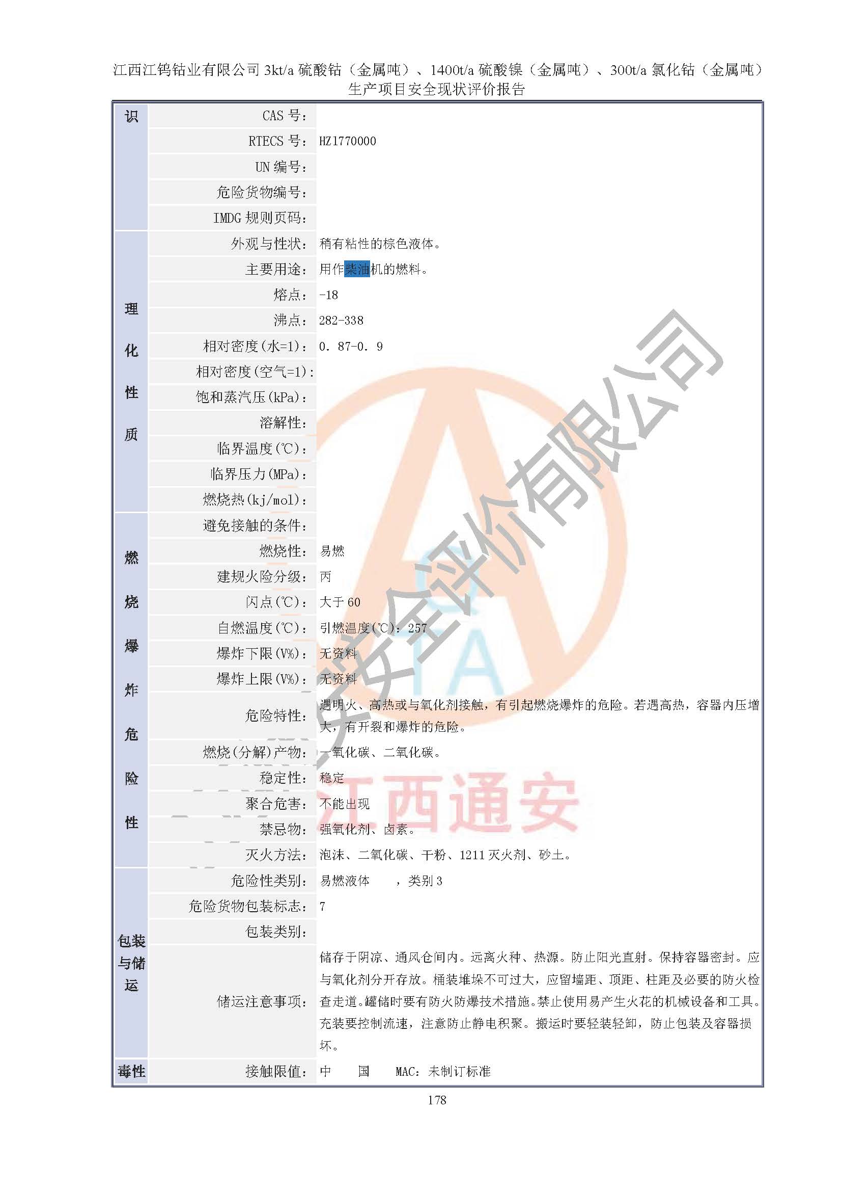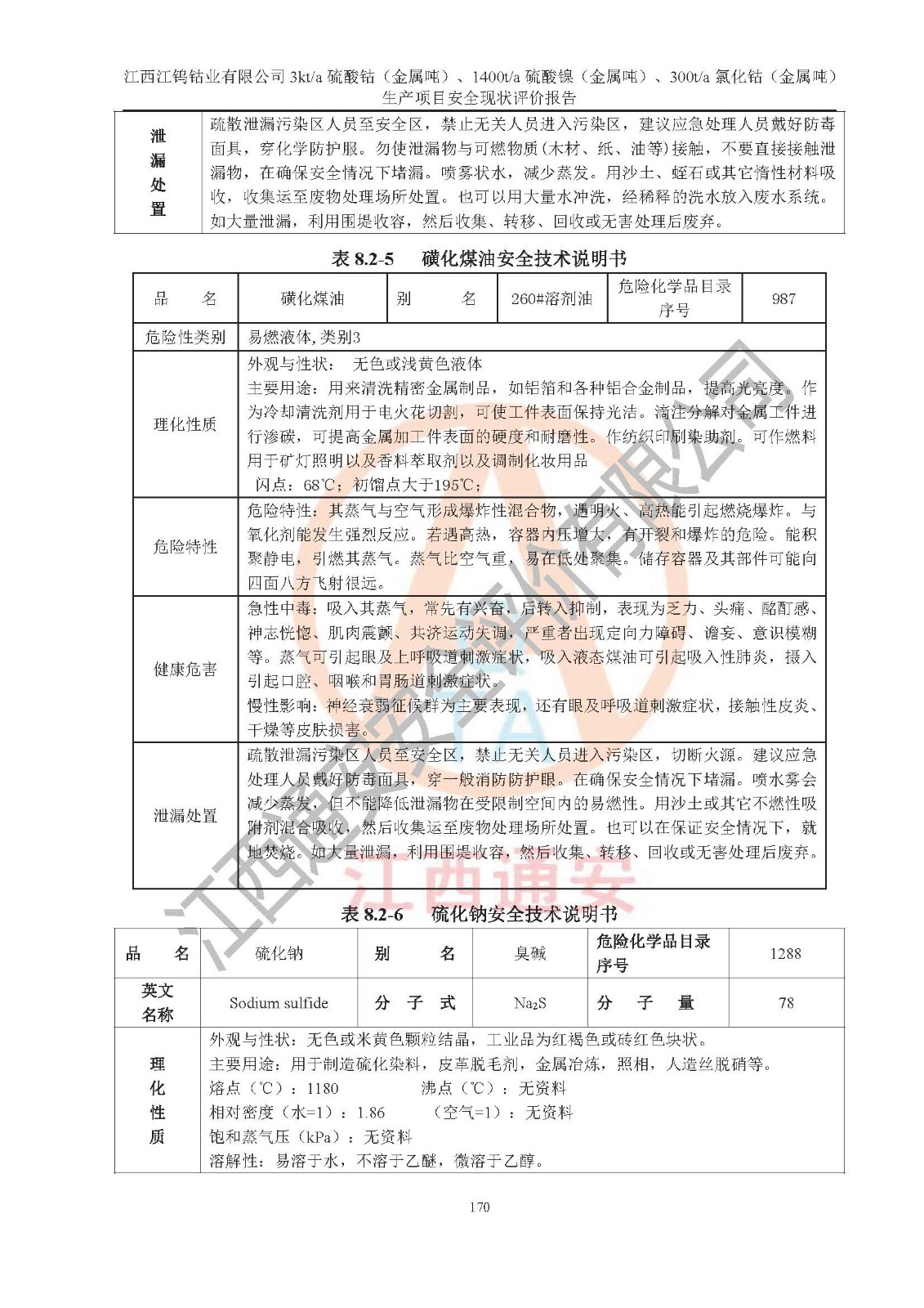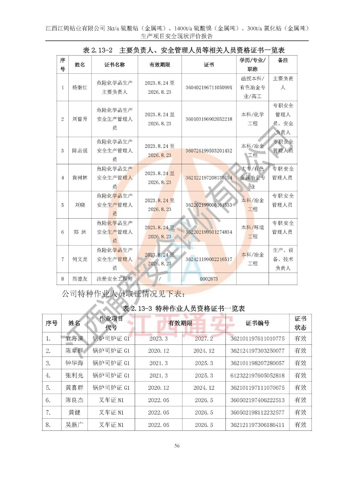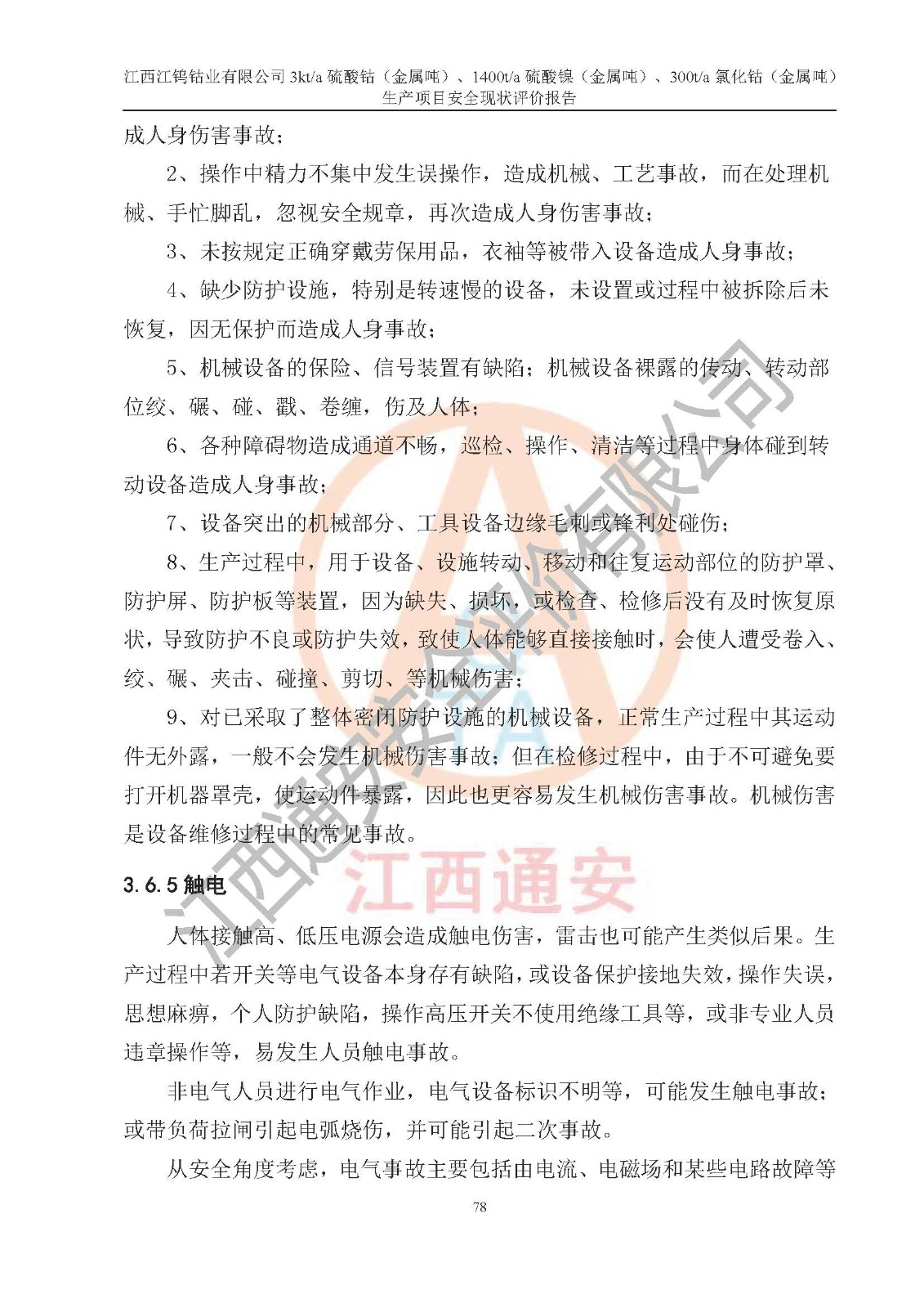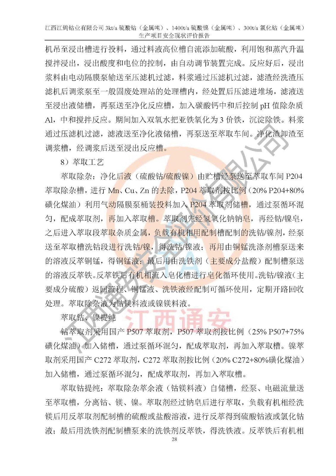 一、定量評價(jià)結(jié)果 1、作業(yè)條件危險(xiǎn)性分析評價(jià)結(jié)果:在選定的13個(gè)評價(jià)單元中,作業(yè)危險(xiǎn)等級為“可能危險(xiǎn),需要注意”,作業(yè)條件相對安全。 2、危險(xiǎn)程評價(jià)法分析結(jié)果:化工材料倉庫及罐區(qū)危險(xiǎn)程度為**危險(xiǎn),本項(xiàng)目在硫酸和鹽酸儲罐區(qū)設(shè)有圍堰、洗眼噴淋設(shè)施,儲罐均為常壓設(shè)備,設(shè)有就地液位和遠(yuǎn)傳的高低液位報(bào)警裝置,卸料、物料輸送、投料采用密閉化和機(jī)械化操作,公司制定了酸罐區(qū)的安全操作規(guī)程,作業(yè)人員穿戴個(gè)體防護(hù)用品,并配備了應(yīng)急救援裝備,通過采取**的安全設(shè)施和安全管理措施可以使風(fēng)險(xiǎn)降低到可接受范圍內(nèi);萃取車間危險(xiǎn)程度為低度危險(xiǎn)。風(fēng)險(xiǎn)在可接受范圍內(nèi)。。 4、定量風(fēng)險(xiǎn)評價(jià)分析結(jié)果:根據(jù)個(gè)人風(fēng)險(xiǎn)分析效果圖,該項(xiàng)目的個(gè)人風(fēng)險(xiǎn)符合要求;根據(jù)社會風(fēng)險(xiǎn)分析效果圖可知,該項(xiàng)目無社會風(fēng)險(xiǎn)。鍋爐發(fā)生物理爆炸的多米諾半徑局限在廠界內(nèi),企業(yè)會定期對鍋爐、空氣儲罐及安全附件進(jìn)行檢測,鍋爐操作工持證上崗,并加強(qiáng)日常的安全管理,可**降低發(fā)生物理爆炸的風(fēng)險(xiǎn)。 二、定性評價(jià)結(jié)果 1、依據(jù)相關(guān)法律、法規(guī)、標(biāo)準(zhǔn)等的規(guī)定,該項(xiàng)目外部安全條件、總平面布置、工藝及設(shè)備、防火防爆安全設(shè)施等符合**相關(guān)標(biāo)準(zhǔn)規(guī)范的要求,能滿足安全生產(chǎn)的要求。根據(jù)《江西江鎢鈷業(yè)有限公司全流程自動(dòng)化控制評估報(bào)告》(含《隱患清單》)評估報(bào)告,在役裝置的自動(dòng)化系統(tǒng)不需要提升。 2、該項(xiàng)目公用輔助設(shè)施能夠滿足安全生產(chǎn)的要求。 3、該項(xiàng)目按要求設(shè)置了安全生產(chǎn)管理機(jī)構(gòu),配備了專職安全生產(chǎn)管理人員,建立了全員安全生產(chǎn)責(zé)任制,制定了安全管理制度和崗位安全操作規(guī)程等。該公司修訂了生產(chǎn)安全事故應(yīng)急預(yù)案,配備了應(yīng)急救援器材,按要求定期進(jìn)行相關(guān)培訓(xùn)及演練。 4、公司主要負(fù)責(zé)人、安全管理人員經(jīng)培訓(xùn)考核取得了相應(yīng)的安全資格證書。主要負(fù)責(zé)人、分管安全負(fù)責(zé)人、分管生產(chǎn)、設(shè)備、技術(shù)負(fù)責(zé)人和安全管理人員的專業(yè)和學(xué)歷符合要求。特種作業(yè)人員均經(jīng)過培訓(xùn)考核合格后持證上崗,其他從業(yè)人員均進(jìn)行了安全教育培訓(xùn),具備安全知識與操作技能;公司配備了應(yīng)急救援物資,為從業(yè)人員配備了相應(yīng)的勞動(dòng)防護(hù)用品。 5、該項(xiàng)目的安全生產(chǎn)條件符合《安全生產(chǎn)許可證條例》、《危險(xiǎn)化學(xué)品生產(chǎn)企業(yè)安全生產(chǎn)許可證實(shí)施辦法》的要求,該項(xiàng)目不涉及重大生產(chǎn)安全事故隱患。 6、該項(xiàng)目不涉及重大生產(chǎn)安全事故隱患,采取的安全設(shè)施符合要求。 三、評價(jià)結(jié)論 江西江鎢鈷業(yè)有限公司符合城鄉(xiāng)規(guī)劃和布局,總平面布置符合《建筑設(shè)計(jì)防火規(guī)范(2018年版)》GB50016-2014等標(biāo)準(zhǔn)、規(guī)范的要求,采用成熟的生產(chǎn)工藝和設(shè)備,本質(zhì)安全程度較高;生產(chǎn)項(xiàng)目對現(xiàn)場存在事故危險(xiǎn)的設(shè)施和場所采取了合理可行的防護(hù)措施和科學(xué)的管理,使生產(chǎn)過程中的危險(xiǎn)有害因素能得到**控制。建設(shè)項(xiàng)目安全設(shè)施符合**現(xiàn)行有關(guān)法律、法規(guī)、標(biāo)準(zhǔn)的要求。企業(yè)對現(xiàn)場存在的安全問題進(jìn)行了整改,主要的安全缺陷消除。 評價(jià)結(jié)論:江西江鎢鈷業(yè)有限公司3kt/a硫酸鈷(金屬噸)、1400t/a硫酸鎳(金屬噸)、300t/a氯化鈷(金屬噸)生產(chǎn)項(xiàng)目的現(xiàn)場情況與設(shè)計(jì)變更圖紙一致,PLC控制系統(tǒng)設(shè)計(jì)符合要求、運(yùn)行正常,有關(guān)從業(yè)人員資質(zhì)符合《江西省危險(xiǎn)化學(xué)品安全專項(xiàng)整治三年行動(dòng)實(shí)施方案》要求,安全設(shè)施及安全管理符合法律、法規(guī)、標(biāo)準(zhǔn)的要求,安全風(fēng)險(xiǎn)是受控制的,其風(fēng)險(xiǎn)程度是可以接受的,安全設(shè)施符合安全生產(chǎn)條件,能夠滿足安全生產(chǎn)的要求。 |