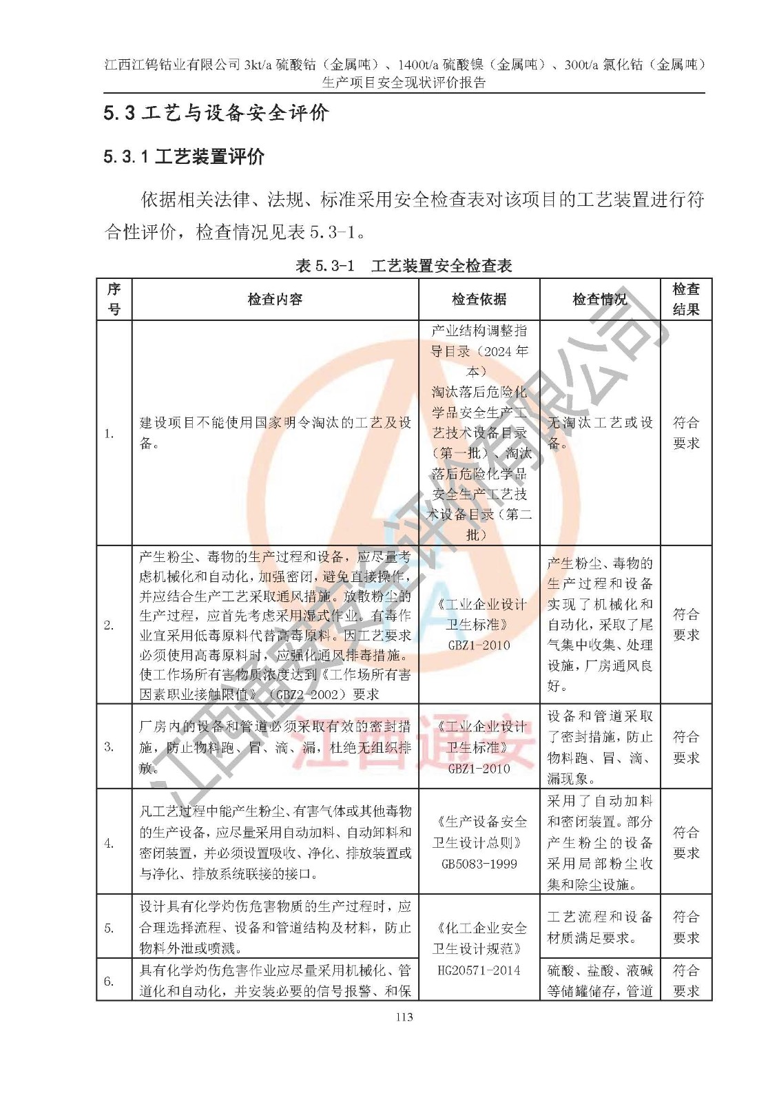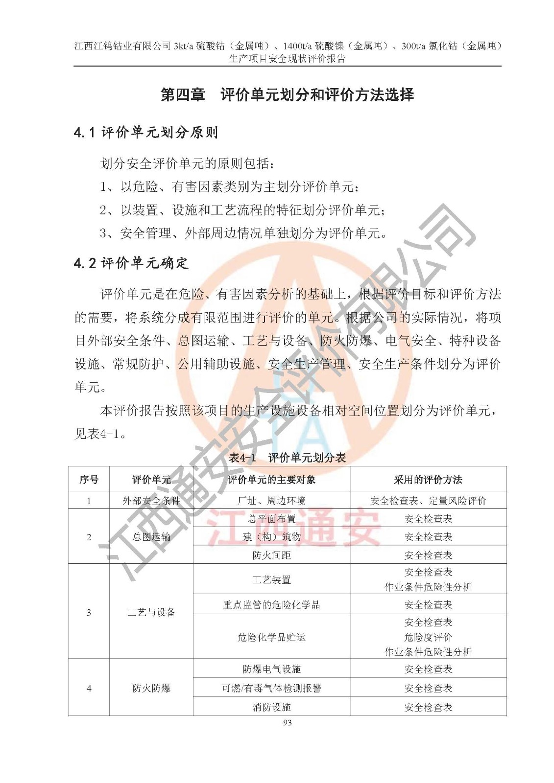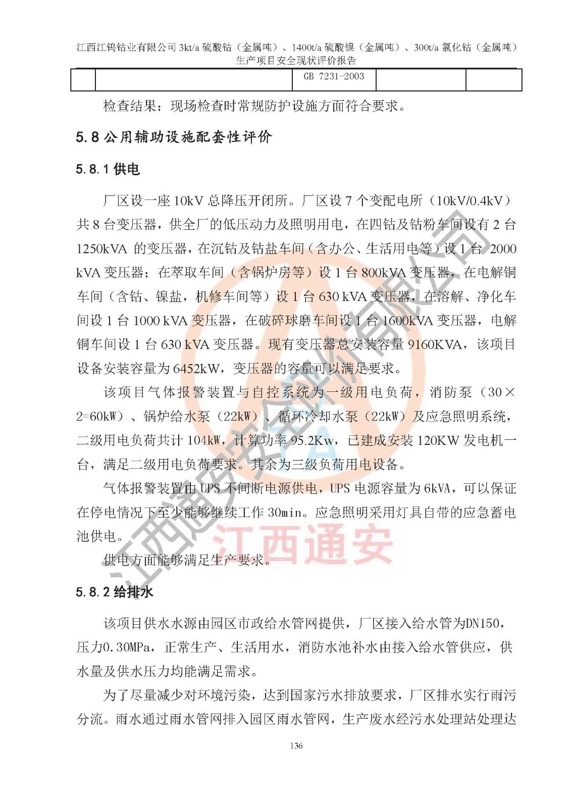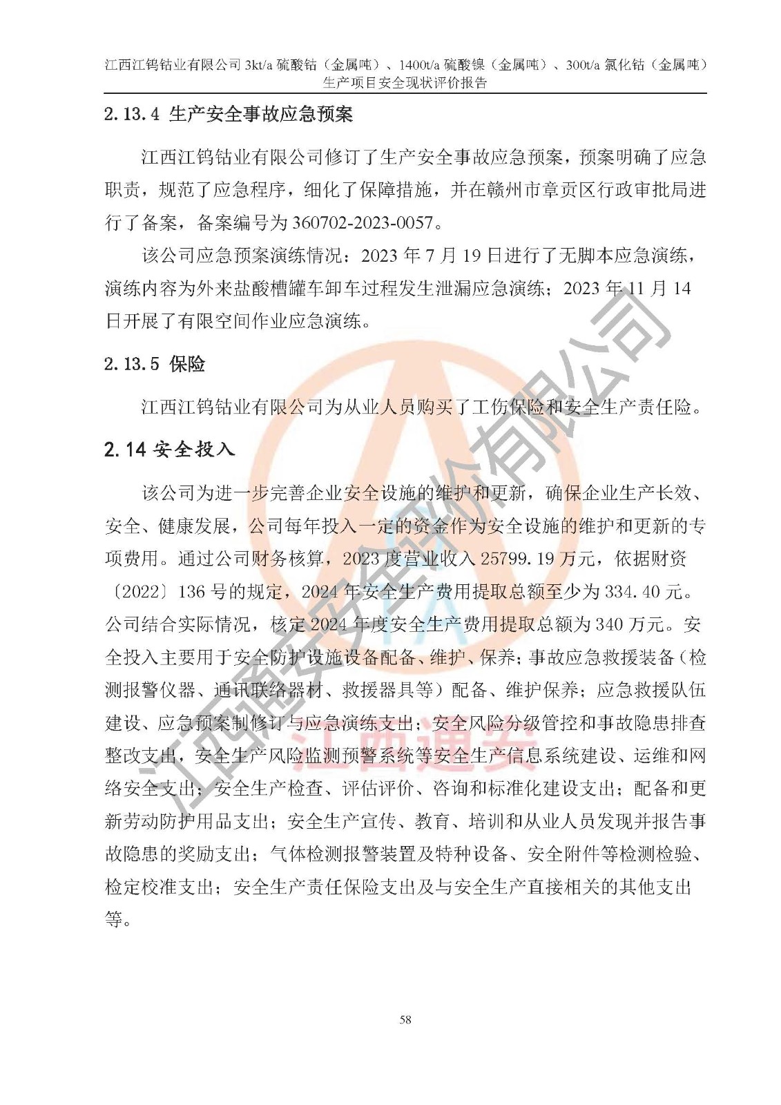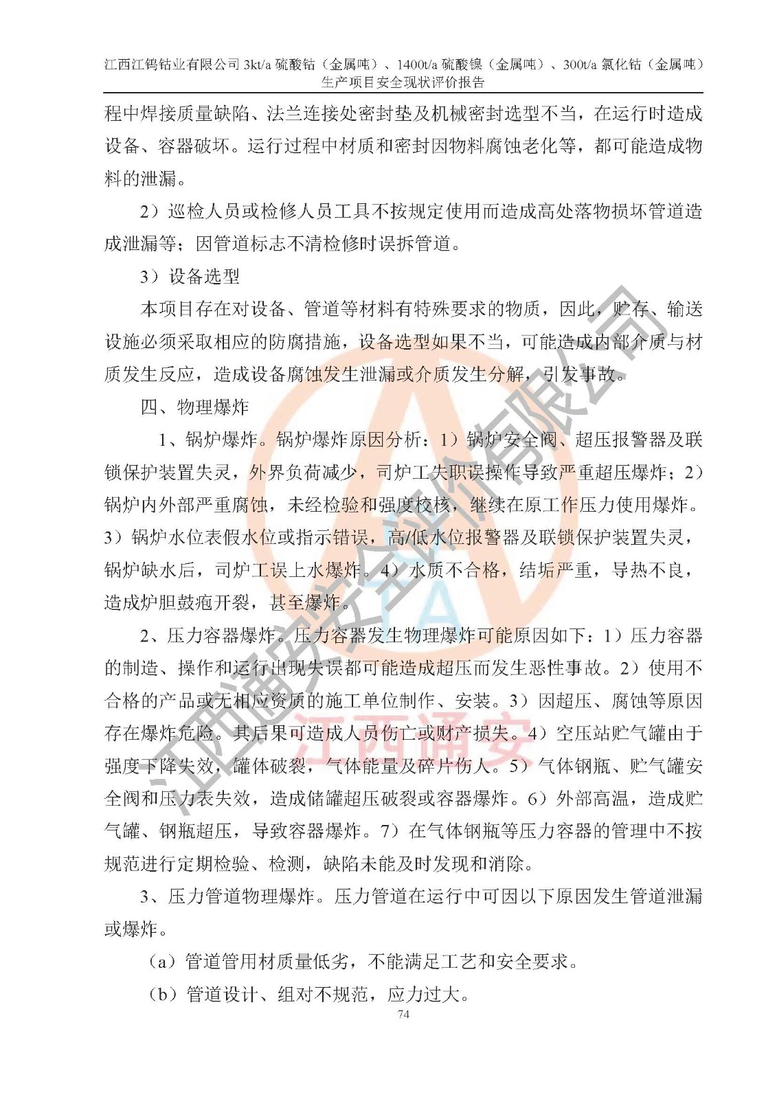 一、定量評價(jià)結(jié)果 1、作業(yè)條件危險(xiǎn)性分析評價(jià)結(jié)果:在選定的13個(gè)評價(jià)單元中,作業(yè)危險(xiǎn)等級為“可能危險(xiǎn),需要注意”,作業(yè)條件相對安全。 2、危險(xiǎn)程評價(jià)法分析結(jié)果:化工材料倉庫及罐區(qū)危險(xiǎn)程度為**危險(xiǎn),本項(xiàng)目在硫酸和鹽酸儲罐區(qū)設(shè)有圍堰、洗眼噴淋設(shè)施,儲罐均為常壓設(shè)備,設(shè)有就地液位和遠(yuǎn)傳的高低液位報(bào)警裝置,卸料、物料輸送、投料采用密閉化和機(jī)械化操作,公司制定了酸罐區(qū)的安全操作規(guī)程,作業(yè)人員穿戴個(gè)體防護(hù)用品,并配備了應(yīng)急救援裝備,通過采取**的安全設(shè)施和安全管理措施可以使風(fēng)險(xiǎn)降低到可接受范圍內(nèi);萃取車間危險(xiǎn)程度為低度危險(xiǎn)。風(fēng)險(xiǎn)在可接受范圍內(nèi)。。 4、定量風(fēng)險(xiǎn)評價(jià)分析結(jié)果:根據(jù)個(gè)人風(fēng)險(xiǎn)分析效果圖,該項(xiàng)目的個(gè)人風(fēng)險(xiǎn)符合要求;根據(jù)社會風(fēng)險(xiǎn)分析效果圖可知,該項(xiàng)目無社會風(fēng)險(xiǎn)。鍋爐發(fā)生物理爆炸的多米諾半徑局限在廠界內(nèi),企業(yè)會定期對鍋爐、空氣儲罐及安全附件進(jìn)行檢測,鍋爐操作工持證上崗,并加強(qiáng)日常的安全管理,可**降低發(fā)生物理爆炸的風(fēng)險(xiǎn)。 二、定性評價(jià)結(jié)果 1、依據(jù)相關(guān)法律、法規(guī)、標(biāo)準(zhǔn)等的規(guī)定,該項(xiàng)目外部安全條件、總平面布置、工藝及設(shè)備、防火防爆安全設(shè)施等符合**相關(guān)標(biāo)準(zhǔn)規(guī)范的要求,能滿足安全生產(chǎn)的要求。根據(jù)《江西江鎢鈷業(yè)有限公司全流程自動(dòng)化控制評估報(bào)告》(含《隱患清單》)評估報(bào)告,在役裝置的自動(dòng)化系統(tǒng)不需要提升。 2、該項(xiàng)目公用輔助設(shè)施能夠滿足安全生產(chǎn)的要求。 3、該項(xiàng)目按要求設(shè)置了安全生產(chǎn)管理機(jī)構(gòu),配備了專職安全生產(chǎn)管理人員,建立了全員安全生產(chǎn)責(zé)任制,制定了安全管理制度和崗位安全操作規(guī)程等。該公司修訂了生產(chǎn)安全事故應(yīng)急預(yù)案,配備了應(yīng)急救援器材,按要求定期進(jìn)行相關(guān)培訓(xùn)及演練。 4、公司主要負(fù)責(zé)人、安全管理人員經(jīng)培訓(xùn)考核取得了相應(yīng)的安全資格證書。主要負(fù)責(zé)人、分管安全負(fù)責(zé)人、分管生產(chǎn)、設(shè)備、技術(shù)負(fù)責(zé)人和安全管理人員的專業(yè)和學(xué)歷符合要求。特種作業(yè)人員均經(jīng)過培訓(xùn)考核合格后持證上崗,其他從業(yè)人員均進(jìn)行了安全教育培訓(xùn),具備安全知識與操作技能;公司配備了應(yīng)急救援物資,為從業(yè)人員配備了相應(yīng)的勞動(dòng)防護(hù)用品。 5、該項(xiàng)目的安全生產(chǎn)條件符合《安全生產(chǎn)許可證條例》、《危險(xiǎn)化學(xué)品生產(chǎn)企業(yè)安全生產(chǎn)許可證實(shí)施辦法》的要求,該項(xiàng)目不涉及重大生產(chǎn)安全事故隱患。 6、該項(xiàng)目不涉及重大生產(chǎn)安全事故隱患,采取的安全設(shè)施符合要求。 三、評價(jià)結(jié)論 江西江鎢鈷業(yè)有限公司符合城鄉(xiāng)規(guī)劃和布局,總平面布置符合《建筑設(shè)計(jì)防火規(guī)范(2018年版)》GB50016-2014等標(biāo)準(zhǔn)、規(guī)范的要求,采用成熟的生產(chǎn)工藝和設(shè)備,本質(zhì)安全程度較高;生產(chǎn)項(xiàng)目對現(xiàn)場存在事故危險(xiǎn)的設(shè)施和場所采取了合理可行的防護(hù)措施和科學(xué)的管理,使生產(chǎn)過程中的危險(xiǎn)有害因素能得到**控制。建設(shè)項(xiàng)目安全設(shè)施符合**現(xiàn)行有關(guān)法律、法規(guī)、標(biāo)準(zhǔn)的要求。企業(yè)對現(xiàn)場存在的安全問題進(jìn)行了整改,主要的安全缺陷消除。 評價(jià)結(jié)論:江西江鎢鈷業(yè)有限公司3kt/a硫酸鈷(金屬噸)、1400t/a硫酸鎳(金屬噸)、300t/a氯化鈷(金屬噸)生產(chǎn)項(xiàng)目的現(xiàn)場情況與設(shè)計(jì)變更圖紙一致,PLC控制系統(tǒng)設(shè)計(jì)符合要求、運(yùn)行正常,有關(guān)從業(yè)人員資質(zhì)符合《江西省危險(xiǎn)化學(xué)品安全專項(xiàng)整治三年行動(dòng)實(shí)施方案》要求,安全設(shè)施及安全管理符合法律、法規(guī)、標(biāo)準(zhǔn)的要求,安全風(fēng)險(xiǎn)是受控制的,其風(fēng)險(xiǎn)程度是可以接受的,安全設(shè)施符合安全生產(chǎn)條件,能夠滿足安全生產(chǎn)的要求。 |