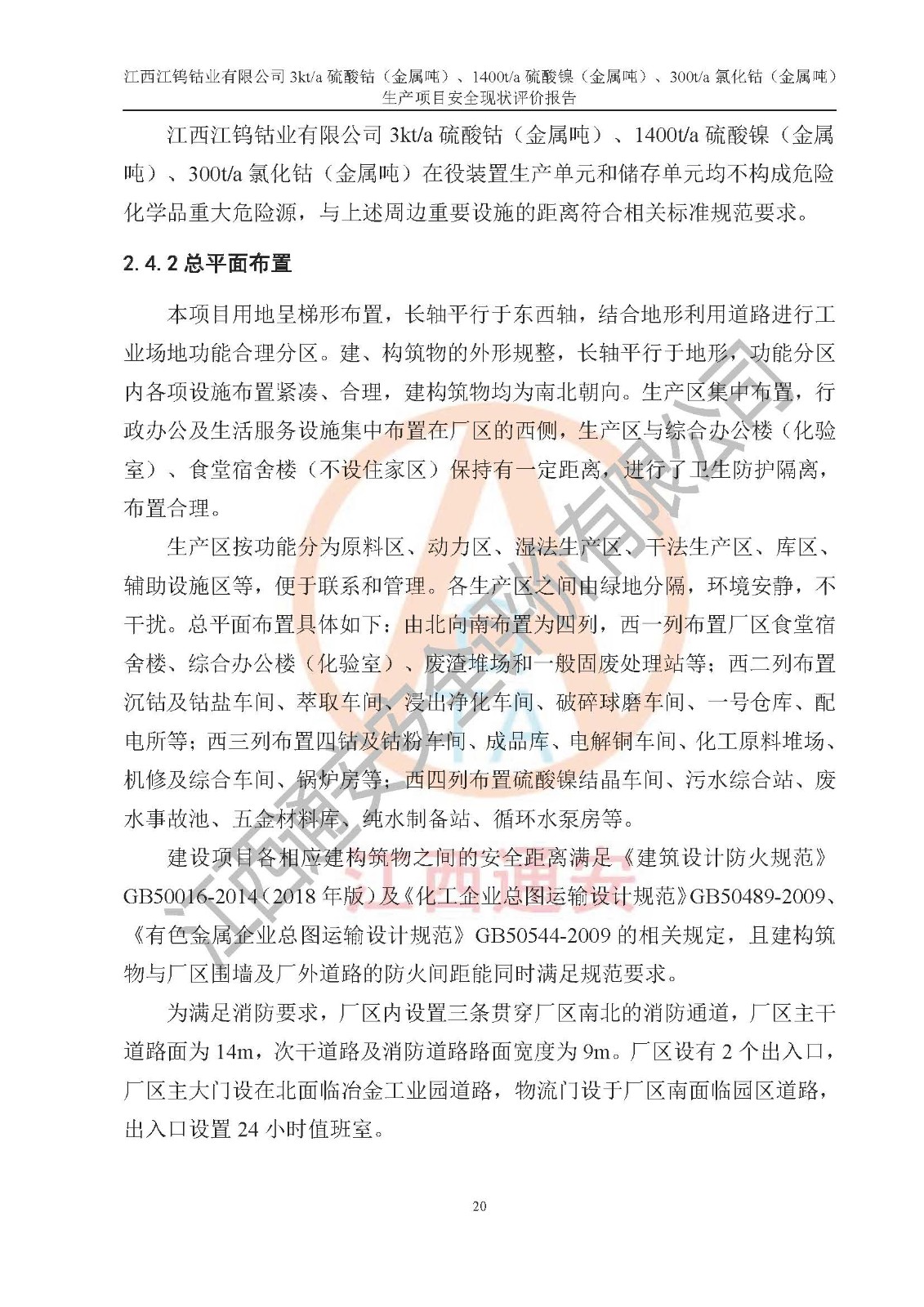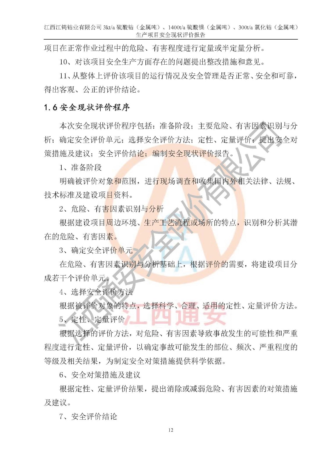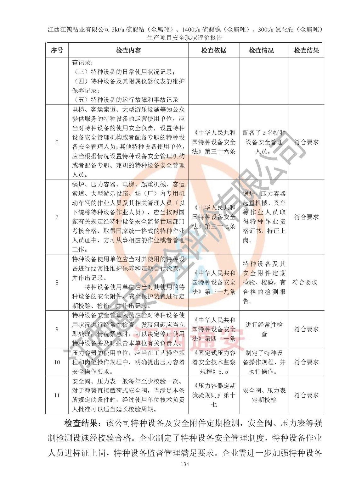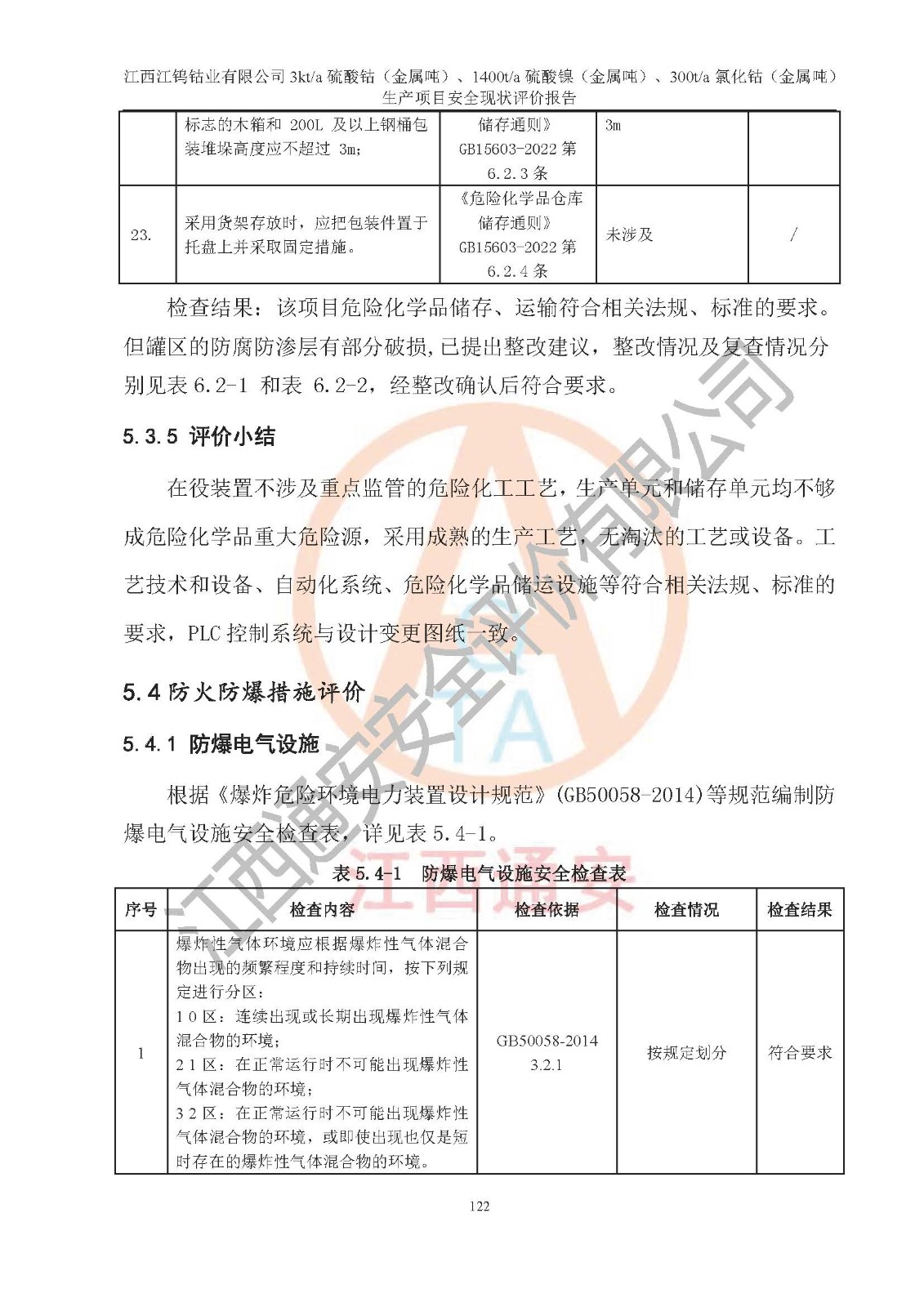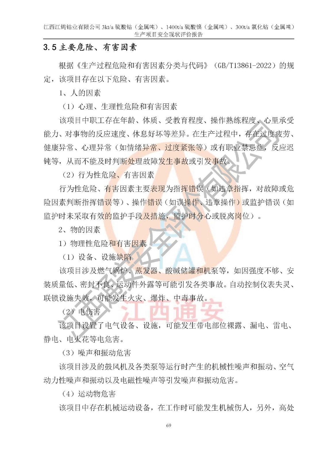 一、定量評價(jià)結(jié)果 1、作業(yè)條件危險(xiǎn)性分析評價(jià)結(jié)果:在選定的13個(gè)評價(jià)單元中,作業(yè)危險(xiǎn)等級為“可能危險(xiǎn),需要注意”,作業(yè)條件相對安全。 2、危險(xiǎn)程評價(jià)法分析結(jié)果:化工材料倉庫及罐區(qū)危險(xiǎn)程度為**危險(xiǎn),本項(xiàng)目在硫酸和鹽酸儲罐區(qū)設(shè)有圍堰、洗眼噴淋設(shè)施,儲罐均為常壓設(shè)備,設(shè)有就地液位和遠(yuǎn)傳的高低液位報(bào)警裝置,卸料、物料輸送、投料采用密閉化和機(jī)械化操作,公司制定了酸罐區(qū)的安全操作規(guī)程,作業(yè)人員穿戴個(gè)體防護(hù)用品,并配備了應(yīng)急救援裝備,通過采取**的安全設(shè)施和安全管理措施可以使風(fēng)險(xiǎn)降低到可接受范圍內(nèi);萃取車間危險(xiǎn)程度為低度危險(xiǎn)。風(fēng)險(xiǎn)在可接受范圍內(nèi)。。 4、定量風(fēng)險(xiǎn)評價(jià)分析結(jié)果:根據(jù)個(gè)人風(fēng)險(xiǎn)分析效果圖,該項(xiàng)目的個(gè)人風(fēng)險(xiǎn)符合要求;根據(jù)社會風(fēng)險(xiǎn)分析效果圖可知,該項(xiàng)目無社會風(fēng)險(xiǎn)。鍋爐發(fā)生物理爆炸的多米諾半徑局限在廠界內(nèi),企業(yè)會定期對鍋爐、空氣儲罐及安全附件進(jìn)行檢測,鍋爐操作工持證上崗,并加強(qiáng)日常的安全管理,可**降低發(fā)生物理爆炸的風(fēng)險(xiǎn)。 二、定性評價(jià)結(jié)果 1、依據(jù)相關(guān)法律、法規(guī)、標(biāo)準(zhǔn)等的規(guī)定,該項(xiàng)目外部安全條件、總平面布置、工藝及設(shè)備、防火防爆安全設(shè)施等符合**相關(guān)標(biāo)準(zhǔn)規(guī)范的要求,能滿足安全生產(chǎn)的要求。根據(jù)《江西江鎢鈷業(yè)有限公司全流程自動(dòng)化控制評估報(bào)告》(含《隱患清單》)評估報(bào)告,在役裝置的自動(dòng)化系統(tǒng)不需要提升。 2、該項(xiàng)目公用輔助設(shè)施能夠滿足安全生產(chǎn)的要求。 3、該項(xiàng)目按要求設(shè)置了安全生產(chǎn)管理機(jī)構(gòu),配備了專職安全生產(chǎn)管理人員,建立了全員安全生產(chǎn)責(zé)任制,制定了安全管理制度和崗位安全操作規(guī)程等。該公司修訂了生產(chǎn)安全事故應(yīng)急預(yù)案,配備了應(yīng)急救援器材,按要求定期進(jìn)行相關(guān)培訓(xùn)及演練。 4、公司主要負(fù)責(zé)人、安全管理人員經(jīng)培訓(xùn)考核取得了相應(yīng)的安全資格證書。主要負(fù)責(zé)人、分管安全負(fù)責(zé)人、分管生產(chǎn)、設(shè)備、技術(shù)負(fù)責(zé)人和安全管理人員的專業(yè)和學(xué)歷符合要求。特種作業(yè)人員均經(jīng)過培訓(xùn)考核合格后持證上崗,其他從業(yè)人員均進(jìn)行了安全教育培訓(xùn),具備安全知識與操作技能;公司配備了應(yīng)急救援物資,為從業(yè)人員配備了相應(yīng)的勞動(dòng)防護(hù)用品。 5、該項(xiàng)目的安全生產(chǎn)條件符合《安全生產(chǎn)許可證條例》、《危險(xiǎn)化學(xué)品生產(chǎn)企業(yè)安全生產(chǎn)許可證實(shí)施辦法》的要求,該項(xiàng)目不涉及重大生產(chǎn)安全事故隱患。 6、該項(xiàng)目不涉及重大生產(chǎn)安全事故隱患,采取的安全設(shè)施符合要求。 三、評價(jià)結(jié)論 江西江鎢鈷業(yè)有限公司符合城鄉(xiāng)規(guī)劃和布局,總平面布置符合《建筑設(shè)計(jì)防火規(guī)范(2018年版)》GB50016-2014等標(biāo)準(zhǔn)、規(guī)范的要求,采用成熟的生產(chǎn)工藝和設(shè)備,本質(zhì)安全程度較高;生產(chǎn)項(xiàng)目對現(xiàn)場存在事故危險(xiǎn)的設(shè)施和場所采取了合理可行的防護(hù)措施和科學(xué)的管理,使生產(chǎn)過程中的危險(xiǎn)有害因素能得到**控制。建設(shè)項(xiàng)目安全設(shè)施符合**現(xiàn)行有關(guān)法律、法規(guī)、標(biāo)準(zhǔn)的要求。企業(yè)對現(xiàn)場存在的安全問題進(jìn)行了整改,主要的安全缺陷消除。 評價(jià)結(jié)論:江西江鎢鈷業(yè)有限公司3kt/a硫酸鈷(金屬噸)、1400t/a硫酸鎳(金屬噸)、300t/a氯化鈷(金屬噸)生產(chǎn)項(xiàng)目的現(xiàn)場情況與設(shè)計(jì)變更圖紙一致,PLC控制系統(tǒng)設(shè)計(jì)符合要求、運(yùn)行正常,有關(guān)從業(yè)人員資質(zhì)符合《江西省危險(xiǎn)化學(xué)品安全專項(xiàng)整治三年行動(dòng)實(shí)施方案》要求,安全設(shè)施及安全管理符合法律、法規(guī)、標(biāo)準(zhǔn)的要求,安全風(fēng)險(xiǎn)是受控制的,其風(fēng)險(xiǎn)程度是可以接受的,安全設(shè)施符合安全生產(chǎn)條件,能夠滿足安全生產(chǎn)的要求。 |