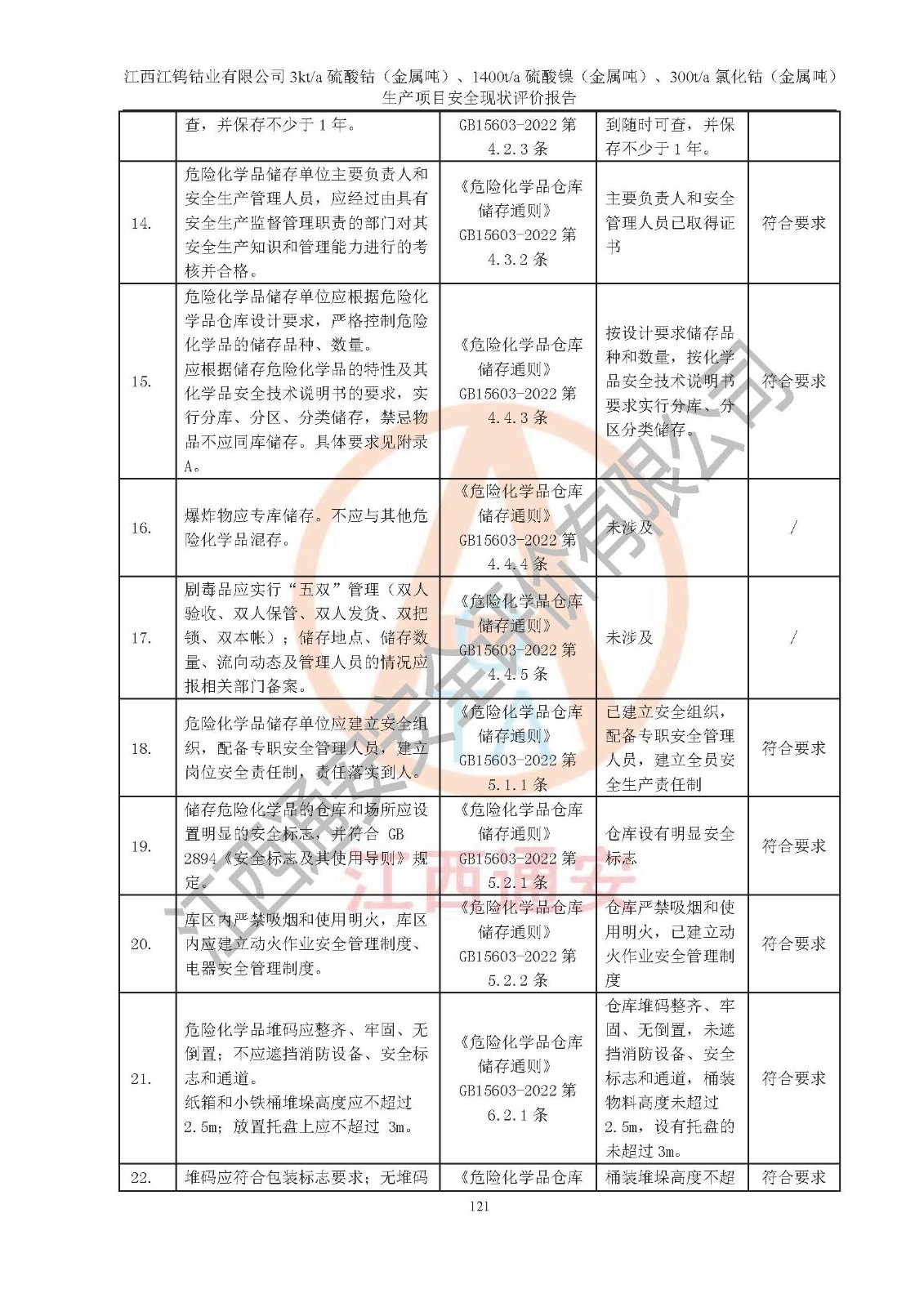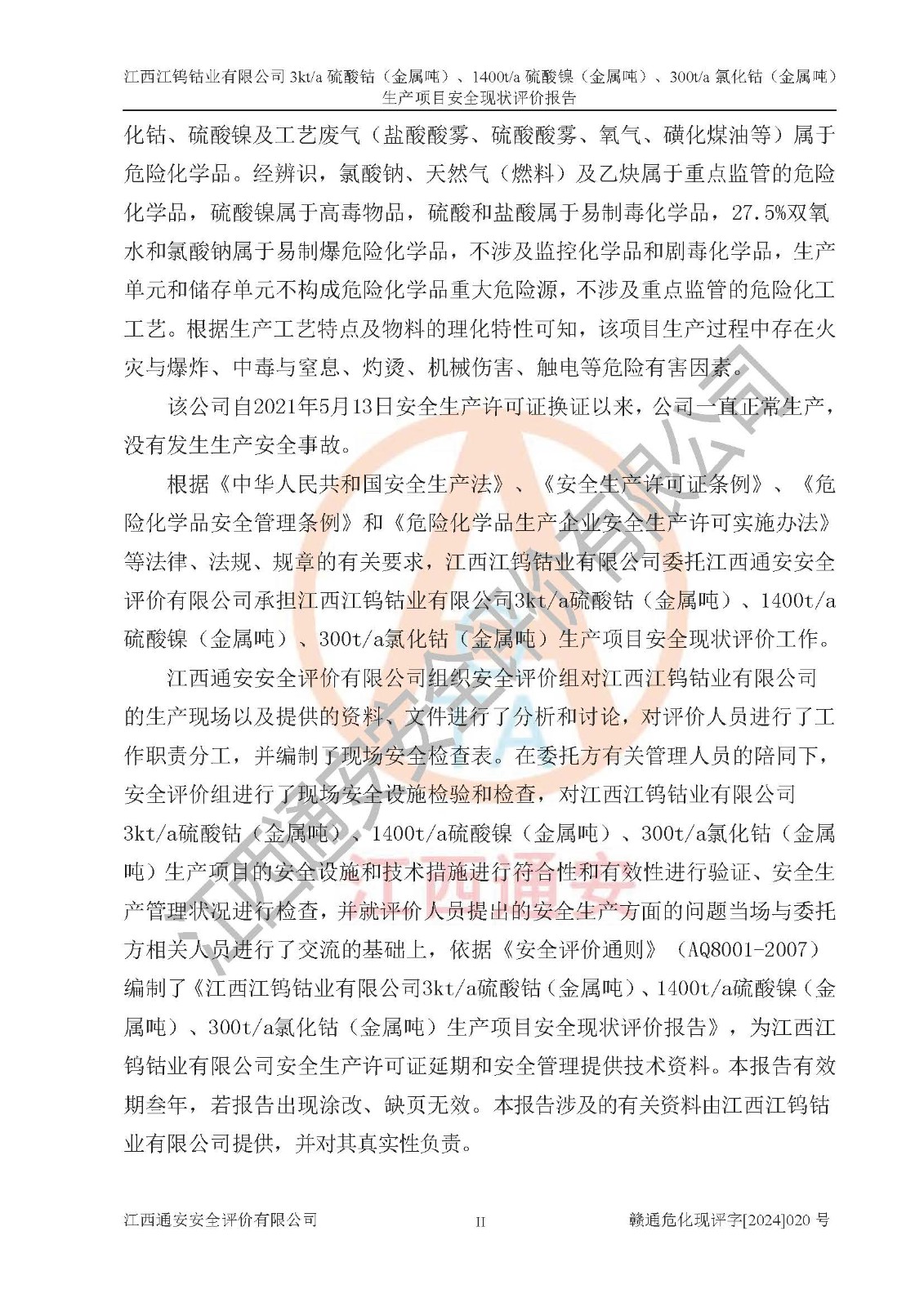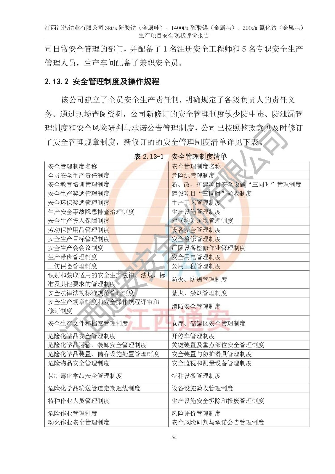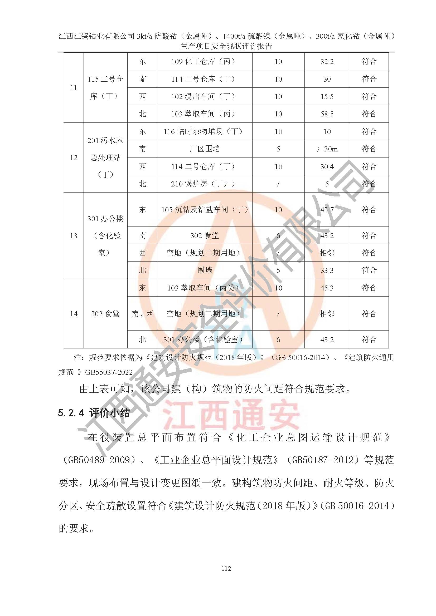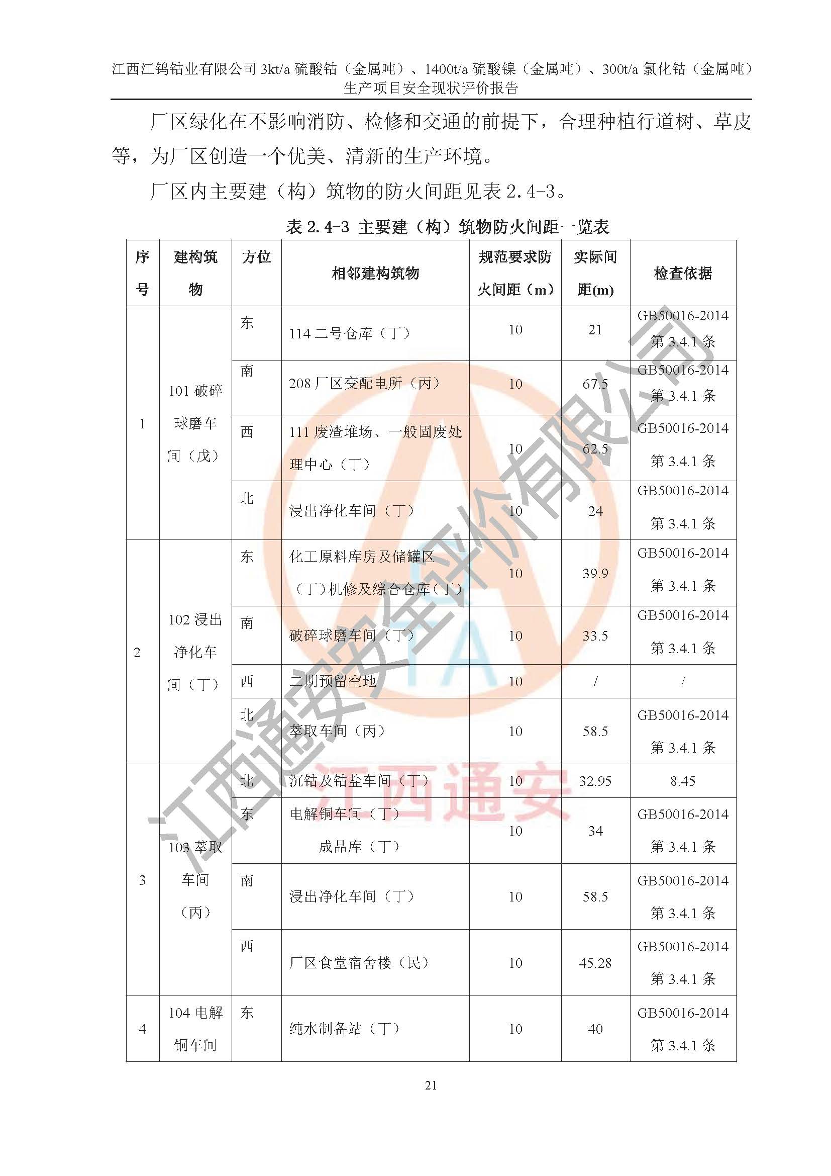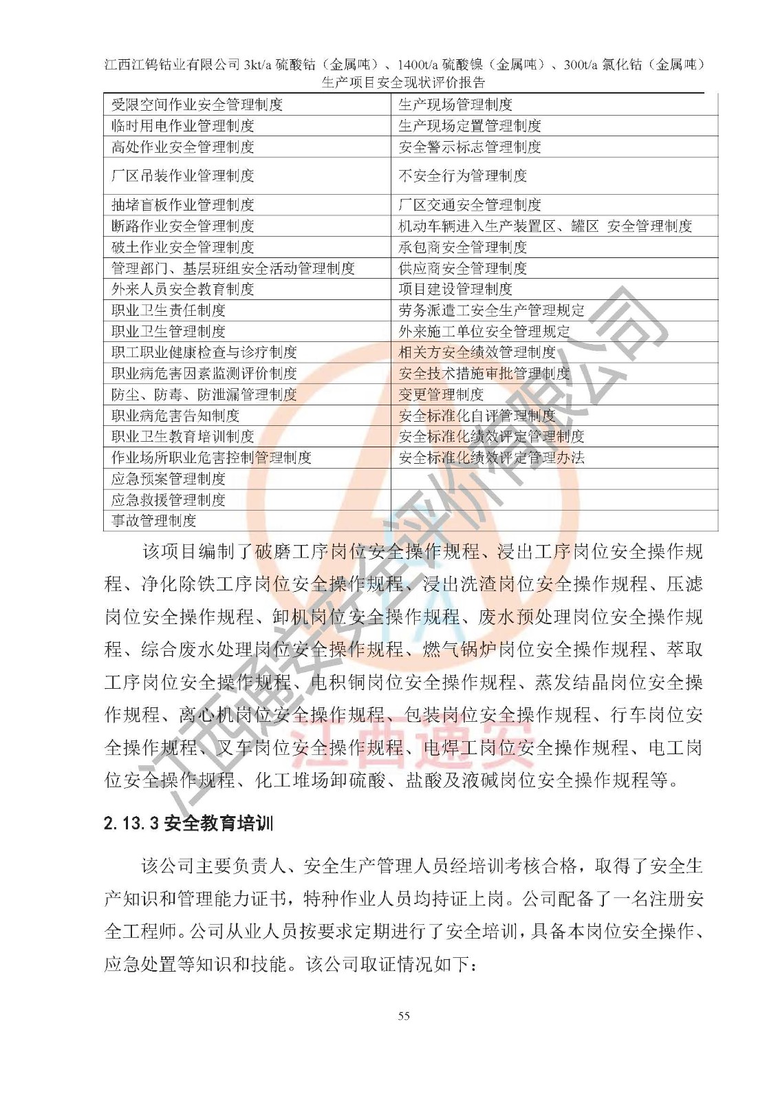 一、定量評價(jià)結(jié)果 1、作業(yè)條件危險(xiǎn)性分析評價(jià)結(jié)果:在選定的13個(gè)評價(jià)單元中,作業(yè)危險(xiǎn)等級為“可能危險(xiǎn),需要注意”,作業(yè)條件相對安全。 2、危險(xiǎn)程評價(jià)法分析結(jié)果:化工材料倉庫及罐區(qū)危險(xiǎn)程度為**危險(xiǎn),本項(xiàng)目在硫酸和鹽酸儲罐區(qū)設(shè)有圍堰、洗眼噴淋設(shè)施,儲罐均為常壓設(shè)備,設(shè)有就地液位和遠(yuǎn)傳的高低液位報(bào)警裝置,卸料、物料輸送、投料采用密閉化和機(jī)械化操作,公司制定了酸罐區(qū)的安全操作規(guī)程,作業(yè)人員穿戴個(gè)體防護(hù)用品,并配備了應(yīng)急救援裝備,通過采取**的安全設(shè)施和安全管理措施可以使風(fēng)險(xiǎn)降低到可接受范圍內(nèi);萃取車間危險(xiǎn)程度為低度危險(xiǎn)。風(fēng)險(xiǎn)在可接受范圍內(nèi)。。 4、定量風(fēng)險(xiǎn)評價(jià)分析結(jié)果:根據(jù)個(gè)人風(fēng)險(xiǎn)分析效果圖,該項(xiàng)目的個(gè)人風(fēng)險(xiǎn)符合要求;根據(jù)社會風(fēng)險(xiǎn)分析效果圖可知,該項(xiàng)目無社會風(fēng)險(xiǎn)。鍋爐發(fā)生物理爆炸的多米諾半徑局限在廠界內(nèi),企業(yè)會定期對鍋爐、空氣儲罐及安全附件進(jìn)行檢測,鍋爐操作工持證上崗,并加強(qiáng)日常的安全管理,可**降低發(fā)生物理爆炸的風(fēng)險(xiǎn)。 二、定性評價(jià)結(jié)果 1、依據(jù)相關(guān)法律、法規(guī)、標(biāo)準(zhǔn)等的規(guī)定,該項(xiàng)目外部安全條件、總平面布置、工藝及設(shè)備、防火防爆安全設(shè)施等符合**相關(guān)標(biāo)準(zhǔn)規(guī)范的要求,能滿足安全生產(chǎn)的要求。根據(jù)《江西江鎢鈷業(yè)有限公司全流程自動(dòng)化控制評估報(bào)告》(含《隱患清單》)評估報(bào)告,在役裝置的自動(dòng)化系統(tǒng)不需要提升。 2、該項(xiàng)目公用輔助設(shè)施能夠滿足安全生產(chǎn)的要求。 3、該項(xiàng)目按要求設(shè)置了安全生產(chǎn)管理機(jī)構(gòu),配備了專職安全生產(chǎn)管理人員,建立了全員安全生產(chǎn)責(zé)任制,制定了安全管理制度和崗位安全操作規(guī)程等。該公司修訂了生產(chǎn)安全事故應(yīng)急預(yù)案,配備了應(yīng)急救援器材,按要求定期進(jìn)行相關(guān)培訓(xùn)及演練。 4、公司主要負(fù)責(zé)人、安全管理人員經(jīng)培訓(xùn)考核取得了相應(yīng)的安全資格證書。主要負(fù)責(zé)人、分管安全負(fù)責(zé)人、分管生產(chǎn)、設(shè)備、技術(shù)負(fù)責(zé)人和安全管理人員的專業(yè)和學(xué)歷符合要求。特種作業(yè)人員均經(jīng)過培訓(xùn)考核合格后持證上崗,其他從業(yè)人員均進(jìn)行了安全教育培訓(xùn),具備安全知識與操作技能;公司配備了應(yīng)急救援物資,為從業(yè)人員配備了相應(yīng)的勞動(dòng)防護(hù)用品。 5、該項(xiàng)目的安全生產(chǎn)條件符合《安全生產(chǎn)許可證條例》、《危險(xiǎn)化學(xué)品生產(chǎn)企業(yè)安全生產(chǎn)許可證實(shí)施辦法》的要求,該項(xiàng)目不涉及重大生產(chǎn)安全事故隱患。 6、該項(xiàng)目不涉及重大生產(chǎn)安全事故隱患,采取的安全設(shè)施符合要求。 三、評價(jià)結(jié)論 江西江鎢鈷業(yè)有限公司符合城鄉(xiāng)規(guī)劃和布局,總平面布置符合《建筑設(shè)計(jì)防火規(guī)范(2018年版)》GB50016-2014等標(biāo)準(zhǔn)、規(guī)范的要求,采用成熟的生產(chǎn)工藝和設(shè)備,本質(zhì)安全程度較高;生產(chǎn)項(xiàng)目對現(xiàn)場存在事故危險(xiǎn)的設(shè)施和場所采取了合理可行的防護(hù)措施和科學(xué)的管理,使生產(chǎn)過程中的危險(xiǎn)有害因素能得到**控制。建設(shè)項(xiàng)目安全設(shè)施符合**現(xiàn)行有關(guān)法律、法規(guī)、標(biāo)準(zhǔn)的要求。企業(yè)對現(xiàn)場存在的安全問題進(jìn)行了整改,主要的安全缺陷消除。 評價(jià)結(jié)論:江西江鎢鈷業(yè)有限公司3kt/a硫酸鈷(金屬噸)、1400t/a硫酸鎳(金屬噸)、300t/a氯化鈷(金屬噸)生產(chǎn)項(xiàng)目的現(xiàn)場情況與設(shè)計(jì)變更圖紙一致,PLC控制系統(tǒng)設(shè)計(jì)符合要求、運(yùn)行正常,有關(guān)從業(yè)人員資質(zhì)符合《江西省危險(xiǎn)化學(xué)品安全專項(xiàng)整治三年行動(dòng)實(shí)施方案》要求,安全設(shè)施及安全管理符合法律、法規(guī)、標(biāo)準(zhǔn)的要求,安全風(fēng)險(xiǎn)是受控制的,其風(fēng)險(xiǎn)程度是可以接受的,安全設(shè)施符合安全生產(chǎn)條件,能夠滿足安全生產(chǎn)的要求。 |